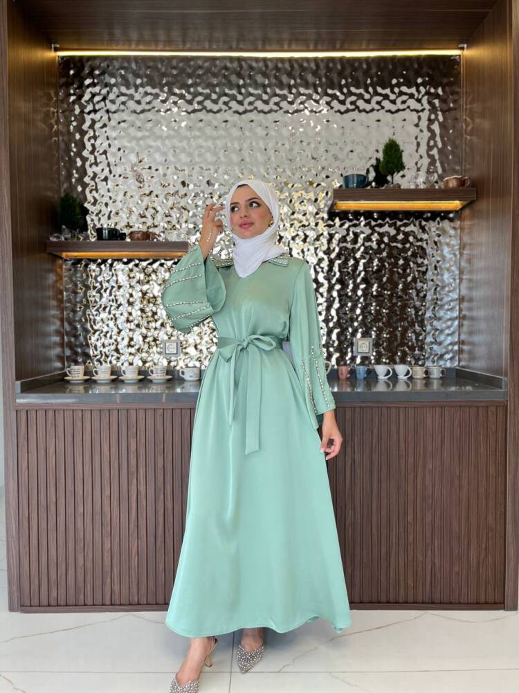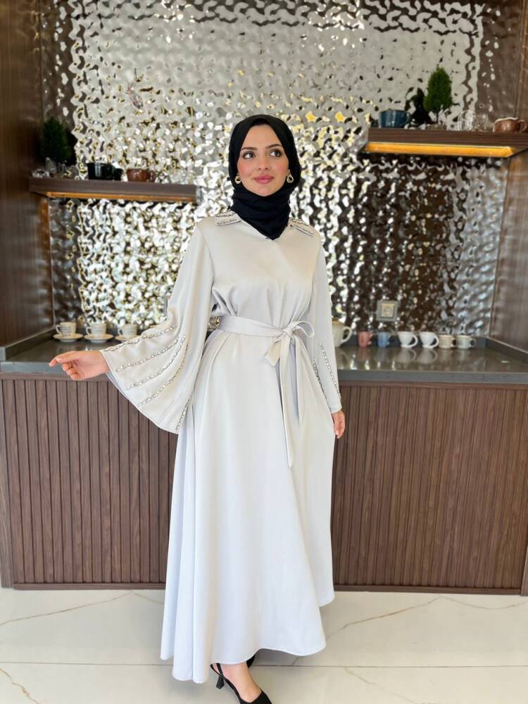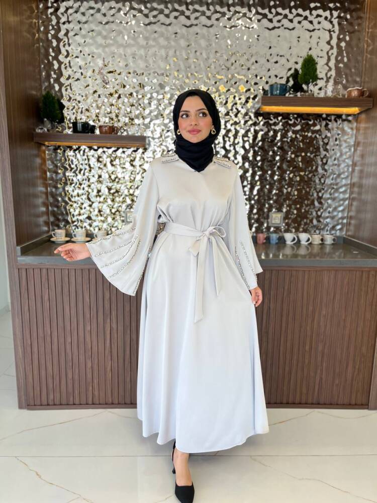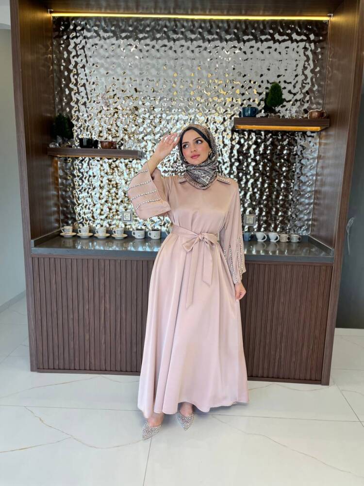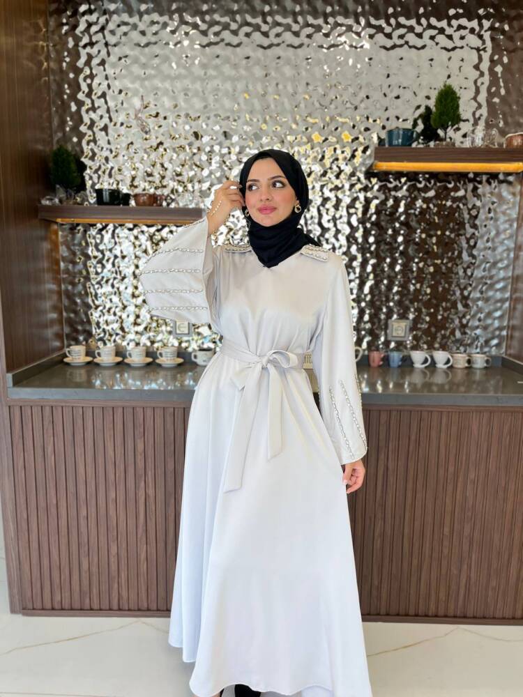 Gelince Haber VerZarif saten dokusu ve ışıltılı taş detaylarıyla öne çıkan kadın elbise, özel günler ve davetler için mükemmel bir tercihtir. Kuşak detayıyla belinizi zarifçe vurgularken, dökümlü eteğiyle feminen bir duruş sunar. Şıklığı ve rahatlığı bir arada arayan kadınlar için tasarlanan bu elbise, her ortamda dikkat çekici bir zarafet kazandırır.