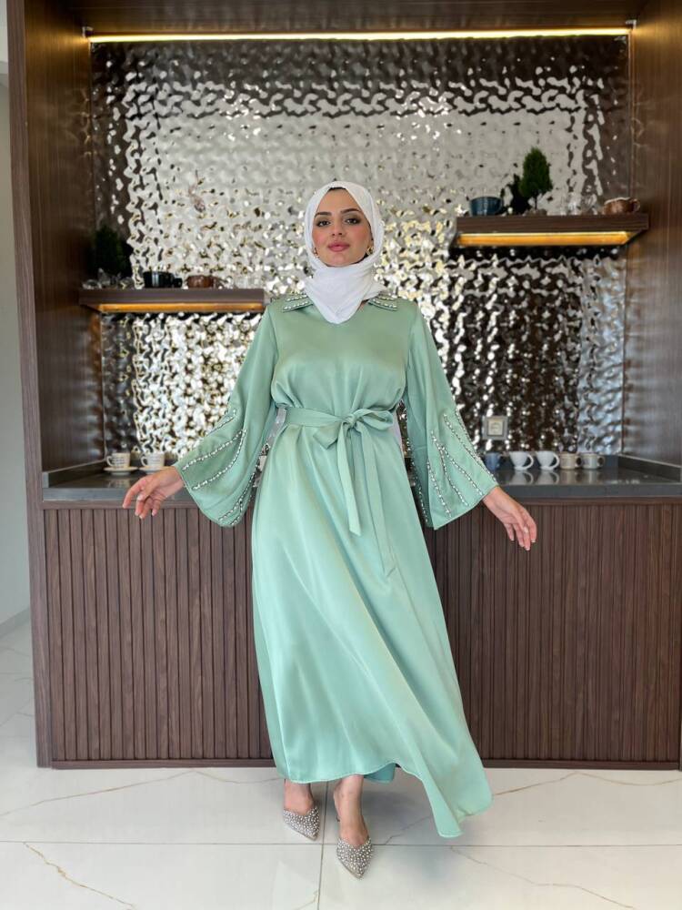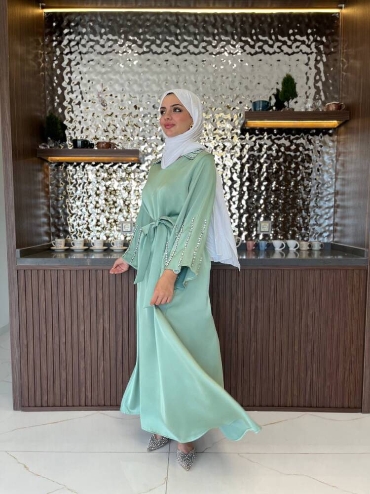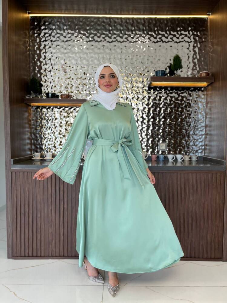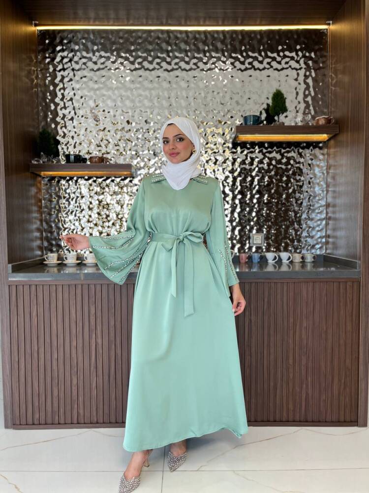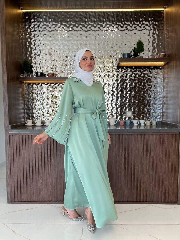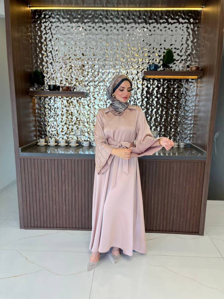Gelince Haber VerZarif saten dokusu ve ışıltılı taş detaylarıyla öne çıkan kadın elbise, özel günler ve davetler için mükemmel bir tercihtir. Kuşak detayıyla belinizi zarifçe vurgularken, dökümlü eteğiyle feminen bir duruş sunar. Şıklığı ve rahatlığı bir arada arayan kadınlar için tasarlanan bu elbise, her ortamda dikkat çekici bir zarafet kazandırır.