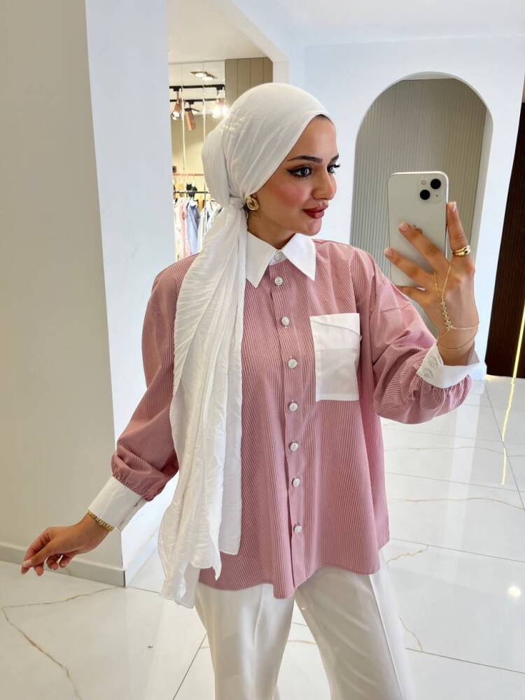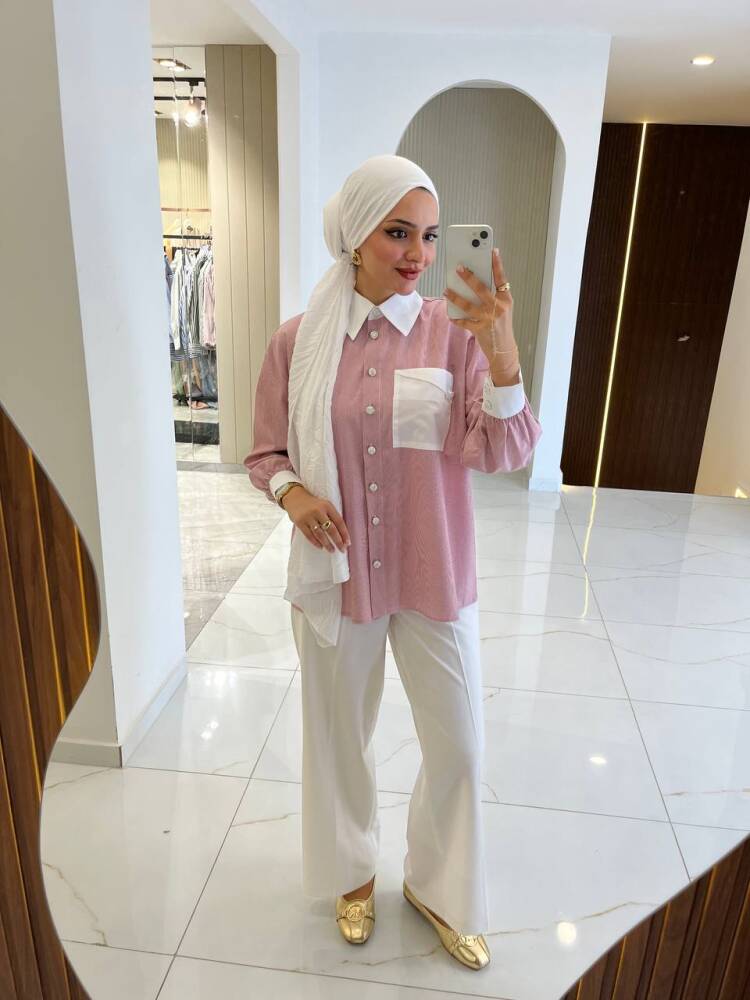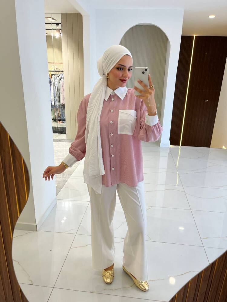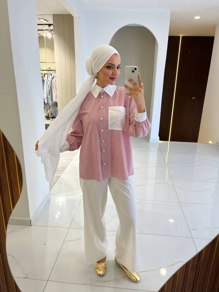 Gelince Haber VerKontrast detaylı pembe kadın gömlek, zarif ve modern görünümüyle günlük şıklığı bir araya getiriyor. Yaka, manşet ve cep kısmındaki beyaz detaylar feminen bir dokunuş sunarken, rahat kesimiyle gün boyu konfor sağlar. Pantolon ve eteklerle kolayca kombinlenebilir yapısıyla hem ofis hem de günlük kullanıma uygundur.