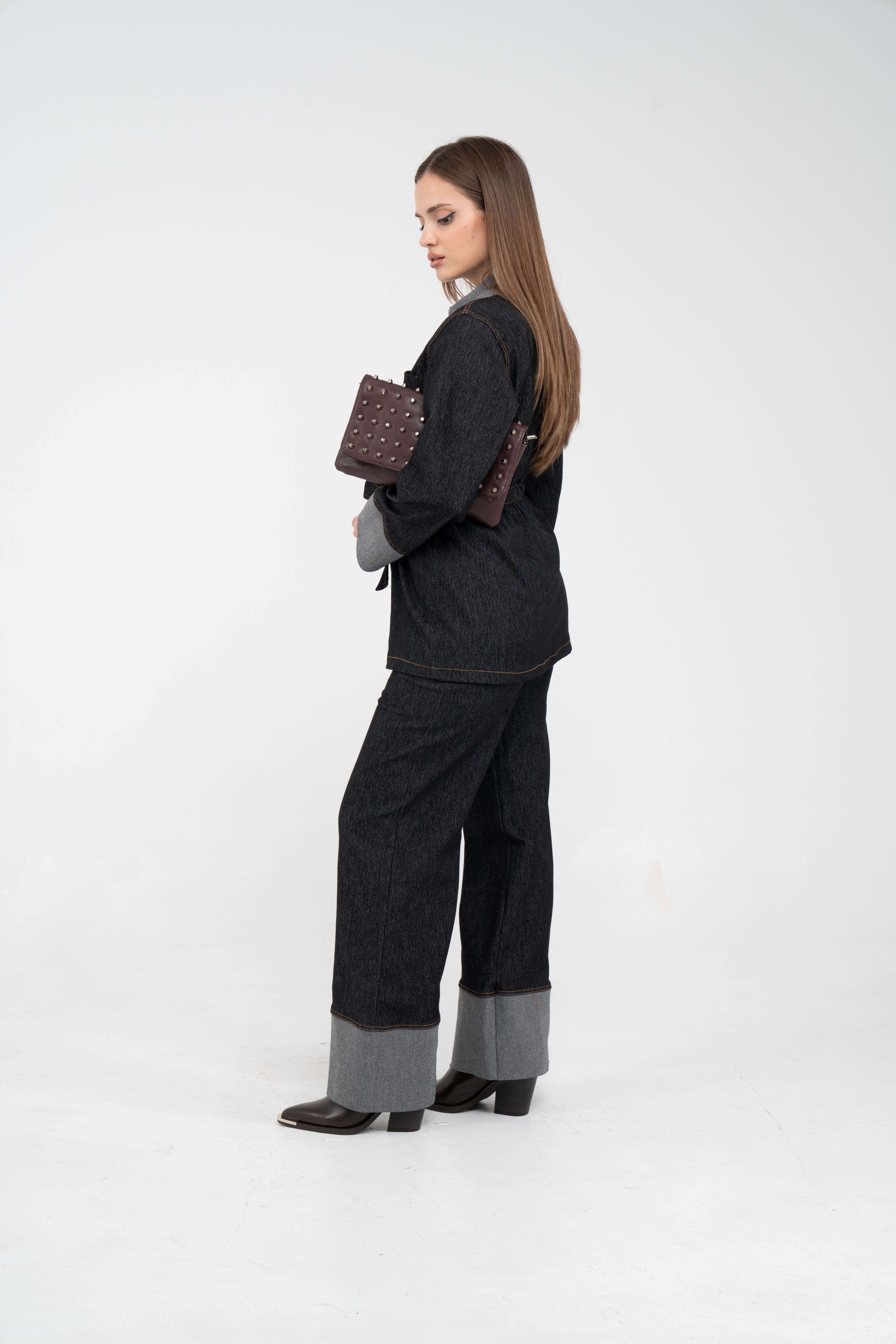 Alt parça geniş paça pantolonuyla rahatlık ve tarzı bir arada sunar. Günlük kombinlerde, ofis stilinde veya şık akşam buluşmalarında kolayca tercih edilebilir. Topuklu bot ve minimal aksesuarlarla tamamlandığında modern bir görünüm yakalanır.