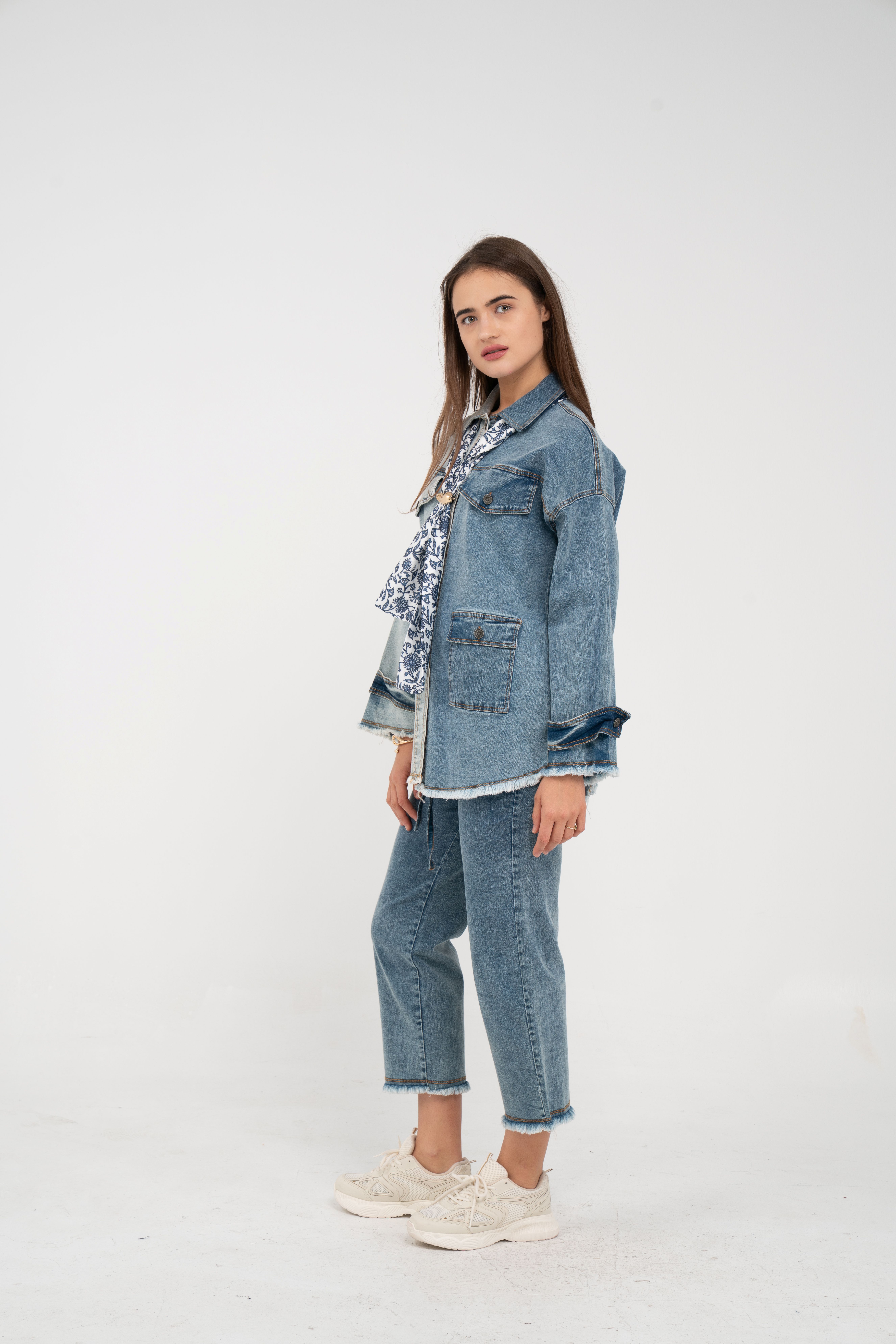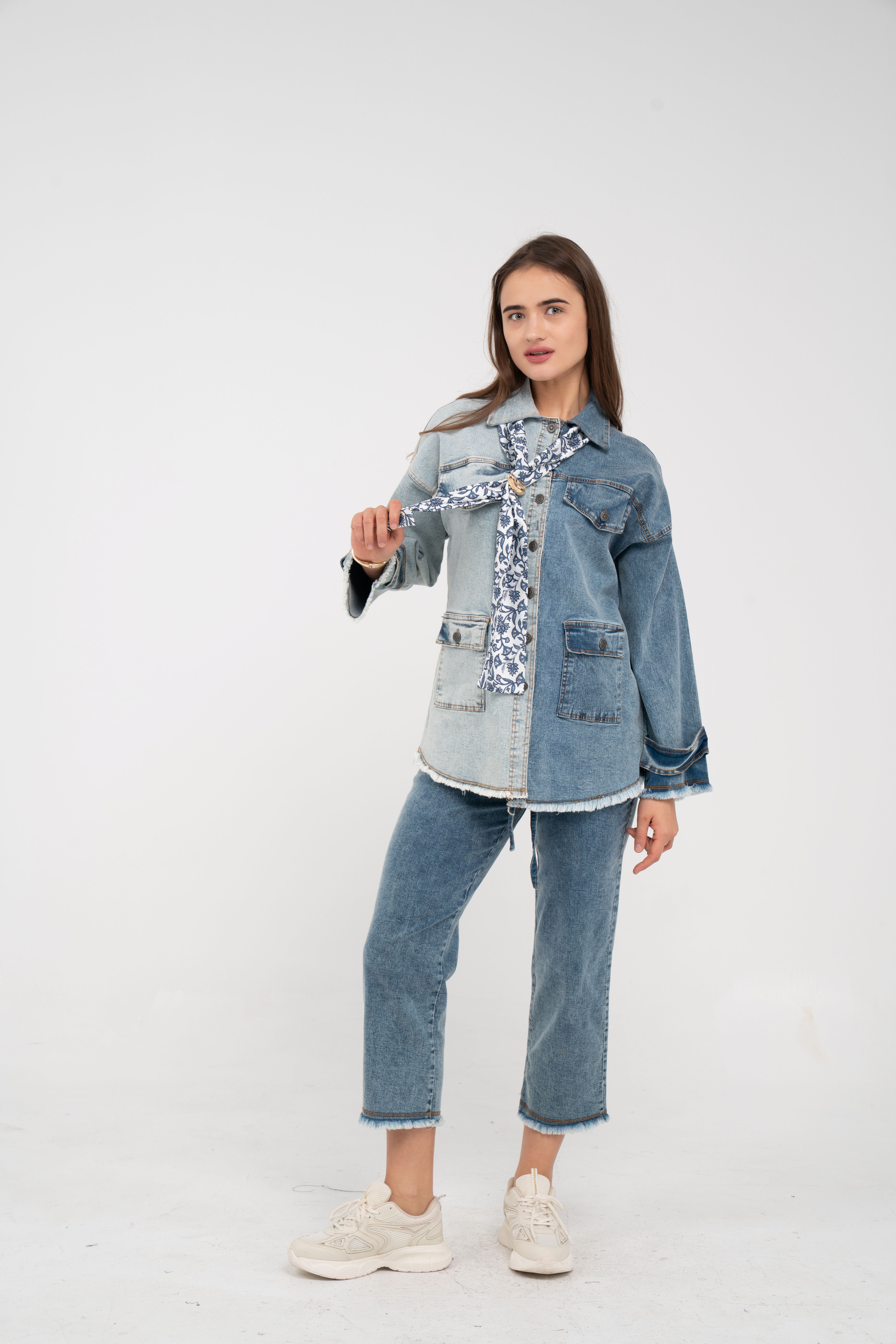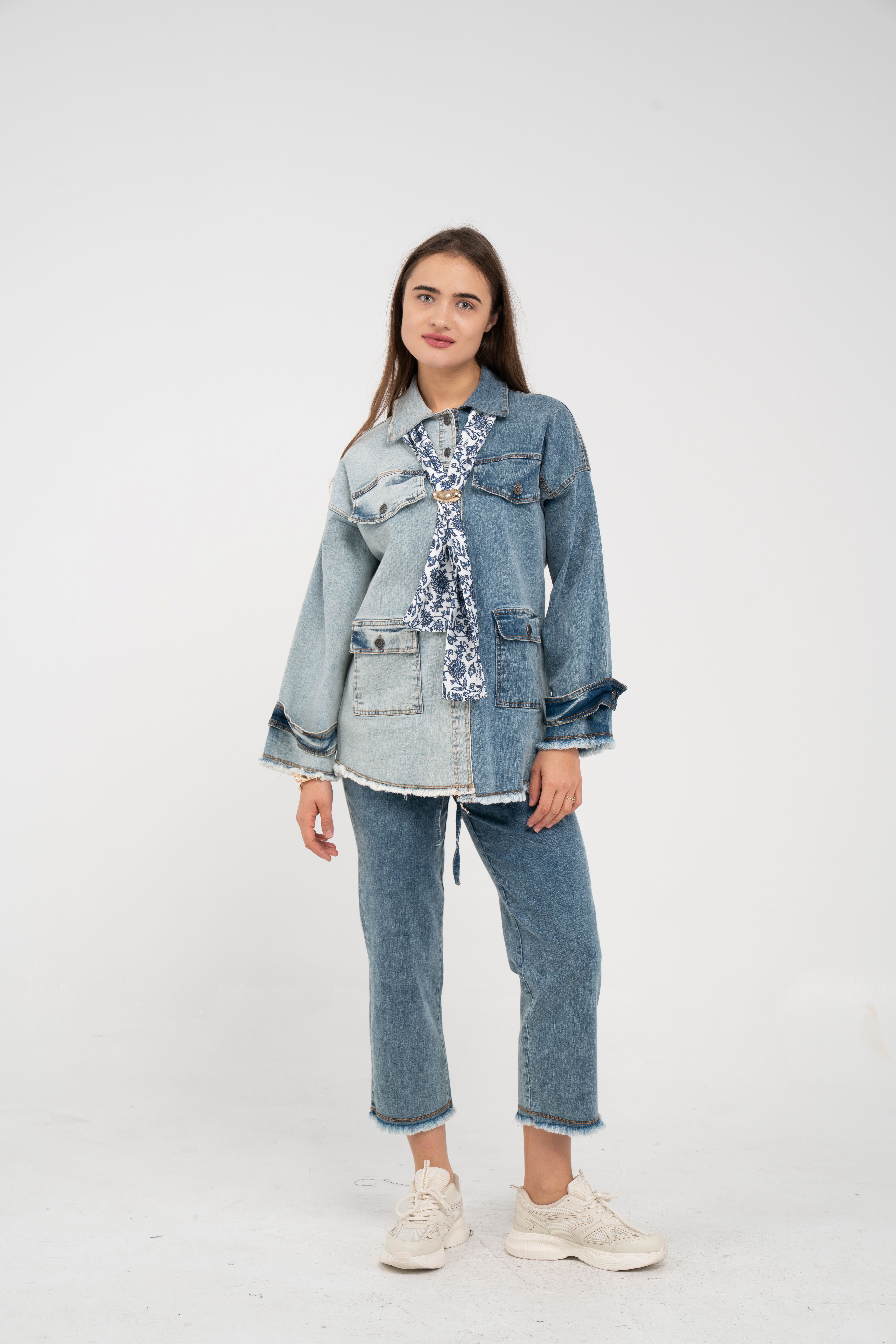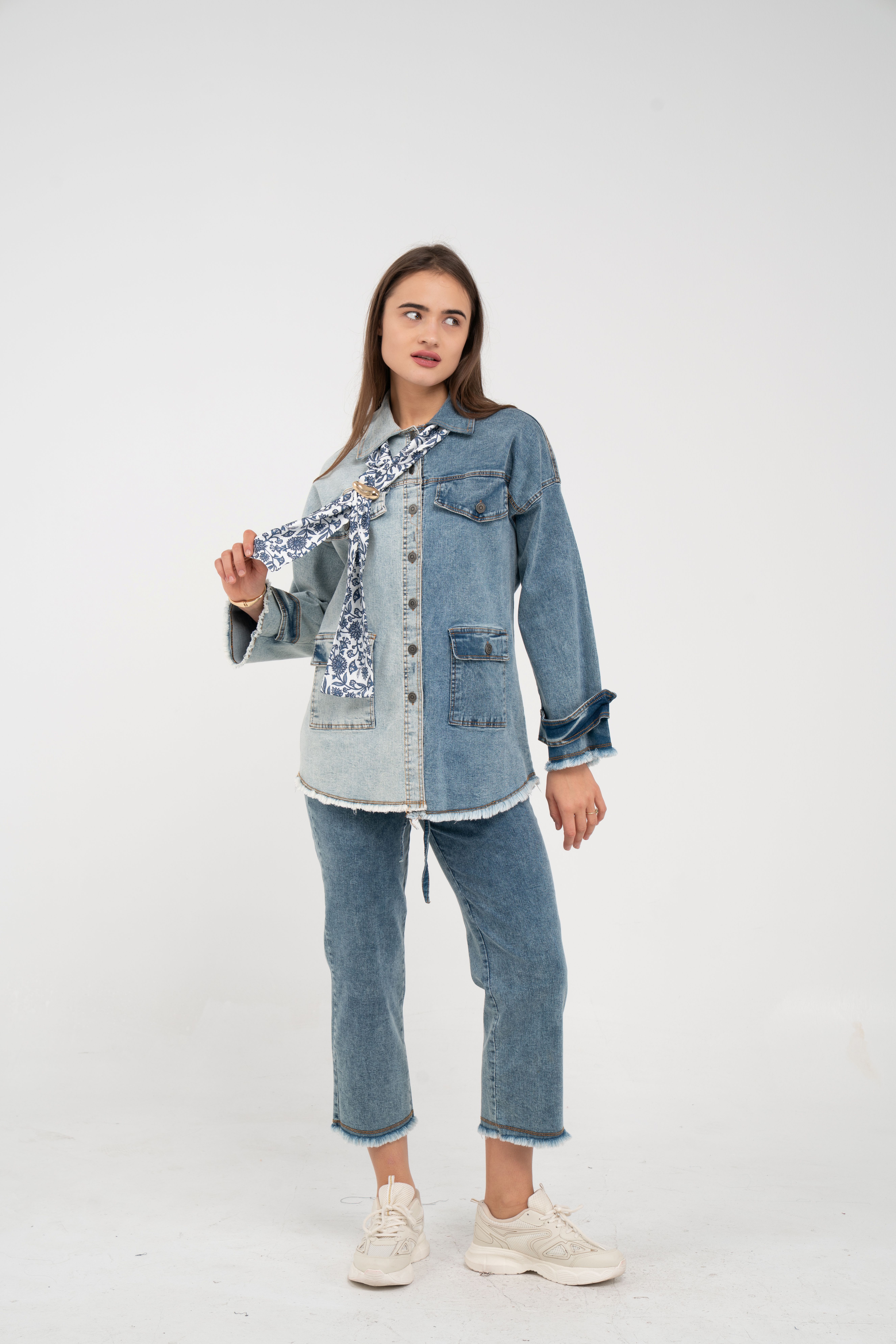 Modern kesimiyle dikkat çeken denim takım, şehir stilinin en güçlü temsilcilerinden biri. Kuşaklı kot ceket ve rahat kalıplı mom jean pantolon, birlikte zahmetsiz şıklık sunar. Günlük kullanımda hem rahatlık hem tarz arayan kadınlar için mükemmel bir tercih. Spor ayakkabılarla kombinleyerek enerjik bir görünüm elde edebilirsin.