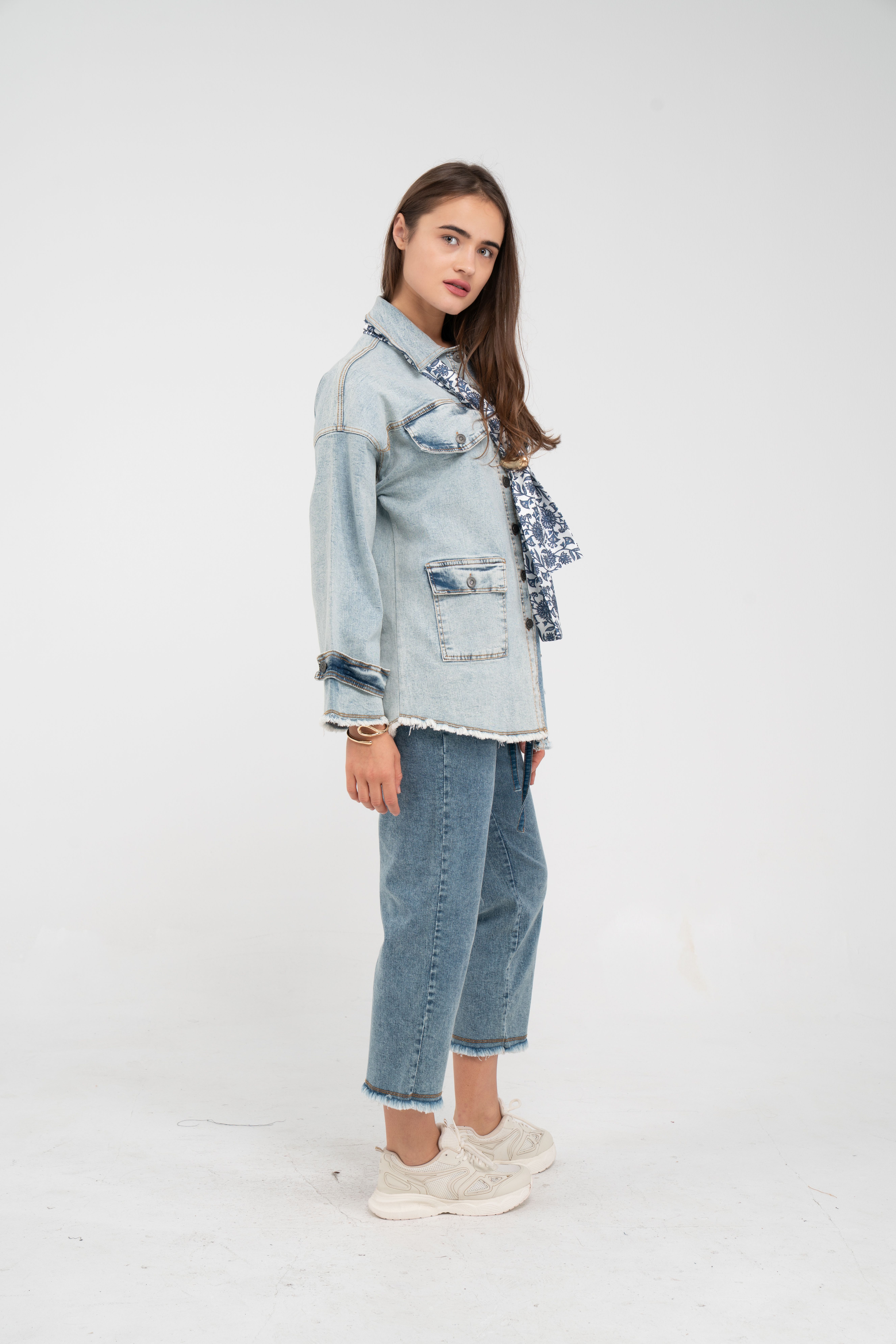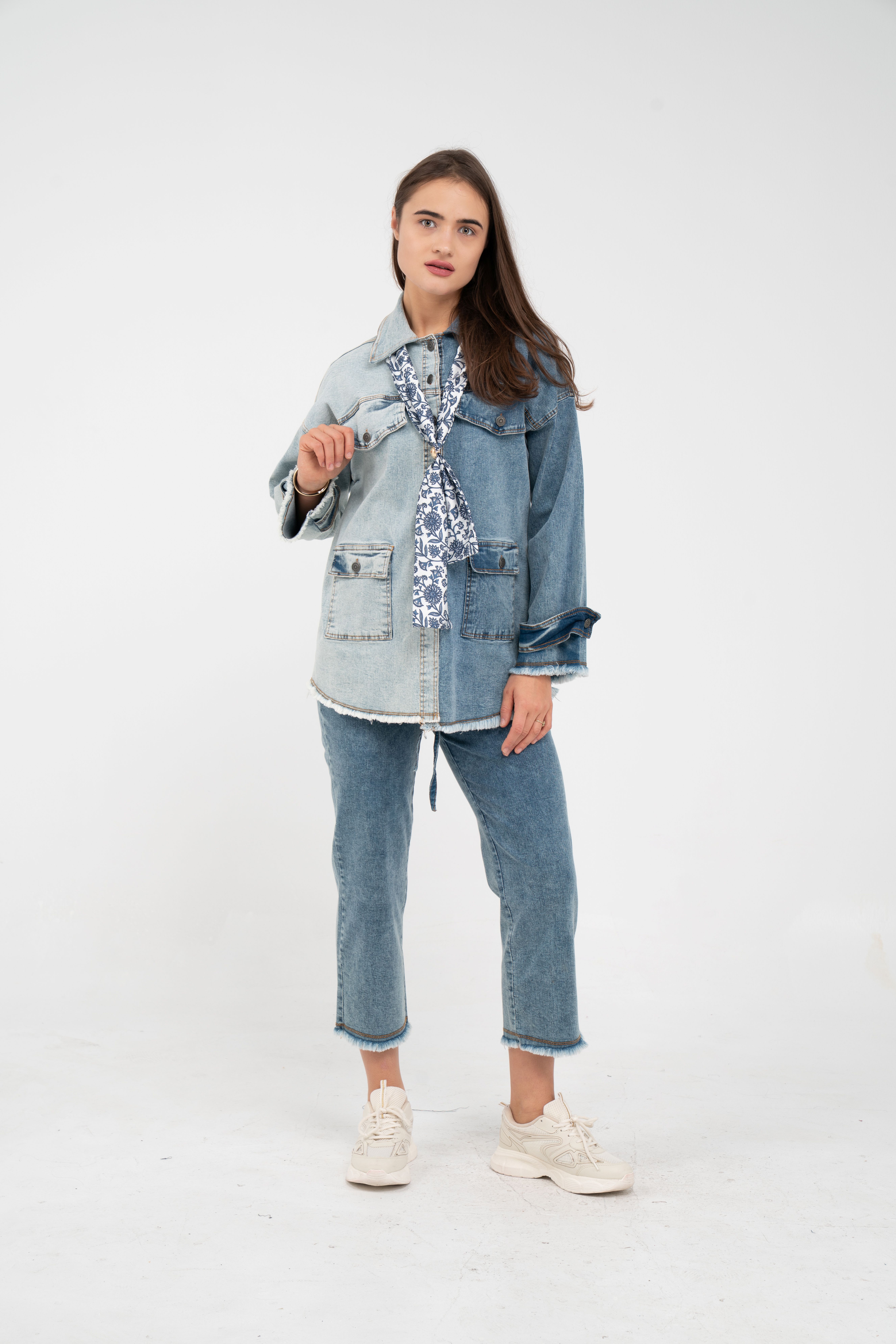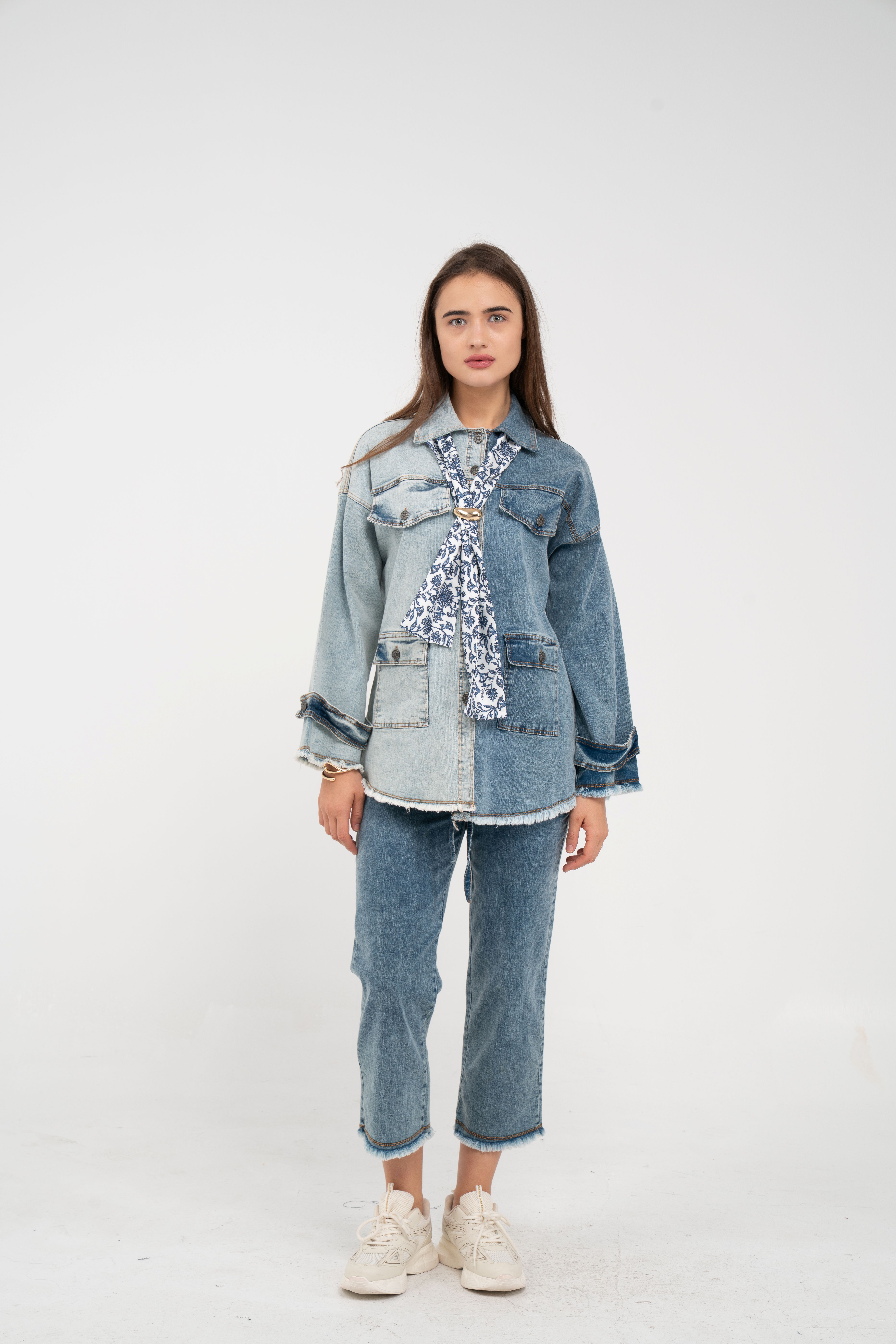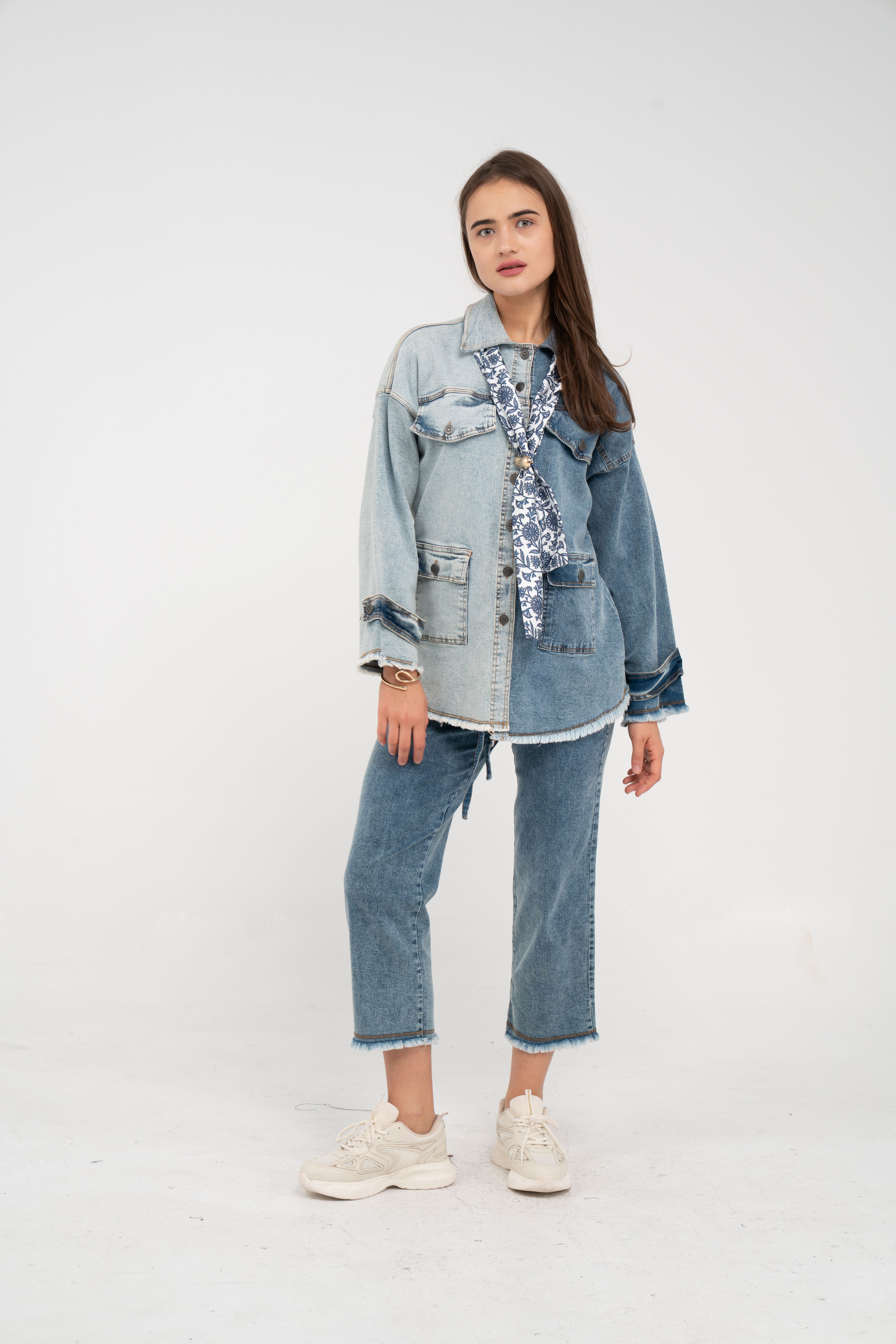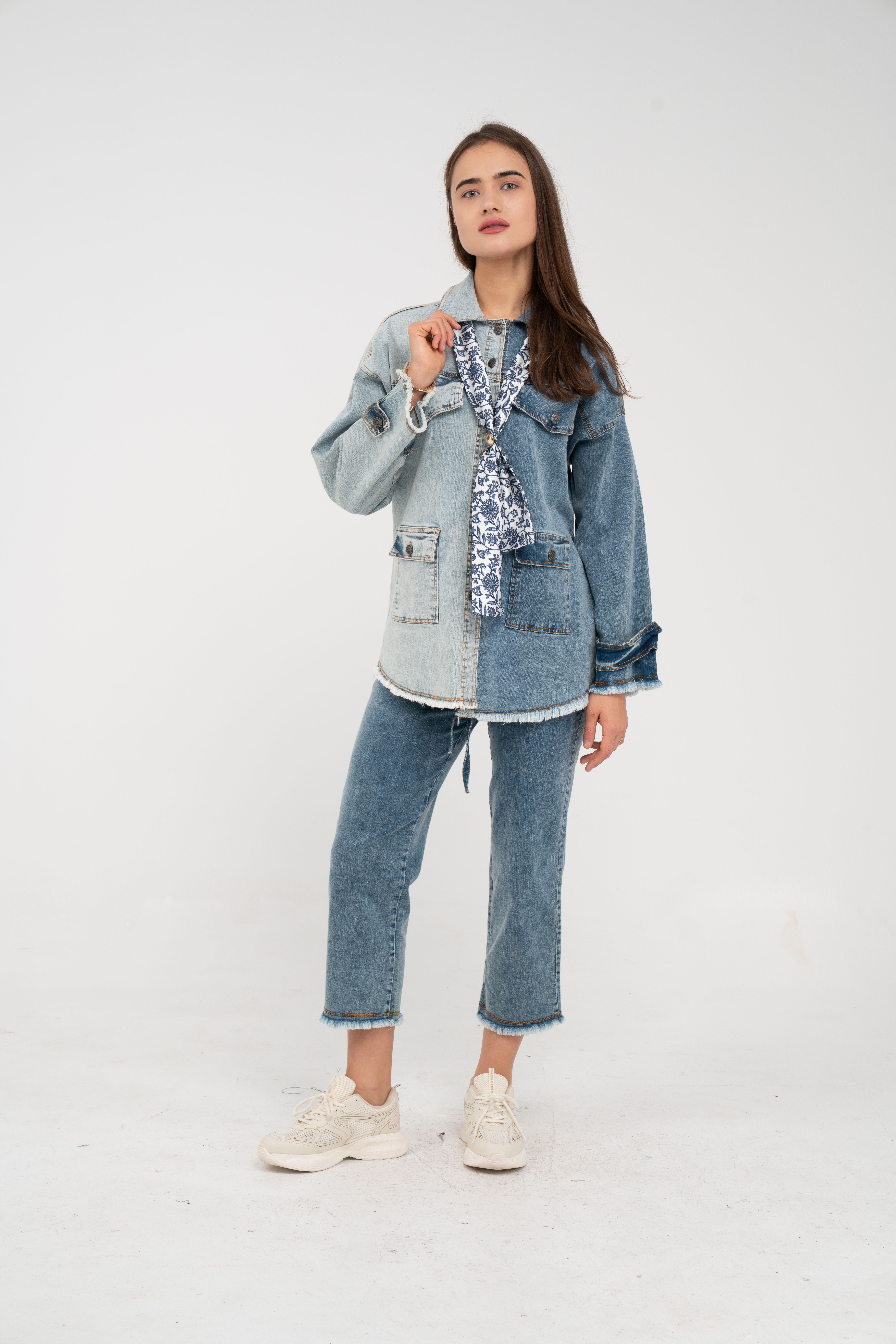 Modern kesimiyle dikkat çeken denim takım, şehir stilinin en güçlü temsilcilerinden biri. Kuşaklı kot ceket ve rahat kalıplı mom jean pantolon, birlikte zahmetsiz şıklık sunar. Günlük kullanımda hem rahatlık hem tarz arayan kadınlar için mükemmel bir tercih. Spor ayakkabılarla kombinleyerek enerjik bir görünüm elde edebilirsin.