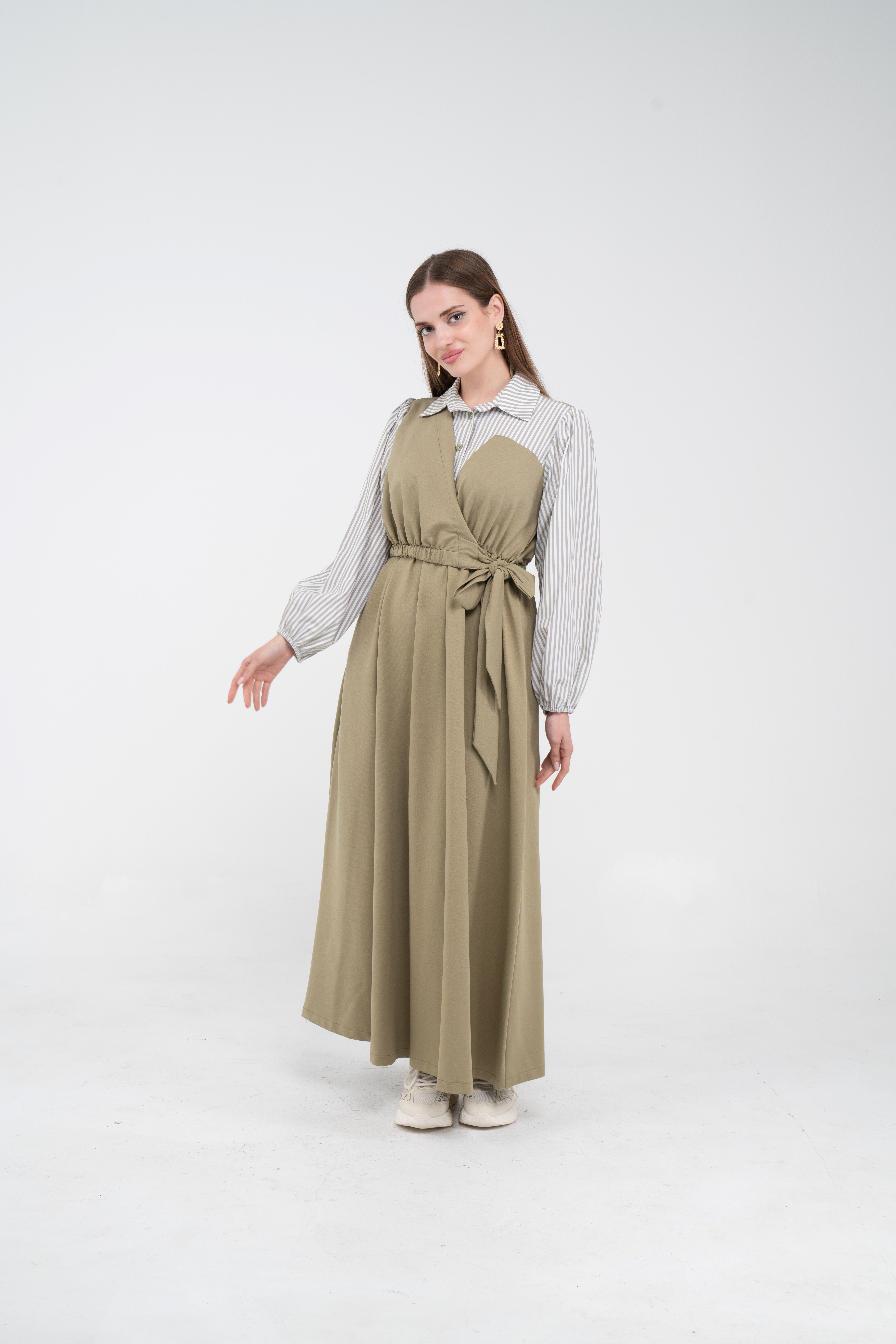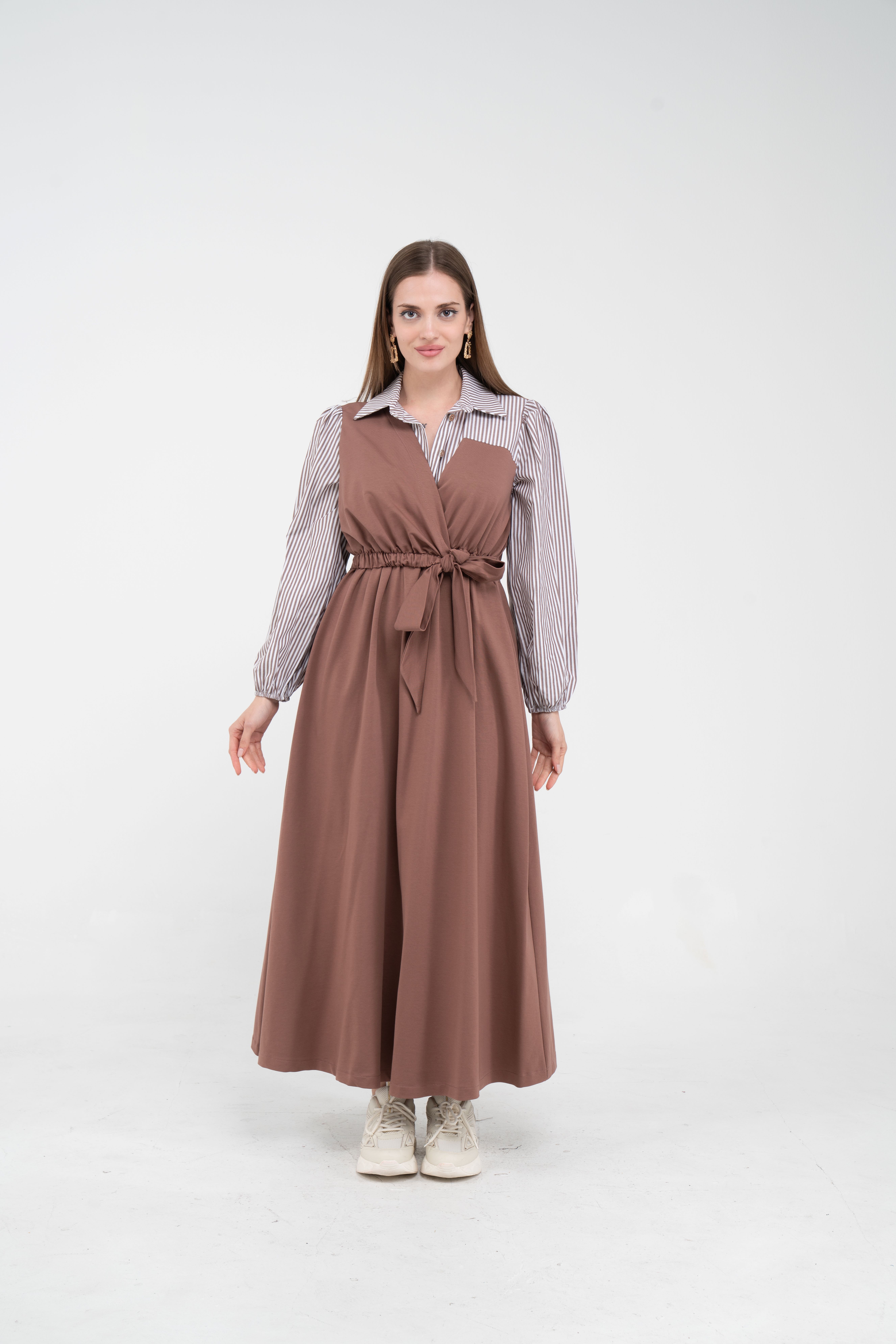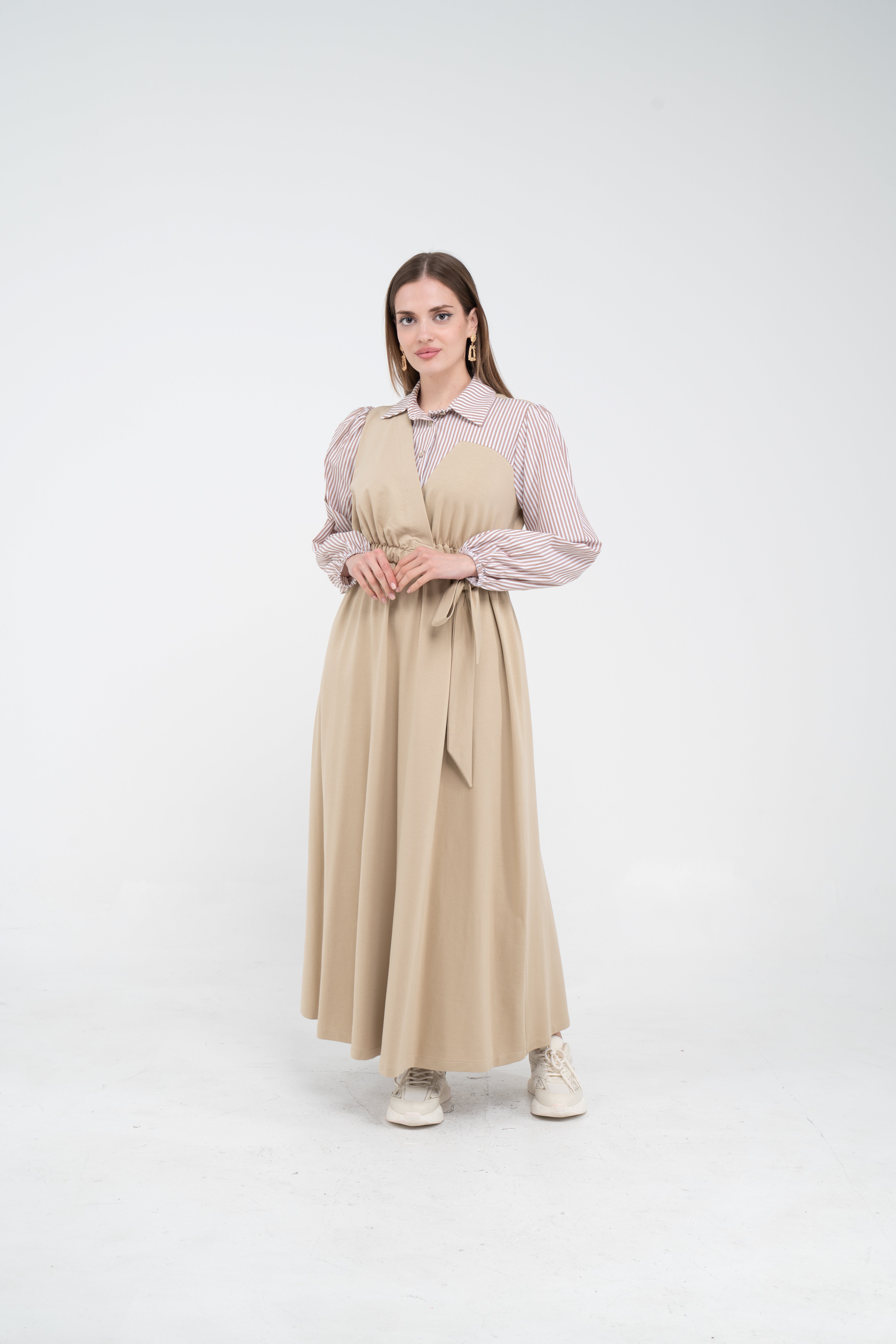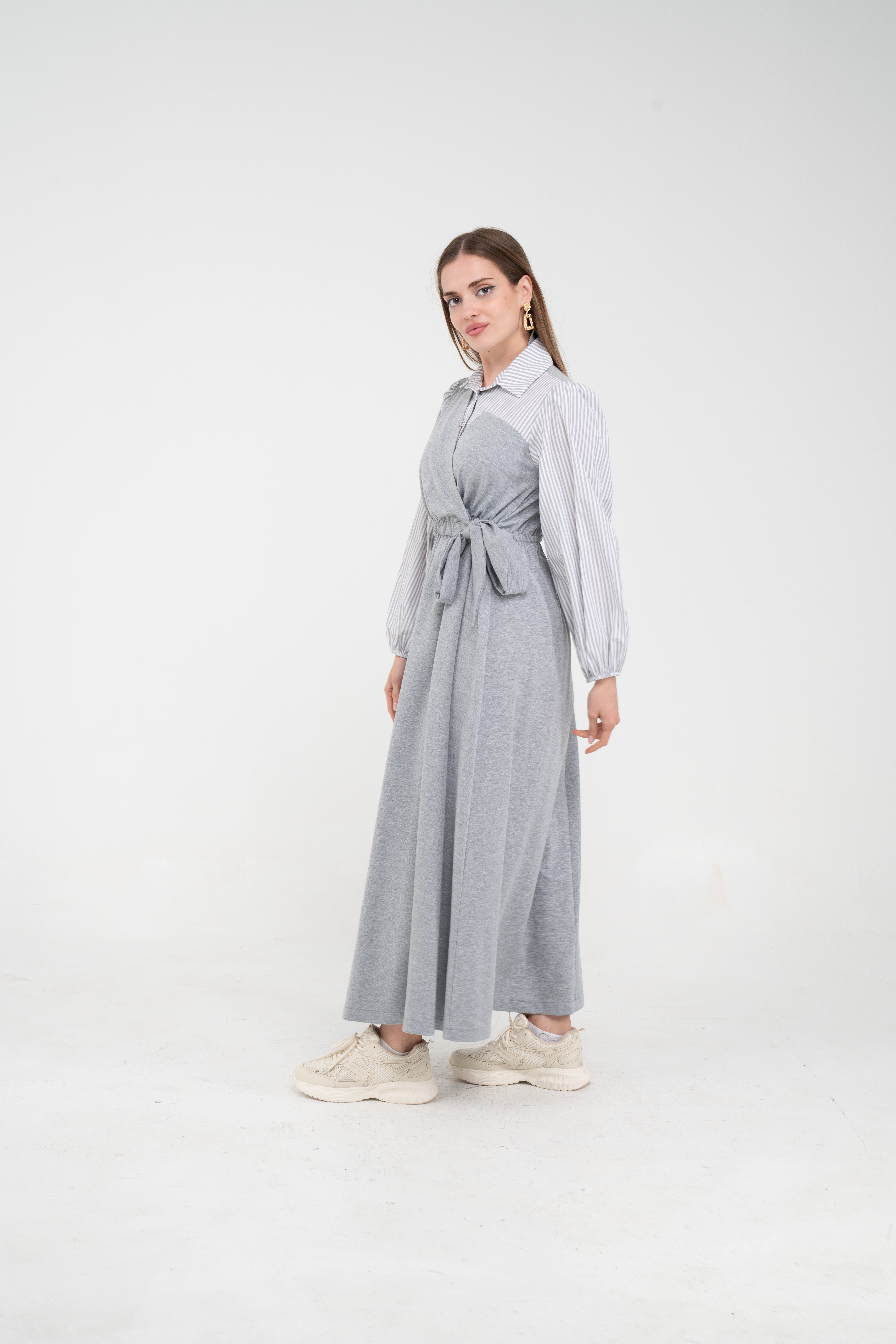 Model: Kuşaklı, gömlek yaka detaylı elbise