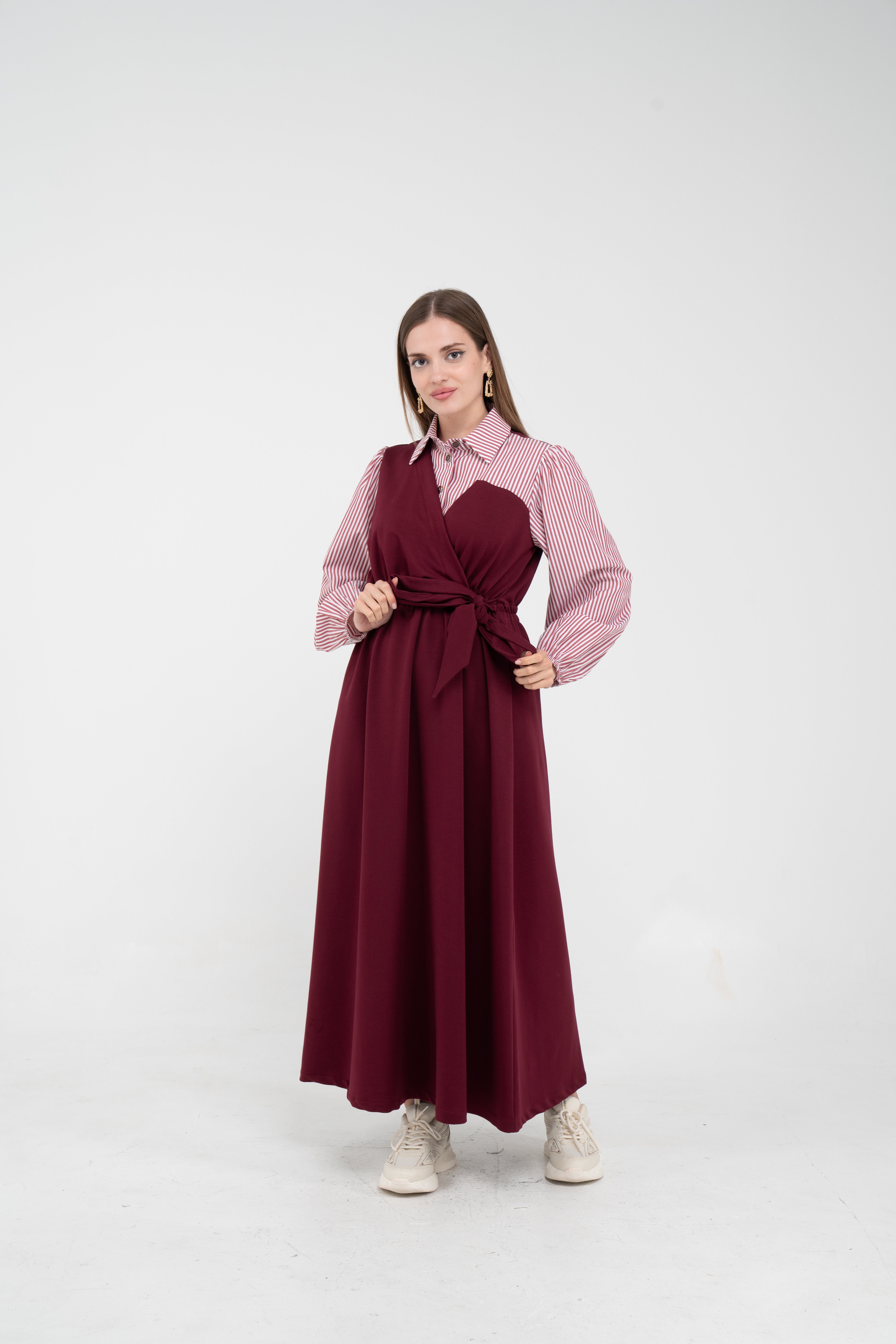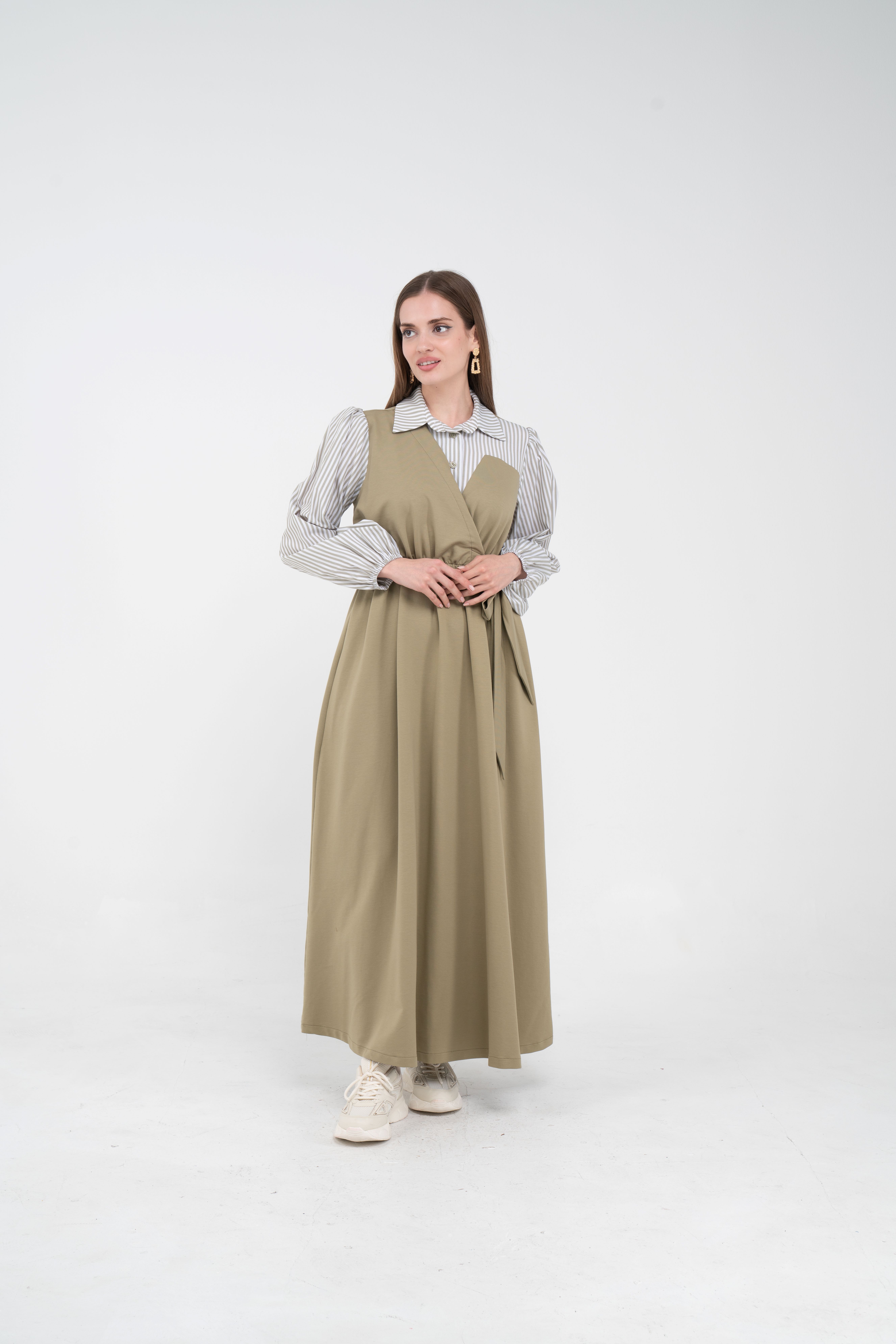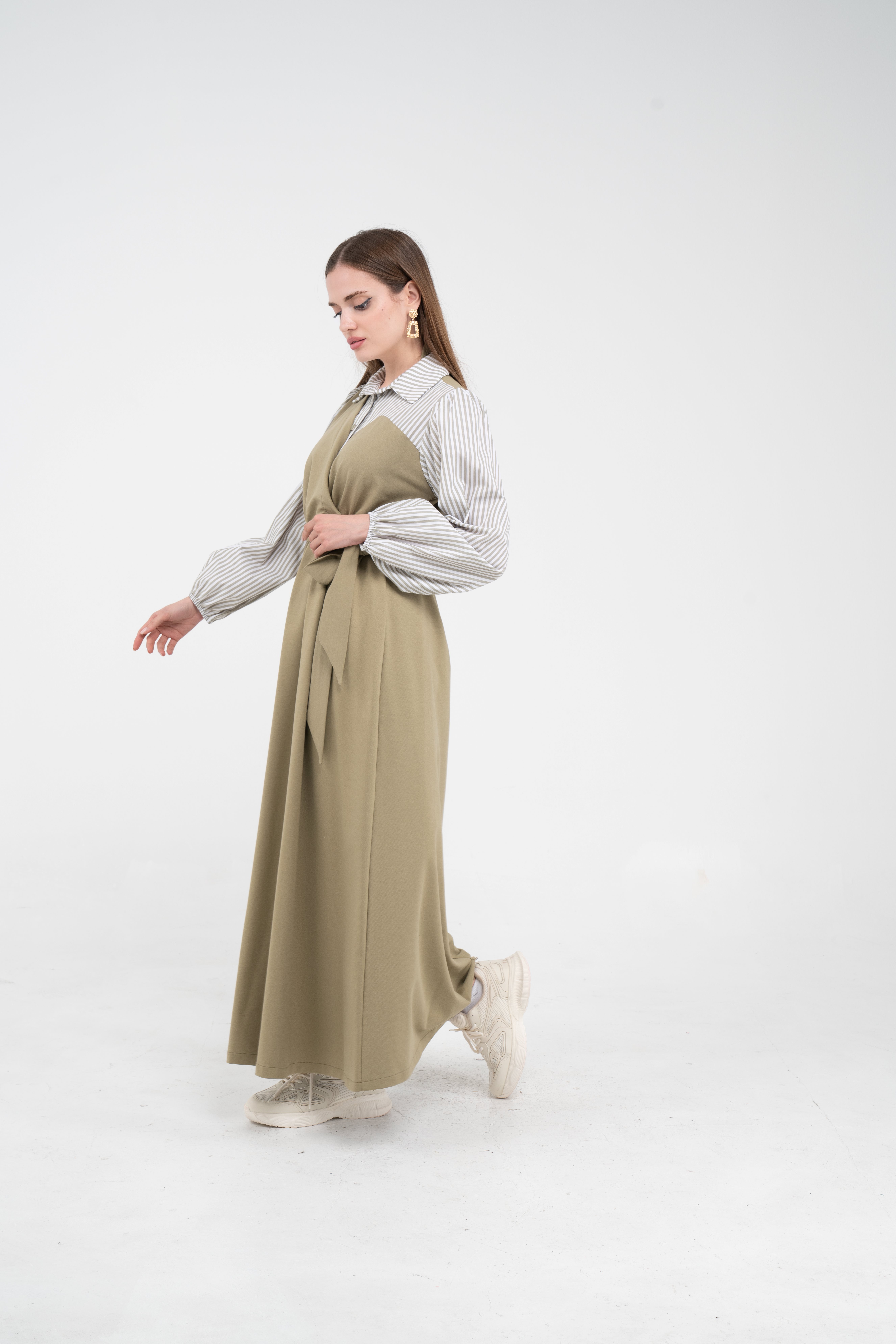 Model: Kuşaklı, gömlek yaka detaylı elbise