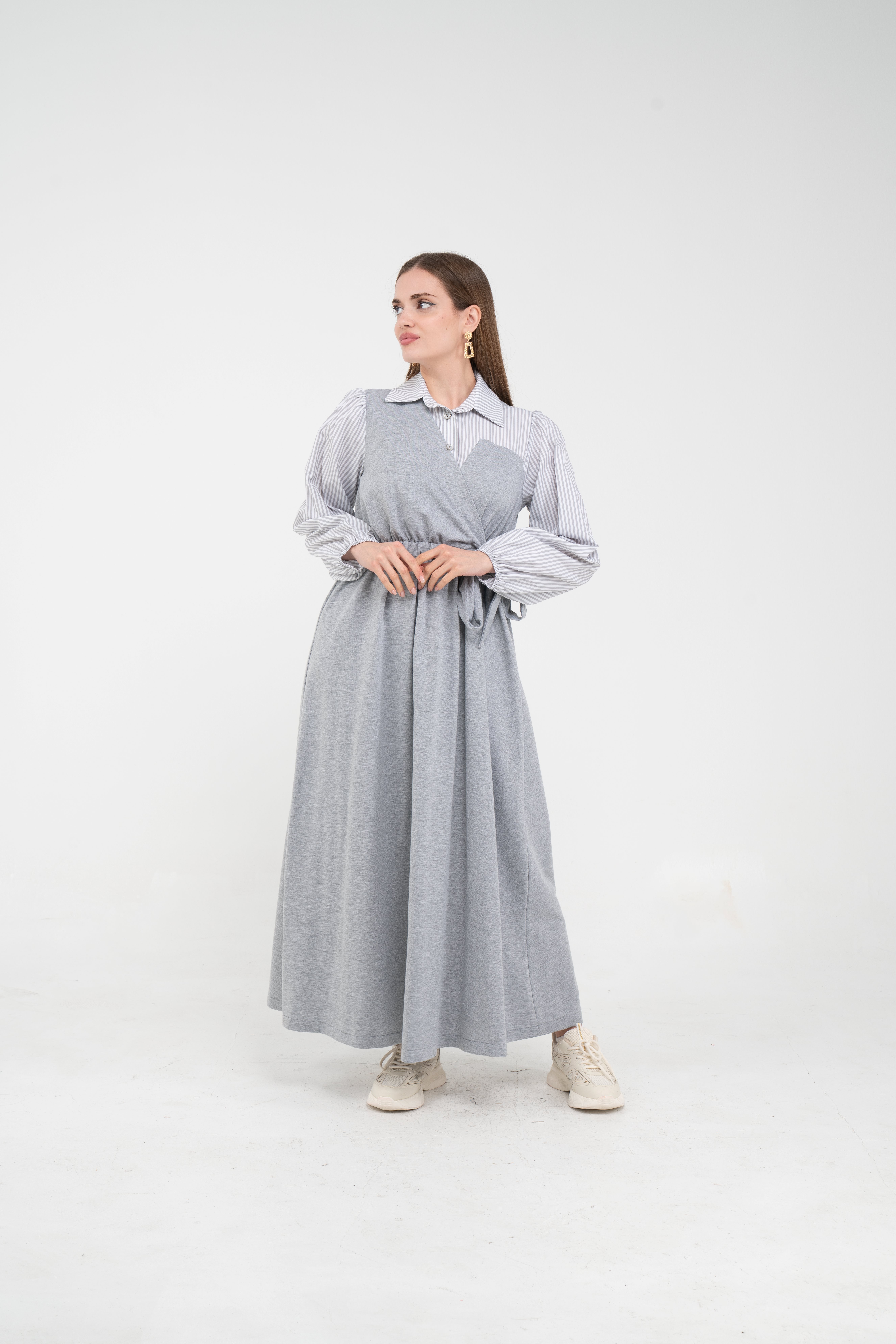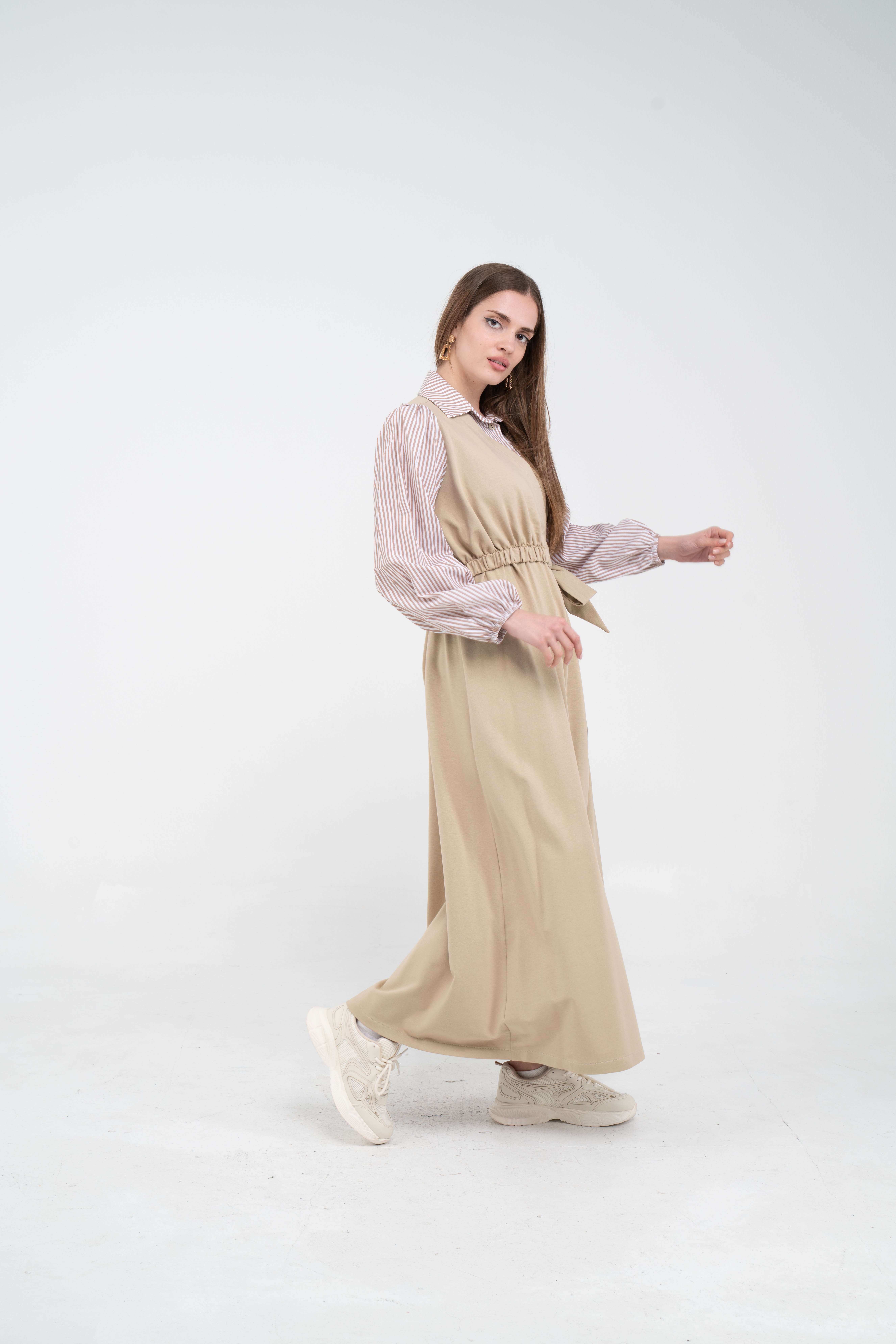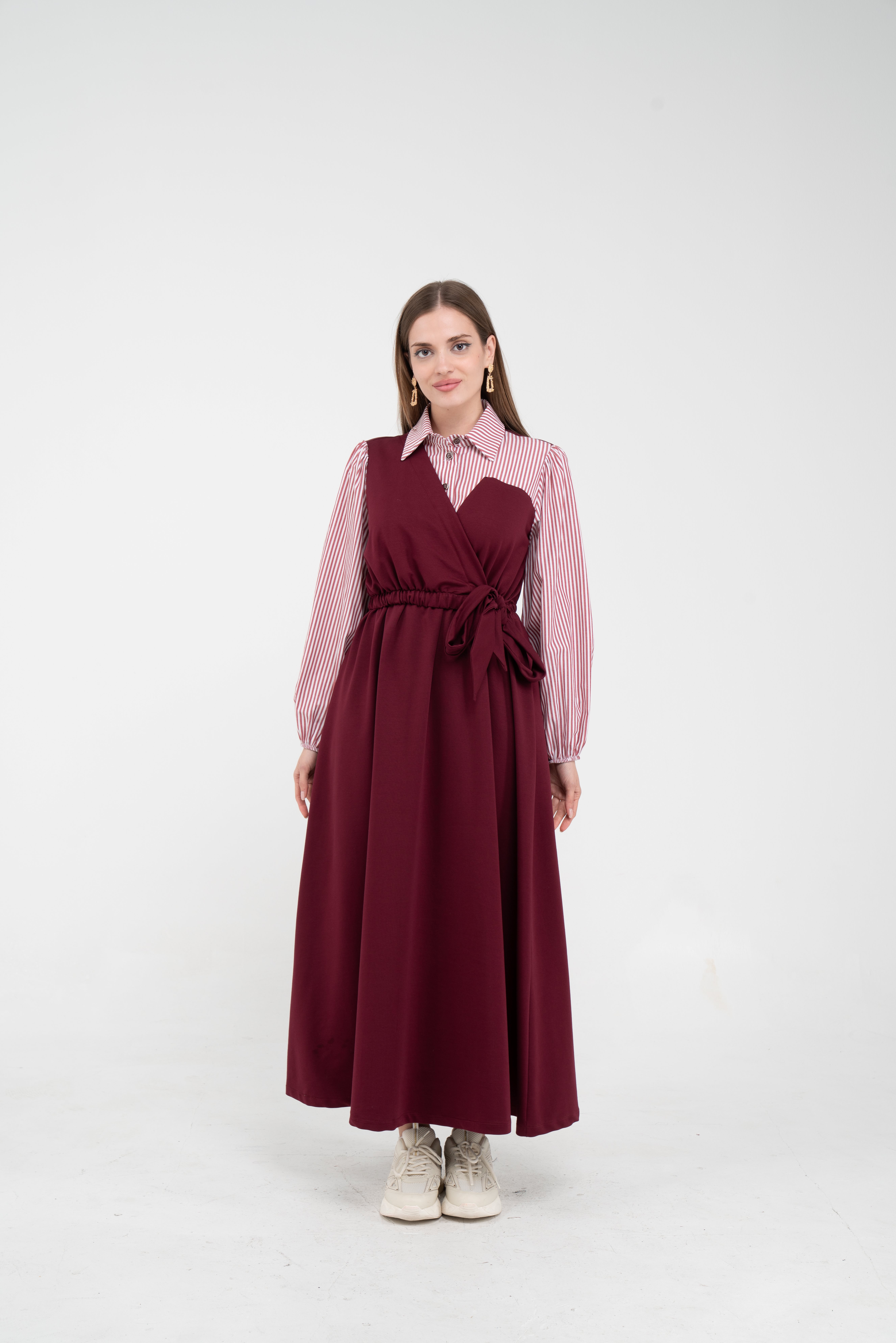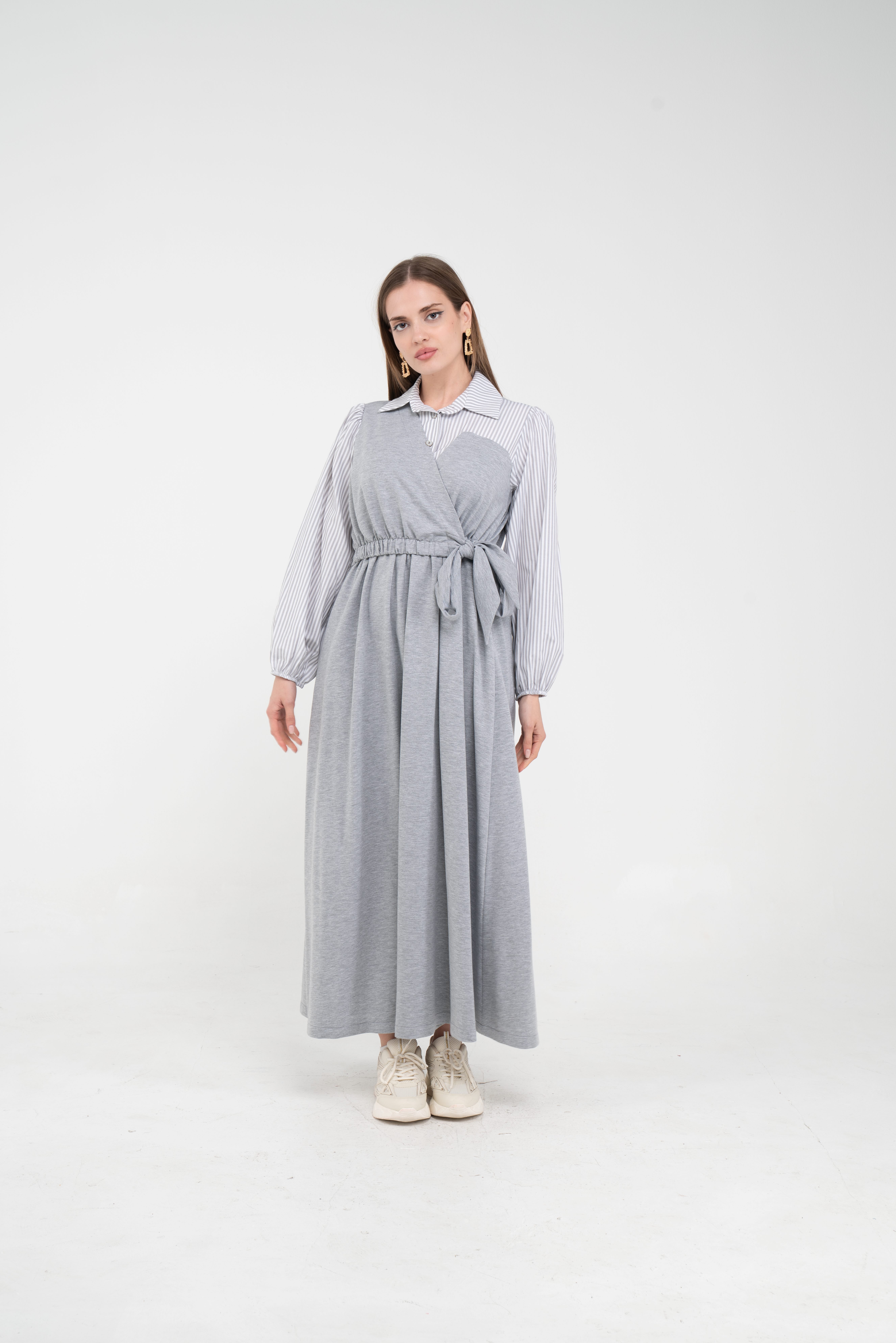 Model: Kuşaklı, gömlek yaka detaylı elbise