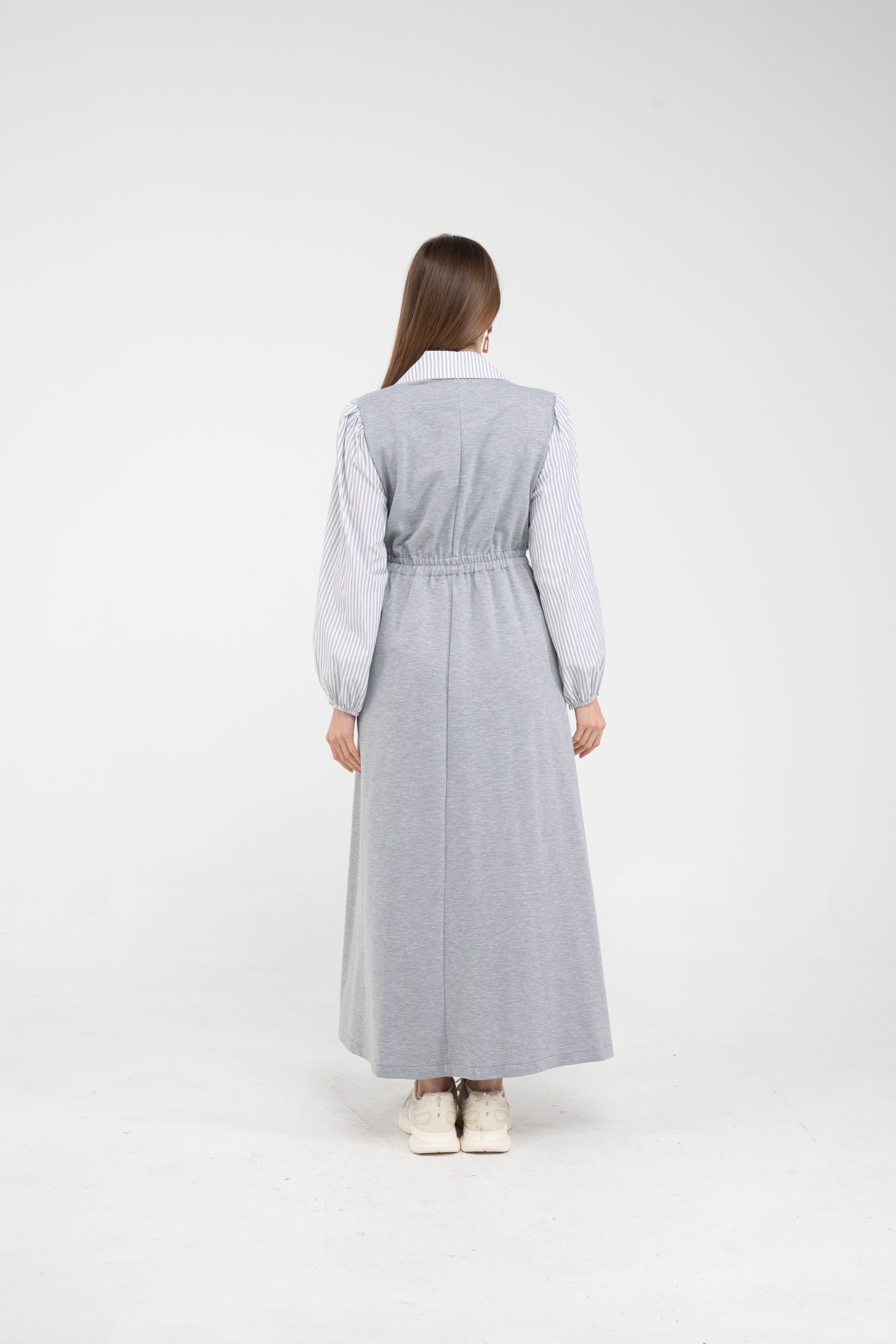 Gelince Haber VerBalon kollu çizgili gömlek üst detayı, klasik havasını güçlendirirken, bel kısmındaki kuşak detayı zarif bir siluet oluşturur.