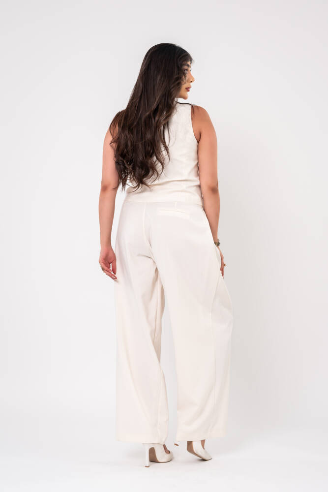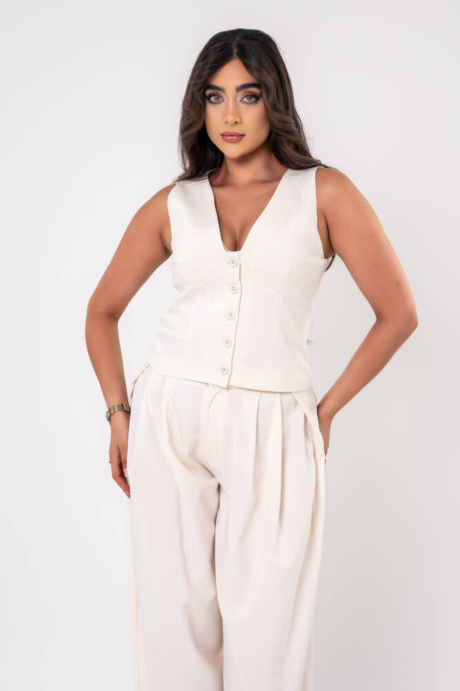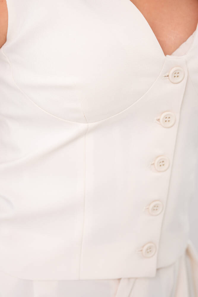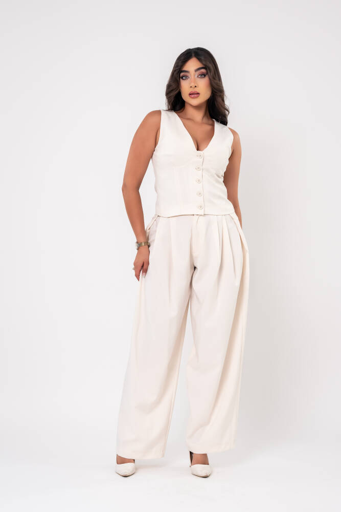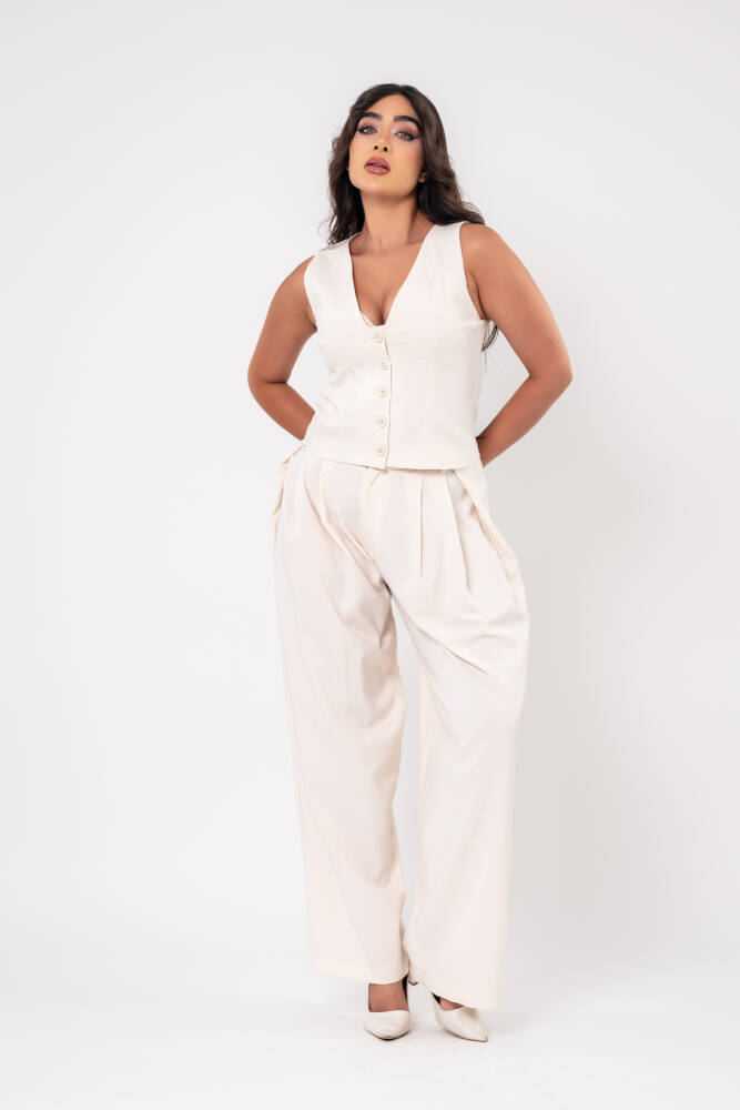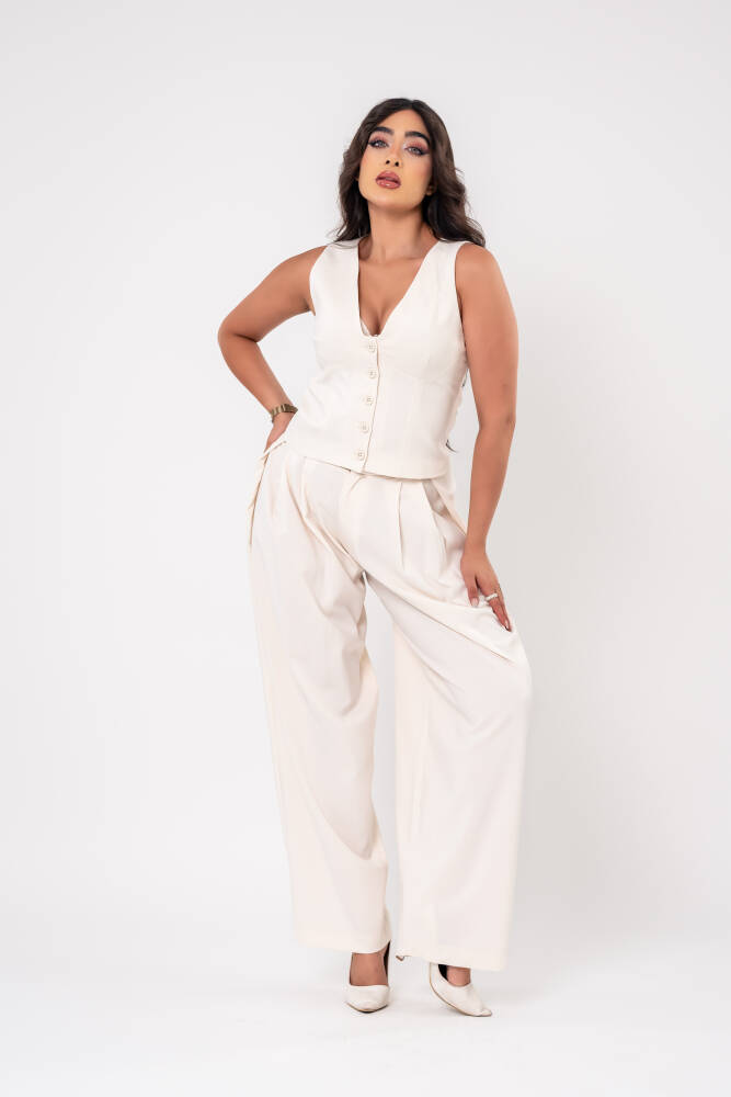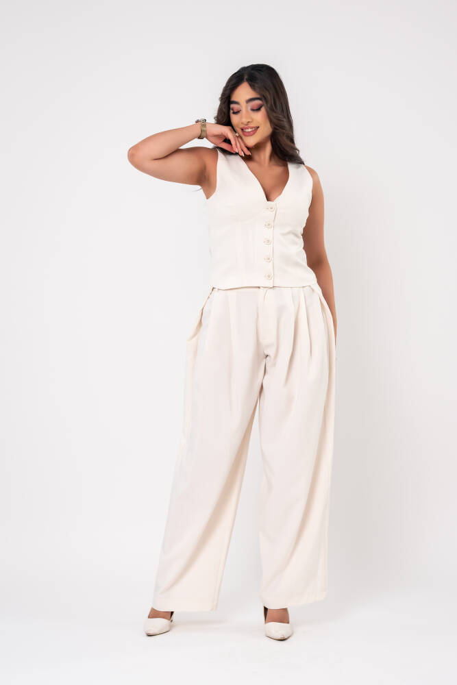 Düğmeli Pile Detaylı Palazzo Pantolon Yelek Takım TKM16009