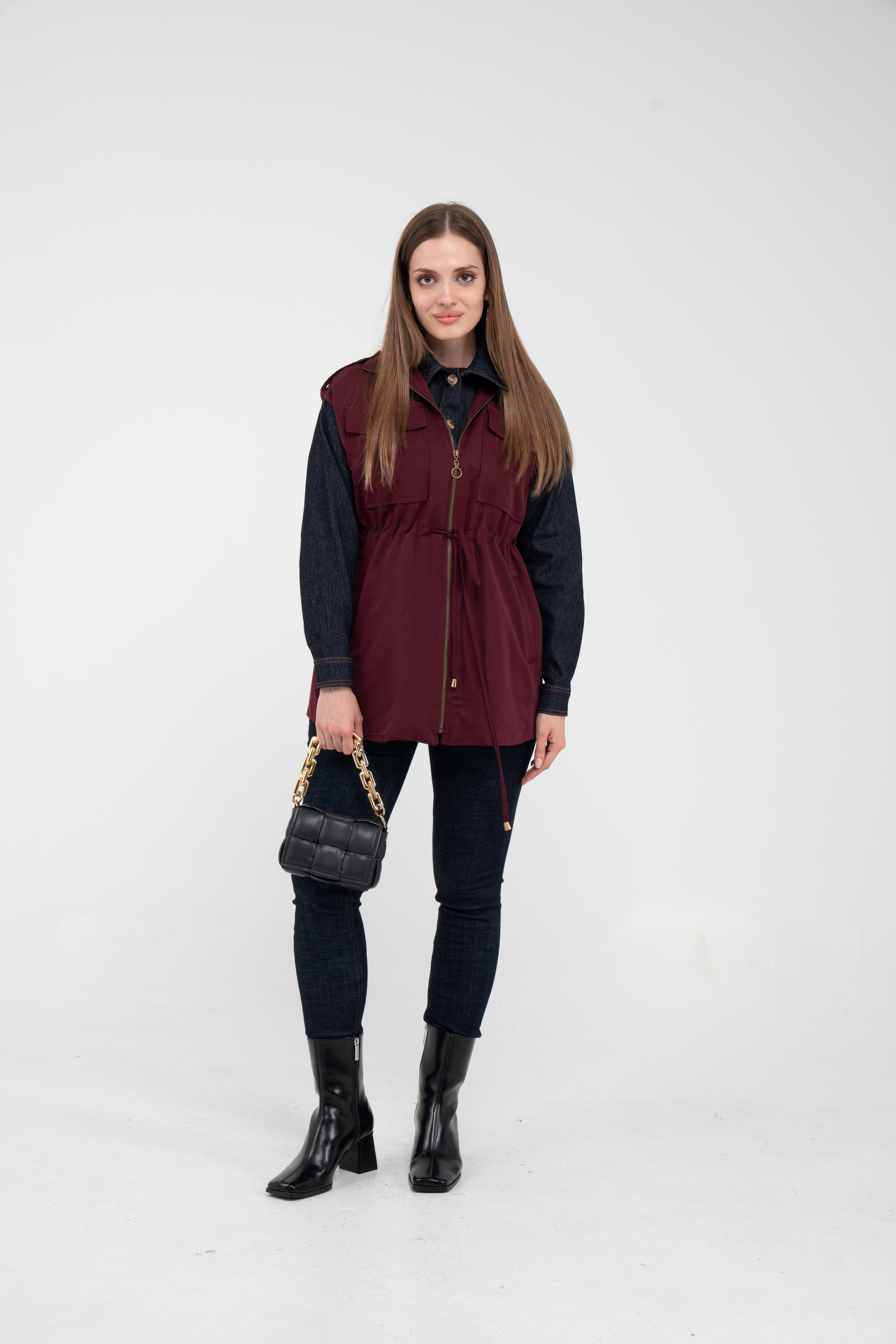 Gelince Haber VerSportif ve modern çizgileri bir araya getiren bu kadın yelek, günlük kullanım için hem şık hem de fonksiyonel bir seçenek sunar. Bel kısmındaki ayarlanabilir büzgü detayı, vücut formunu daha zarif gösterirken rahat bir kalıp sağlar.