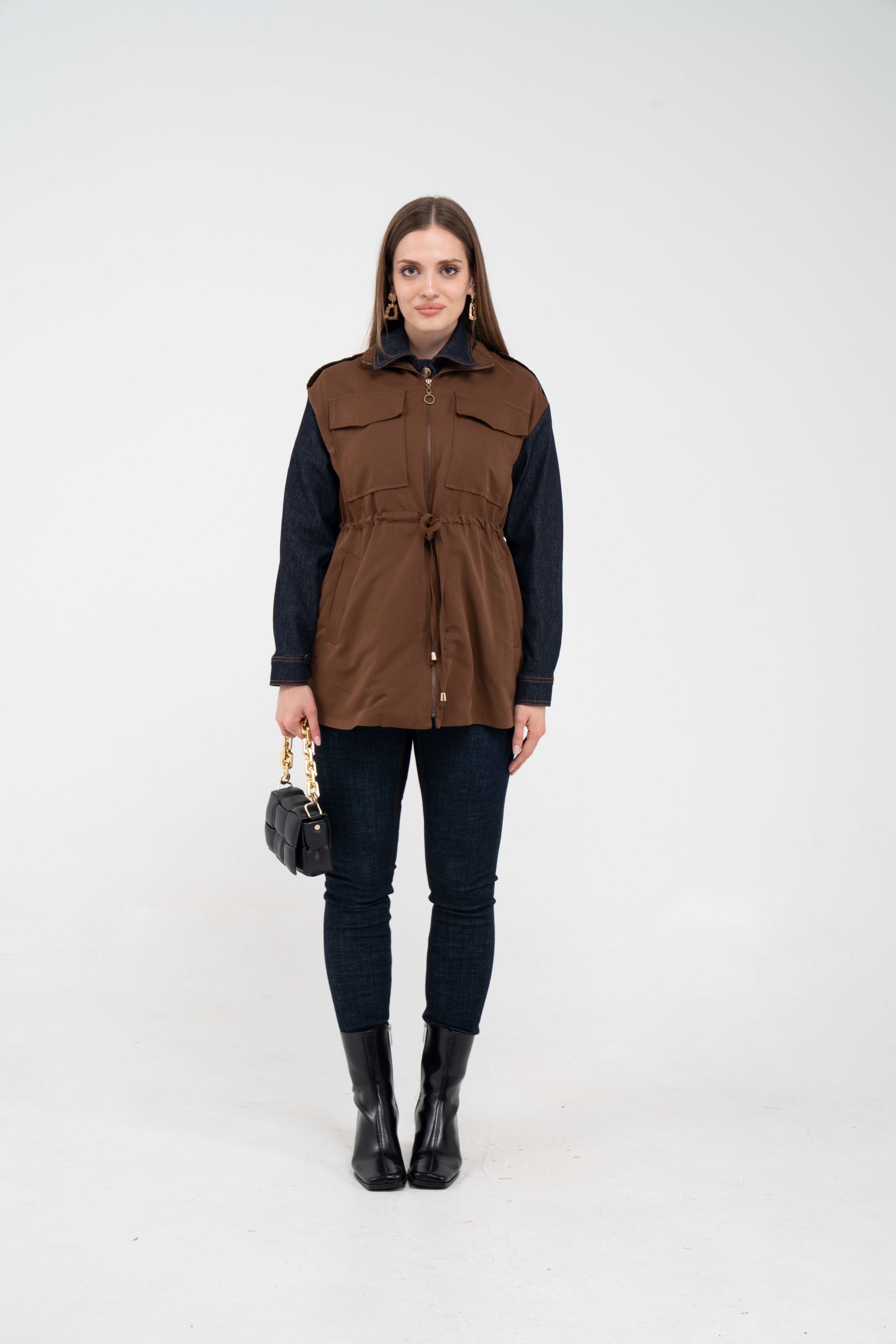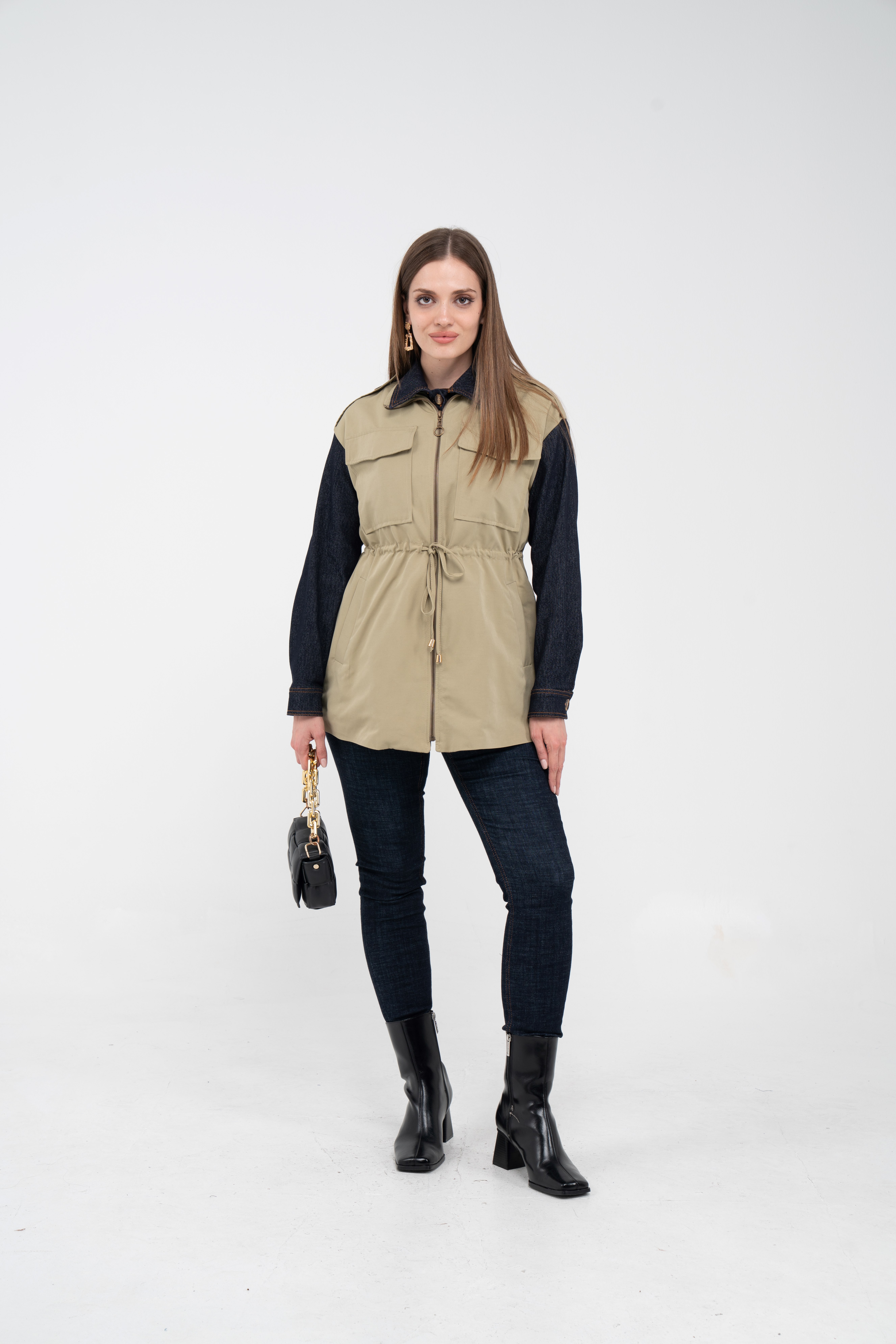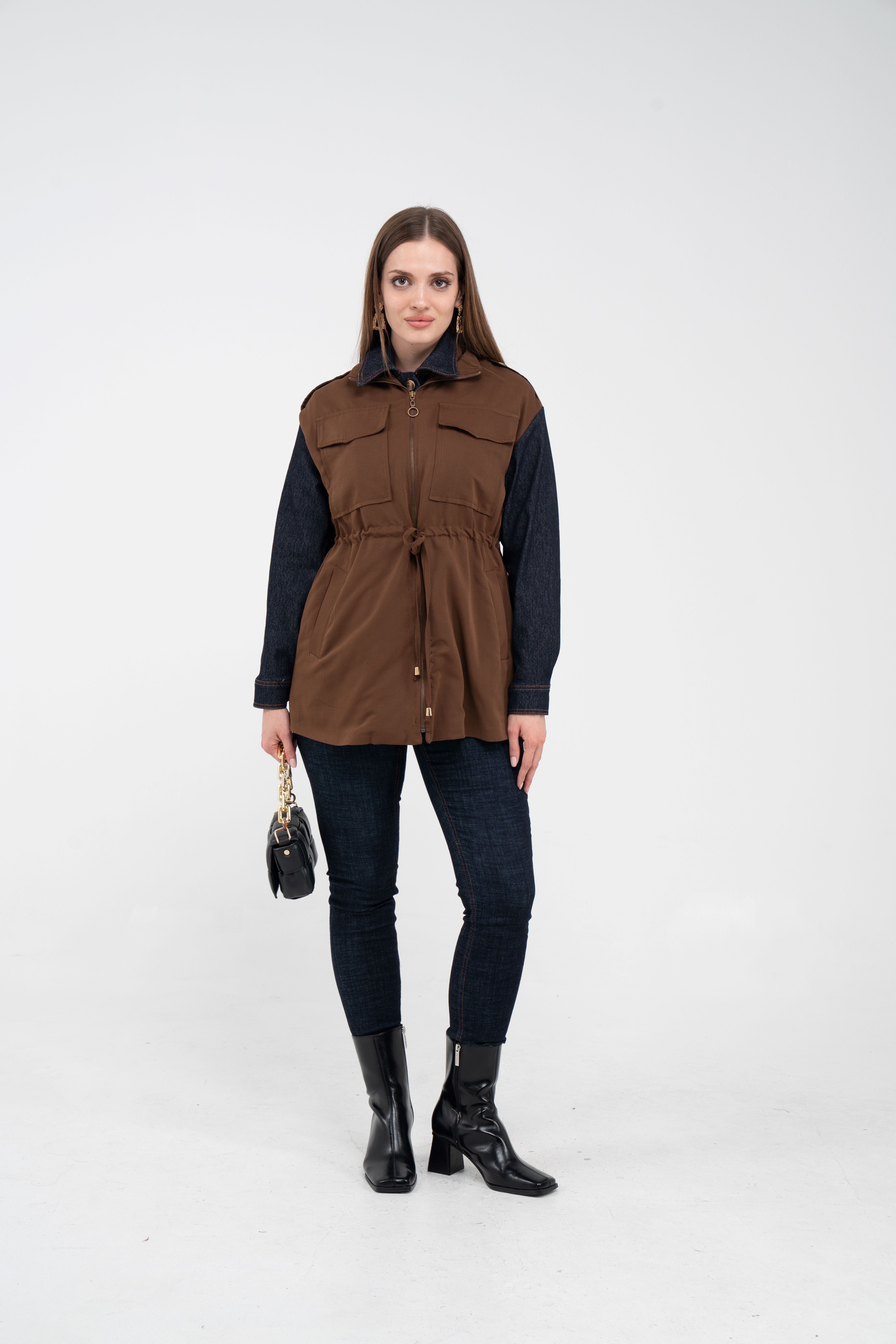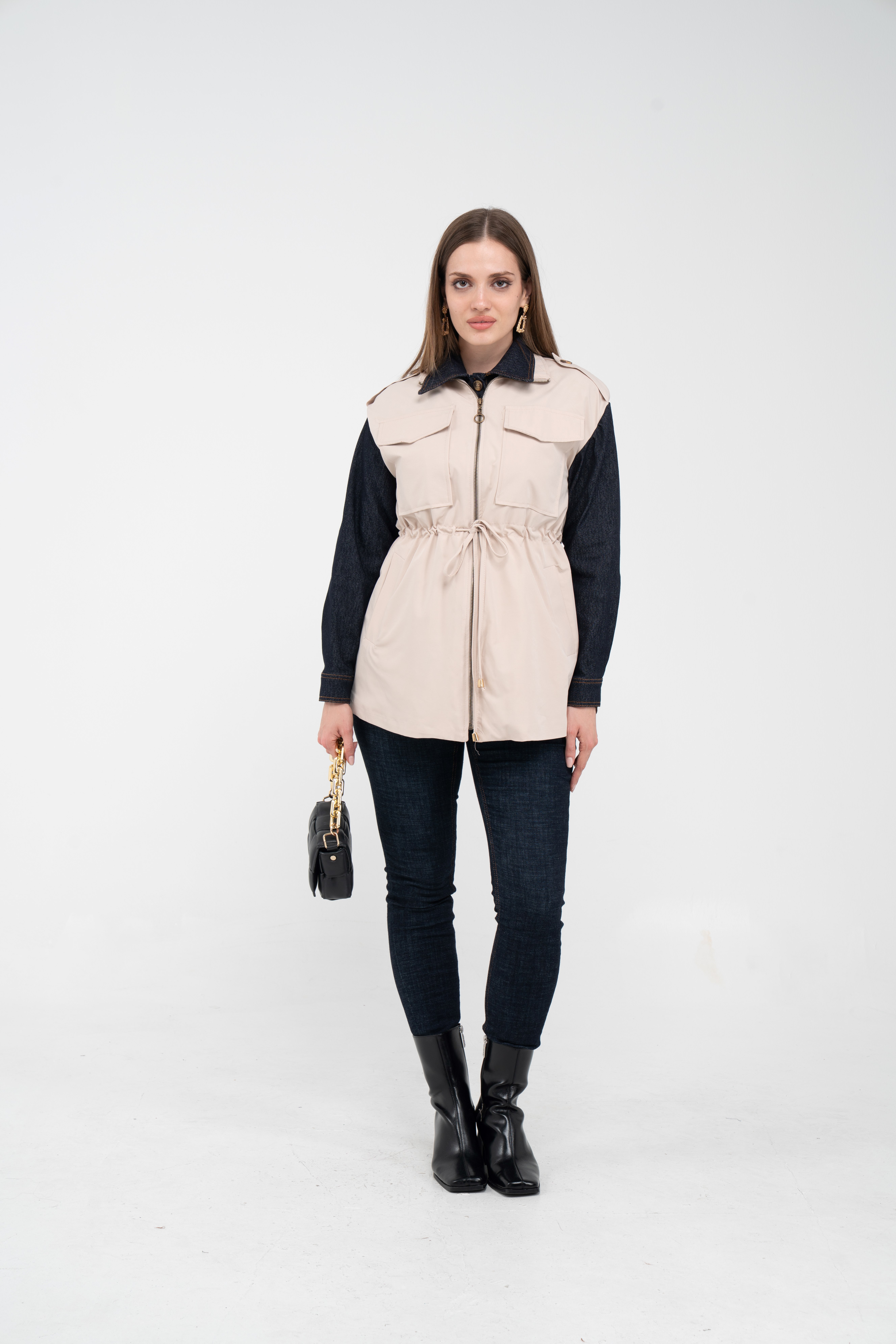 Fermuarlı tasarımı pratik kullanım sunarken geniş cepleri günlük ihtiyaçlar için ekstra kolaylık sağlar. Mevsim geçişlerinde denim, triko ve basic parçalarla rahatlıkla kombinlenebilecek çok yönlü bir dış giyim alternatifidir.