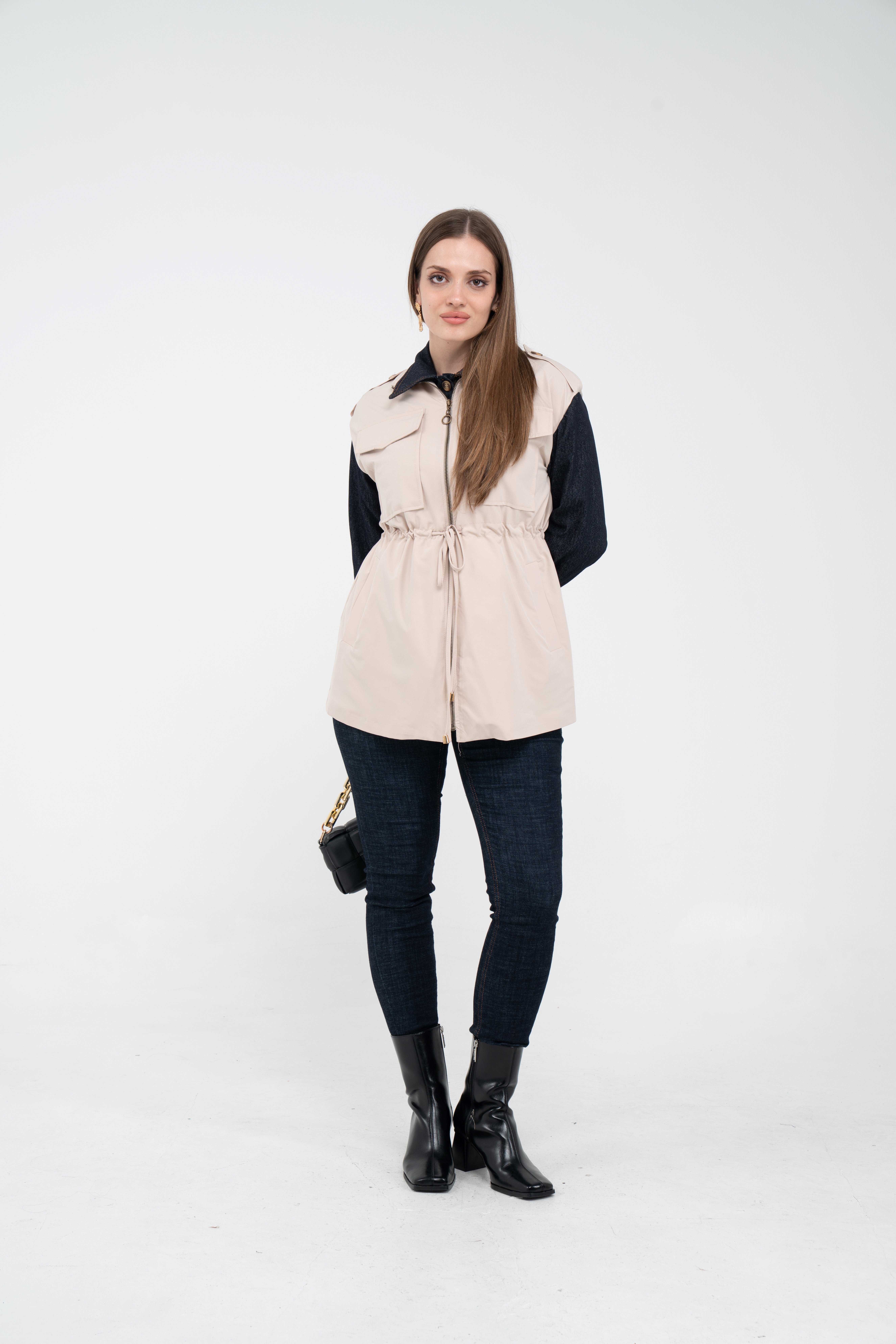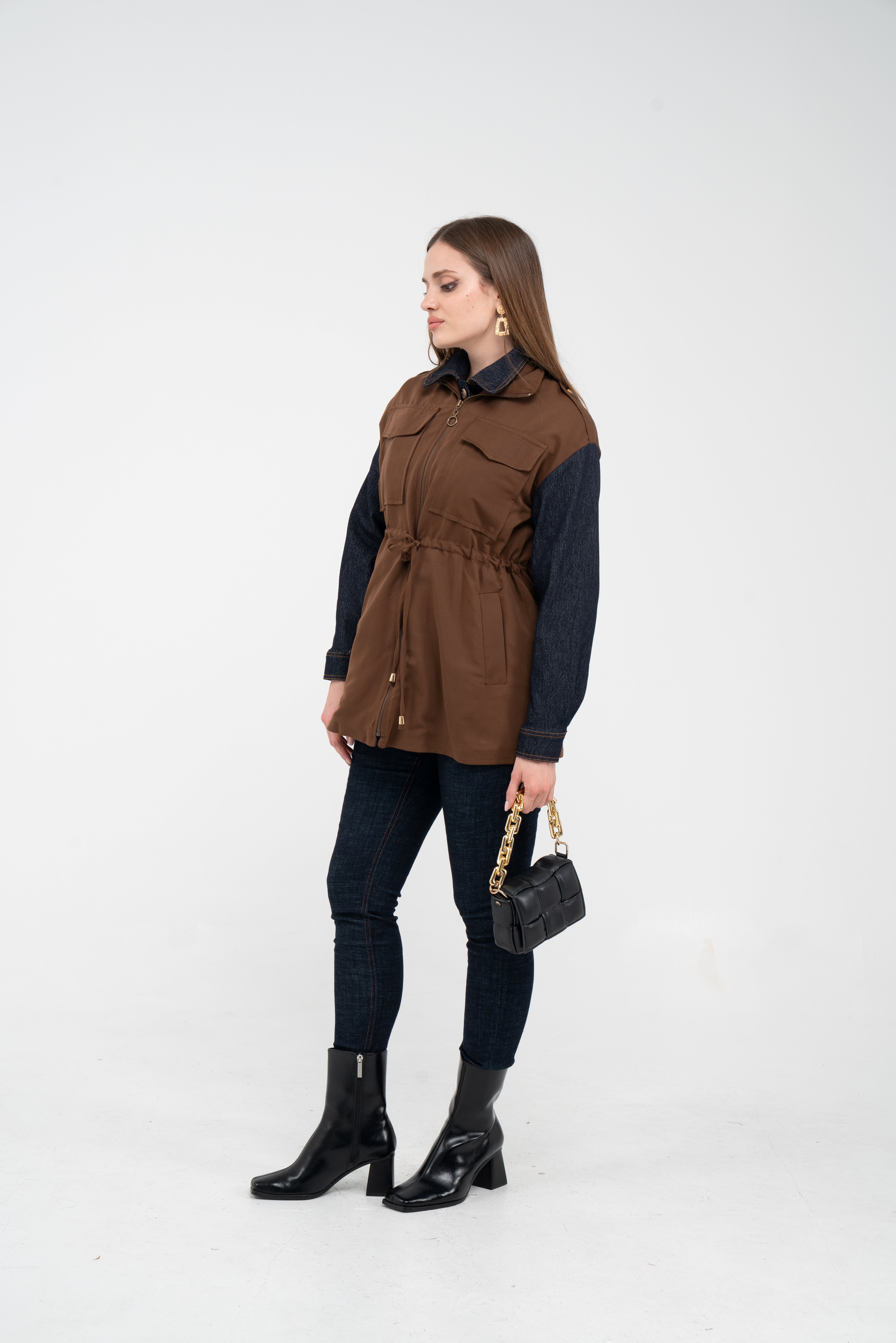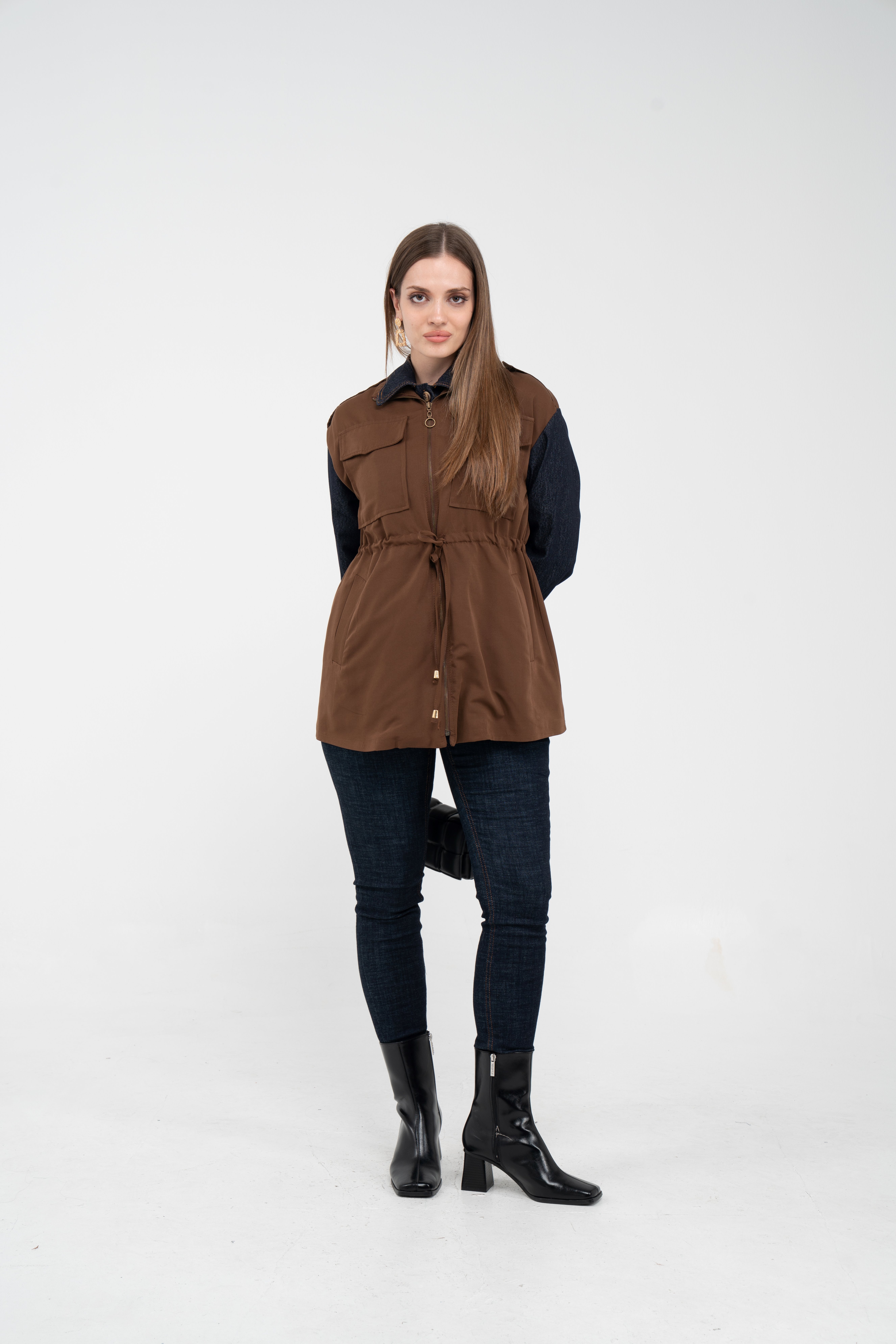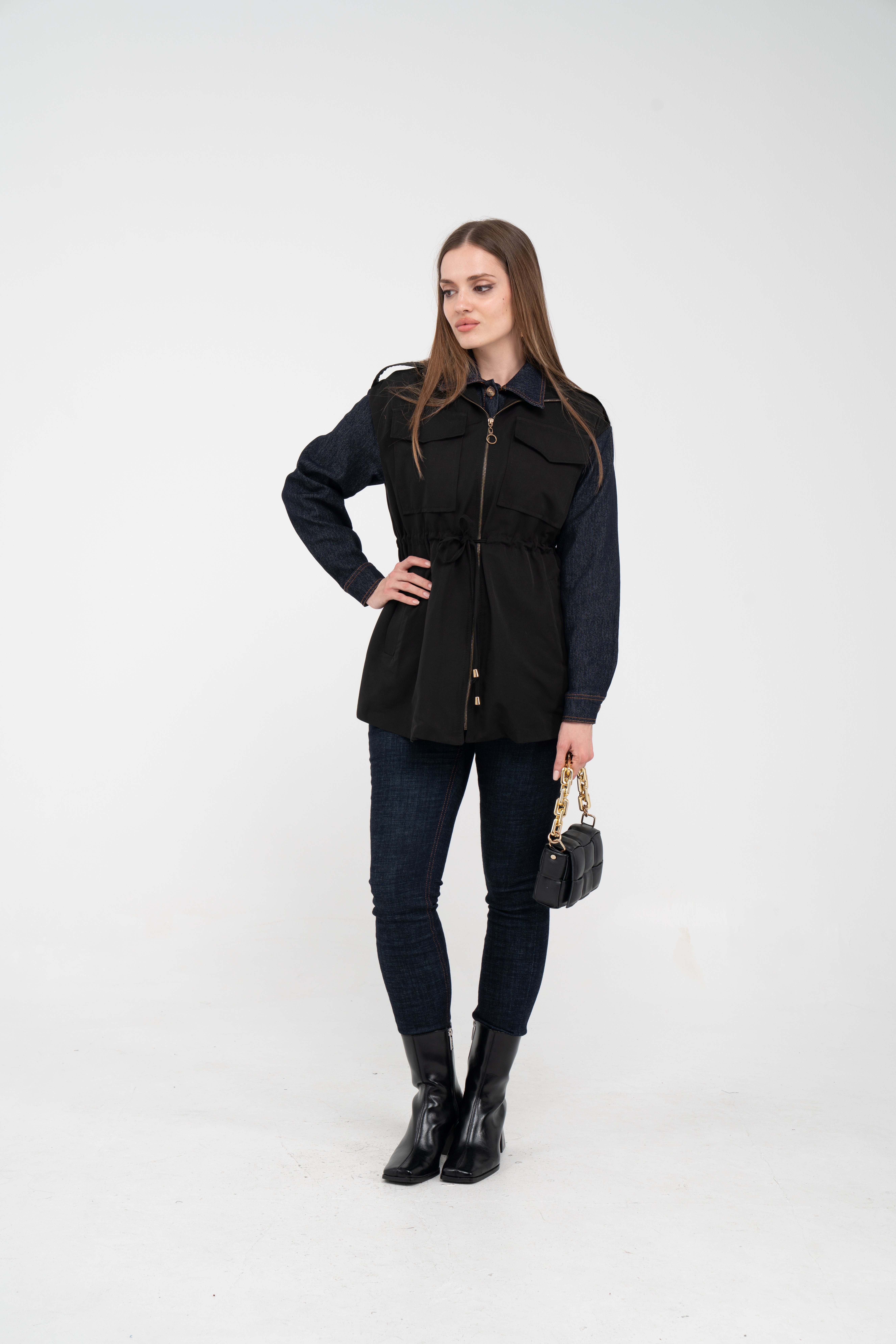 Fermuarlı tasarımı pratik kullanım sunarken geniş cepleri günlük ihtiyaçlar için ekstra kolaylık sağlar. Mevsim geçişlerinde denim, triko ve basic parçalarla rahatlıkla kombinlenebilecek çok yönlü bir dış giyim alternatifidir.