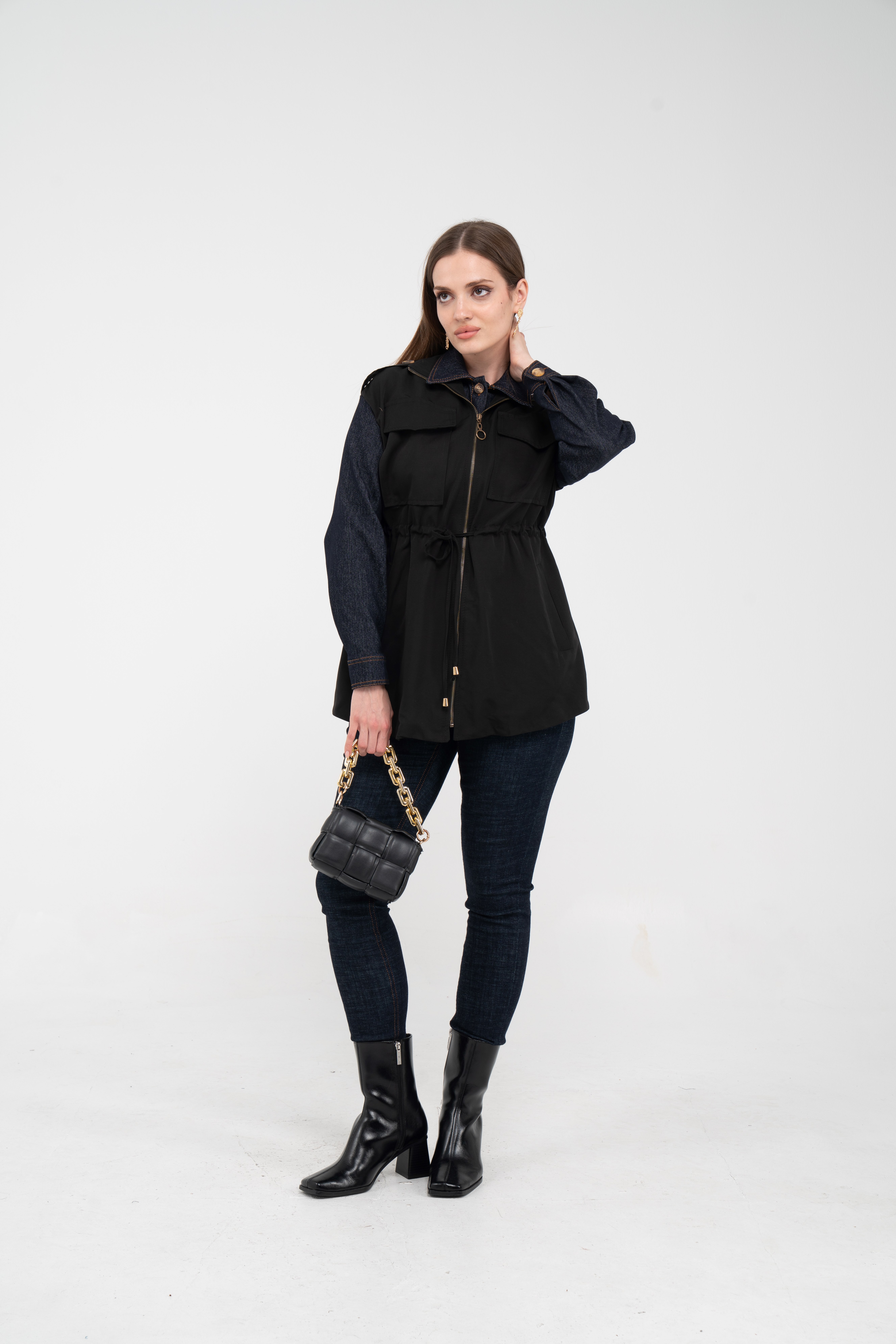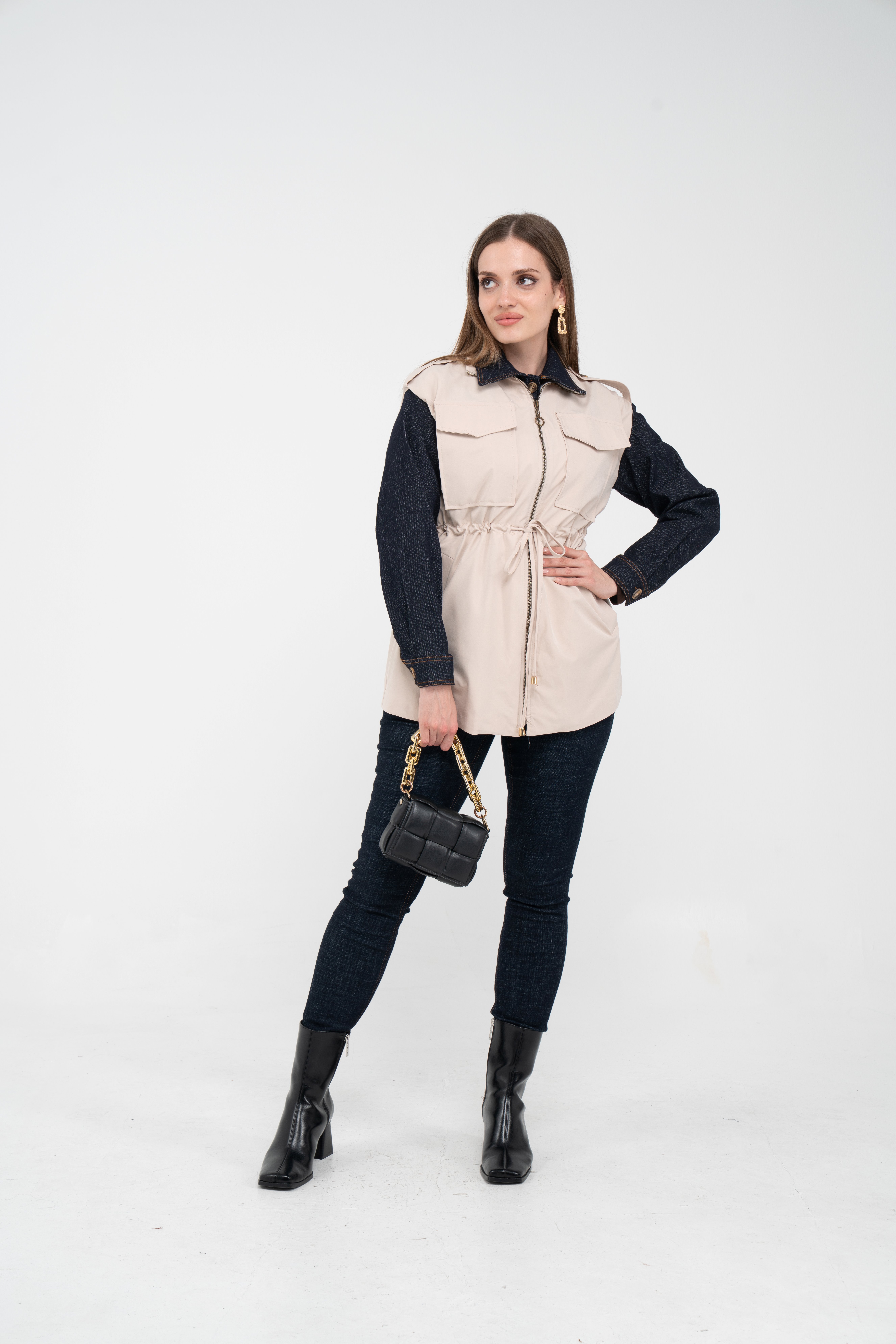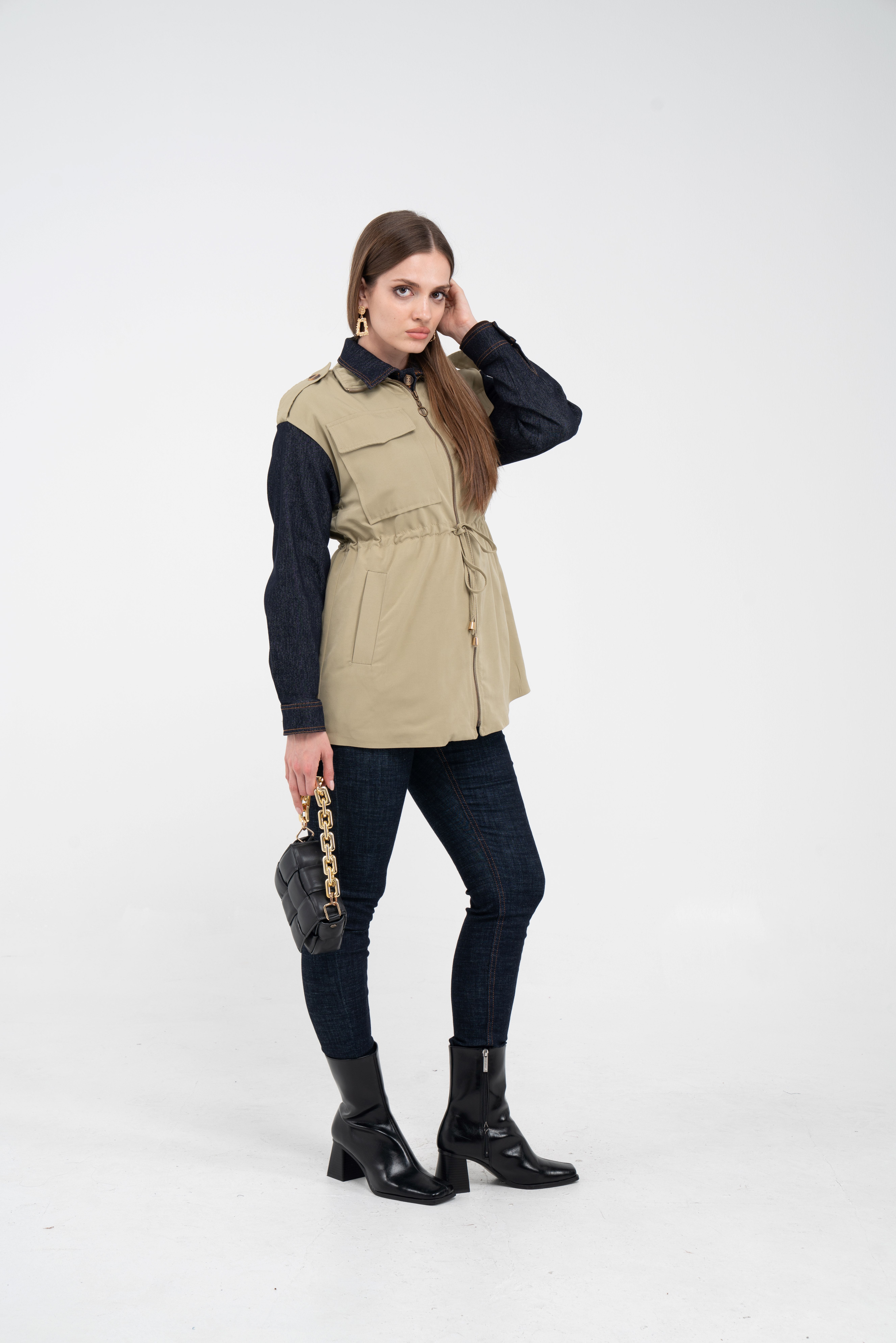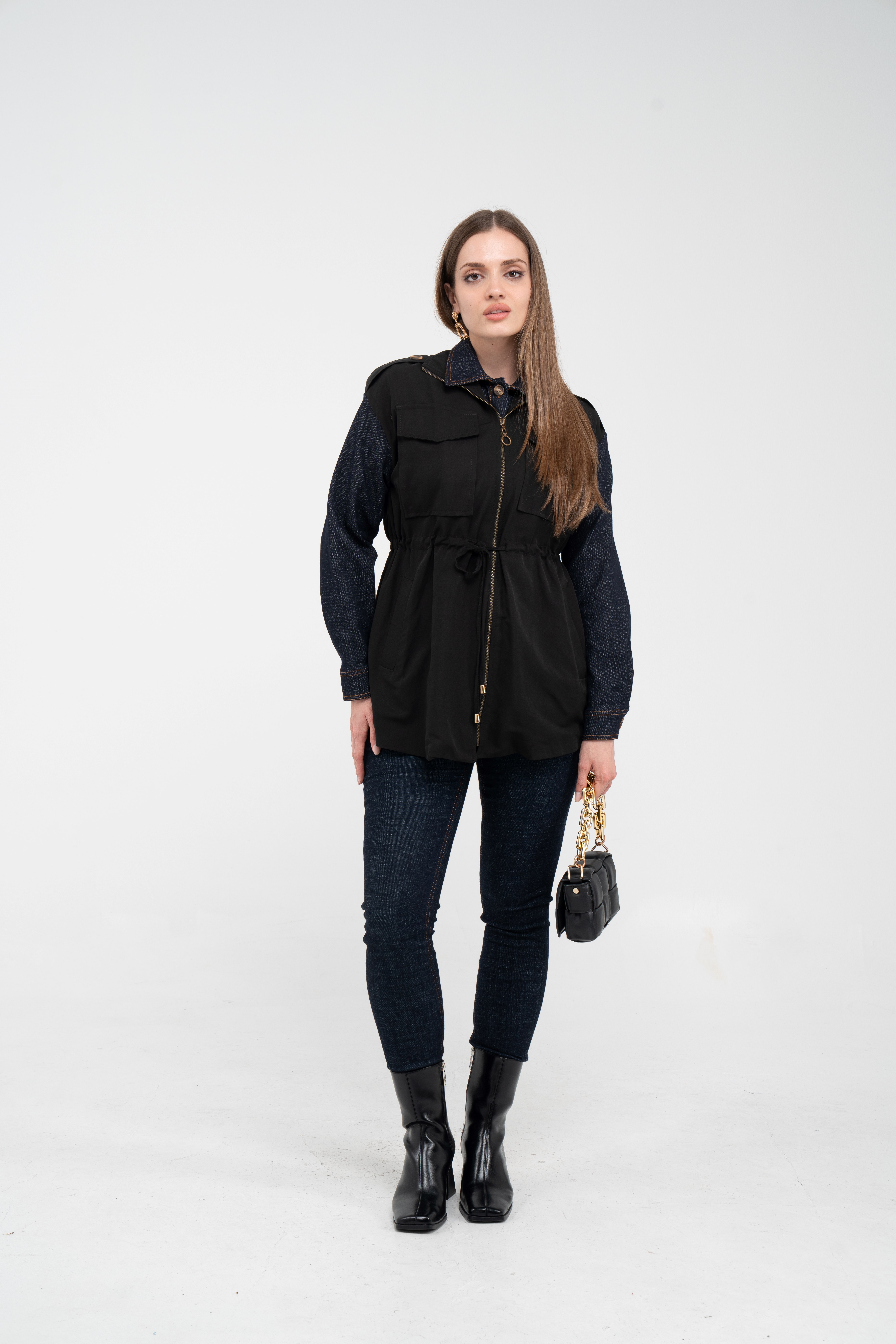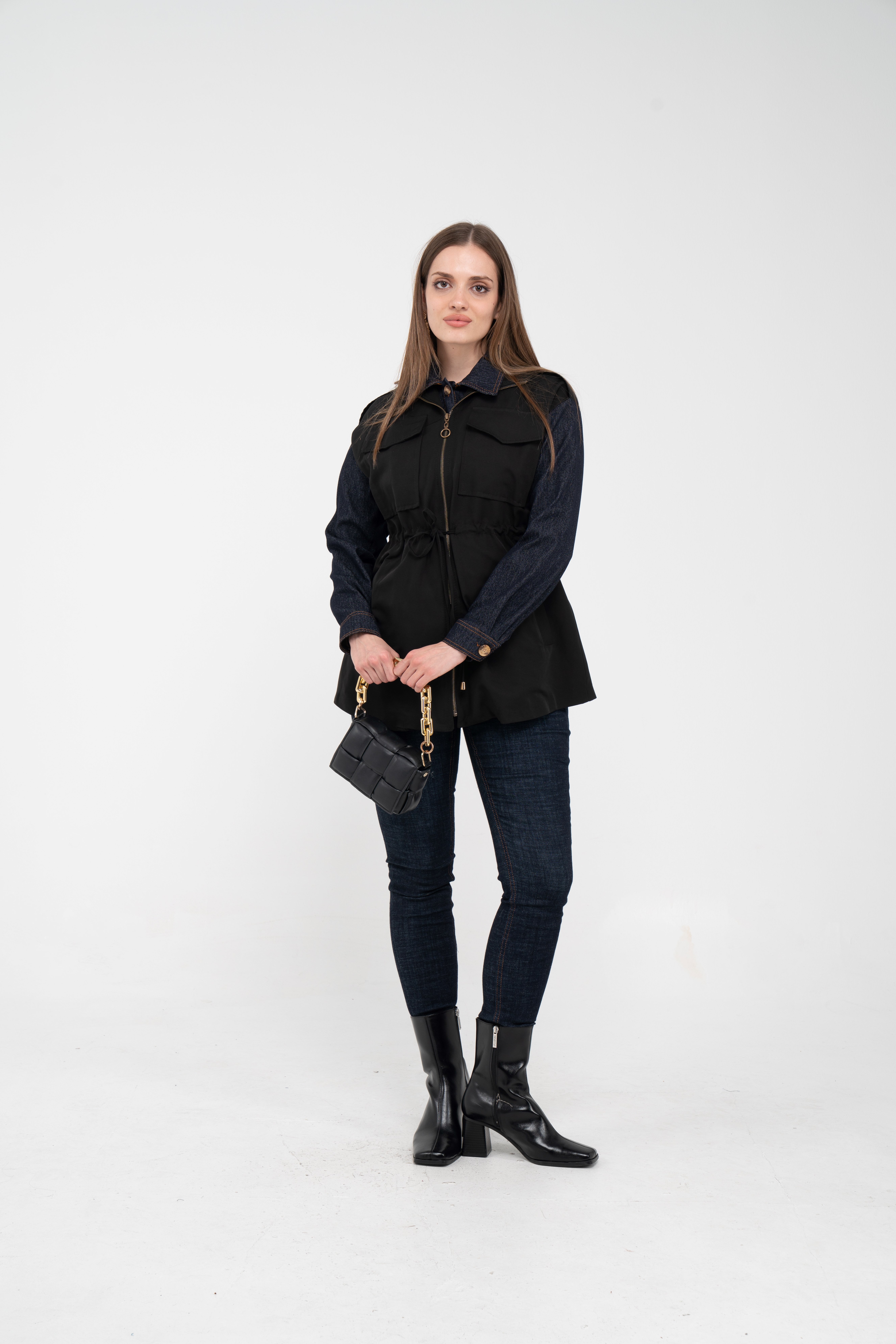 Fermuarlı tasarımı pratik kullanım sunarken geniş cepleri günlük ihtiyaçlar için ekstra kolaylık sağlar. Mevsim geçişlerinde denim, triko ve basic parçalarla rahatlıkla kombinlenebilecek çok yönlü bir dış giyim alternatifidir.