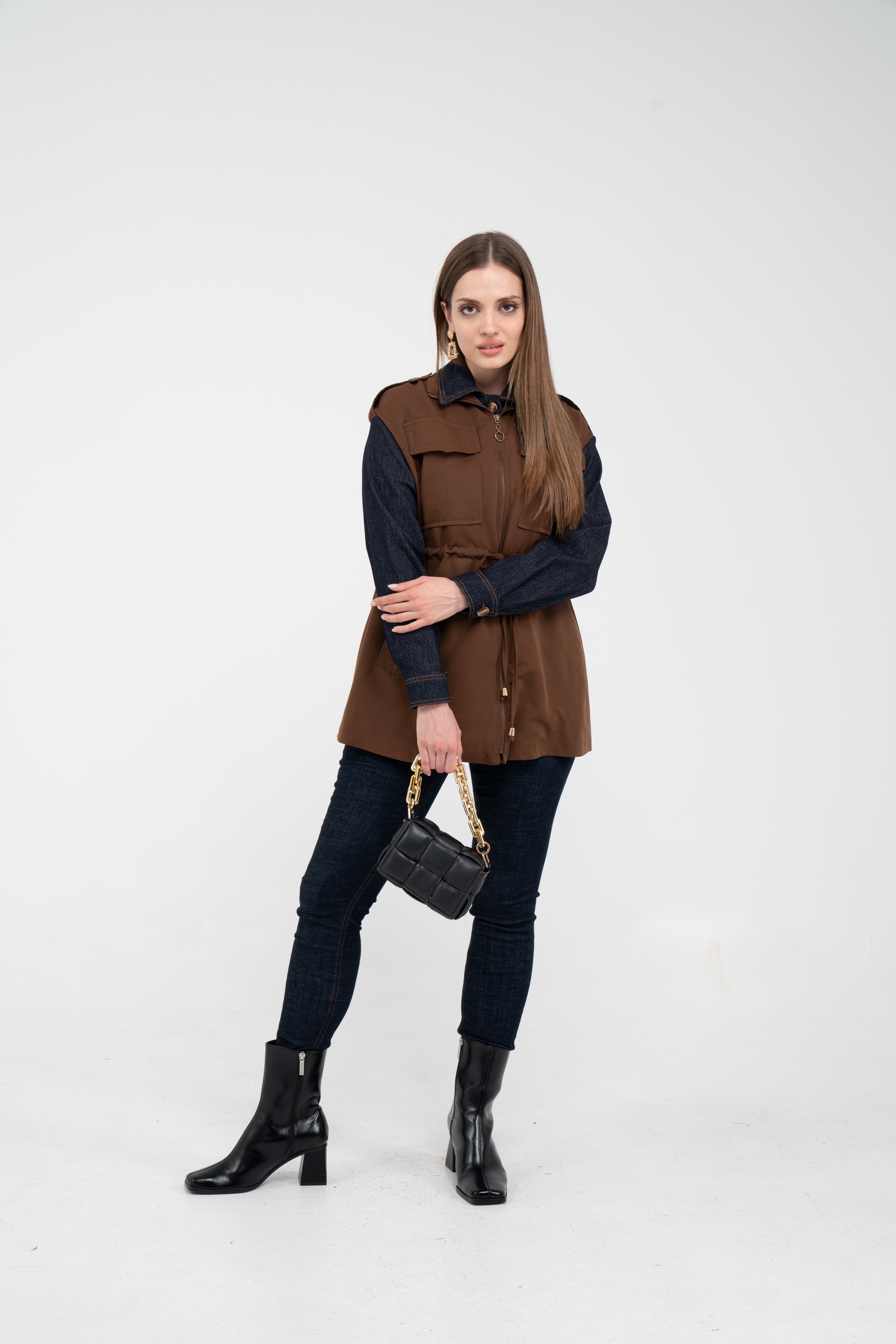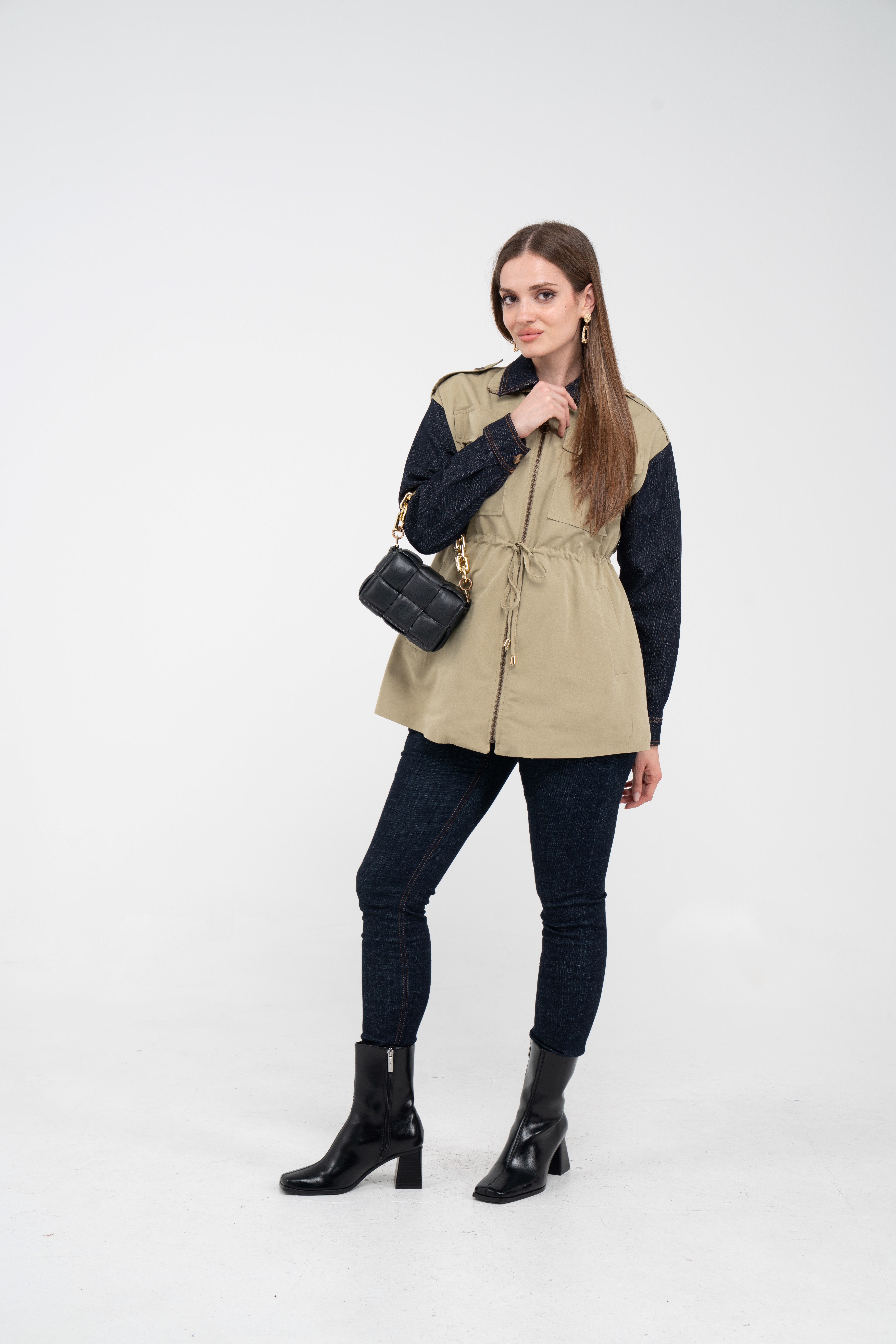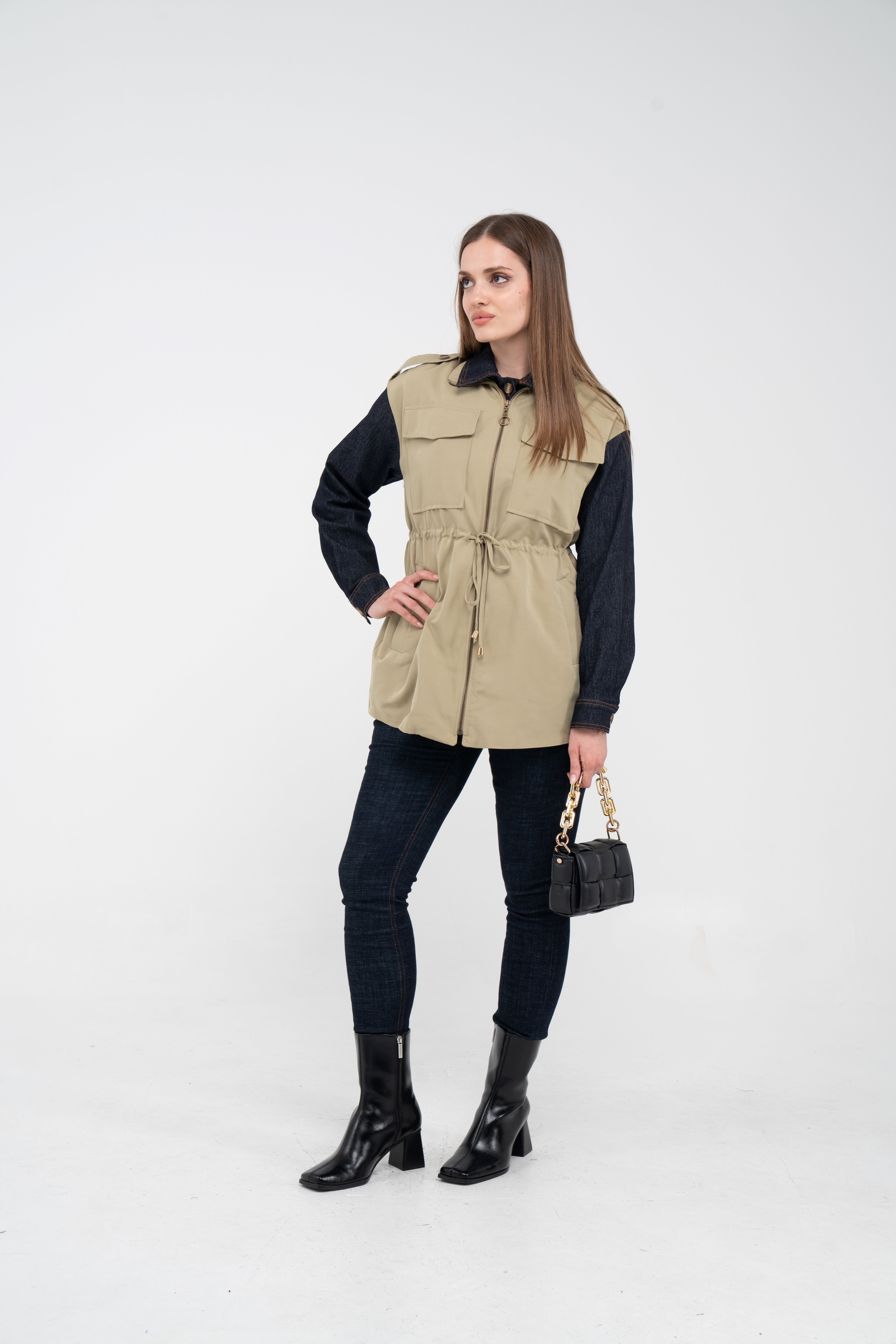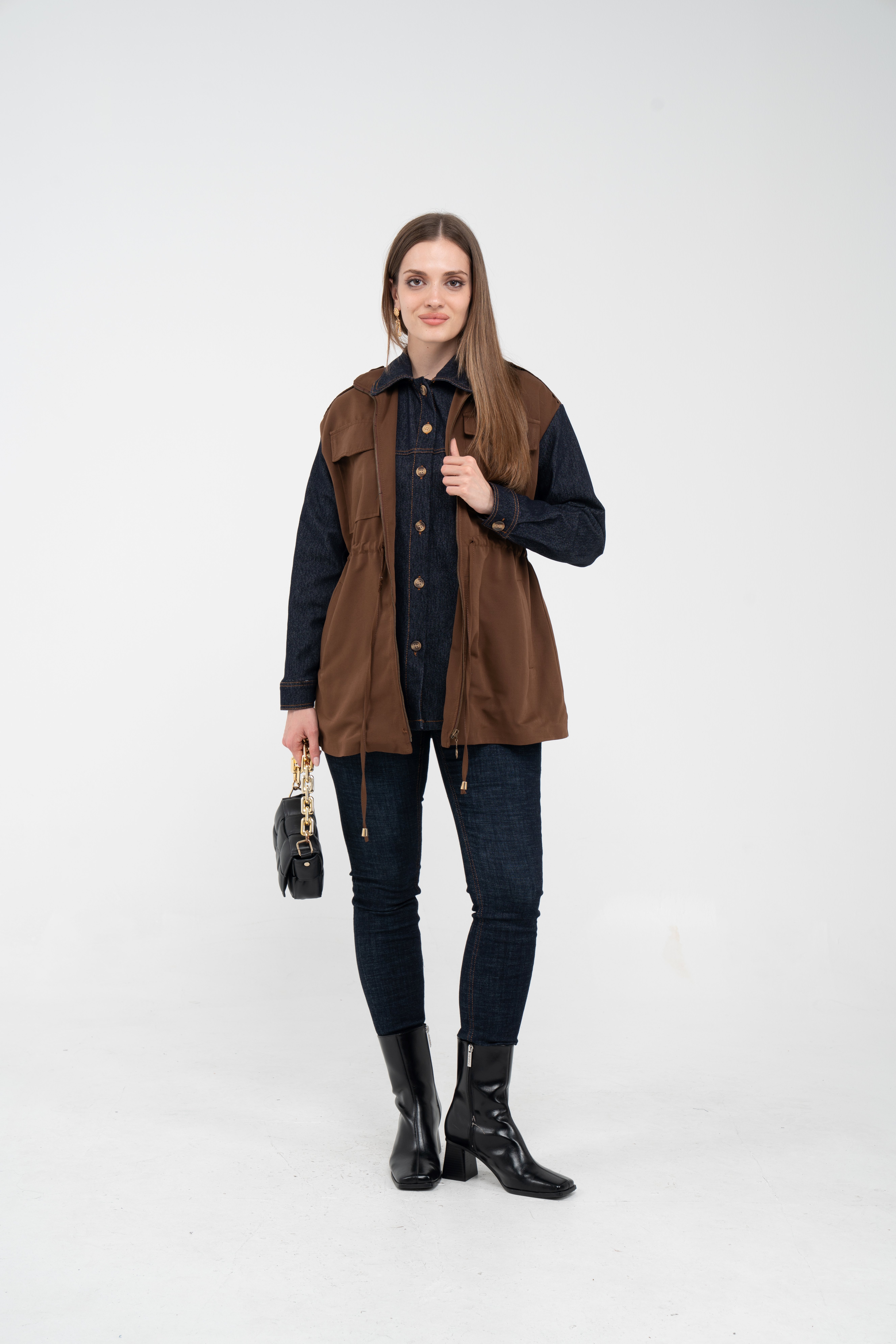 Fermuarlı tasarımı pratik kullanım sunarken geniş cepleri günlük ihtiyaçlar için ekstra kolaylık sağlar. Mevsim geçişlerinde denim, triko ve basic parçalarla rahatlıkla kombinlenebilecek çok yönlü bir dış giyim alternatifidir.
