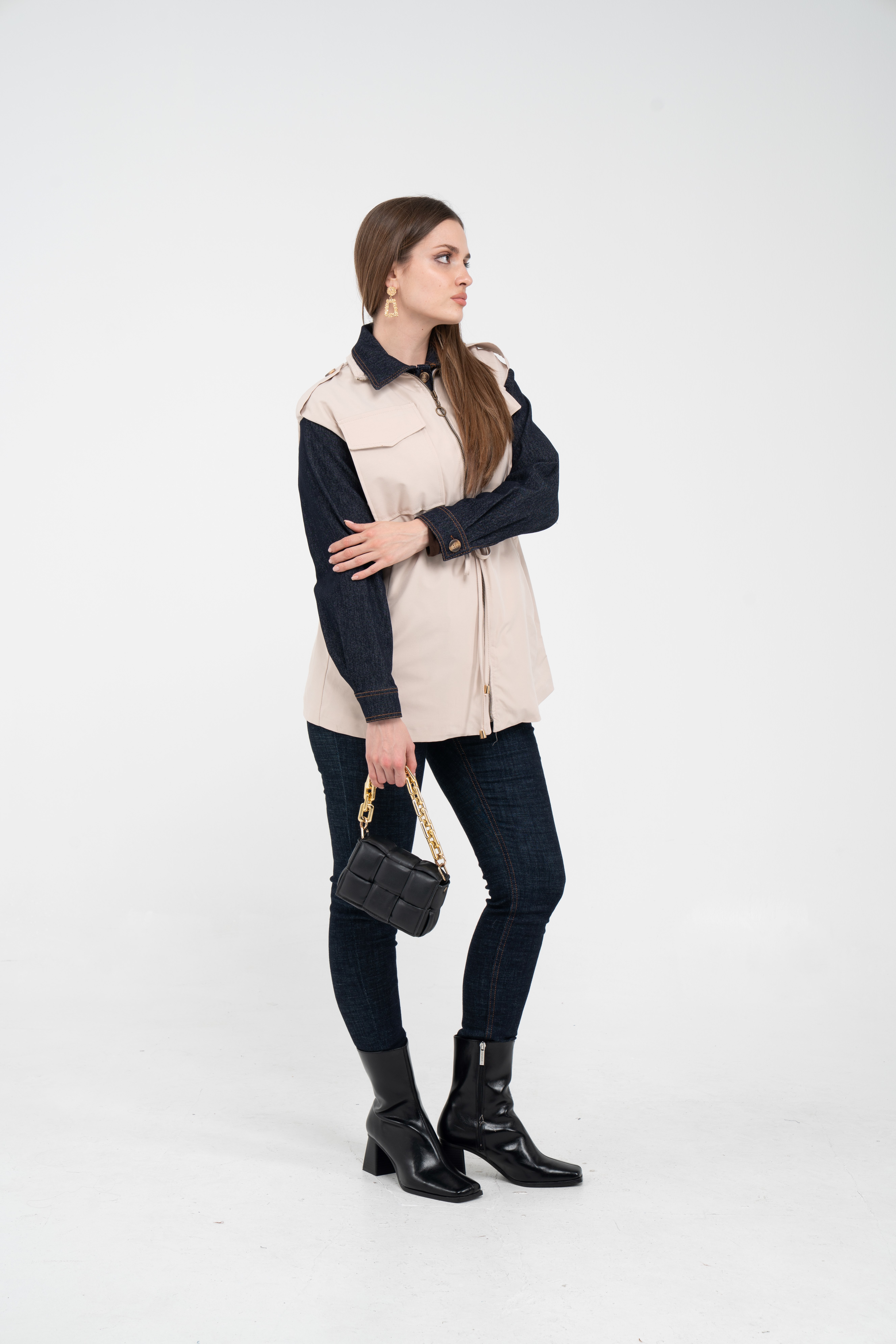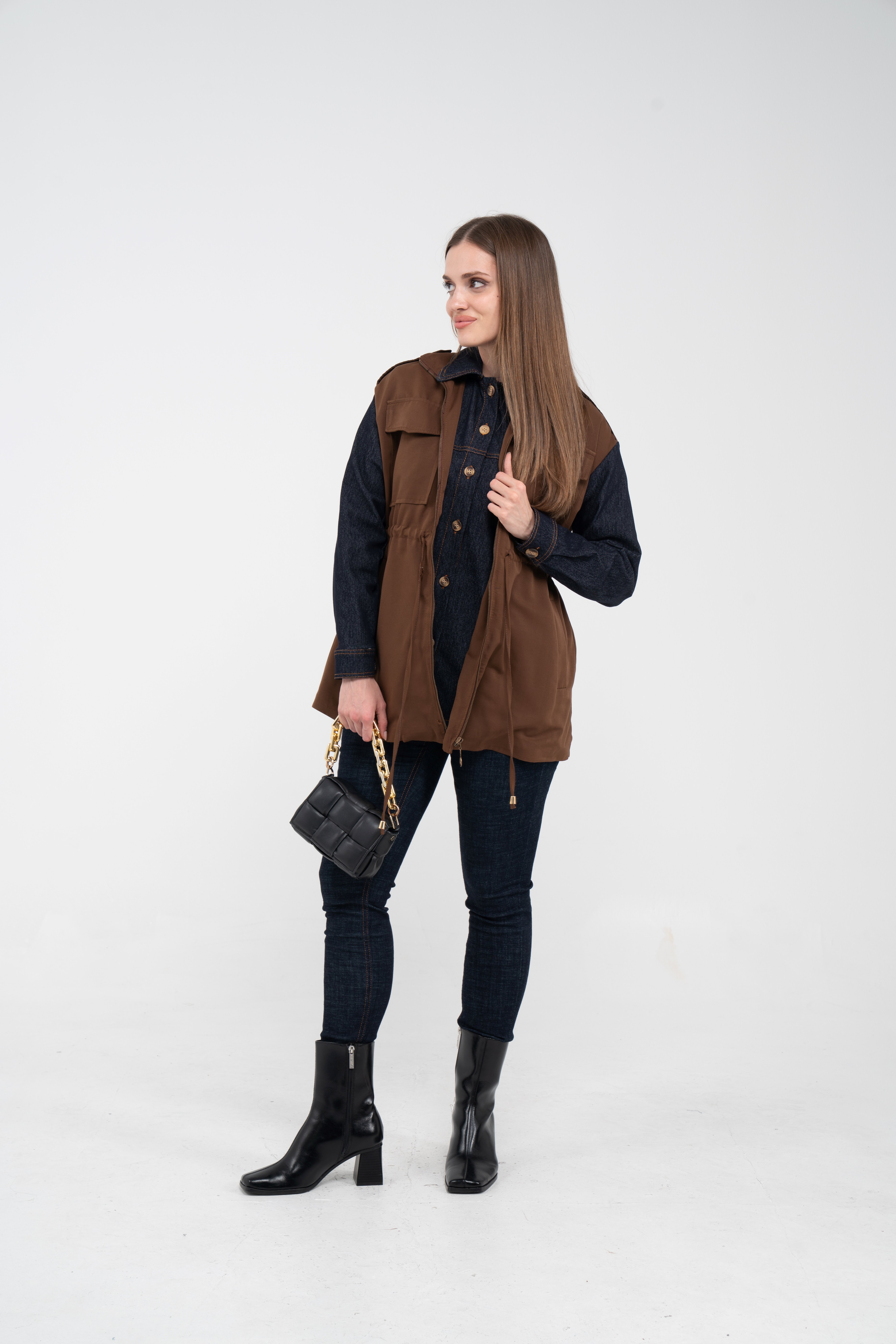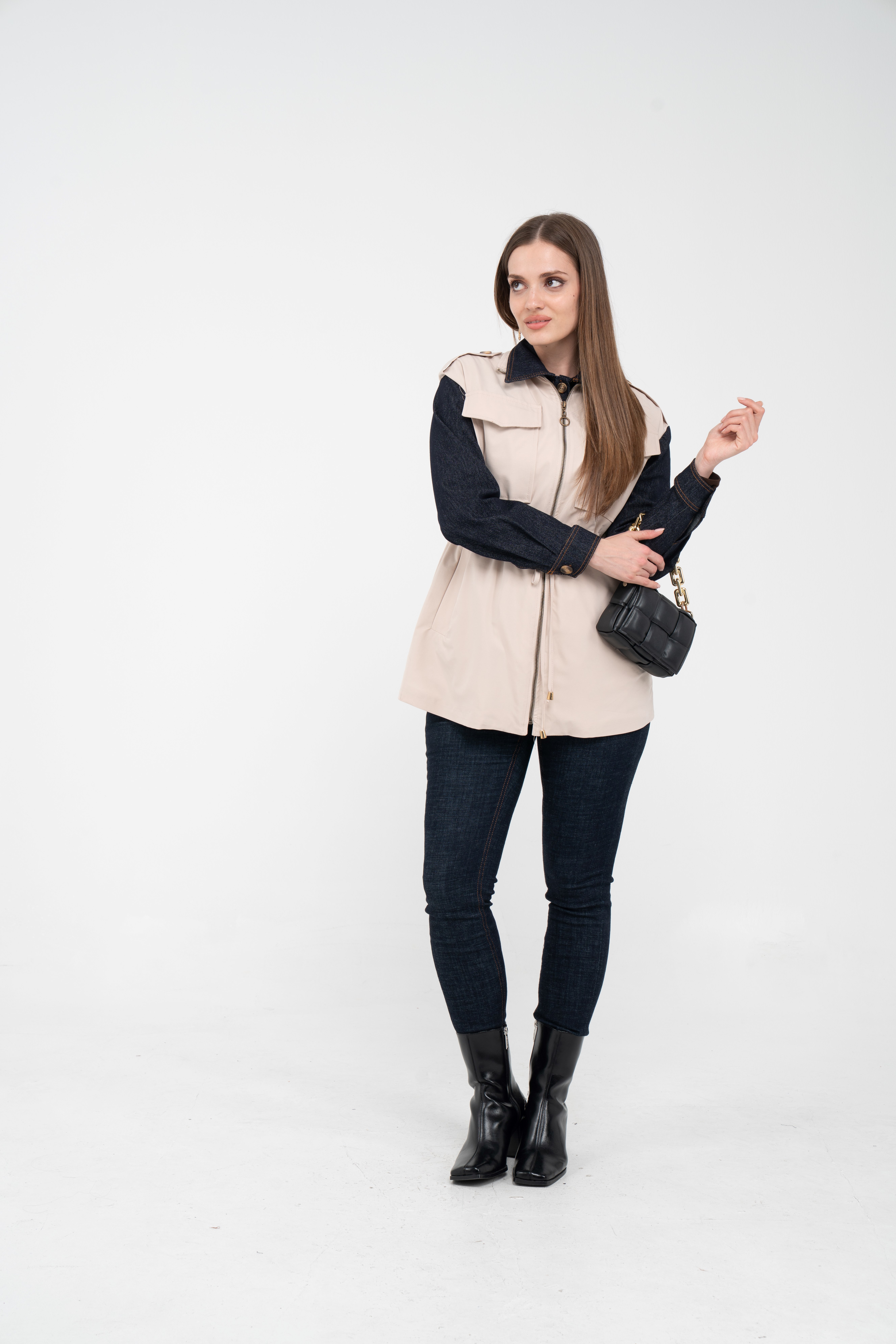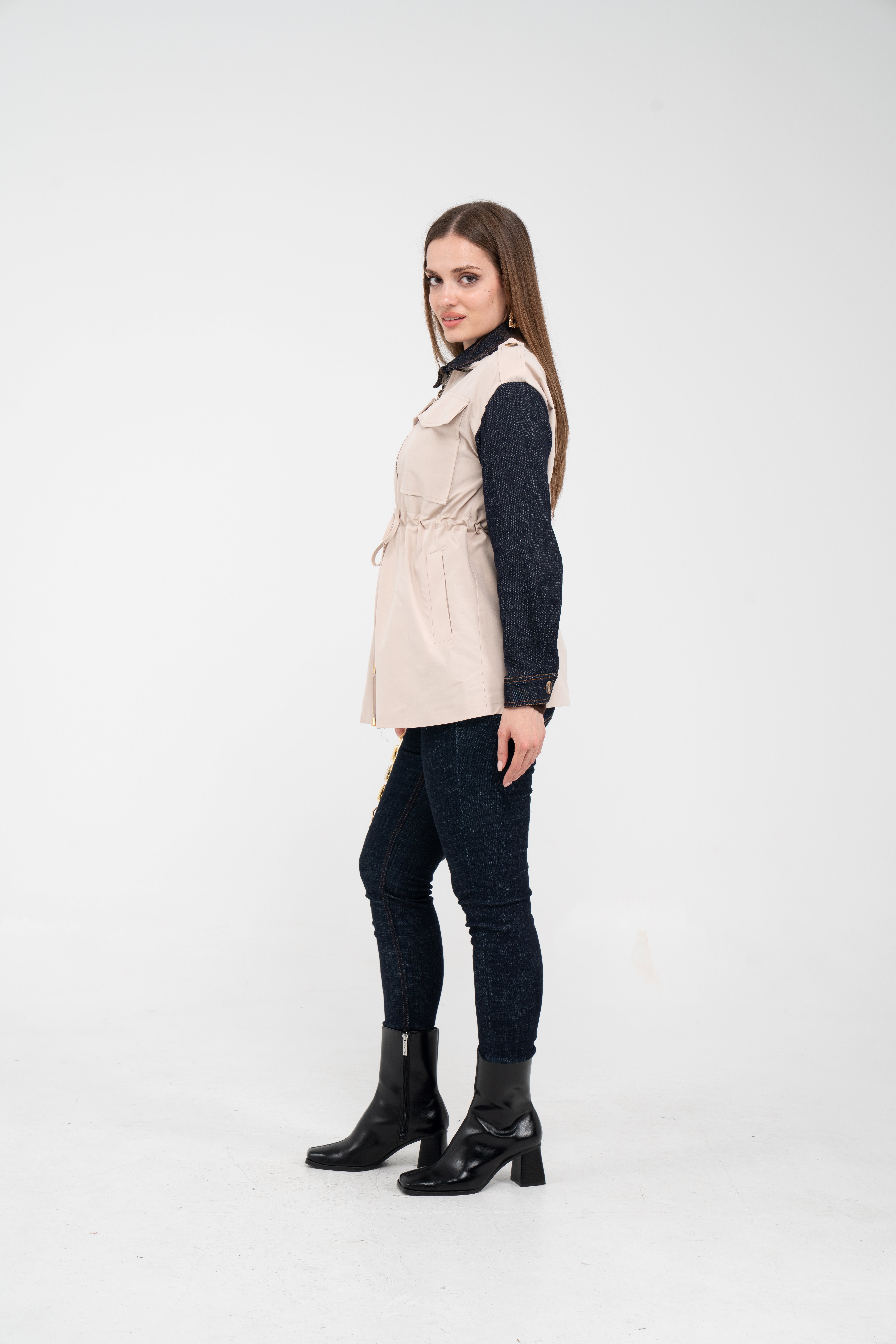 Fermuarlı tasarımı pratik kullanım sunarken geniş cepleri günlük ihtiyaçlar için ekstra kolaylık sağlar. Mevsim geçişlerinde denim, triko ve basic parçalarla rahatlıkla kombinlenebilecek çok yönlü bir dış giyim alternatifidir.