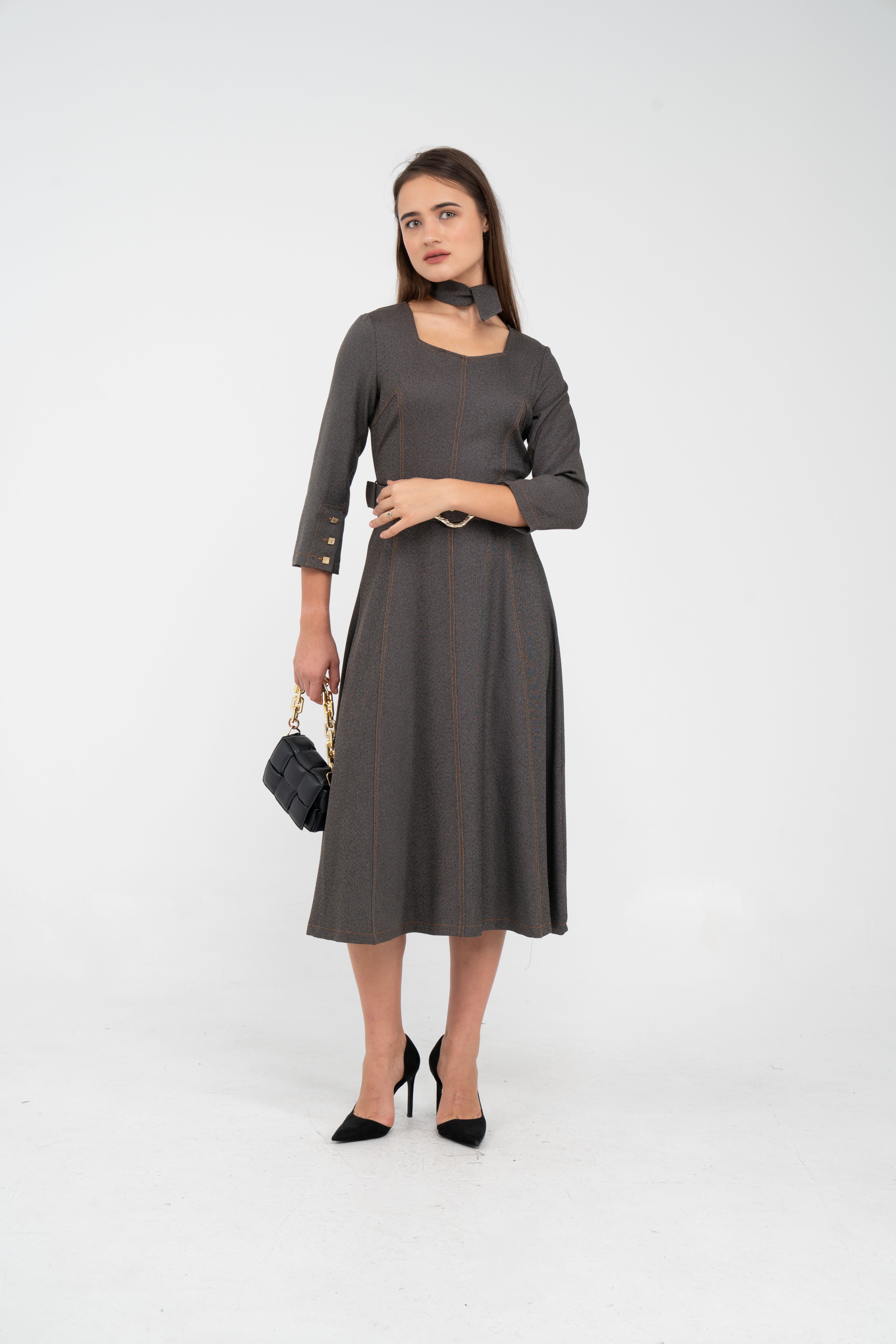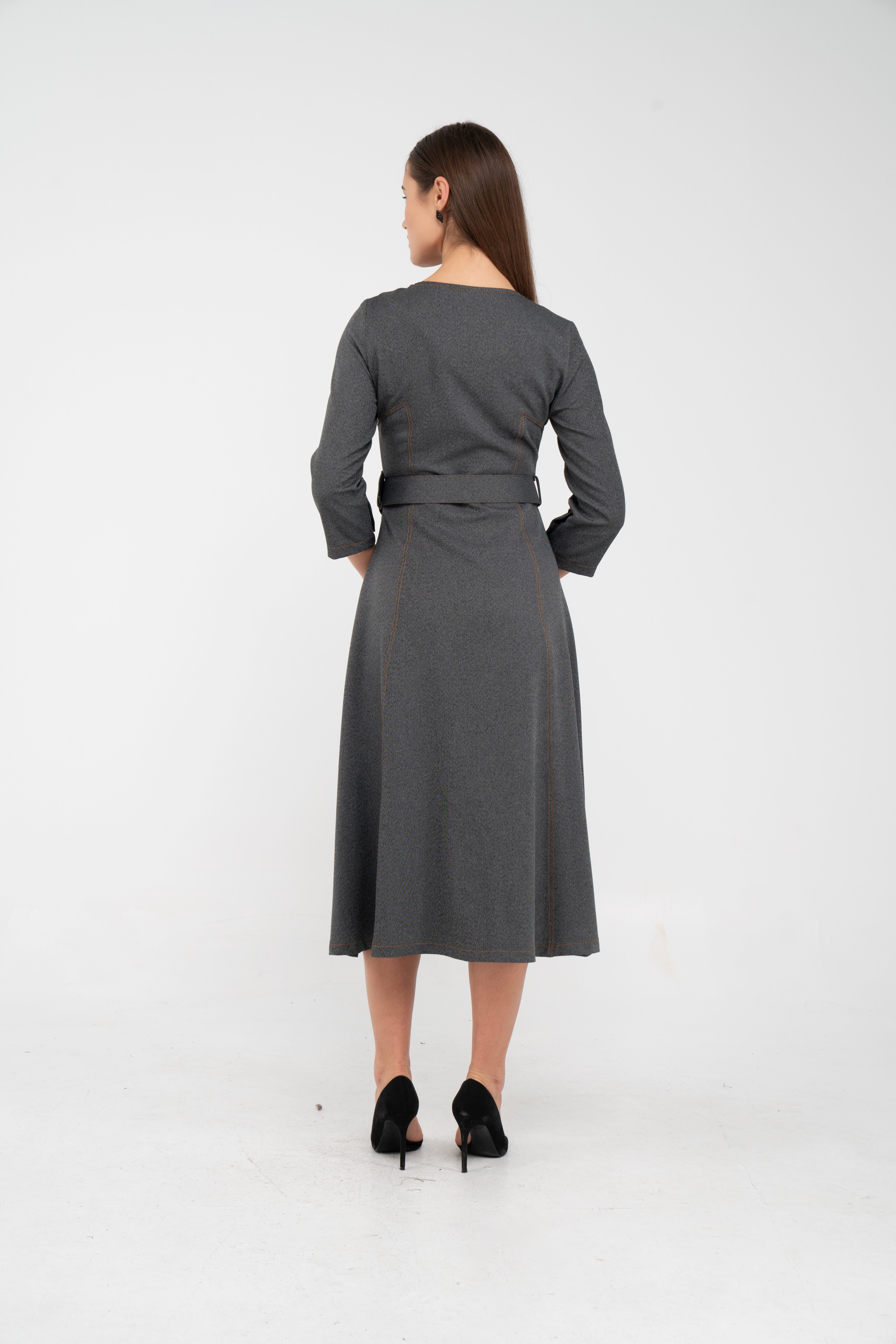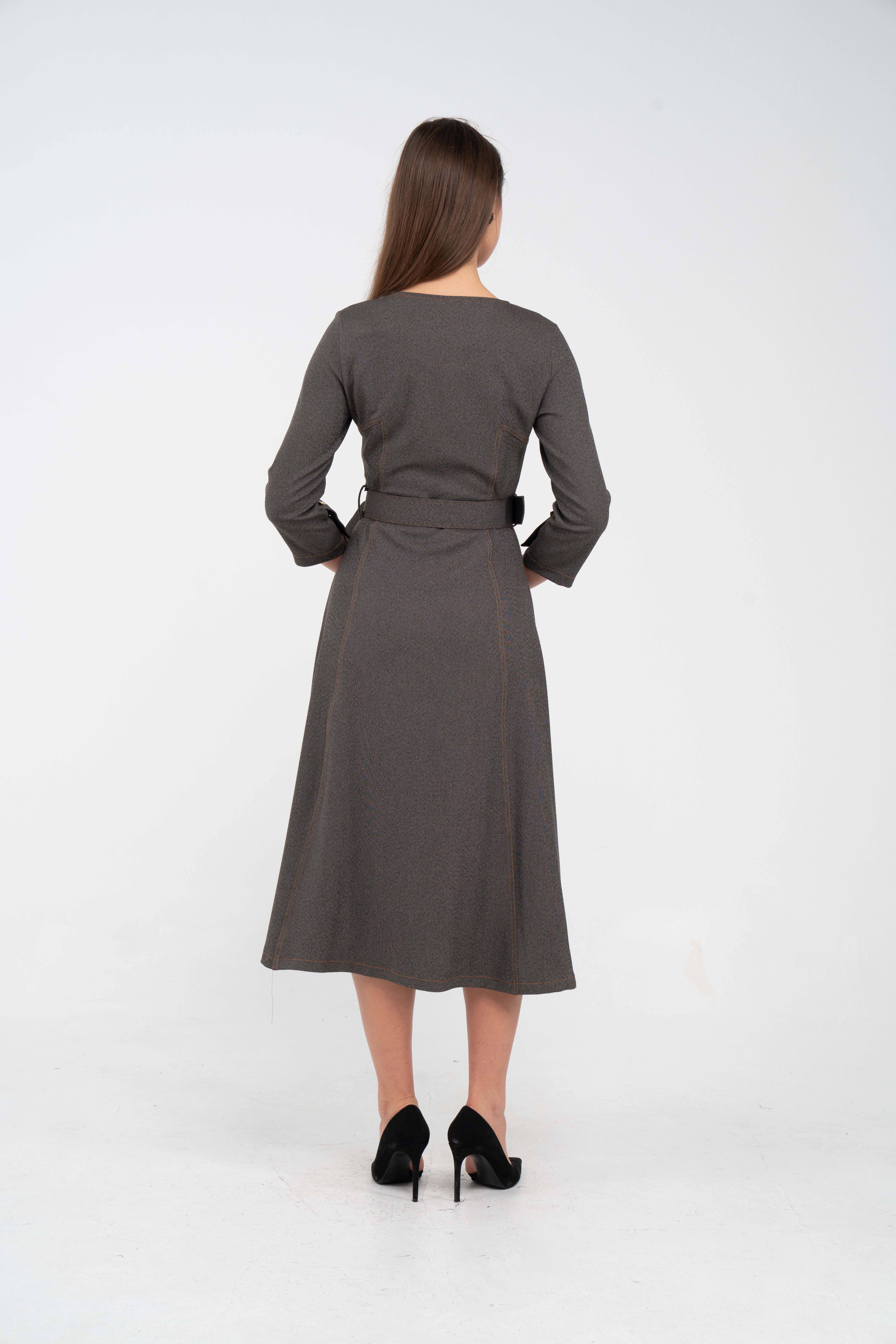 Üç düğmeli kol manşetleri ve dikiş detayları elbiseye sofistike bir hava katıyor. Hem topuklu ayakkabılarla hem de çizmelerle kombinlenerek her ortama uyum sağlar.