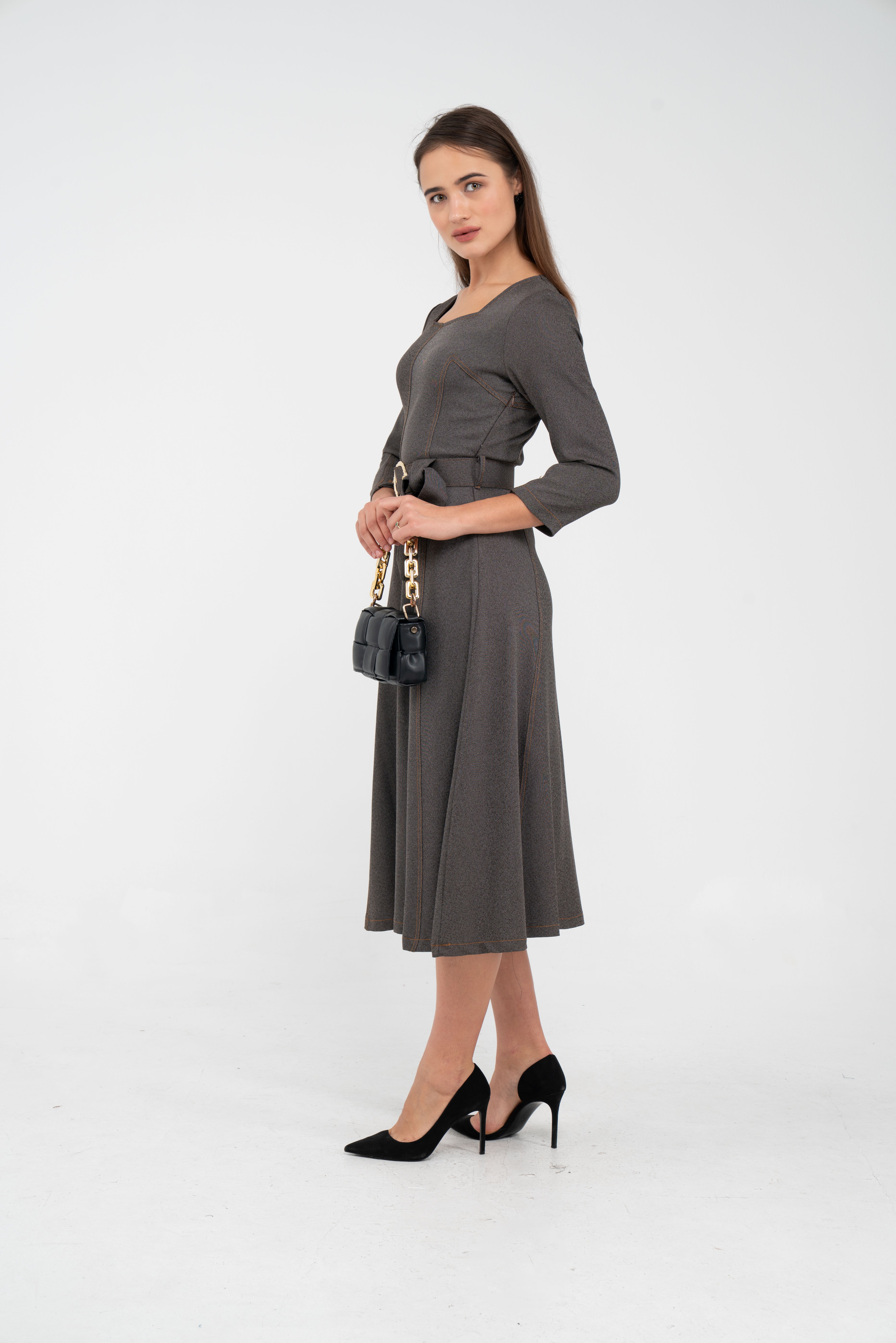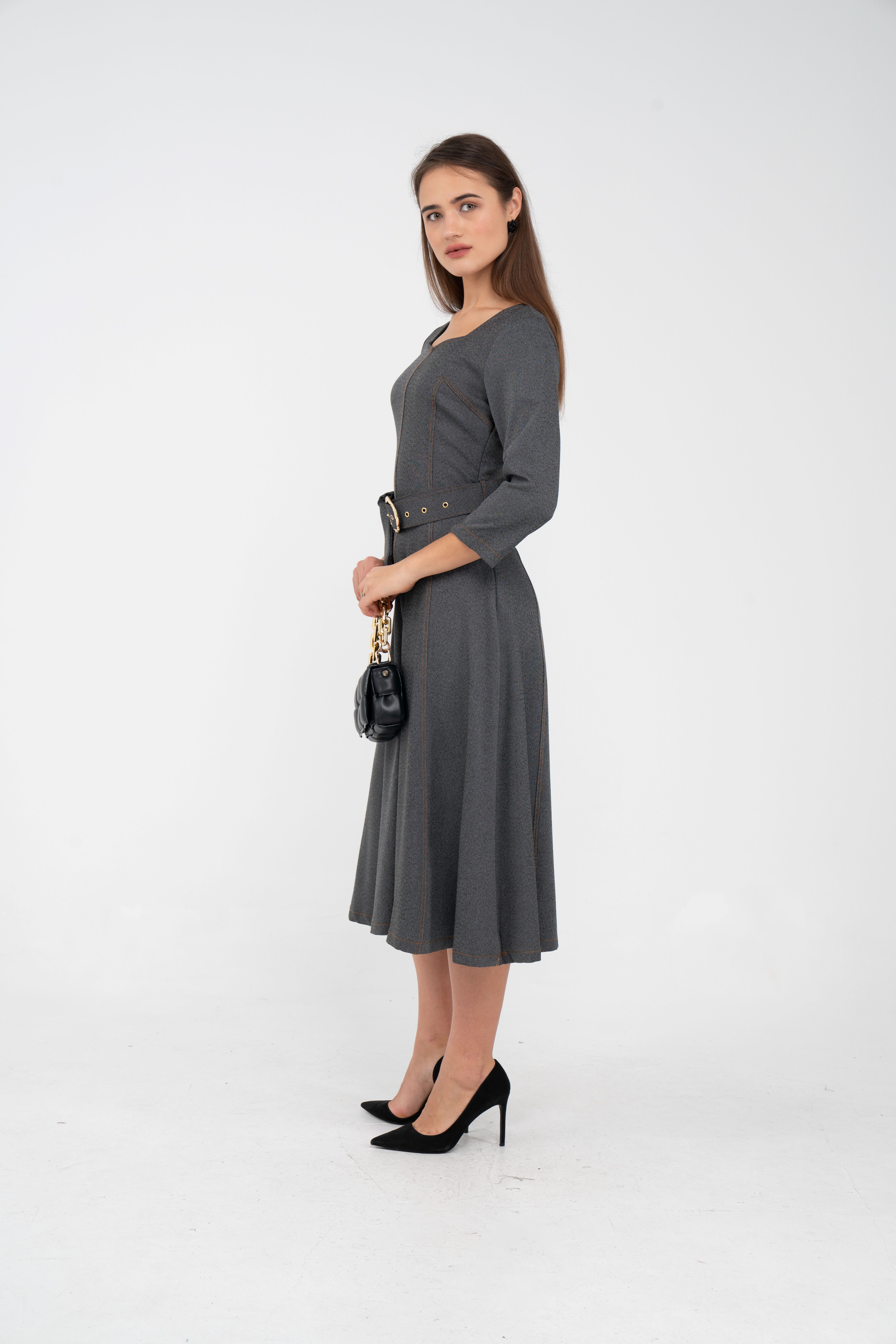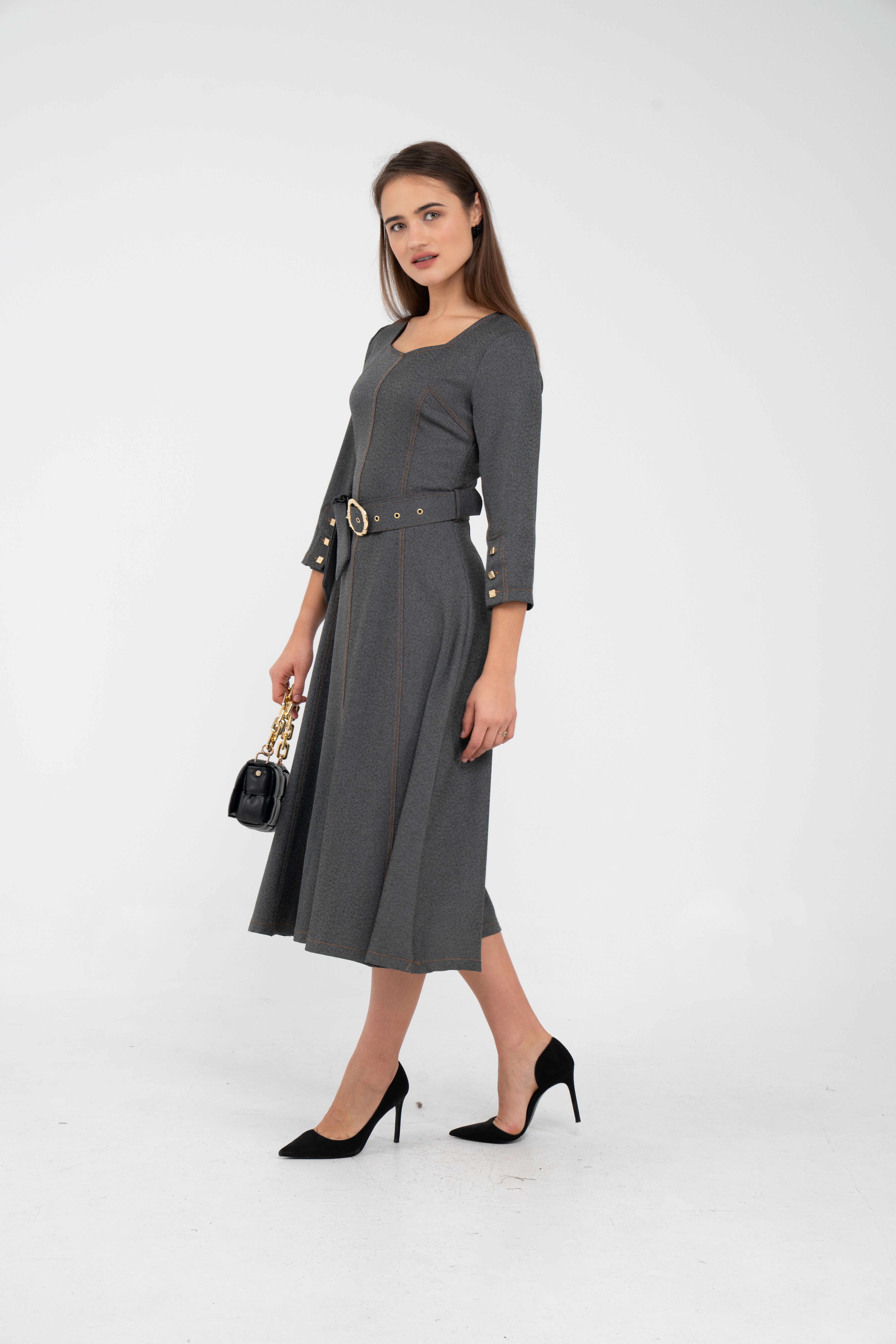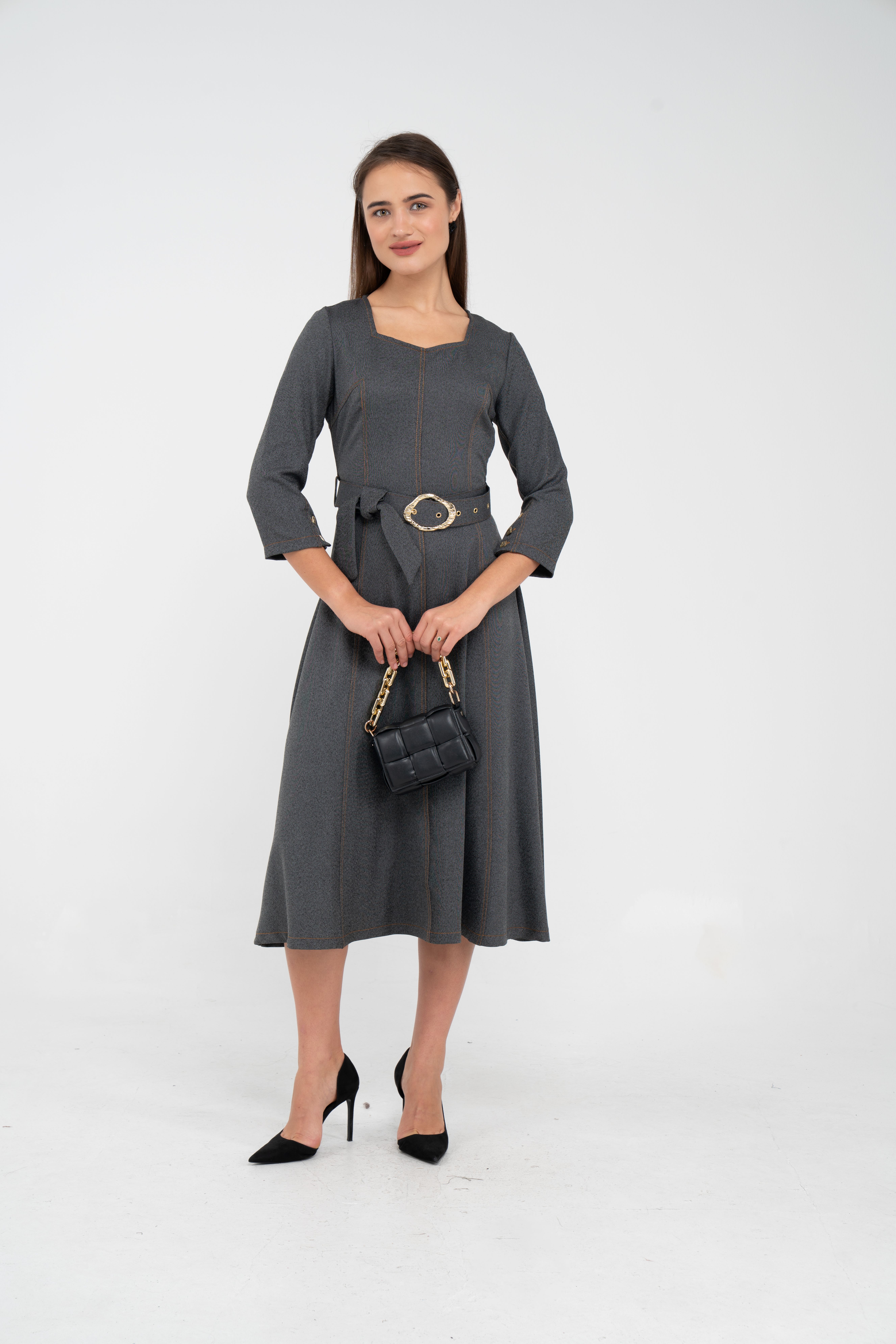 Gelince Haber VerModern zarafetiyle dikkat çeken Kemer Detaylı Denim Görünümlü Midi Elbise, günlük şıklığı konforla buluşturuyor.