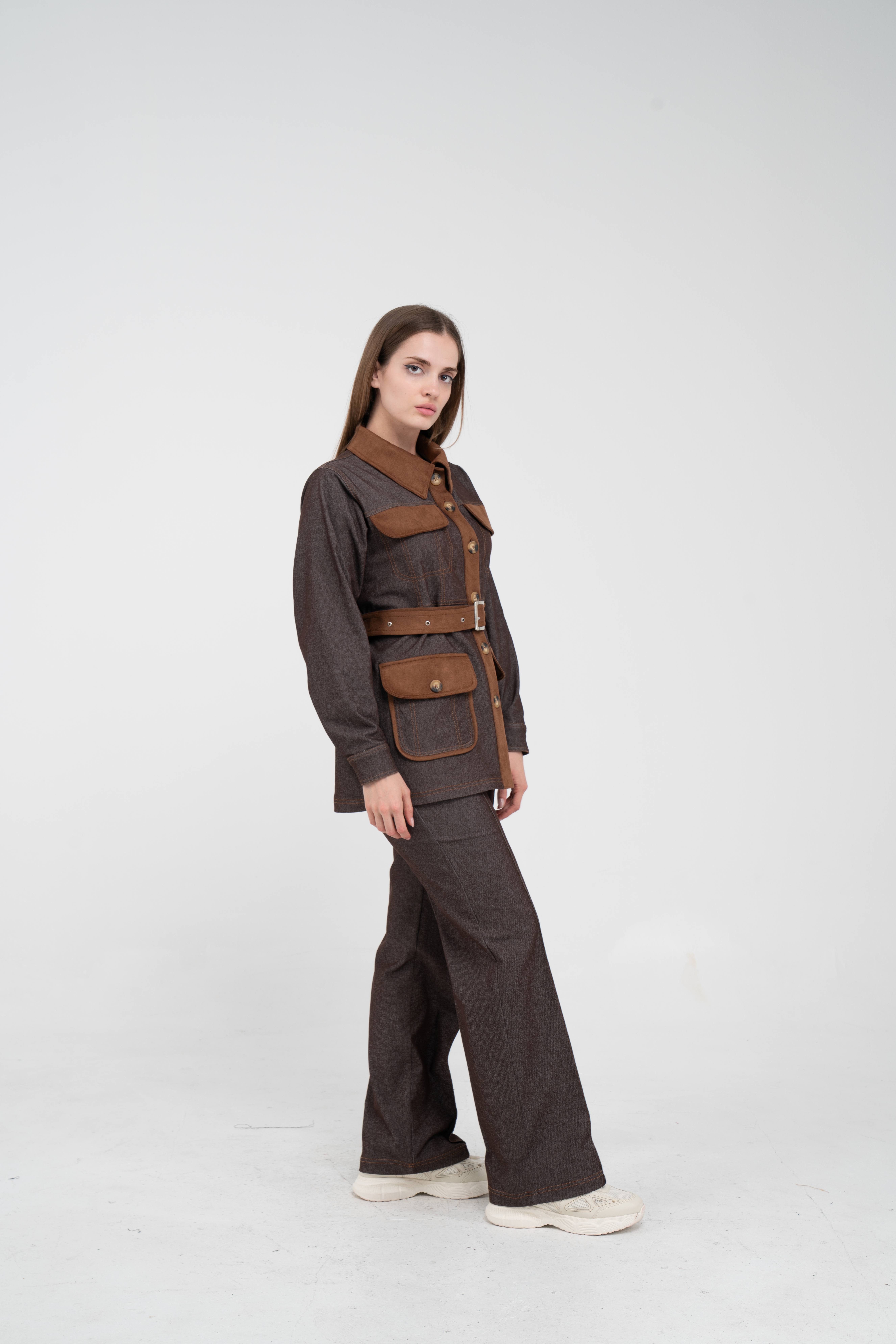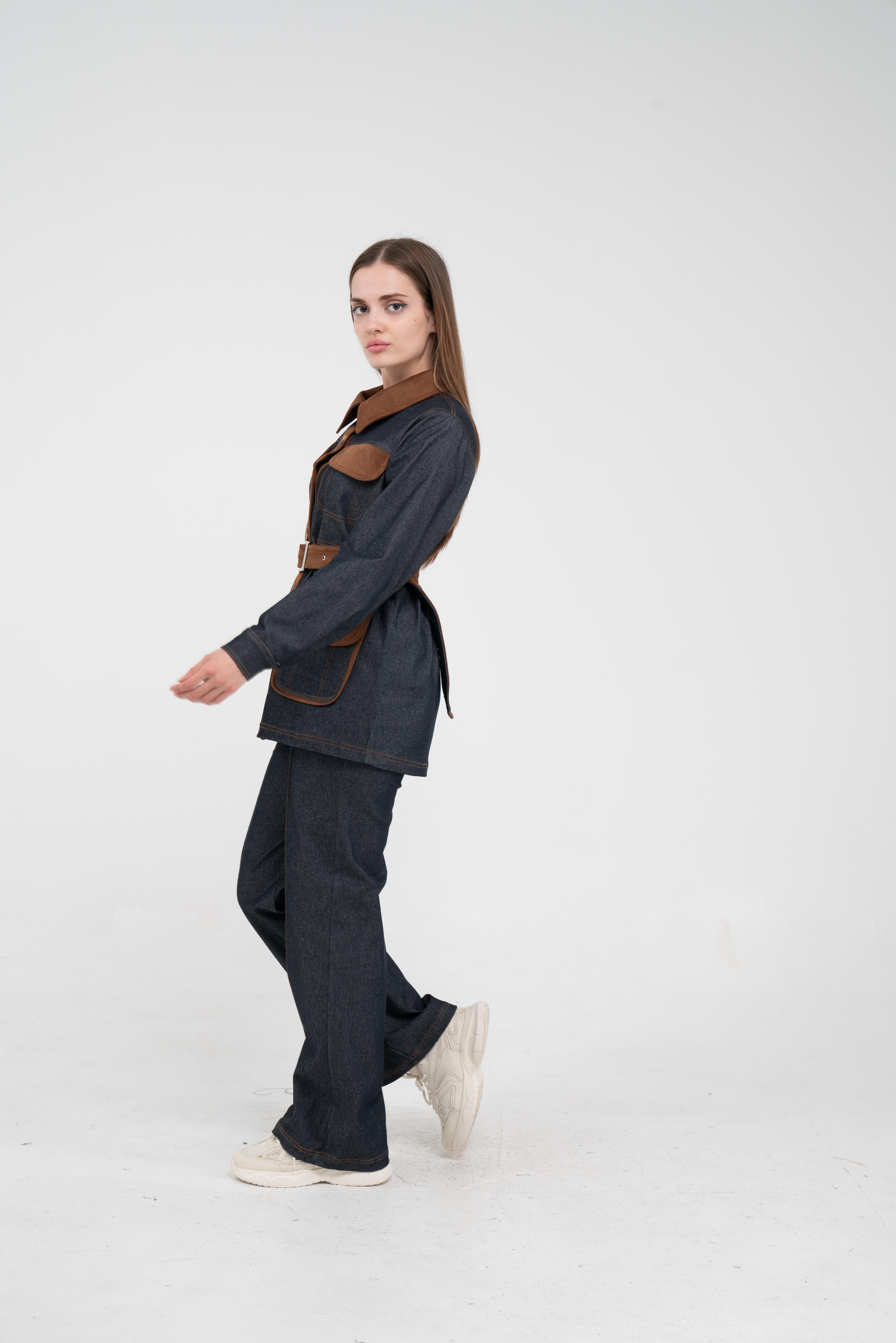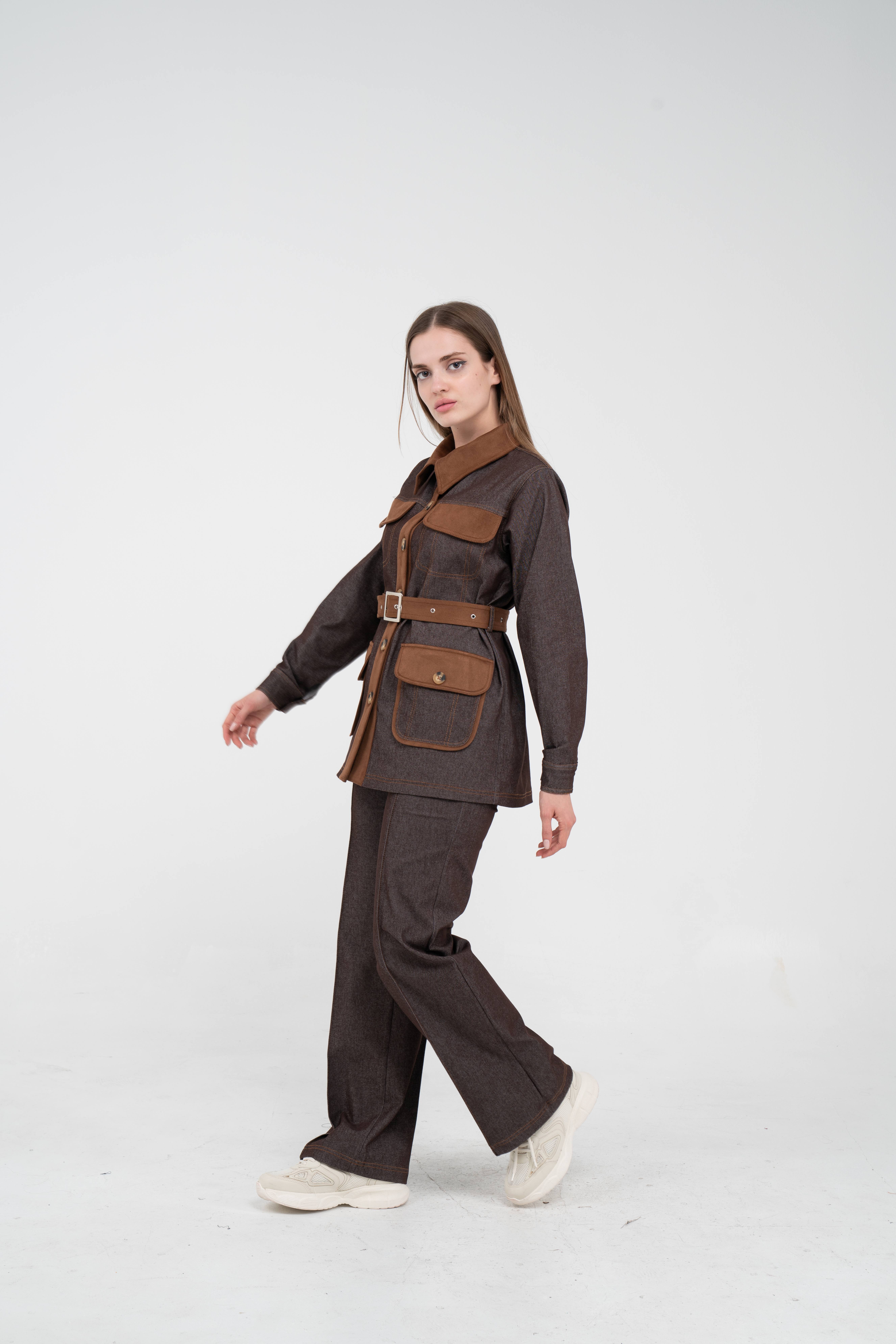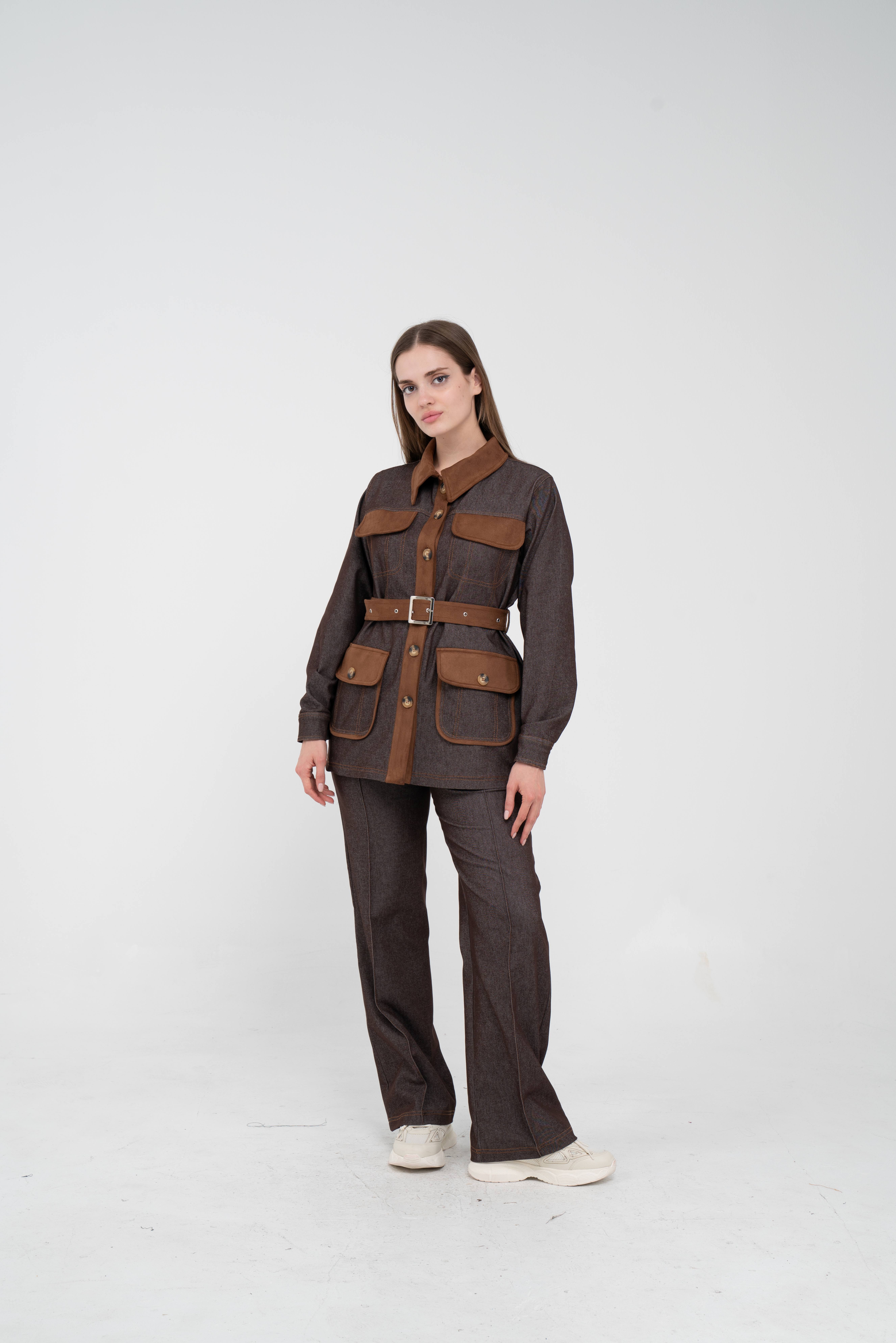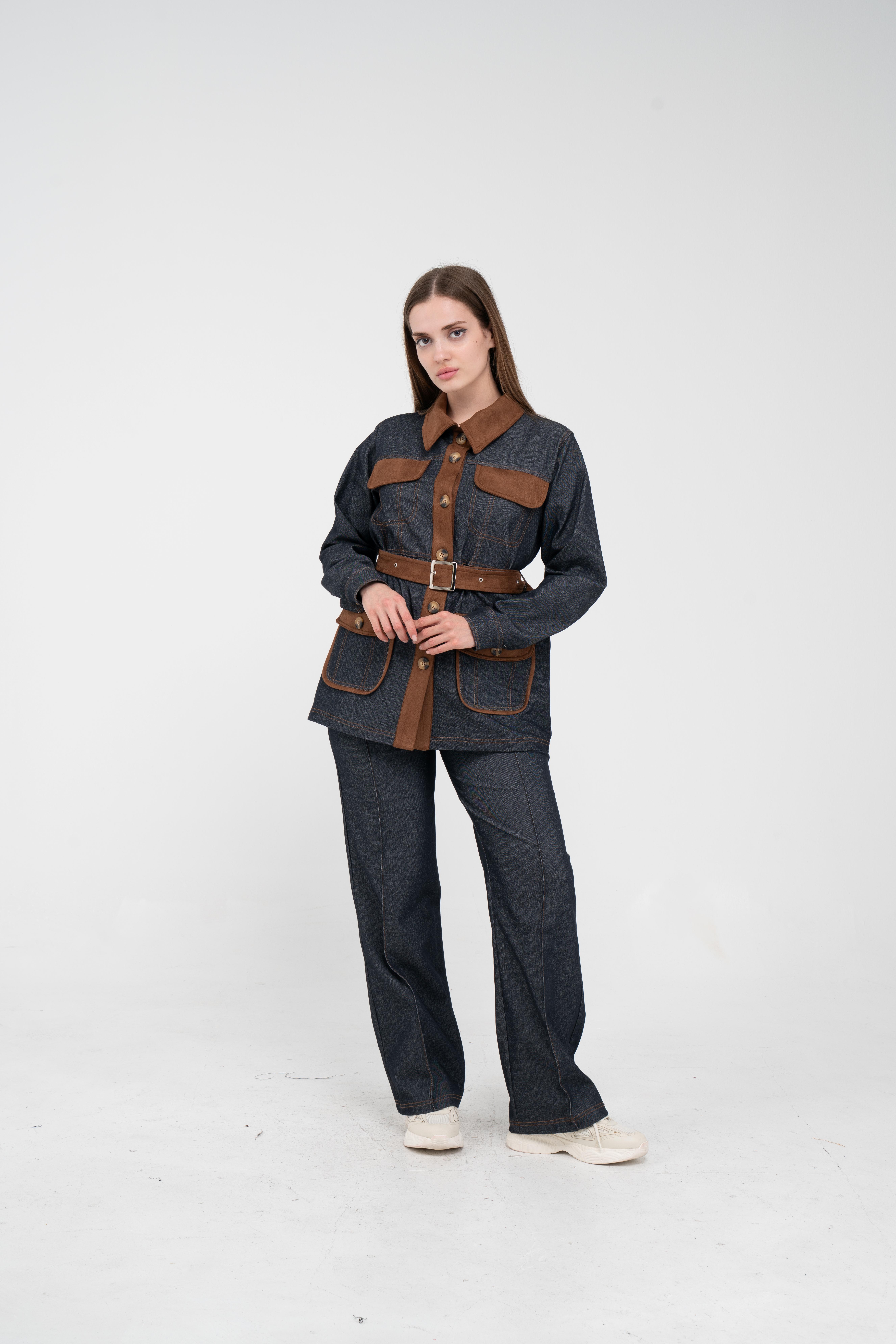 Gelince Haber VerÜst parça, kontrast cepler, düğme detayları ve tokalı kuşak tasarımıyla dikkat çekerken düzenli formu sayesinde vücudu daha derli toplu gösterir.
