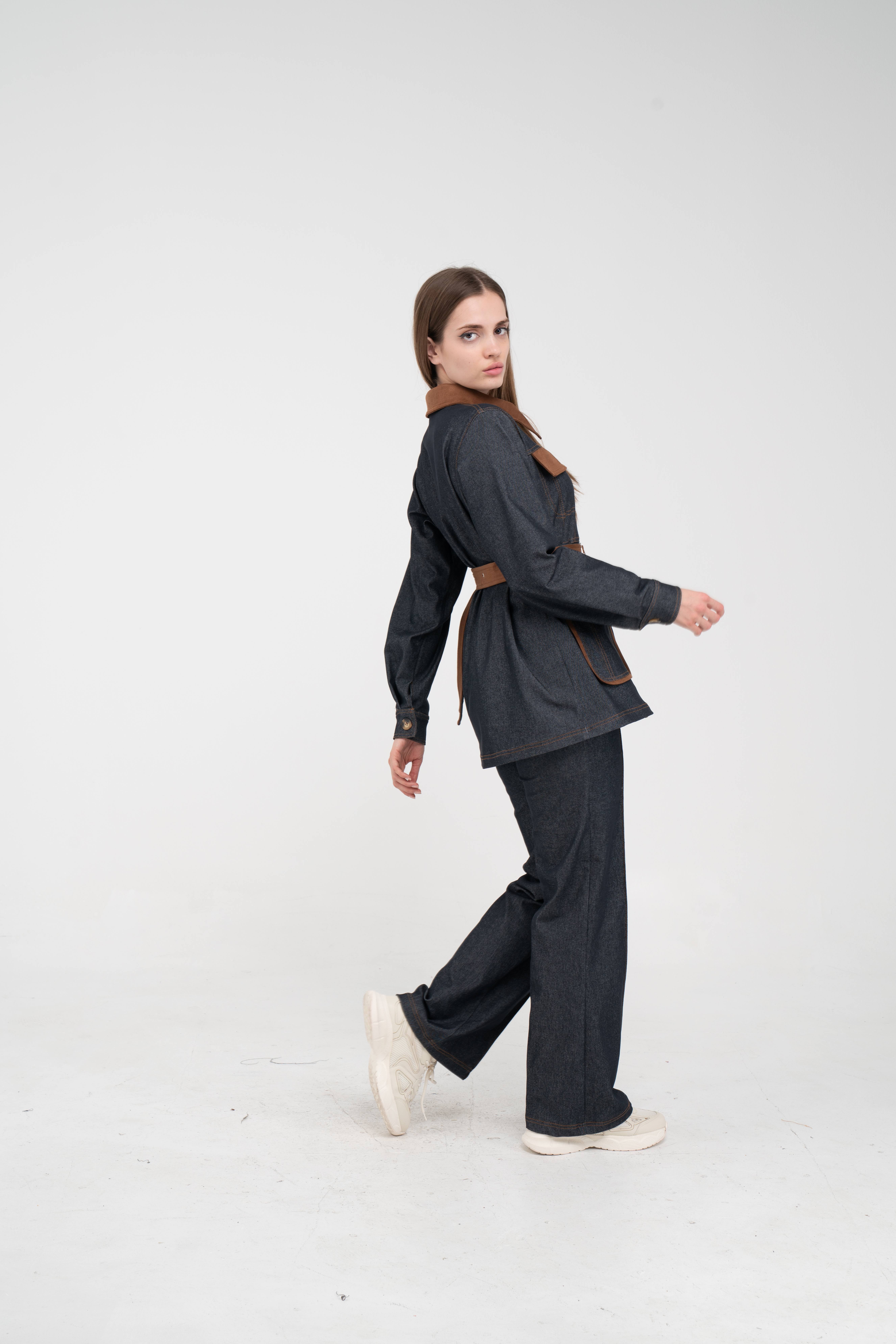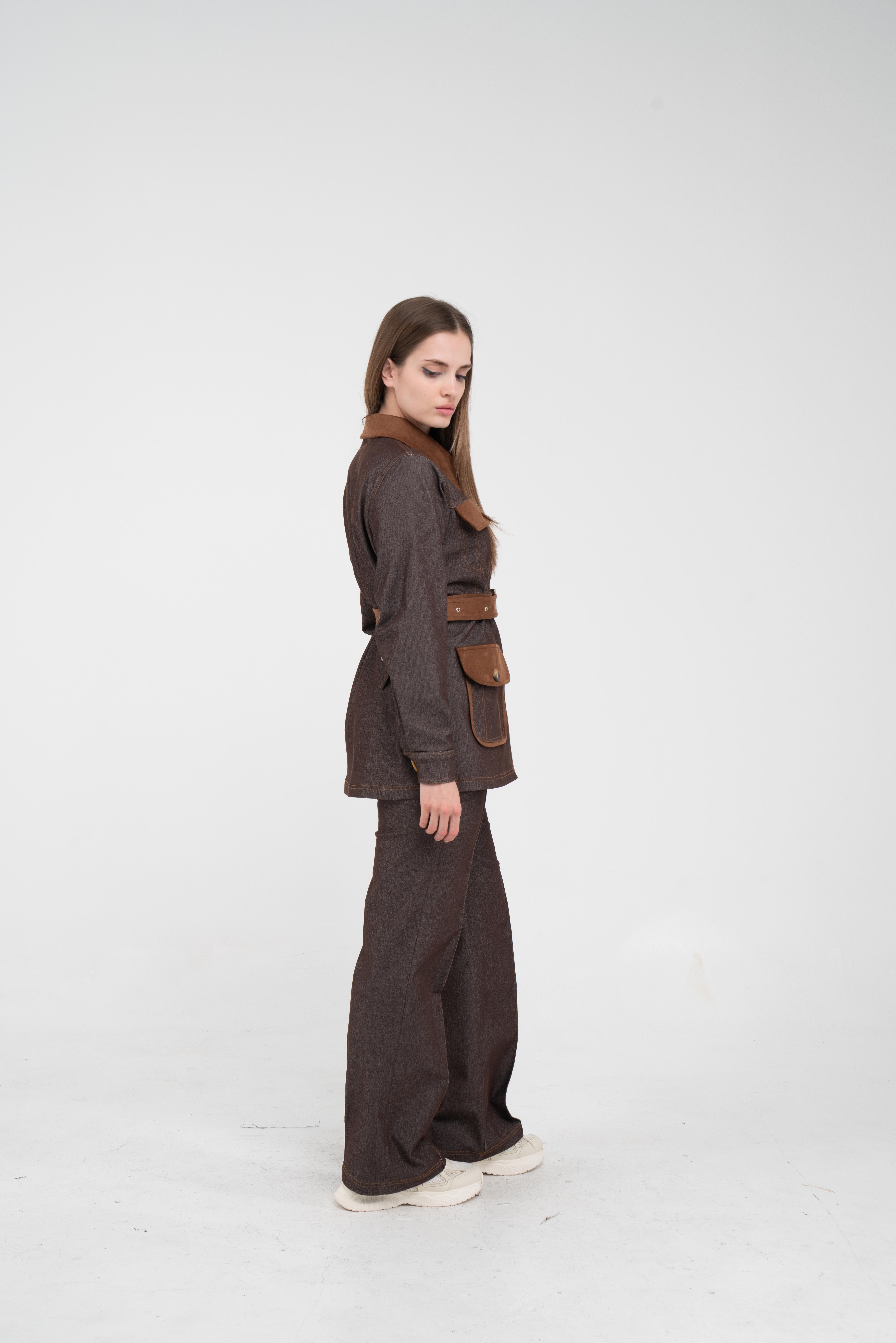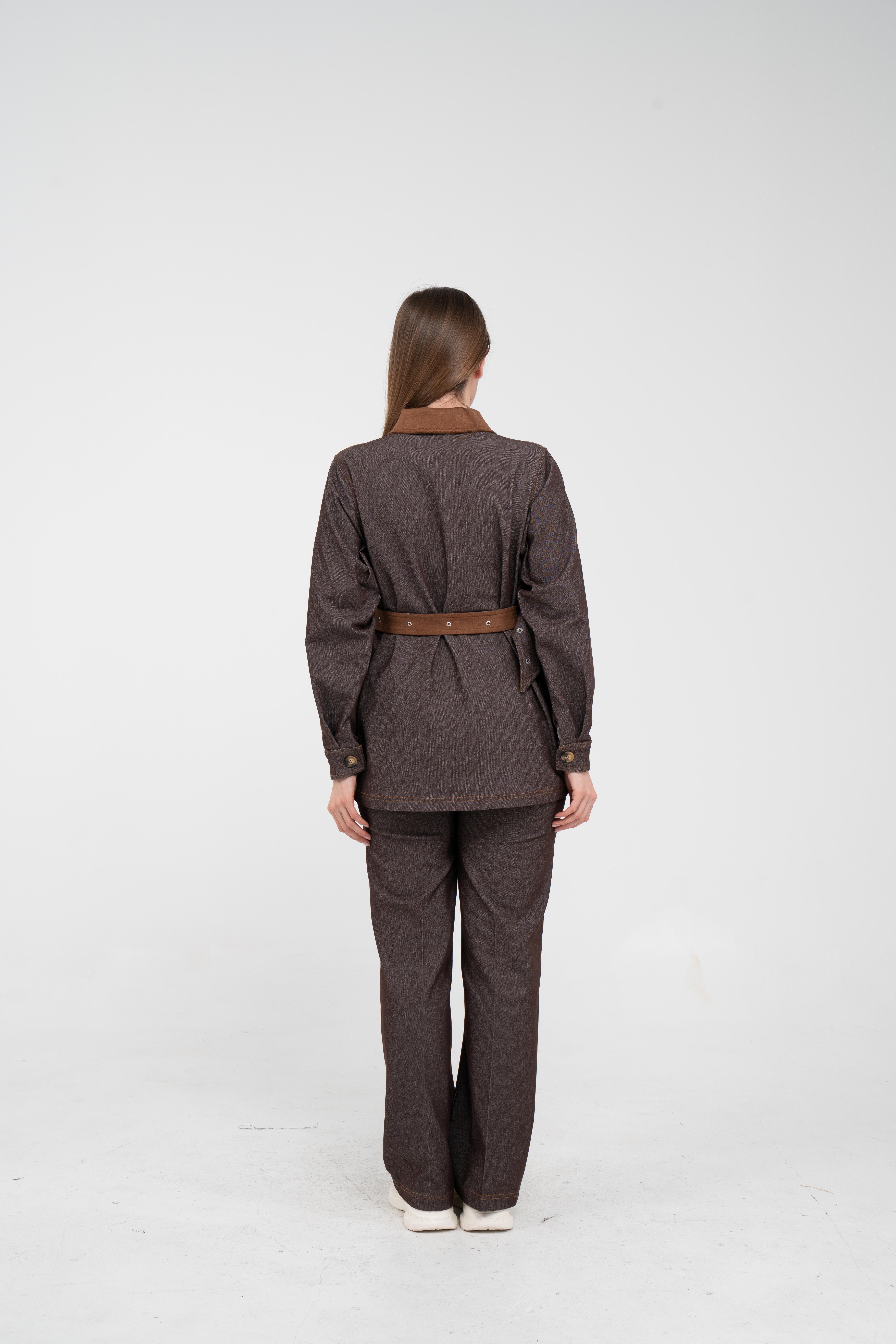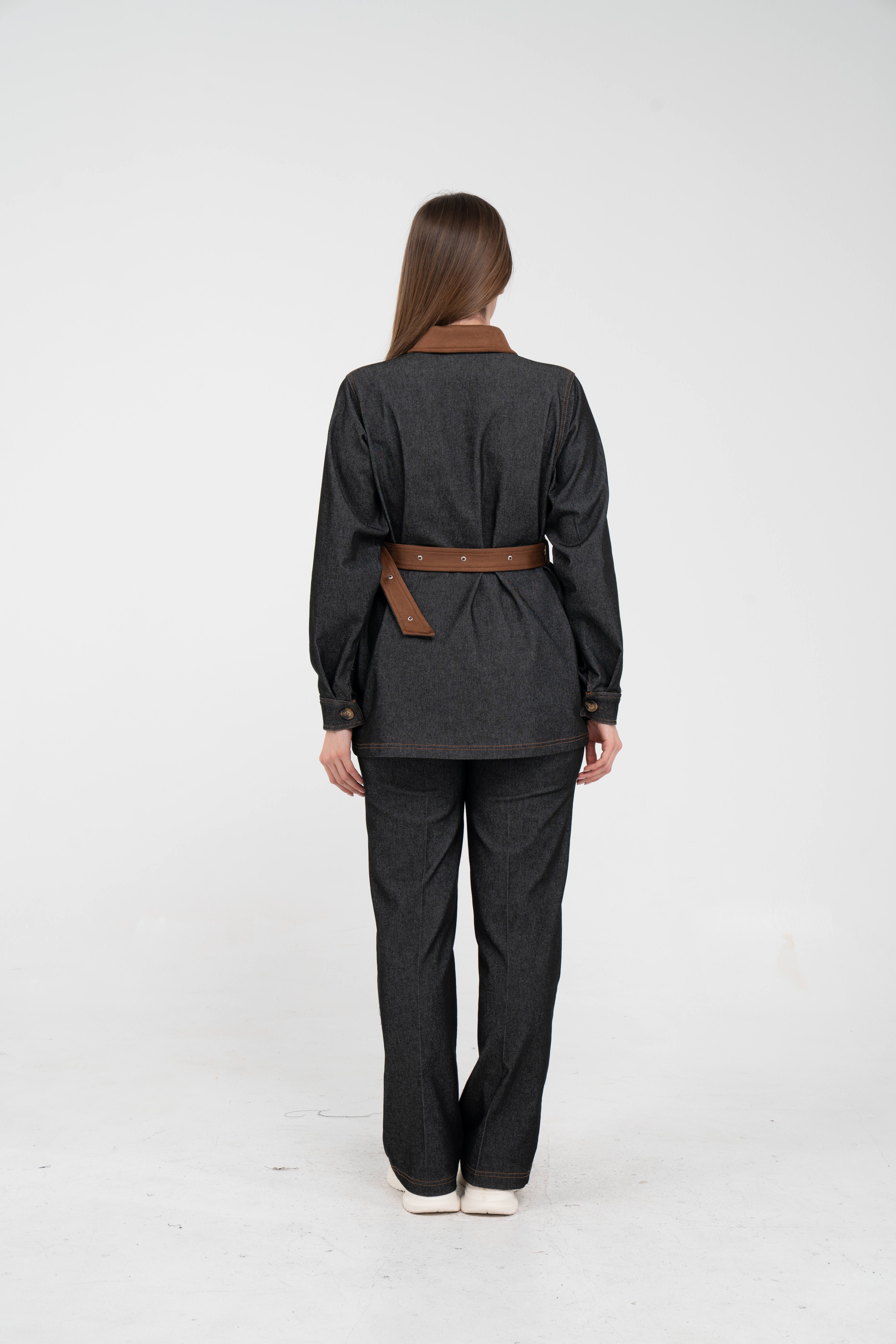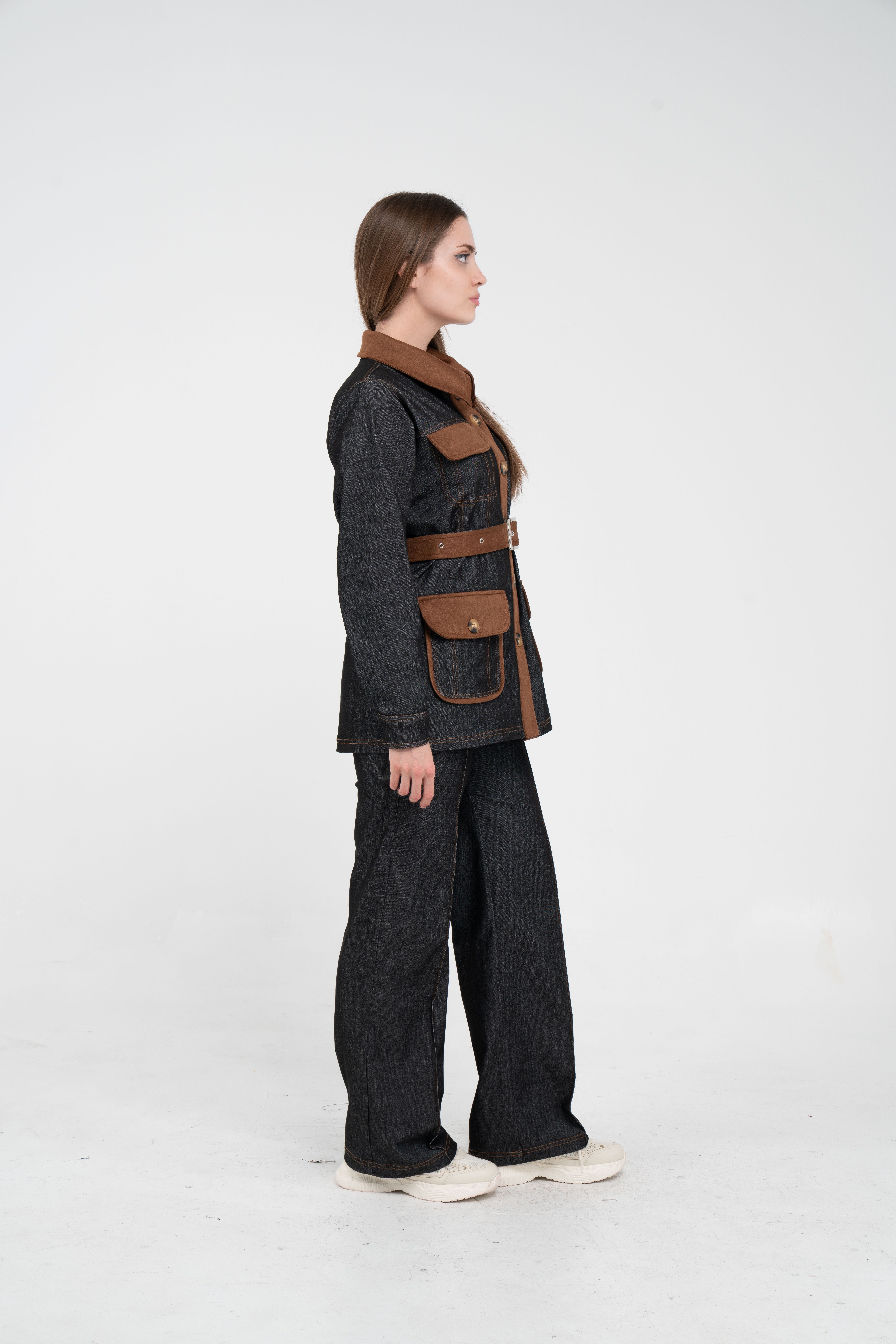Gelince Haber VerÜst parça, kontrast cepler, düğme detayları ve tokalı kuşak tasarımıyla dikkat çekerken düzenli formu sayesinde vücudu daha derli toplu gösterir.