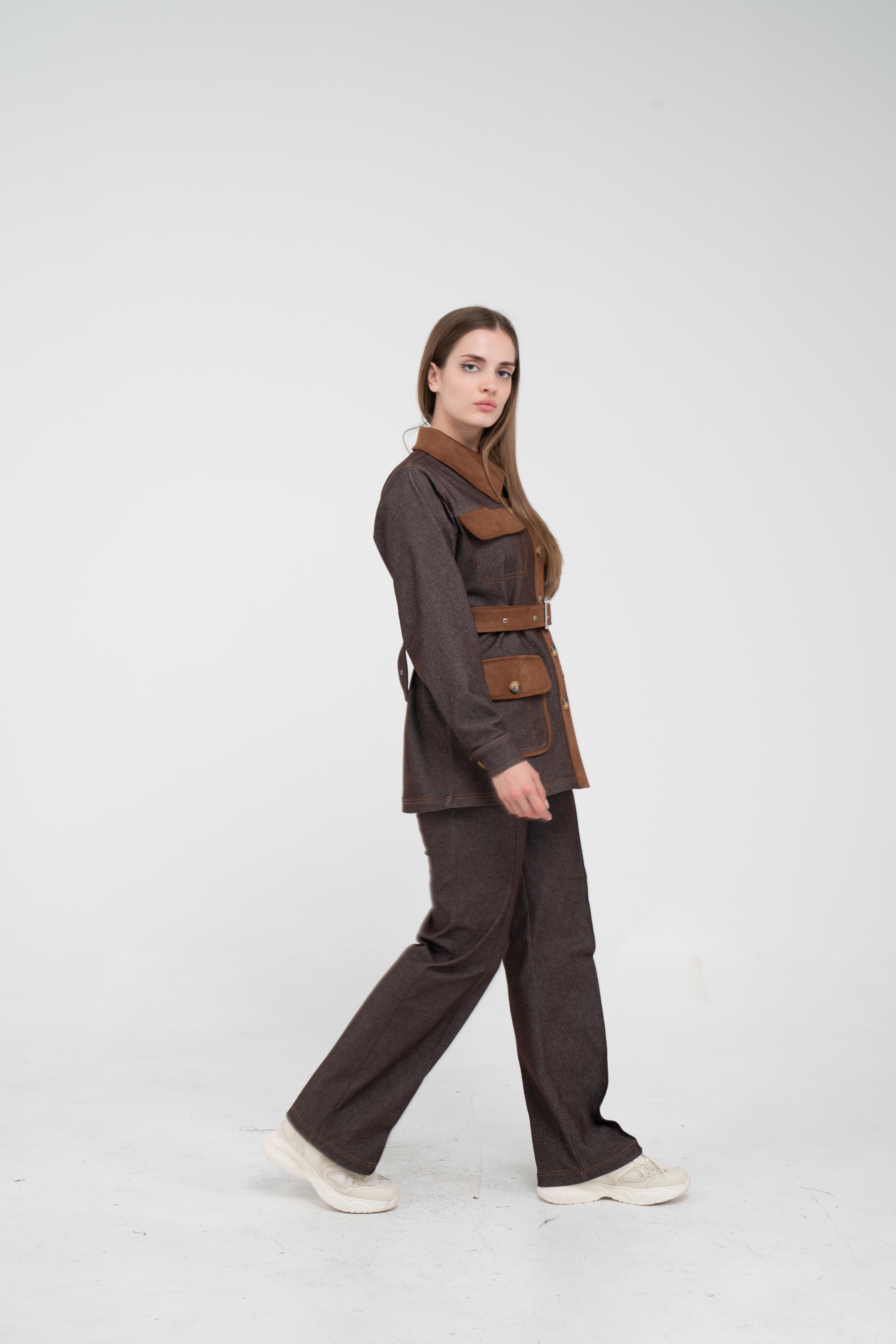 Alt parça ise rahat kesimli pantolonuyla gün boyu konfor sunar. Hem günlük kombinlerde hem de ofis stilinde kullanılabilecek çok yönlü bir takımdır. Spor ayakkabılarla casual, topuklu botlarla daha şık bir tarz oluşturmak mümkündür.