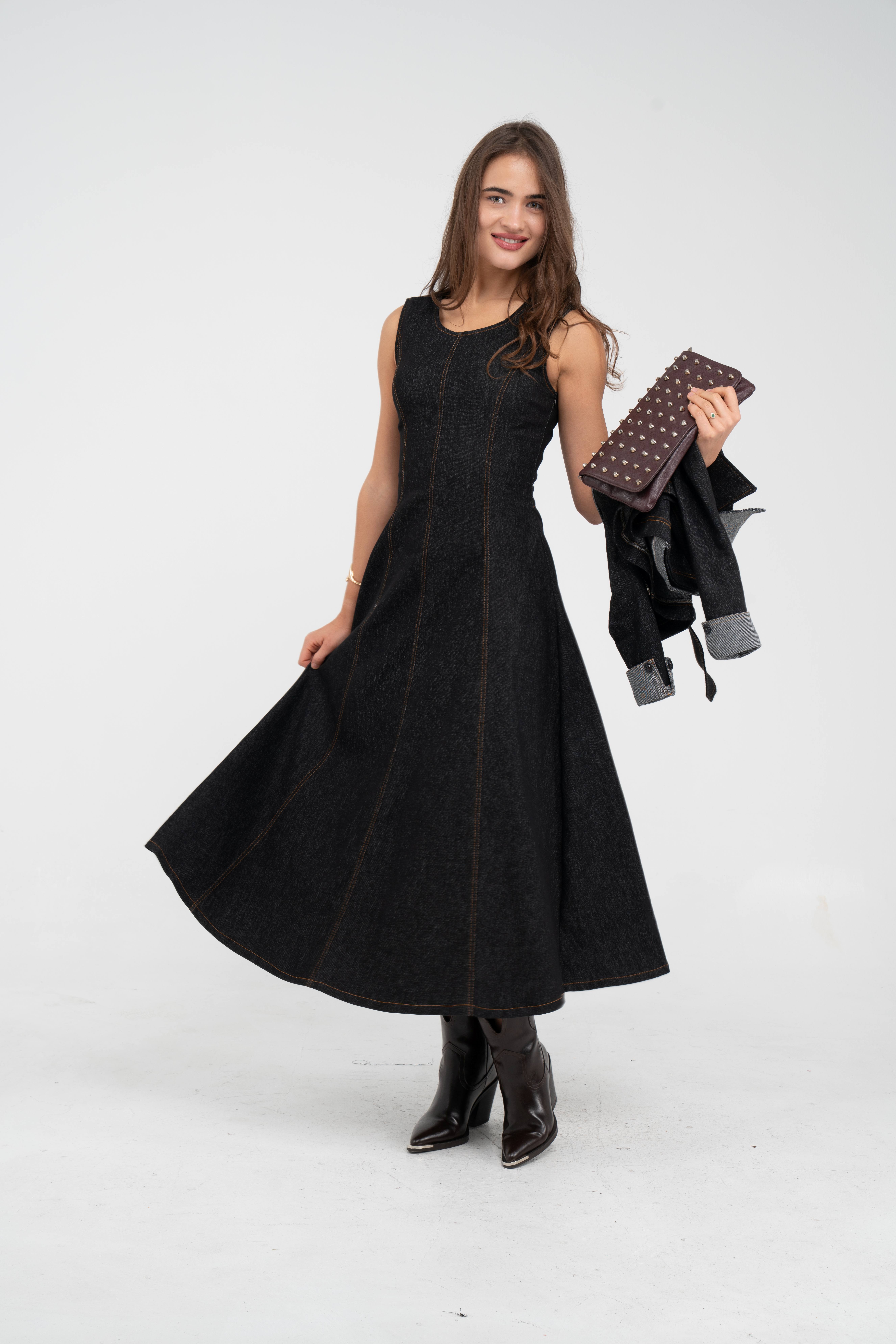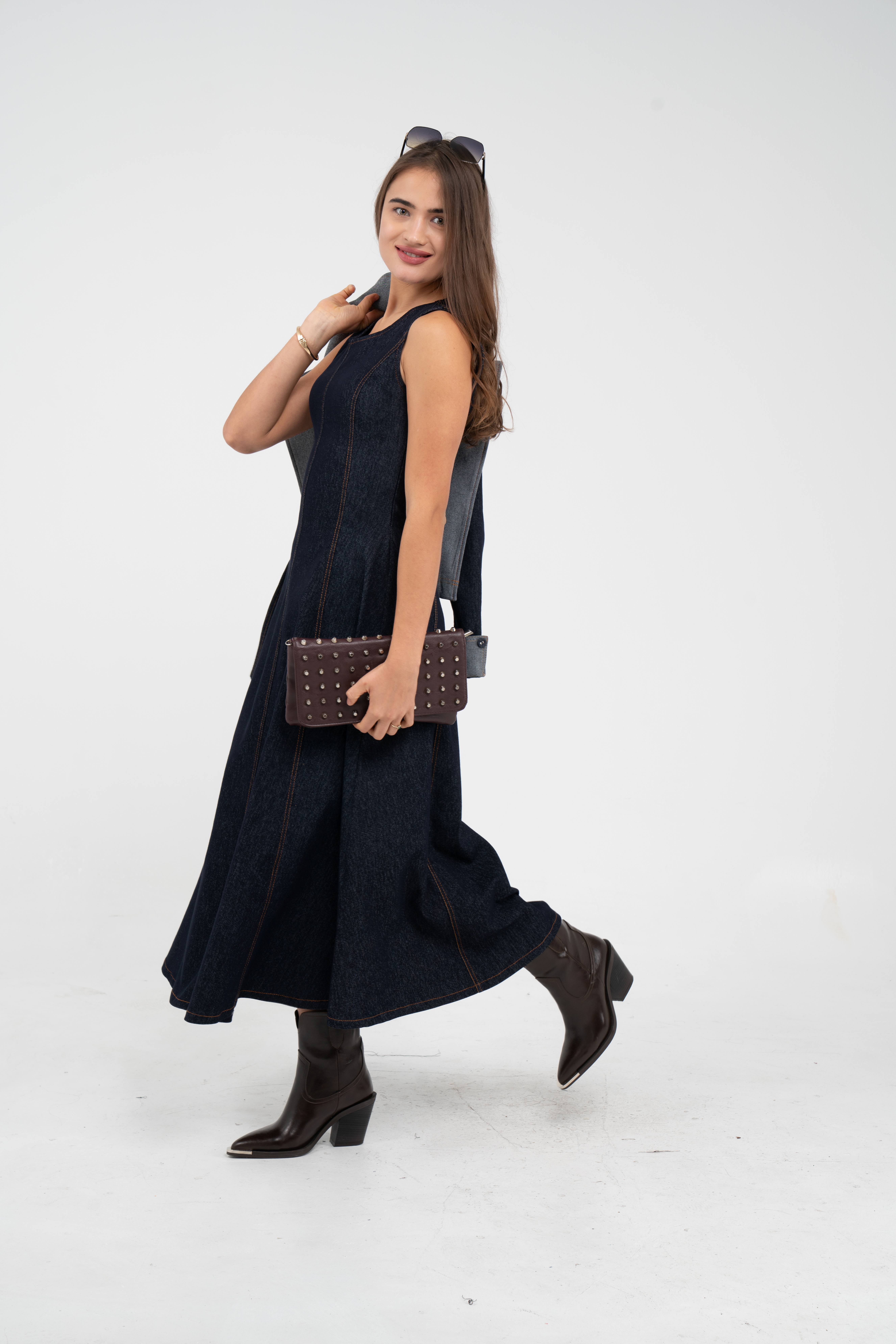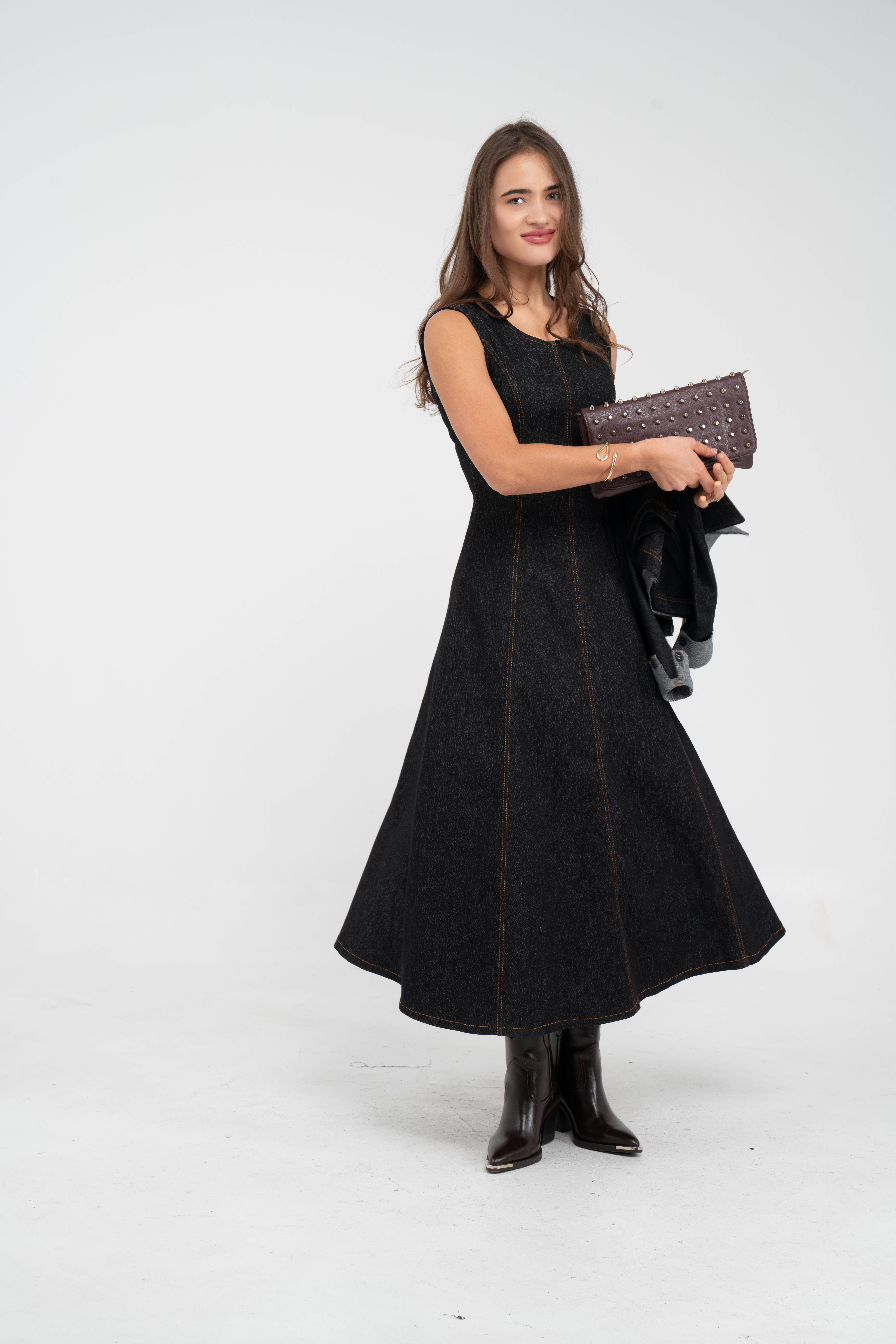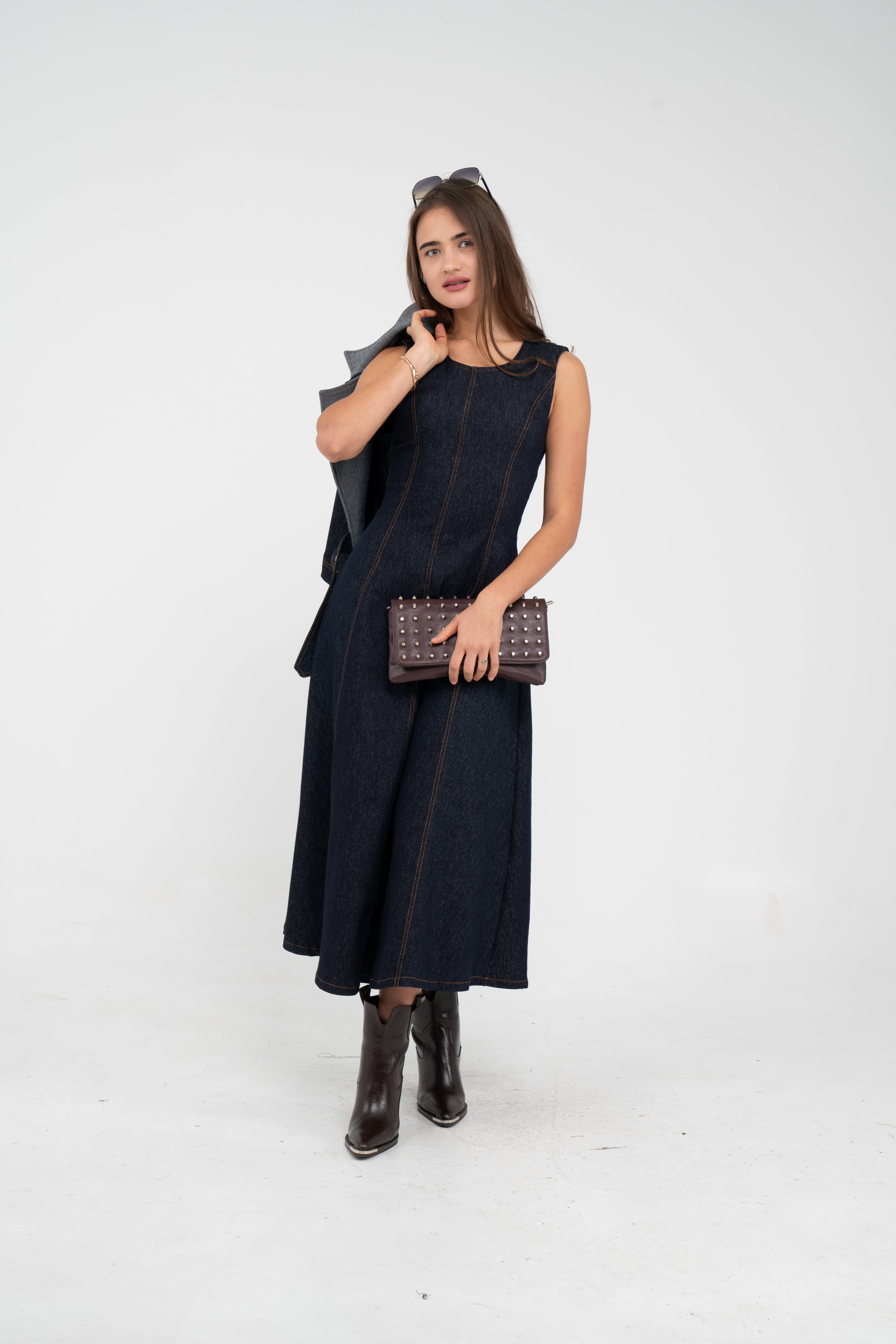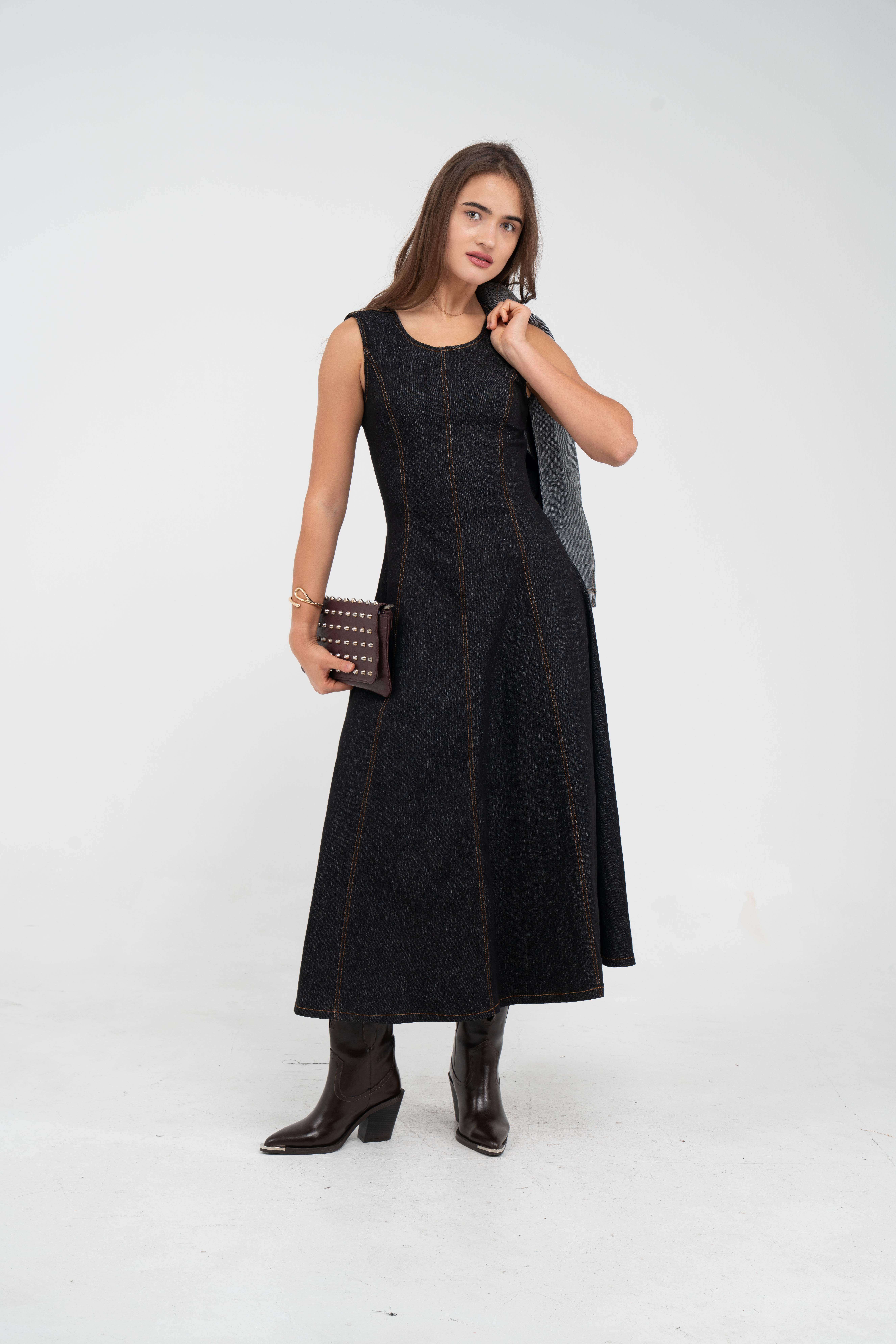 Alt parça ise akıcı kesime sahip uzun elbisesiyle rahat ve şık bir görünüm oluşturur. Kumaşın dokusu, formu düzgün bir şekilde koruyarak hem günlük kullanıma hem de özel gün stiline uyum sağlar. Topuklu botlar ve minimal aksesuarlarla tamamlandığında sofistike bir tarz ortaya çıkar.