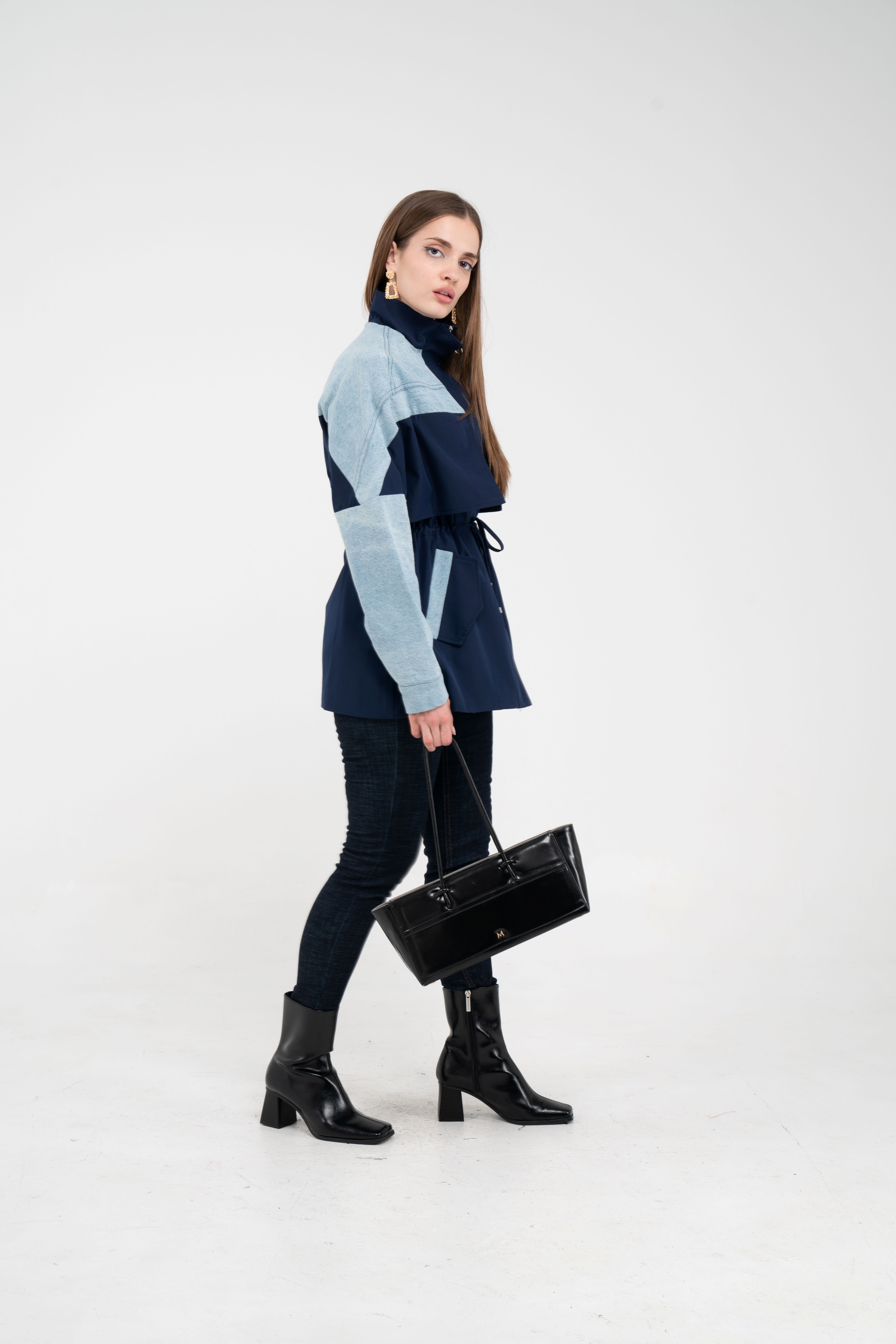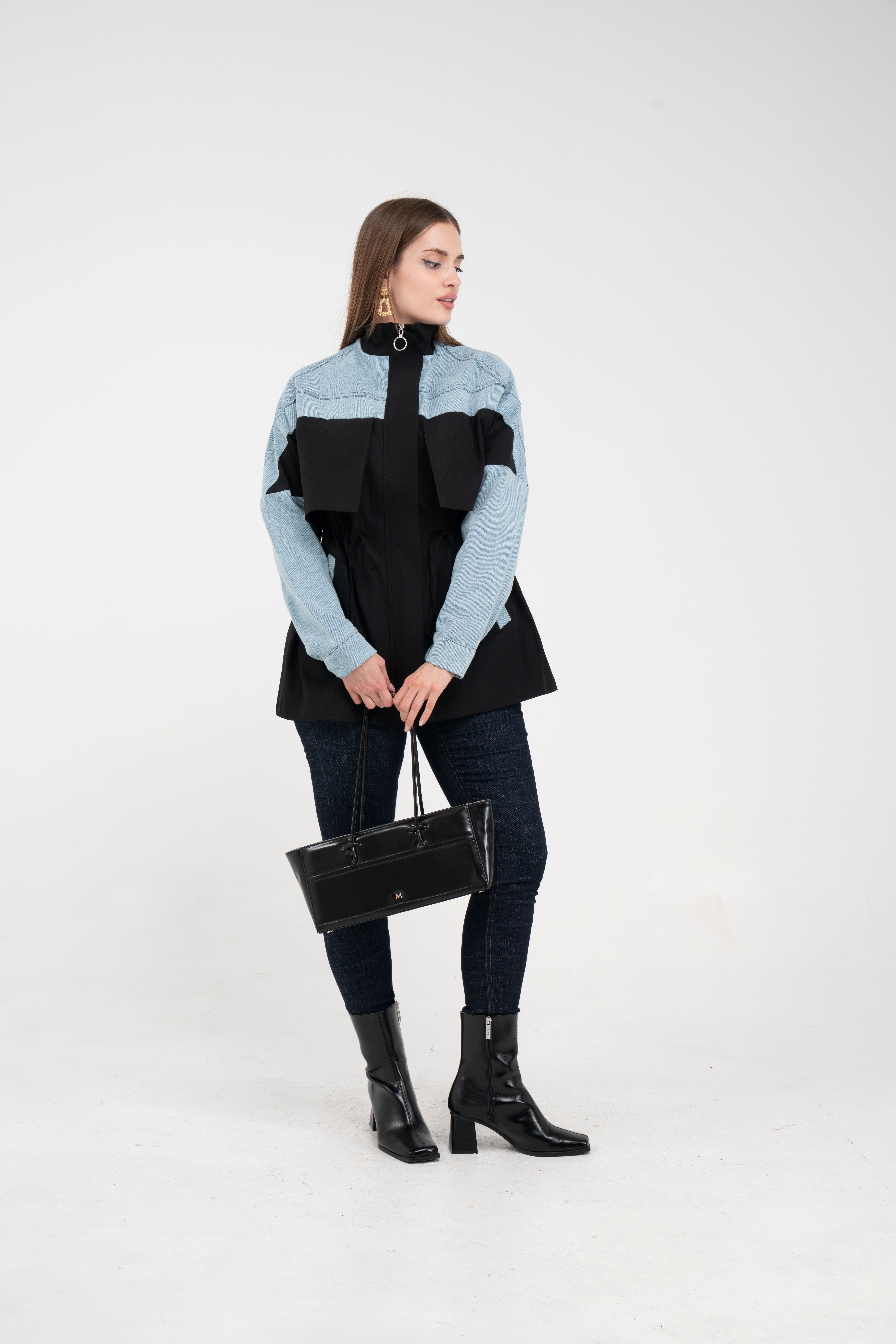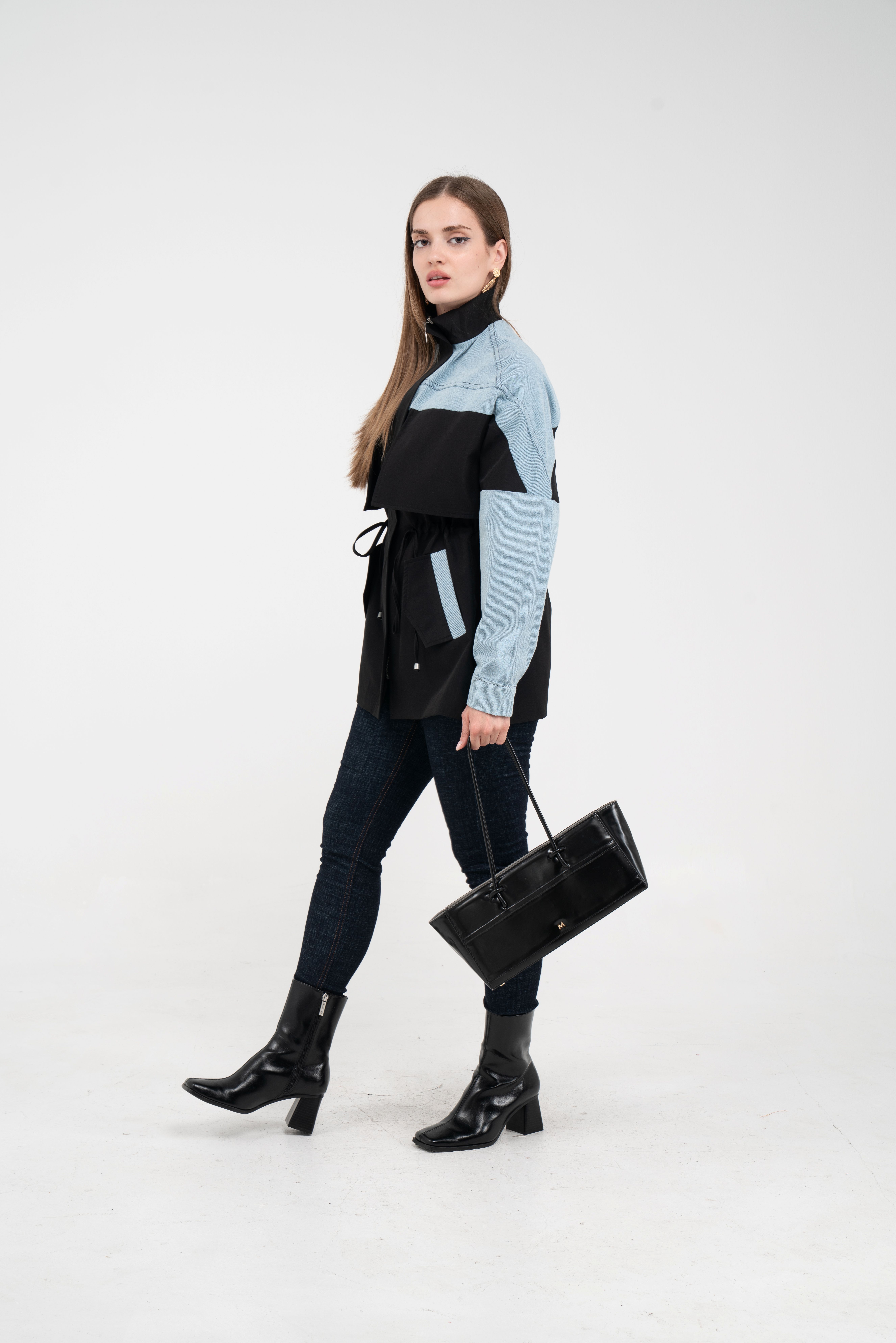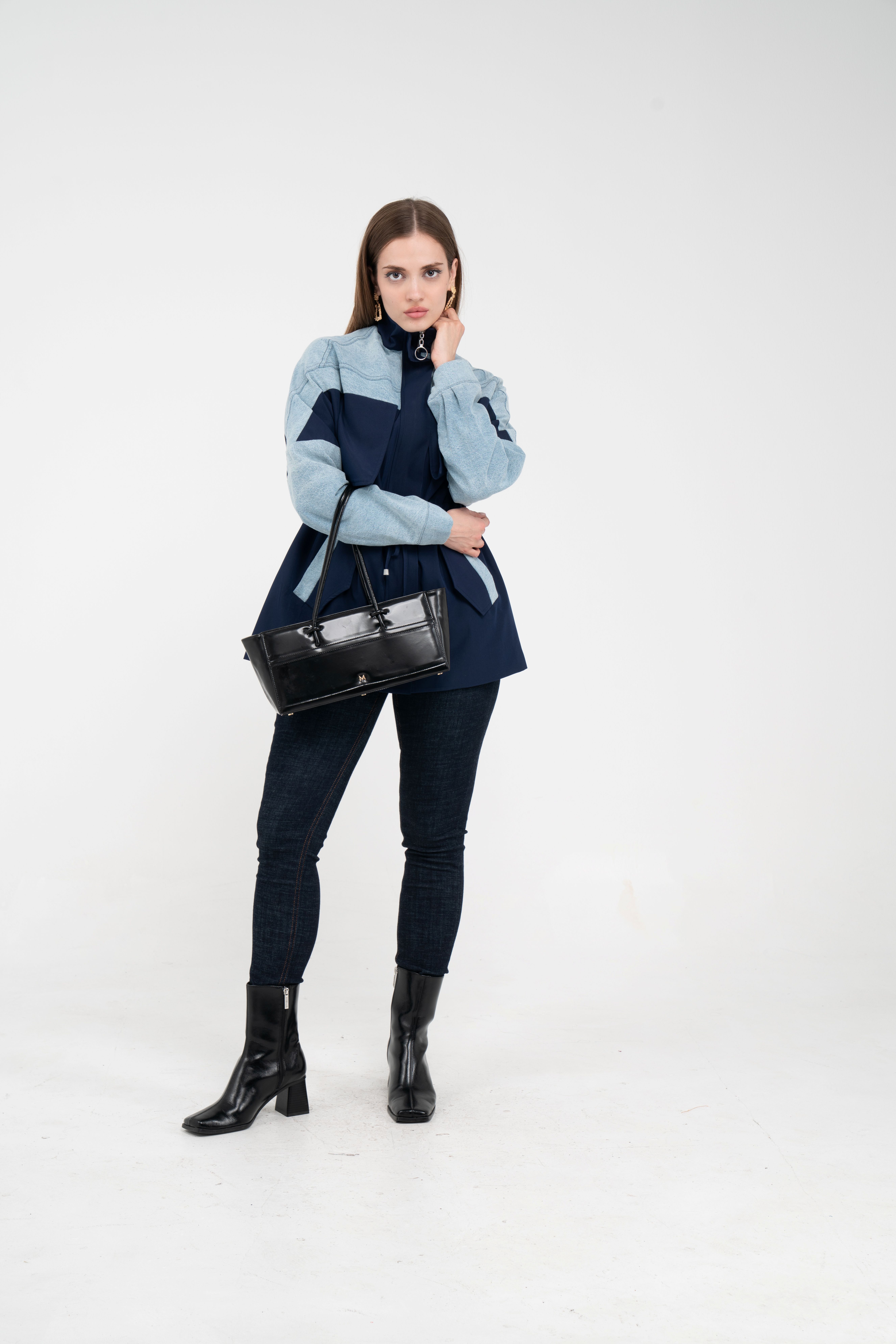 Gelince Haber VerSportif ve modern çizgiyi bir araya getiren bu kot detaylı tunik, günlük stilin vazgeçilmez parçalarından biri. Üst kısmındaki açık mavi denim dokusu, siyah bölümle kontrast oluşturarak güçlü bir tarz ortaya çıkarır.