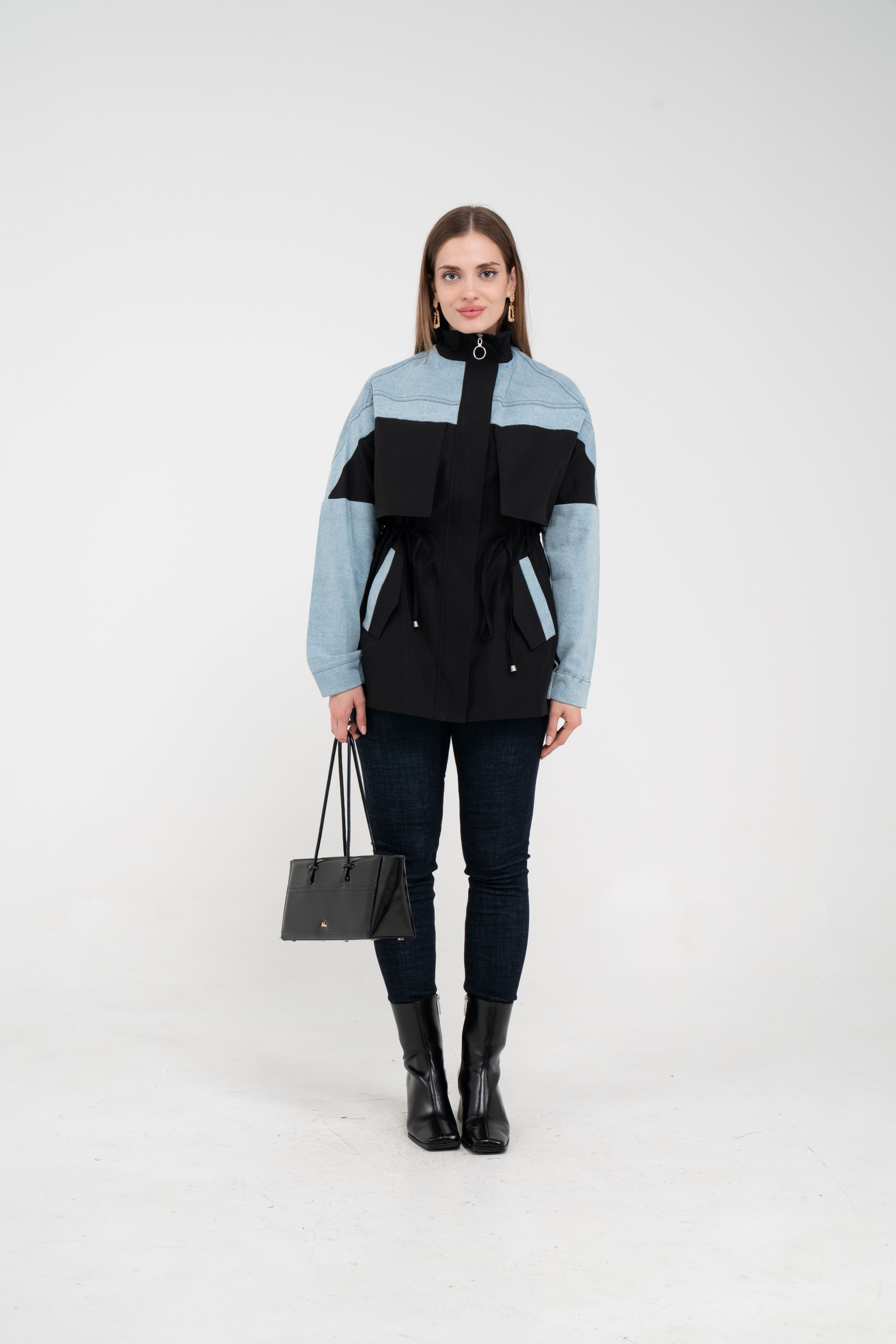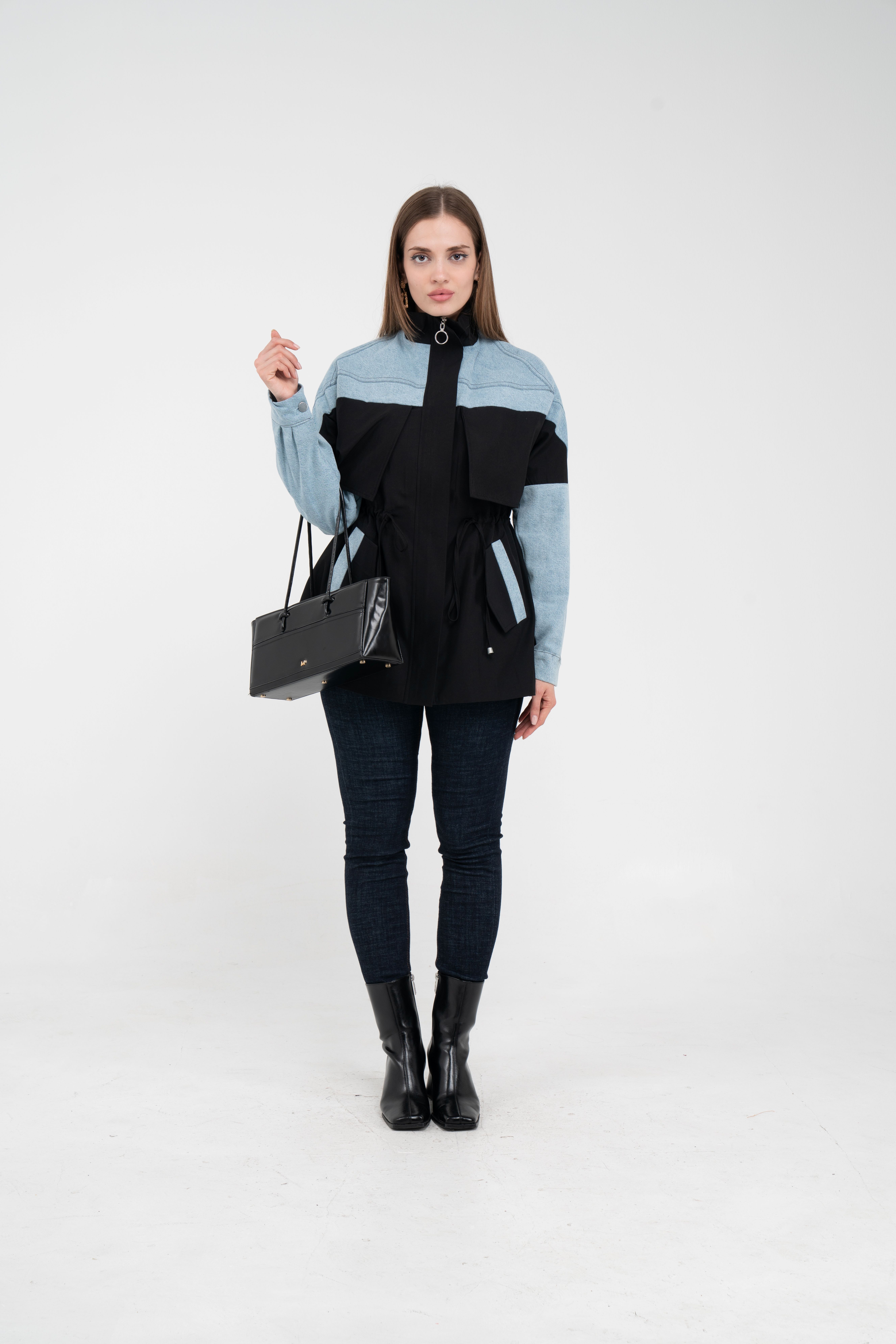 Fermuarlı yaka detayı, ayarlanabilir bel kısmı ve büyük cepleri hem pratik hem de şık bir kullanım sunar. Kotun doğal duruşu ile siyah kumaşın modern formu birleşerek çok yönlü bir görünüm oluşturur. Jean pantolonlar, kumaş pantolonlar veya taytlarla kolayca kombin edilebilir.