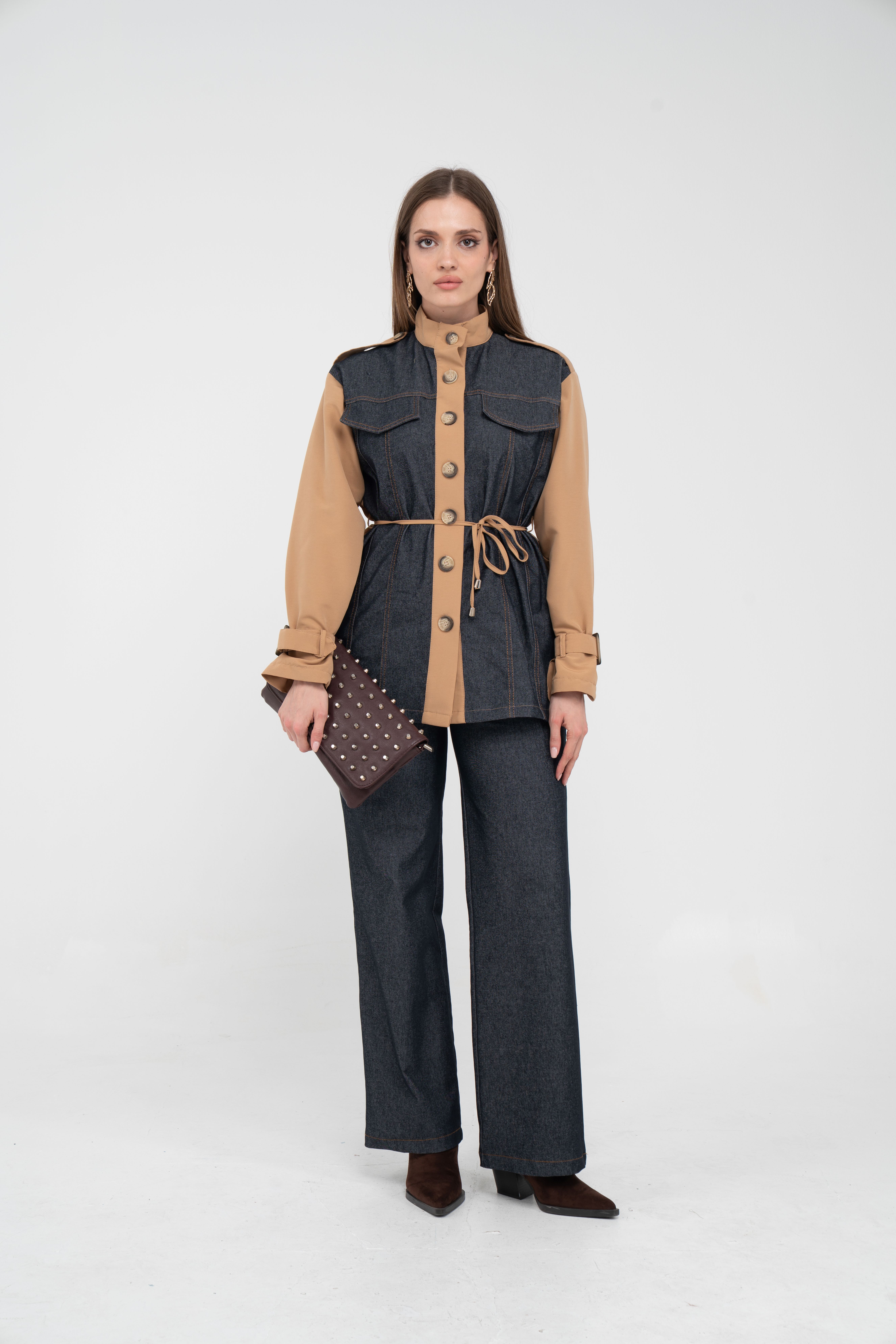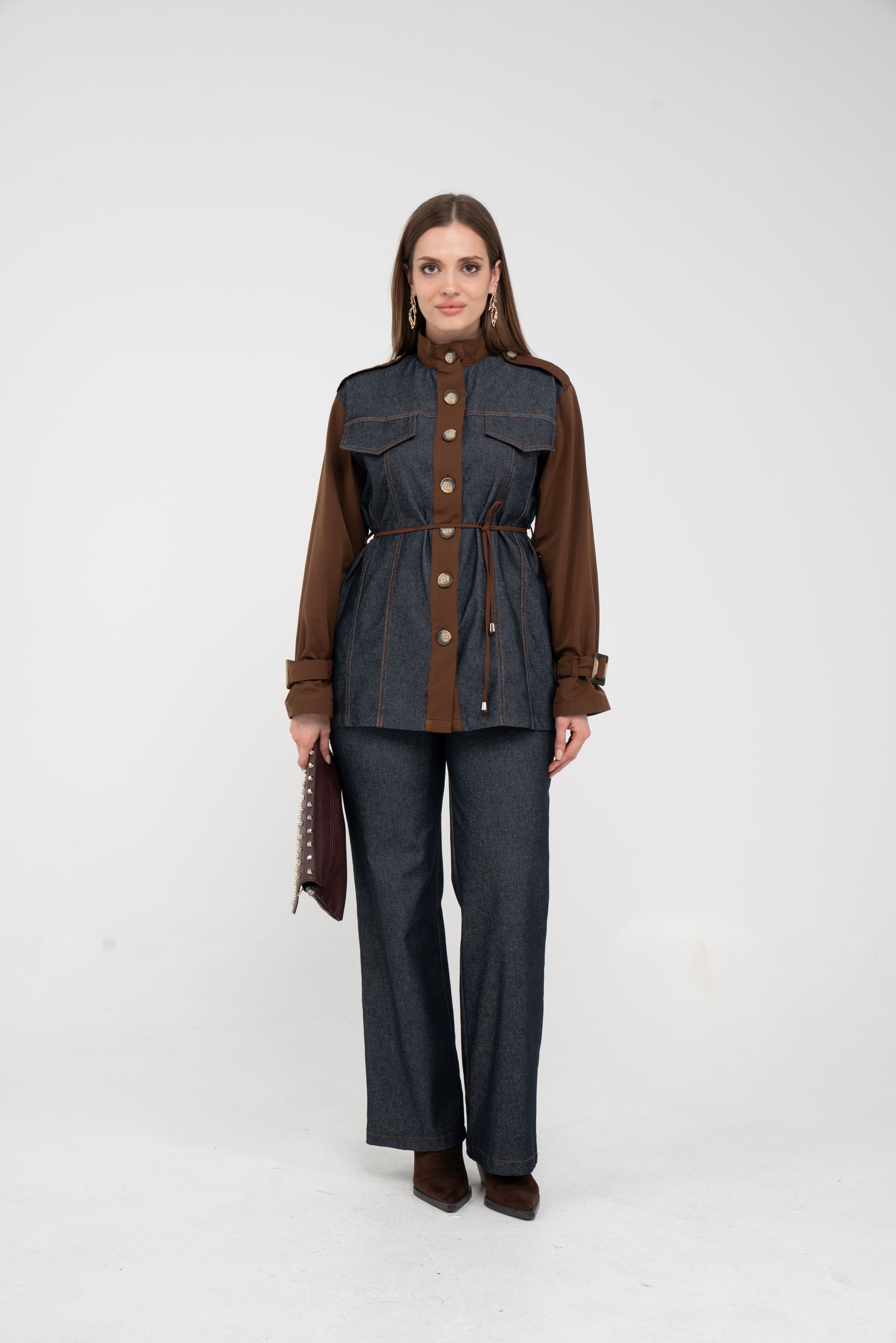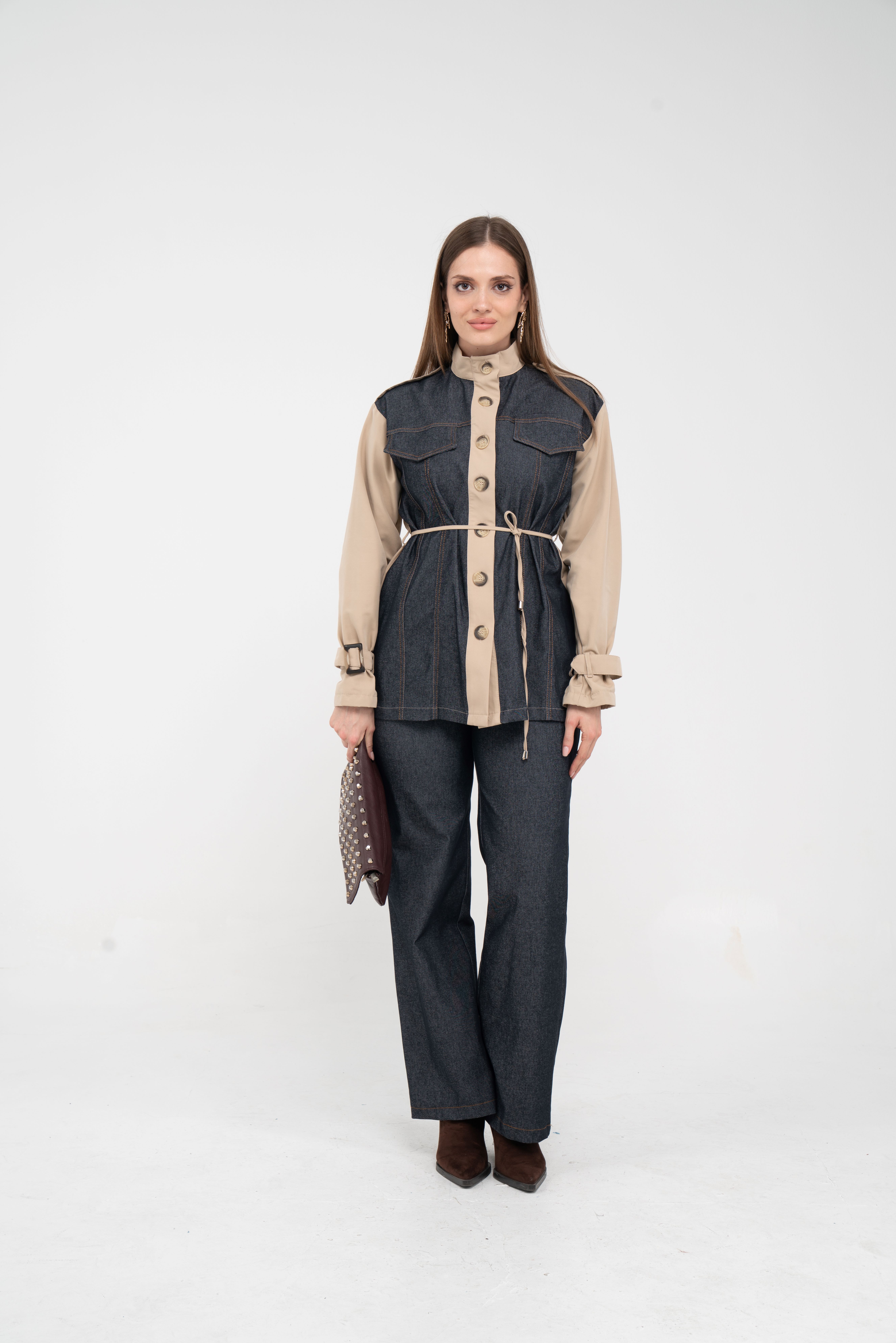 Gelince Haber VerGünün her anına uyum sağlayan bu kot görünümlü haki detaylı ikili takım, rahatlığı ve tarzı bir araya getiriyor.