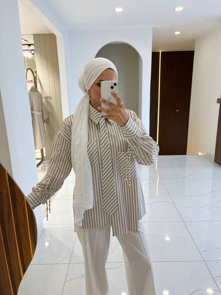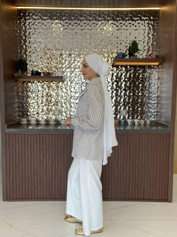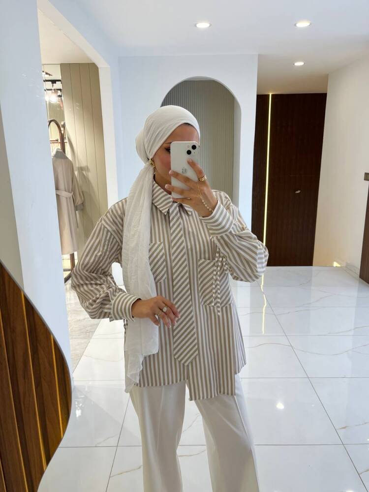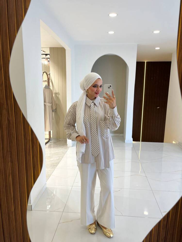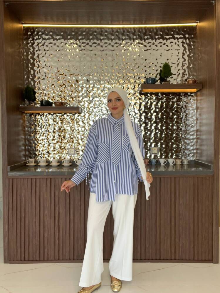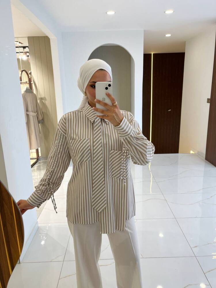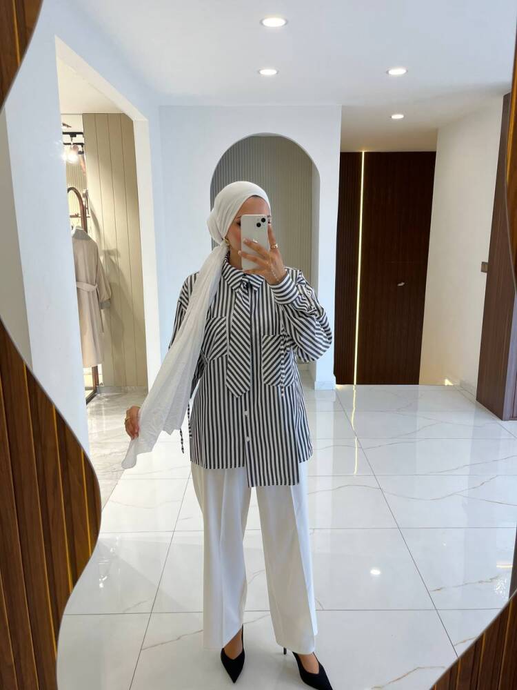 Gelince Haber VerKravat detaylı çizgili kadın gömlek, klasik şıklığı modern bir dokunuşla buluşturuyor. Dikey çizgili deseni vücut formunu zarif gösterirken, göğüs cepleri ve ön kısmındaki kravat detayı dikkat çekici bir duruş kazandırır. Yumuşak kumaş yapısı sayesinde gün boyu konfor sağlar. Ofis kombinlerinden günlük şıklığa kadar geniş bir kullanım alanı sunar. Beyaz veya siyah pantolonlarla kolayca kombinlenebilir.