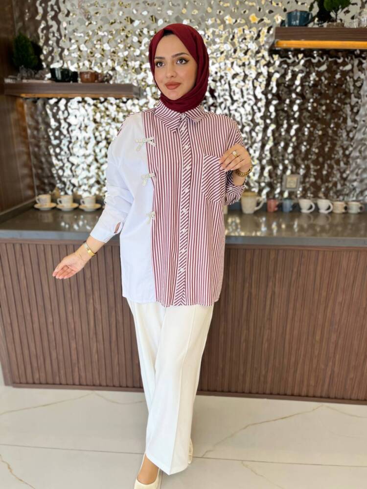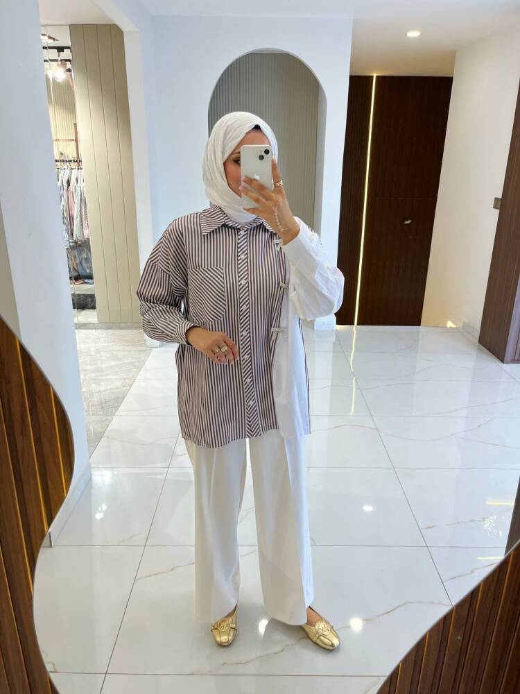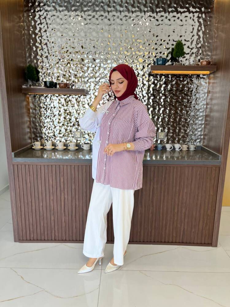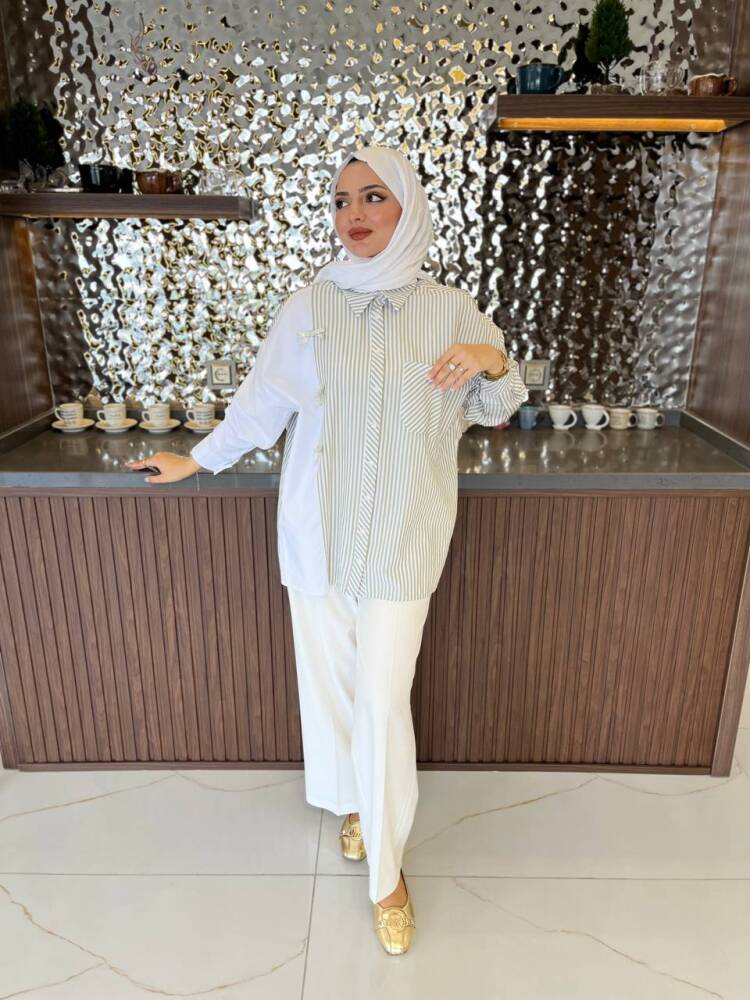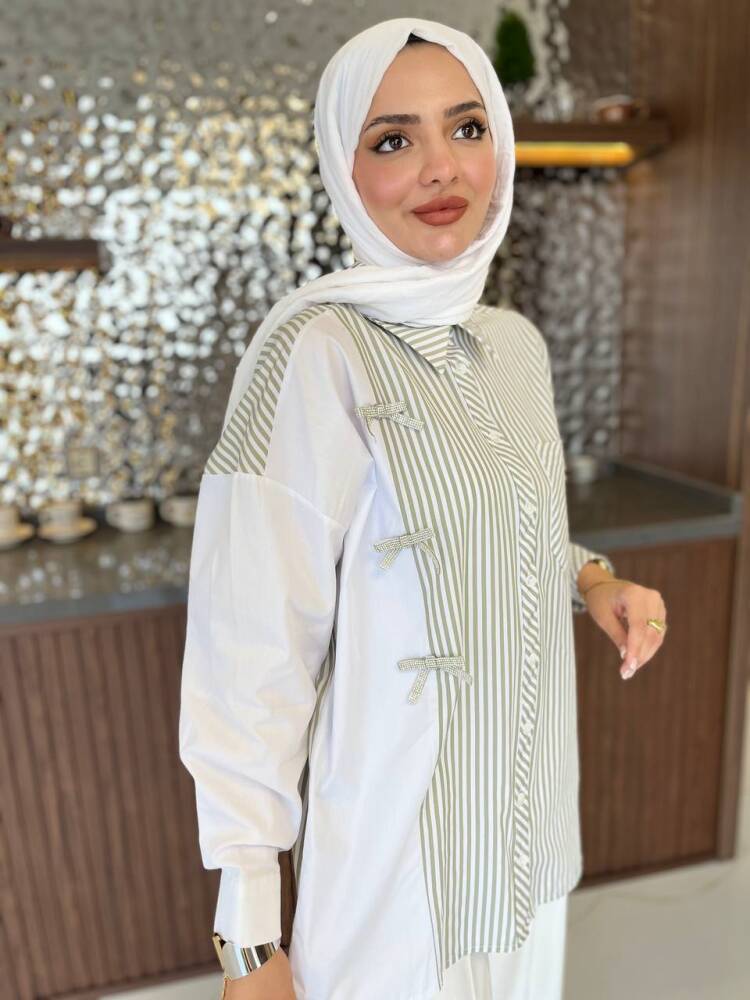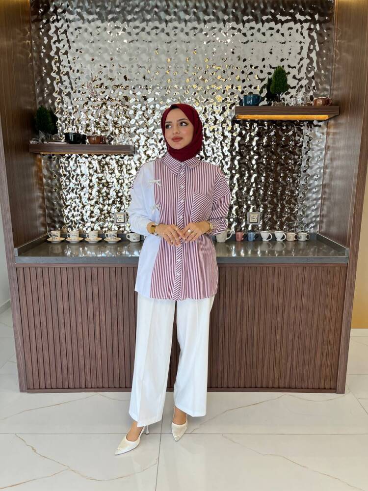Gelince Haber VerZarif çizgili deseni ve fiyonk detaylarıyla öne çıkan bu iki renkli gömlek, modern şıklığın en zarif hali. Rahat kesimi sayesinde günlük kullanıma uygundur, aynı zamanda özel kombinlerde de sofistike bir görünüm sunar.