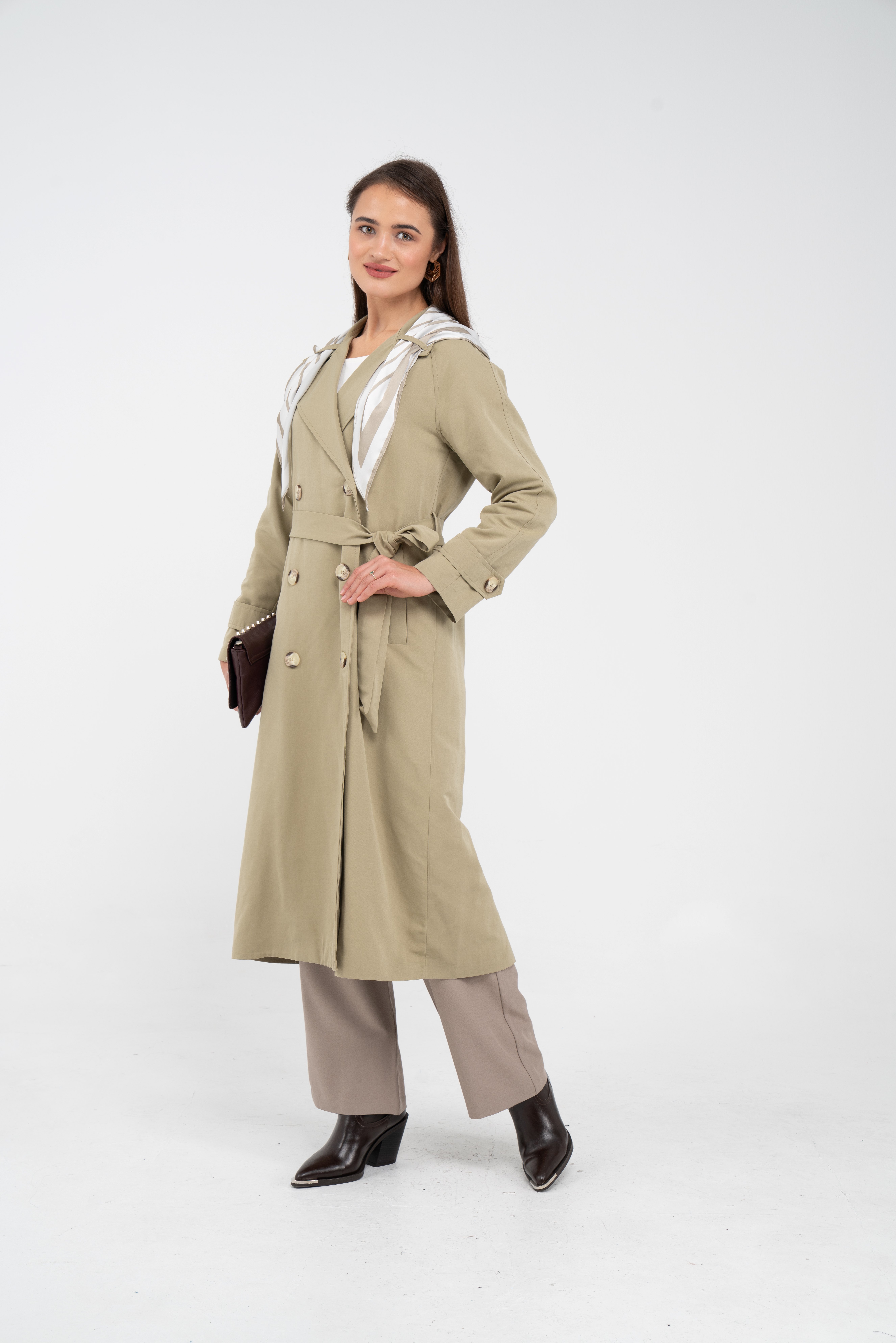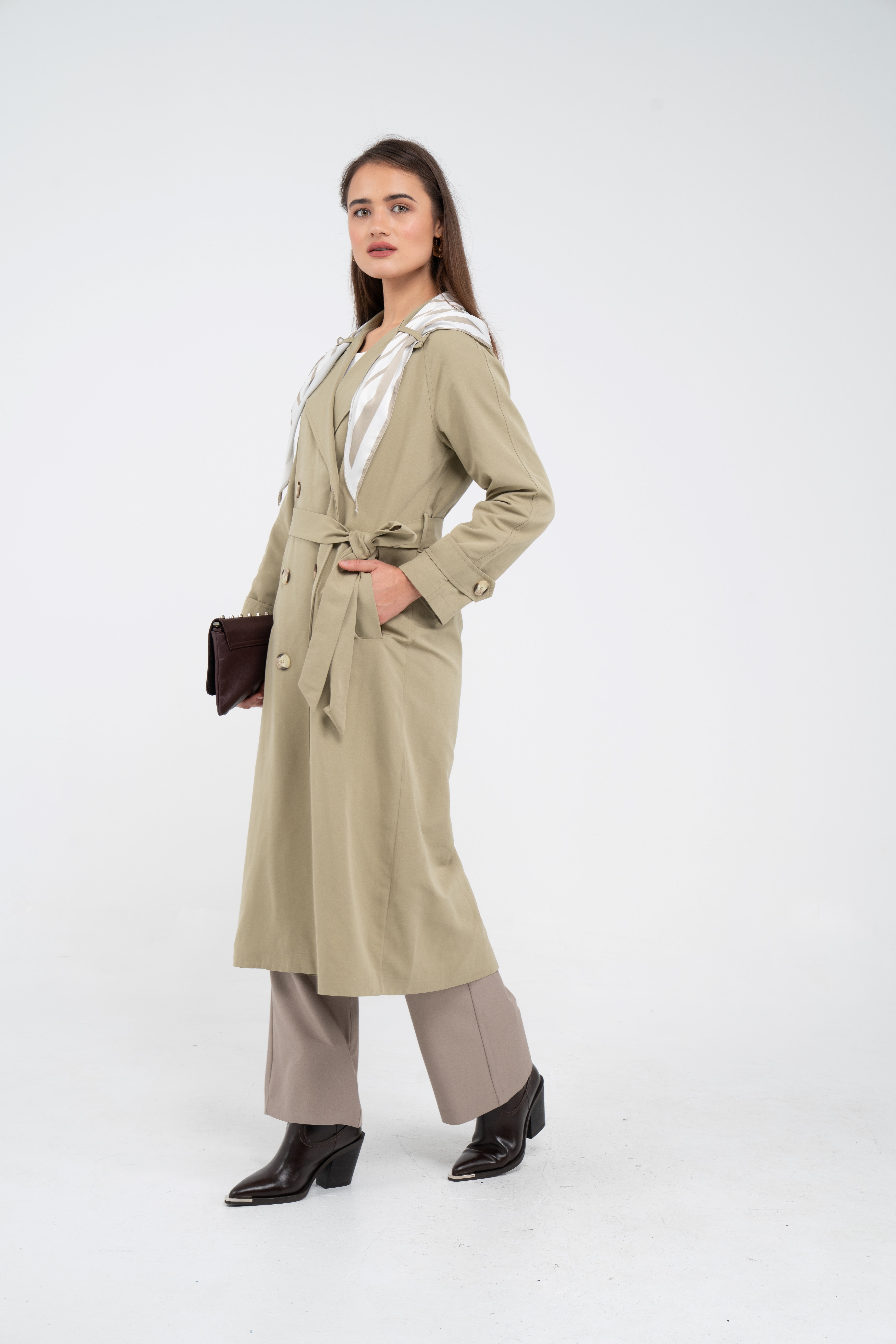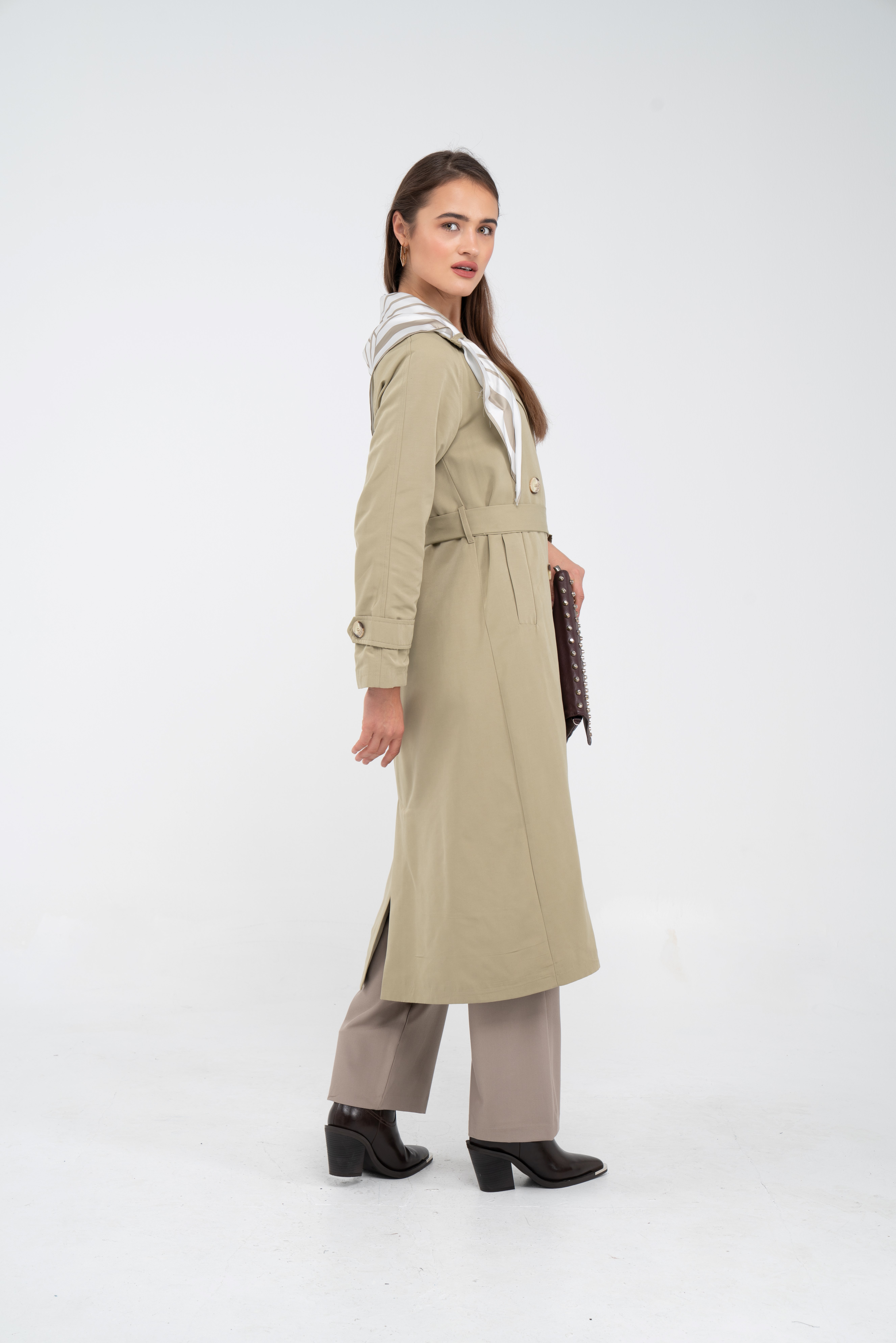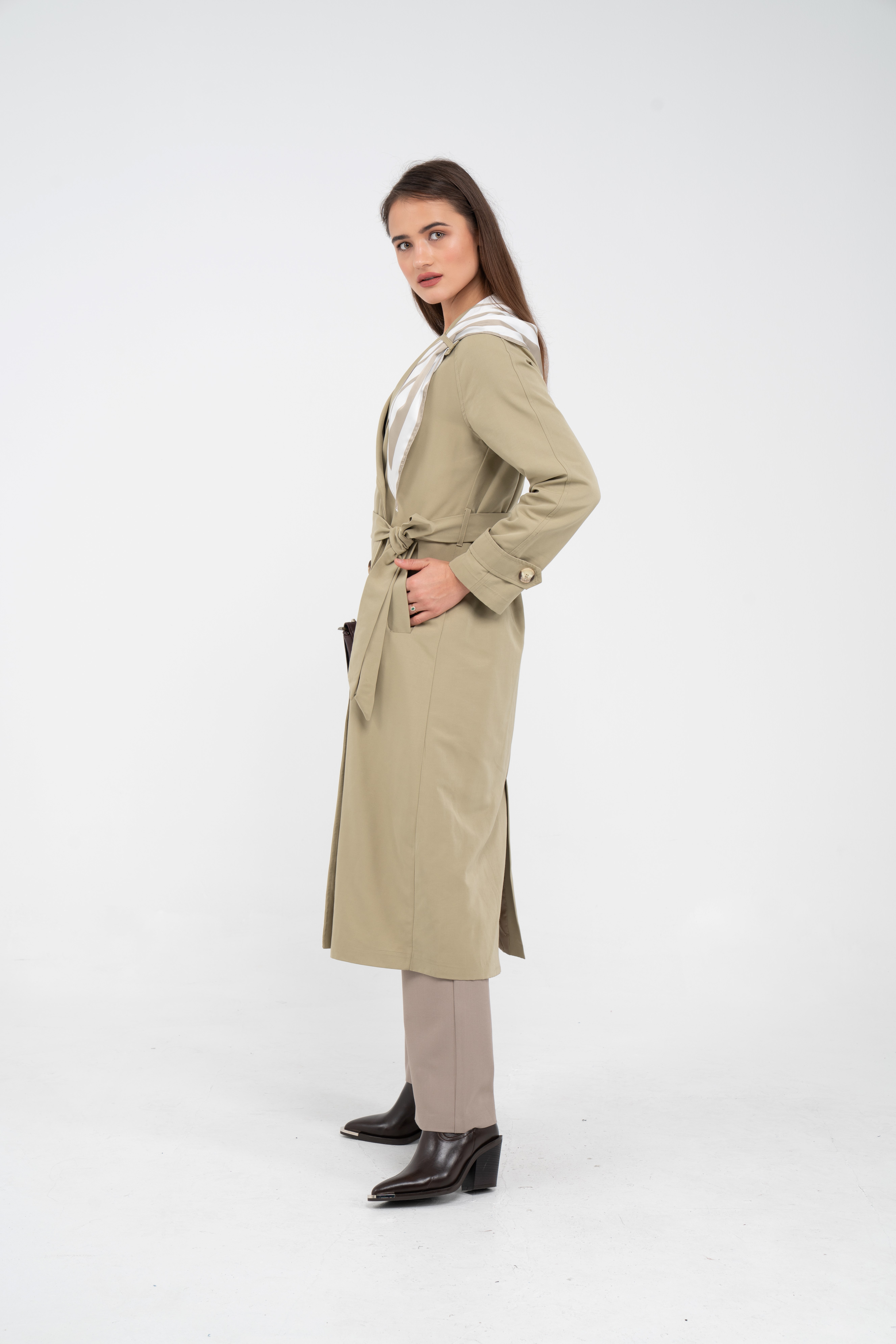 Akıcı kumaşıyla hareket özgürlüğü sağlar ve mevsim geçişlerinde ideal bir dış giyim alternatifi oluşturur. Farklı kombinlerle kolayca tamamlanabilen bu trençkot, dolabınızın vazgeçilmez parçalarından biri olacak.