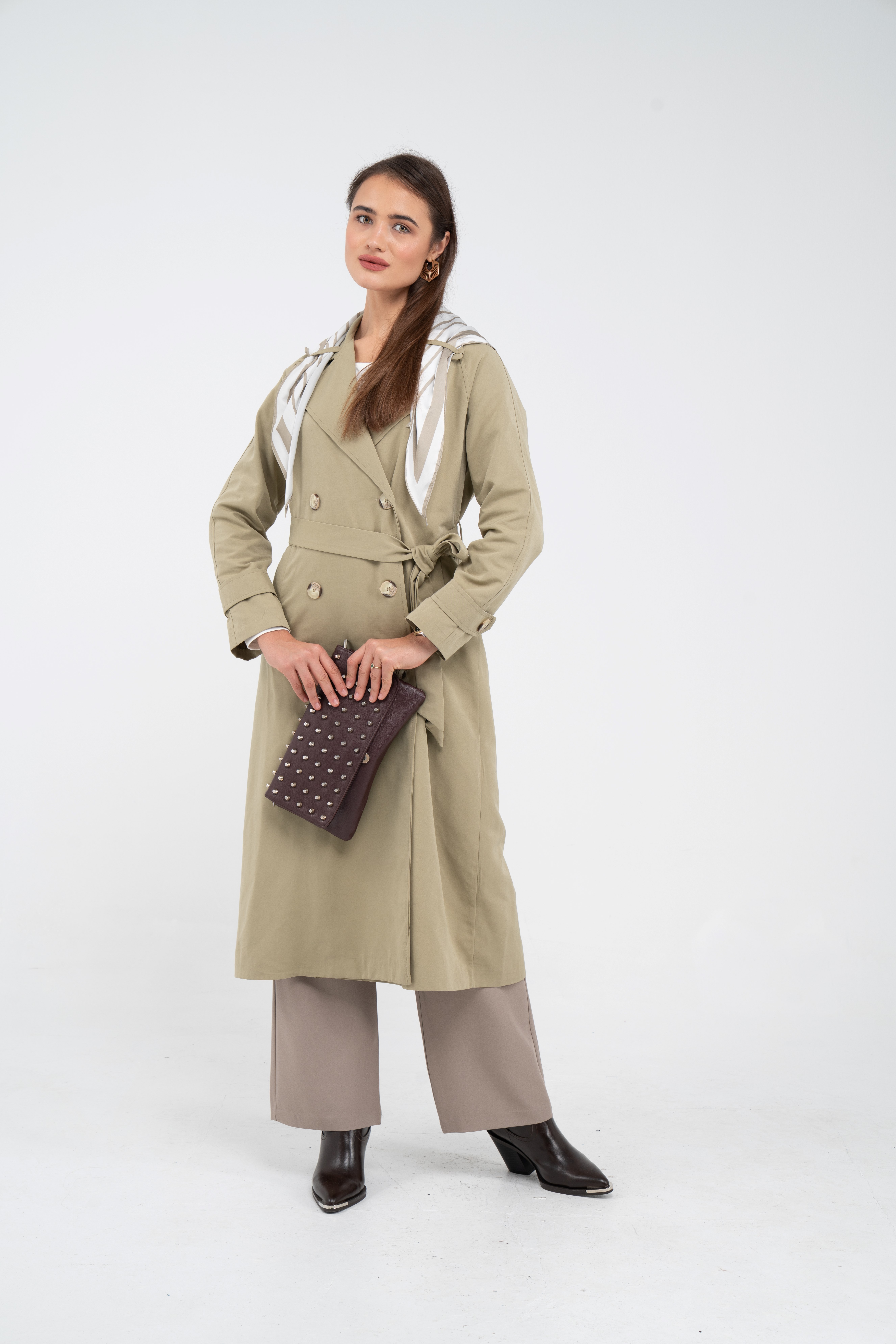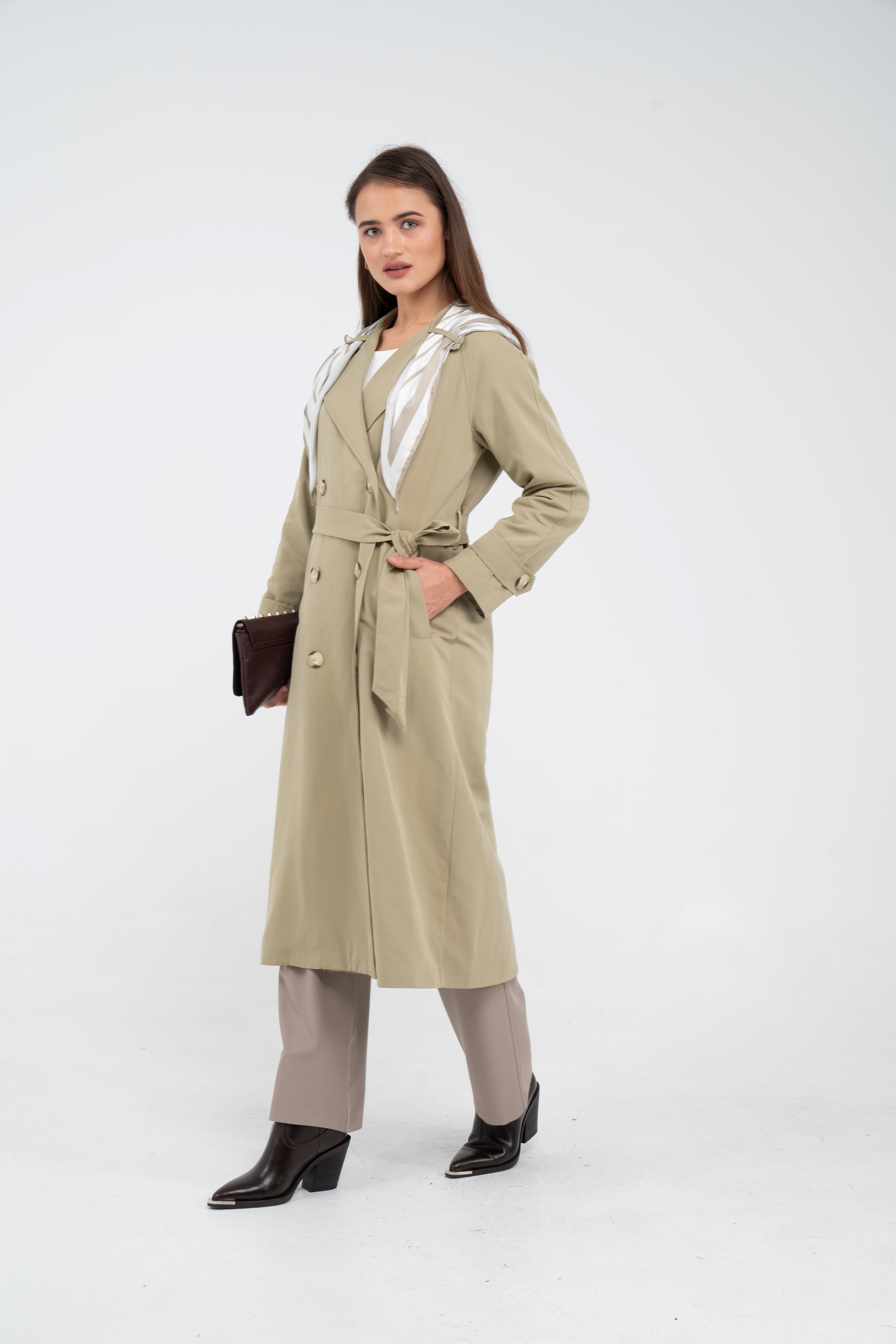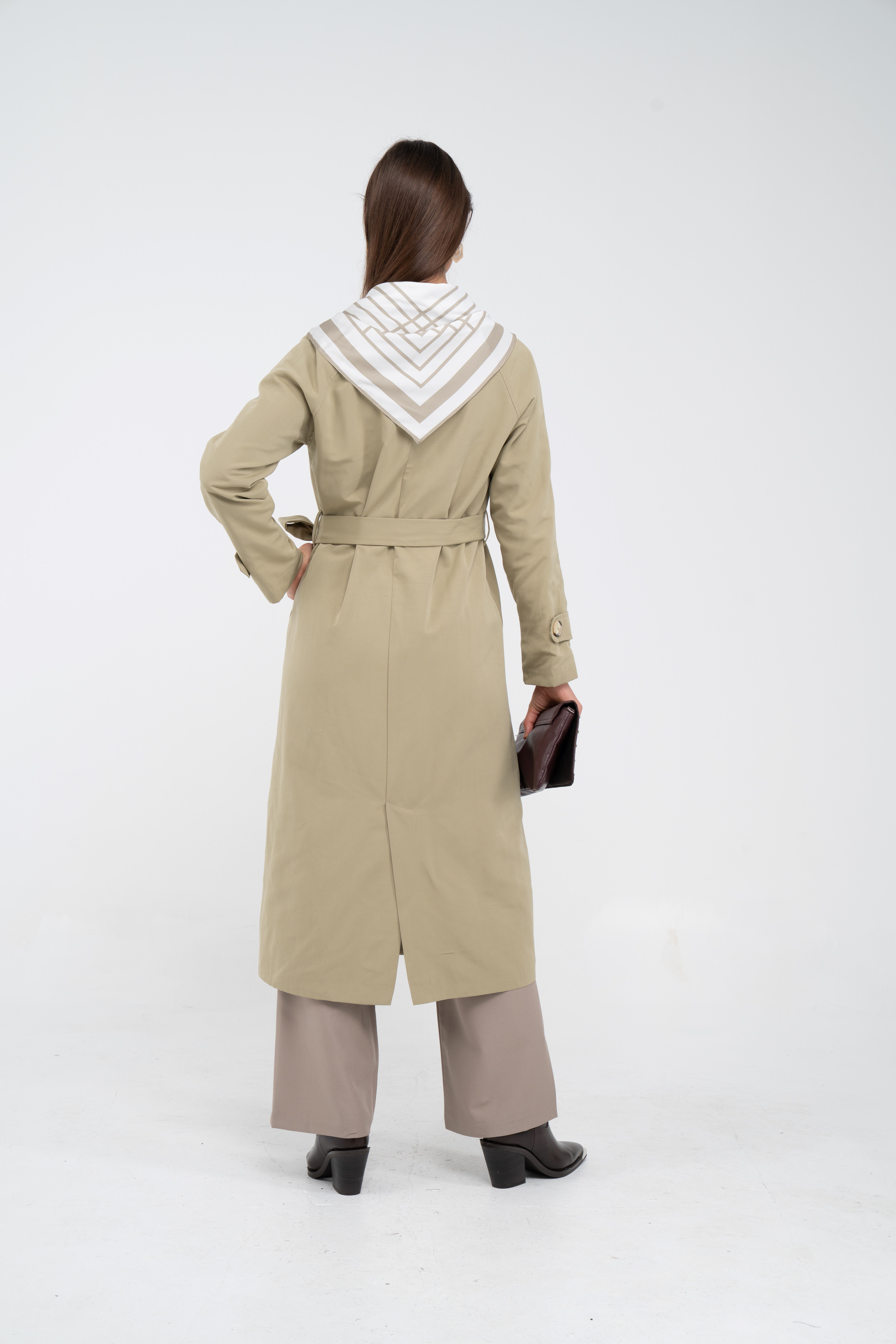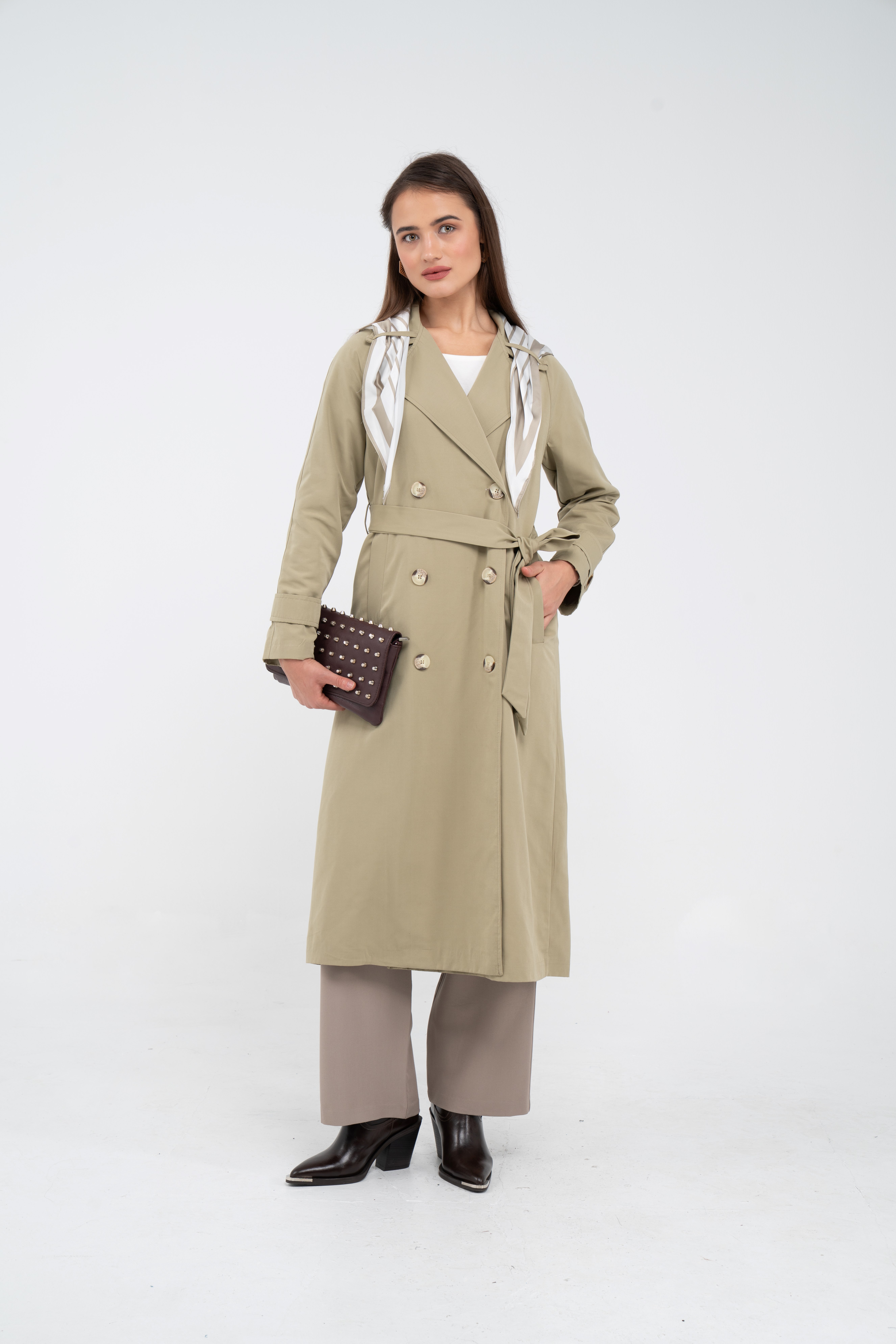 Akıcı kumaşıyla hareket özgürlüğü sağlar ve mevsim geçişlerinde ideal bir dış giyim alternatifi oluşturur. Farklı kombinlerle kolayca tamamlanabilen bu trençkot, dolabınızın vazgeçilmez parçalarından biri olacak.
