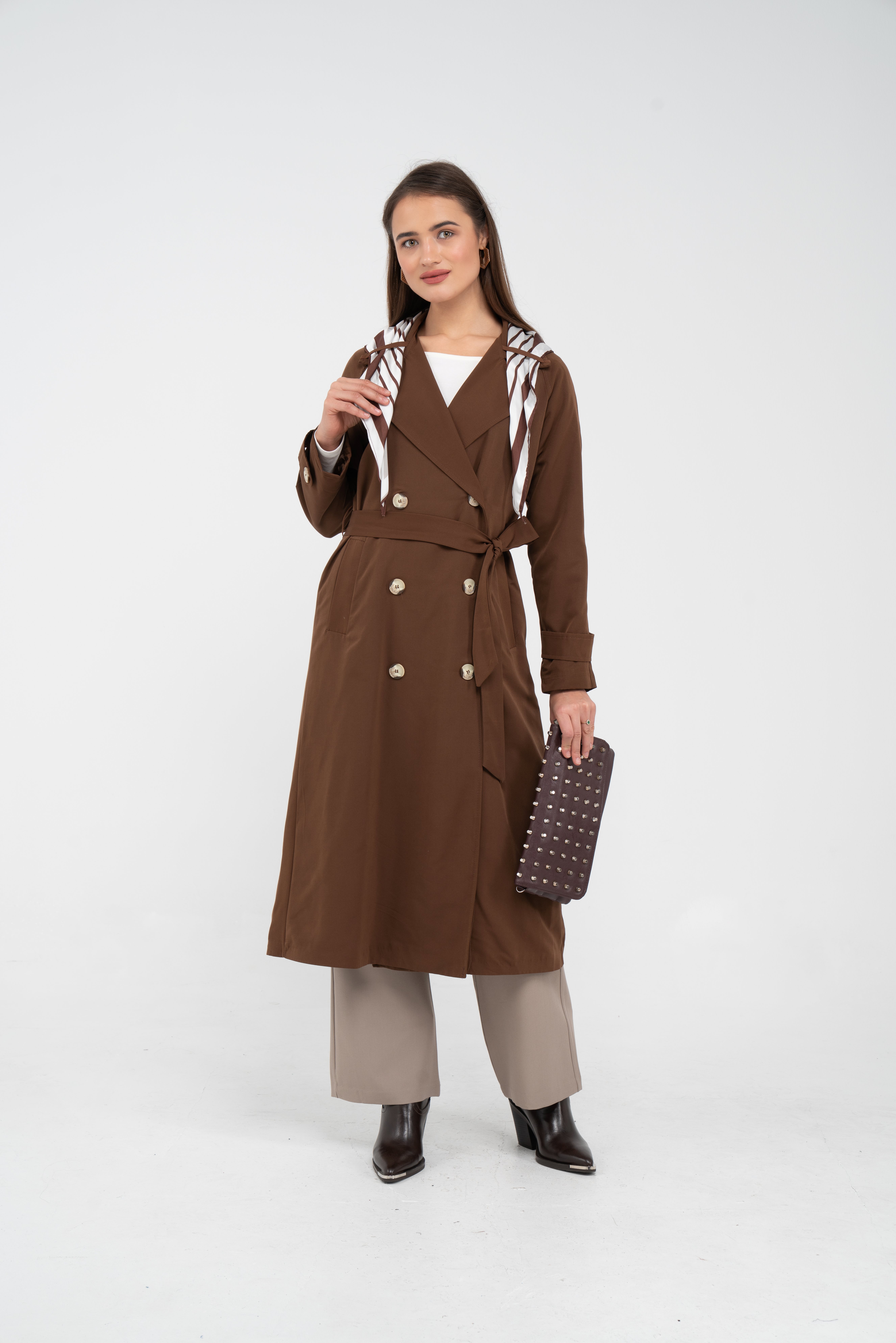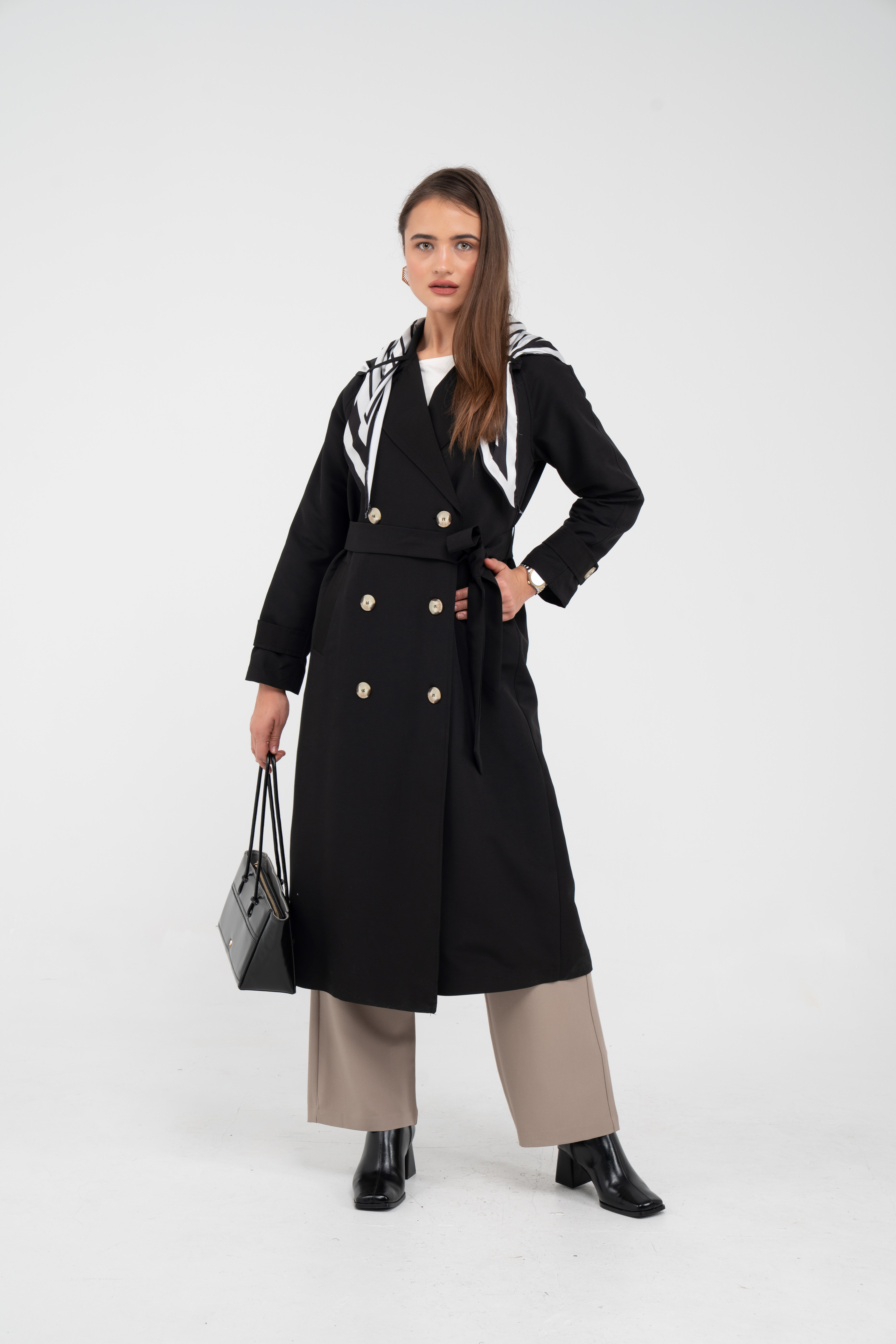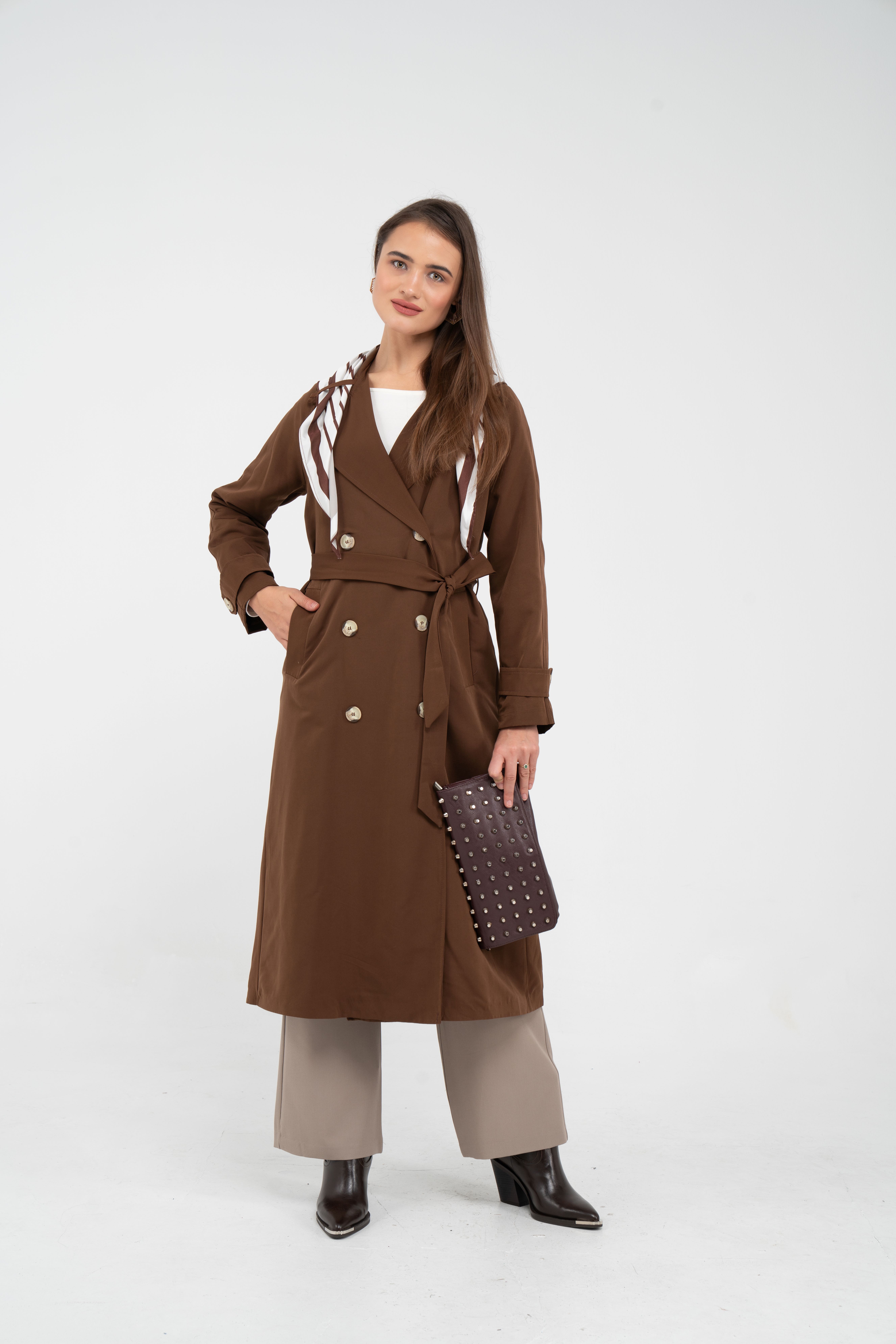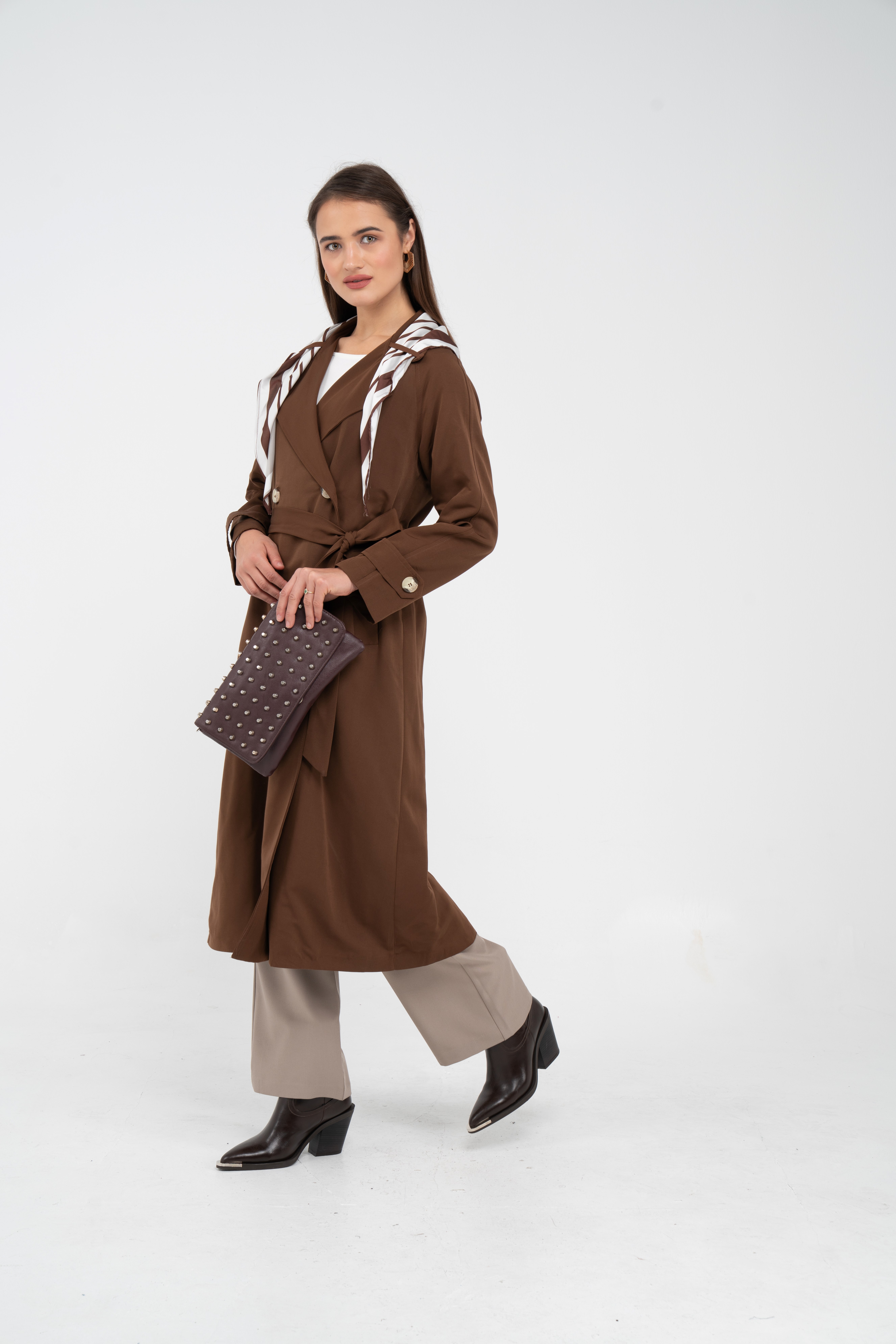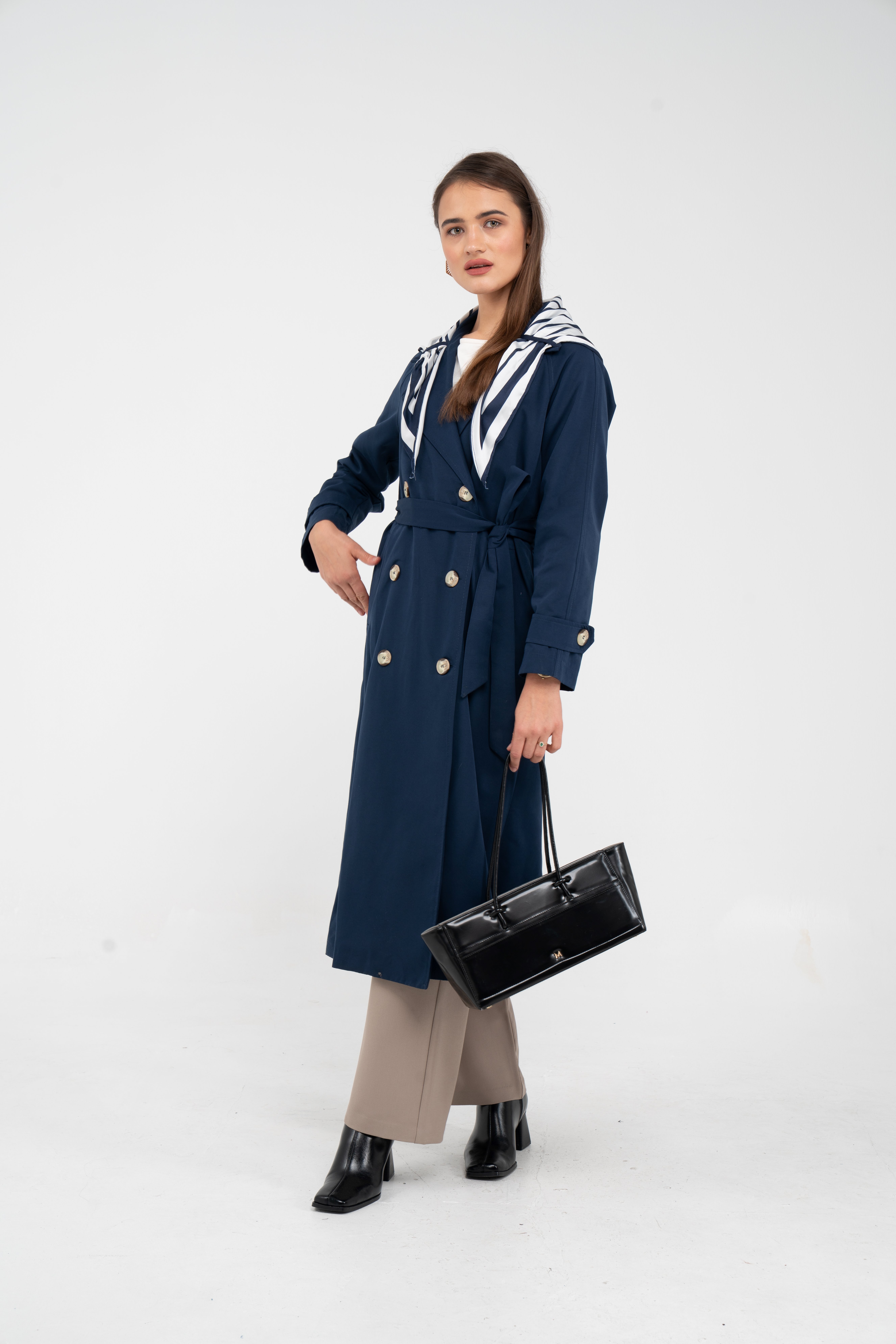 Akıcı kumaşıyla hareket özgürlüğü sağlar ve mevsim geçişlerinde ideal bir dış giyim alternatifi oluşturur. Farklı kombinlerle kolayca tamamlanabilen bu trençkot, dolabınızın vazgeçilmez parçalarından biri olacak.