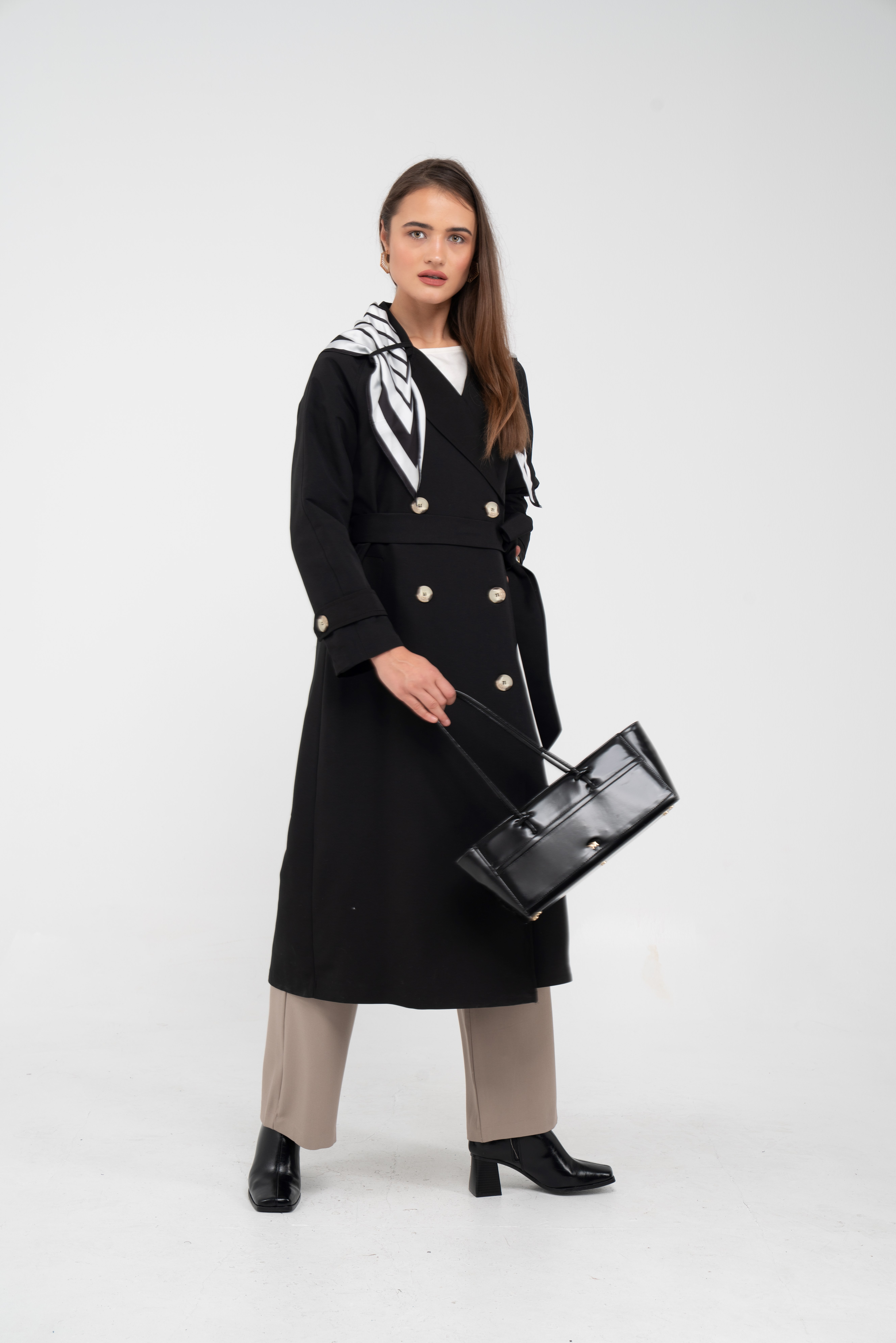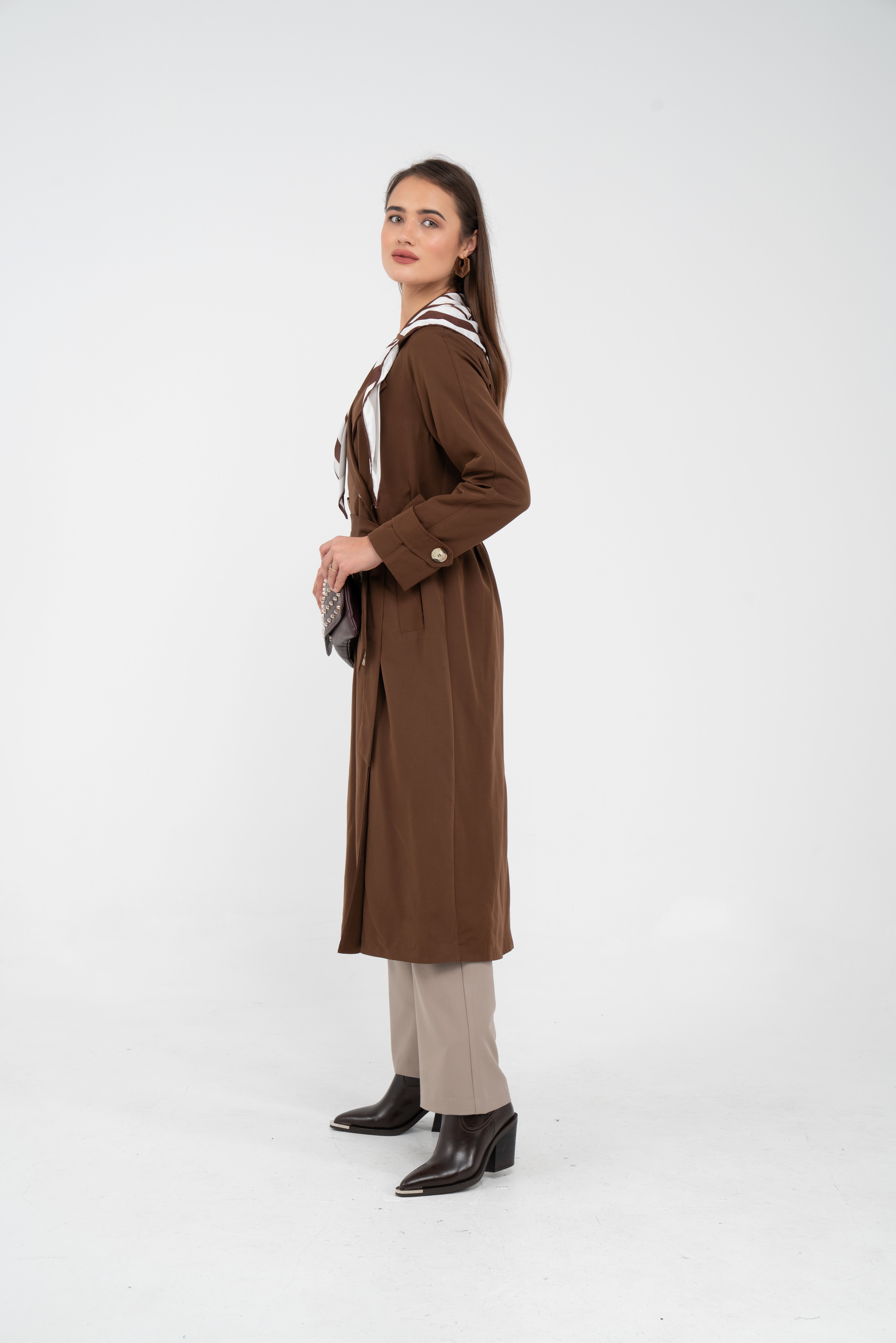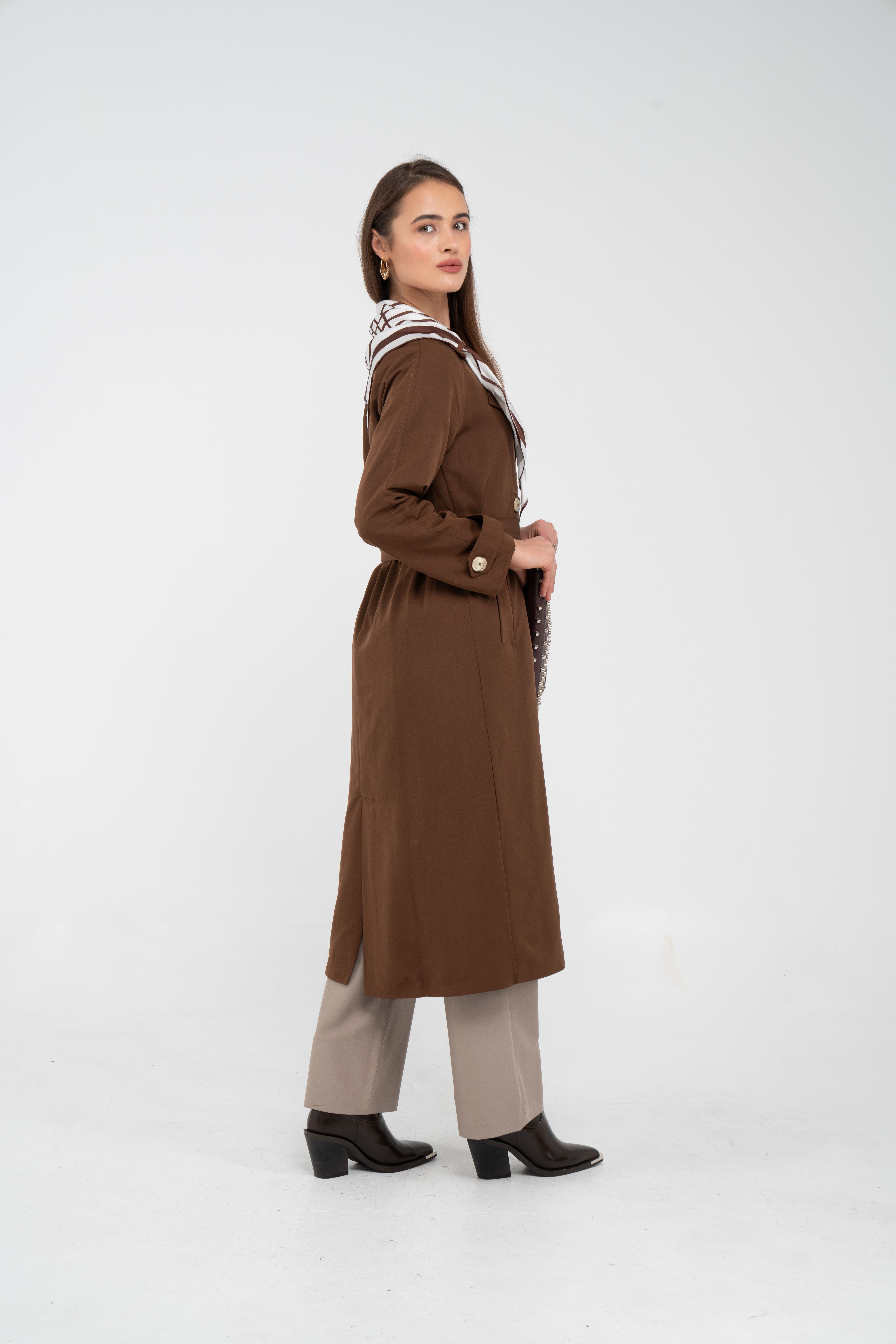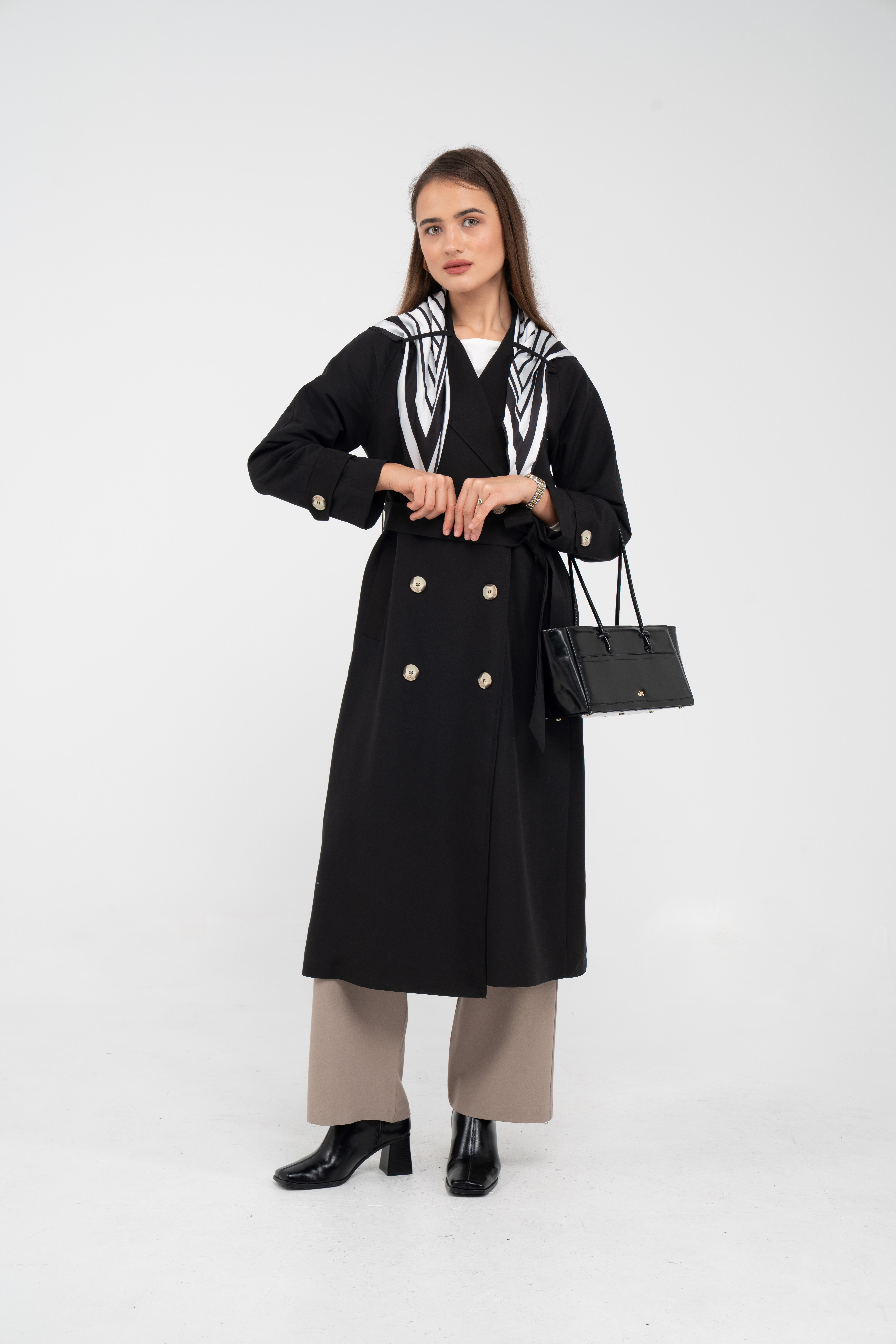 Akıcı kumaşıyla hareket özgürlüğü sağlar ve mevsim geçişlerinde ideal bir dış giyim alternatifi oluşturur. Farklı kombinlerle kolayca tamamlanabilen bu trençkot, dolabınızın vazgeçilmez parçalarından biri olacak.