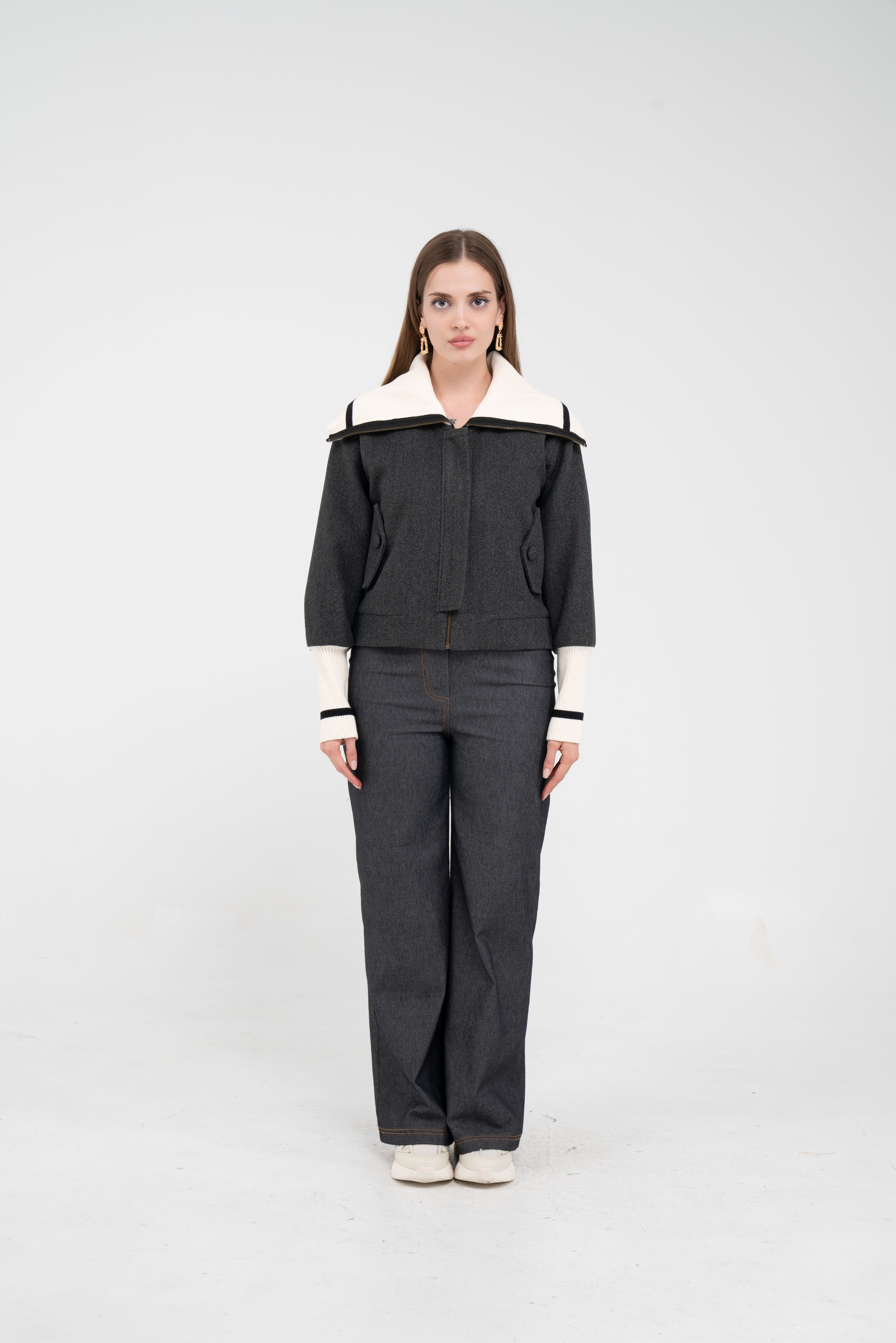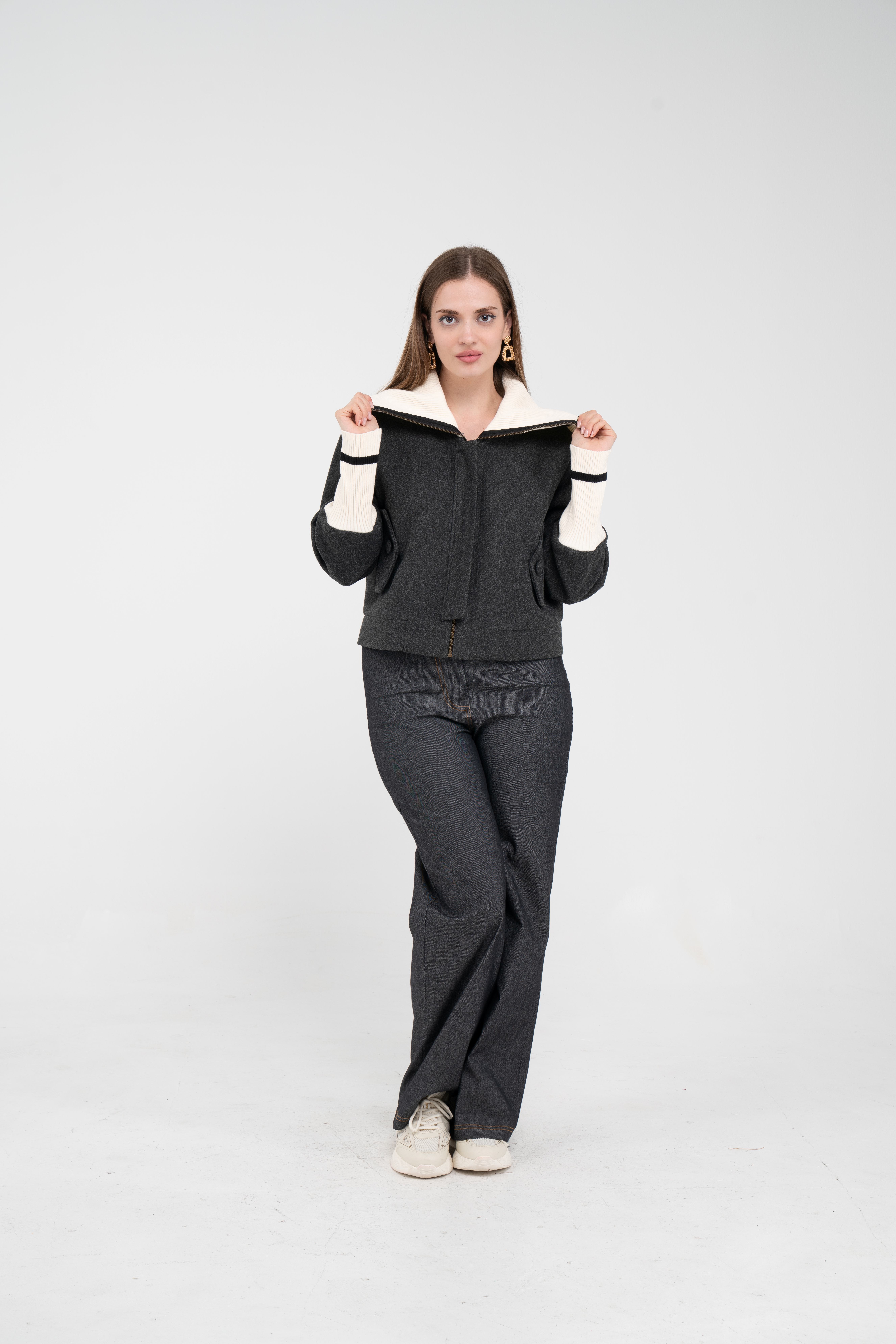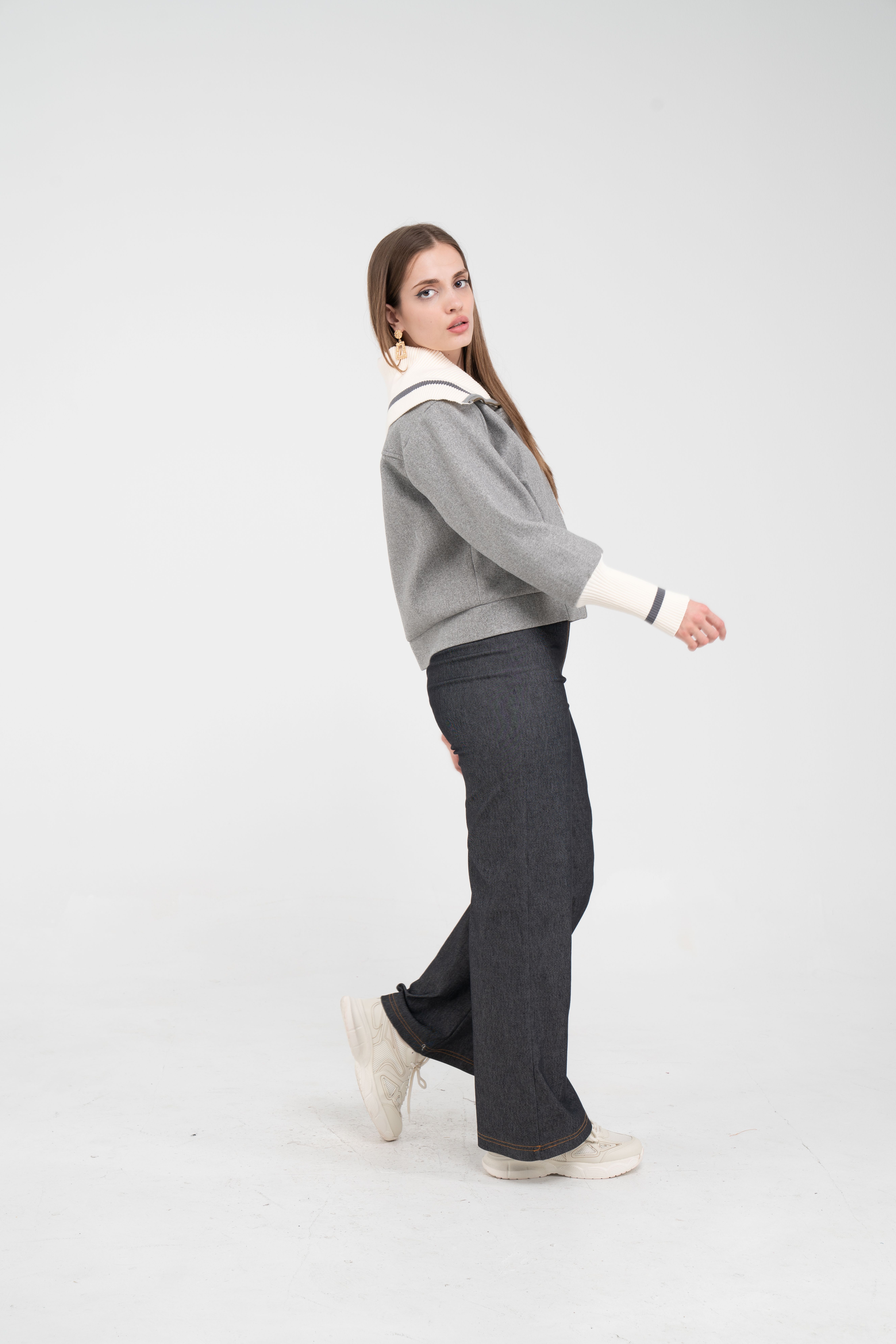 Geniş yakası ve ribana manşetleriyle sportif bir görünüm sunarken, sade rengi sayesinde her kombine kolayca uyum sağlar.