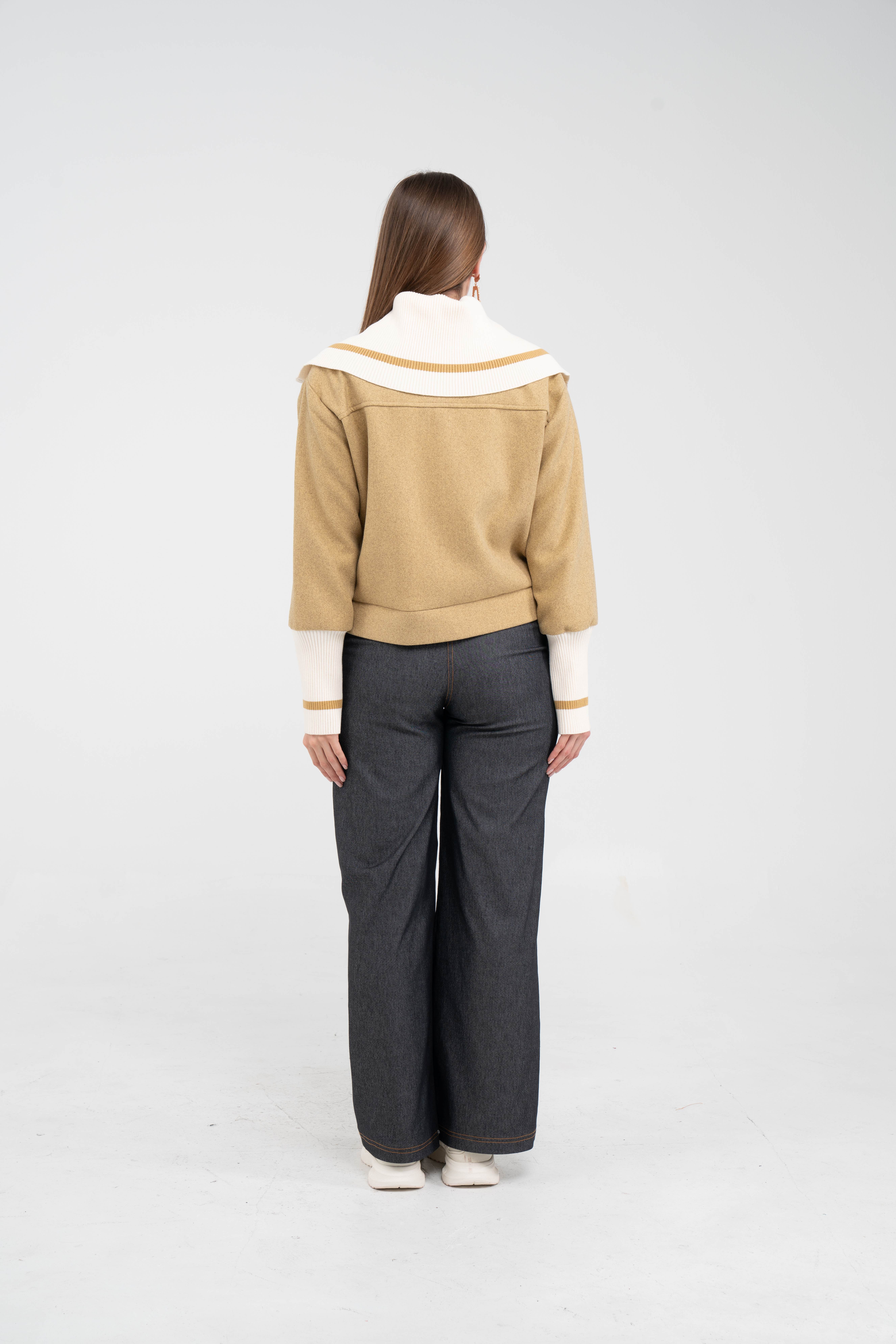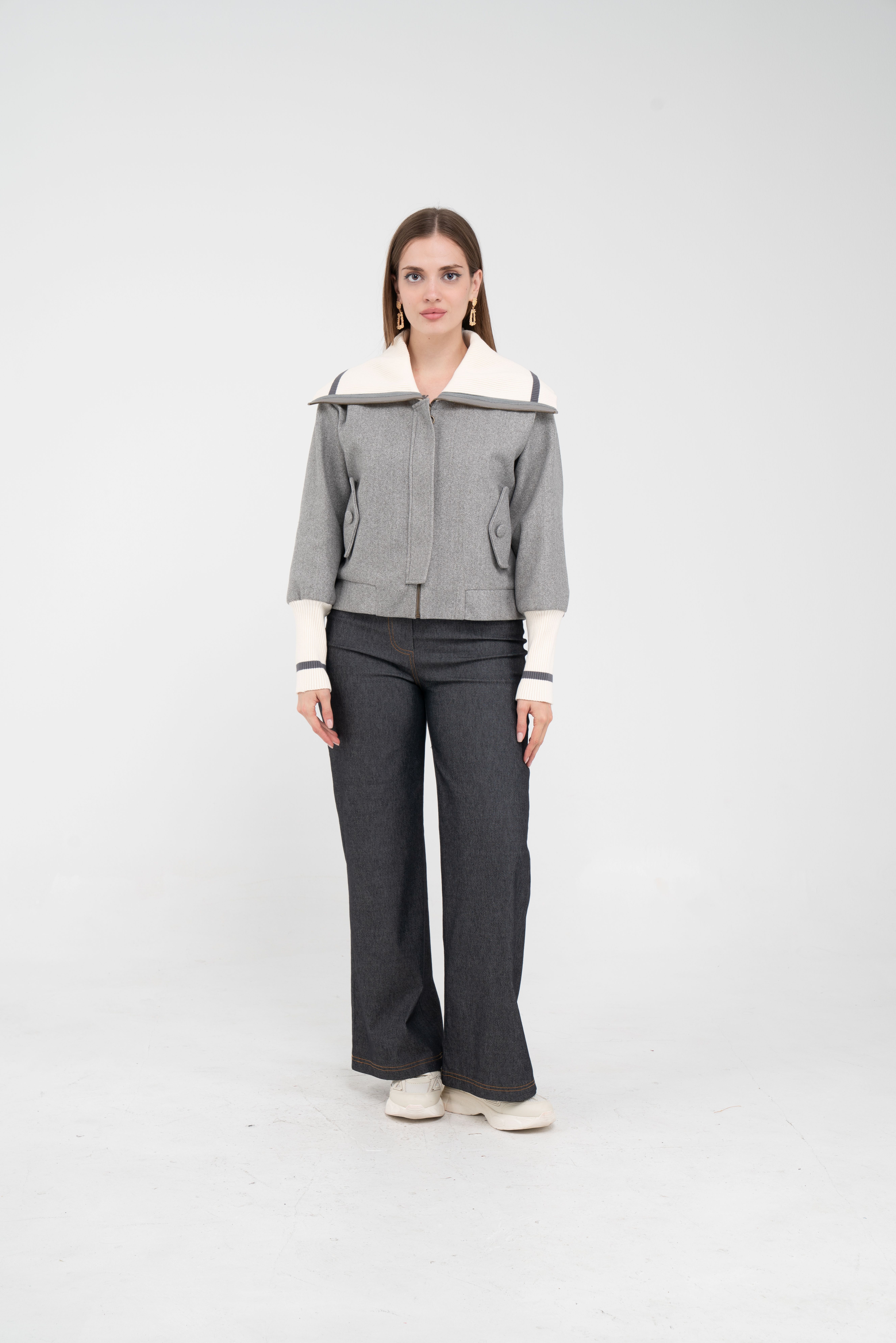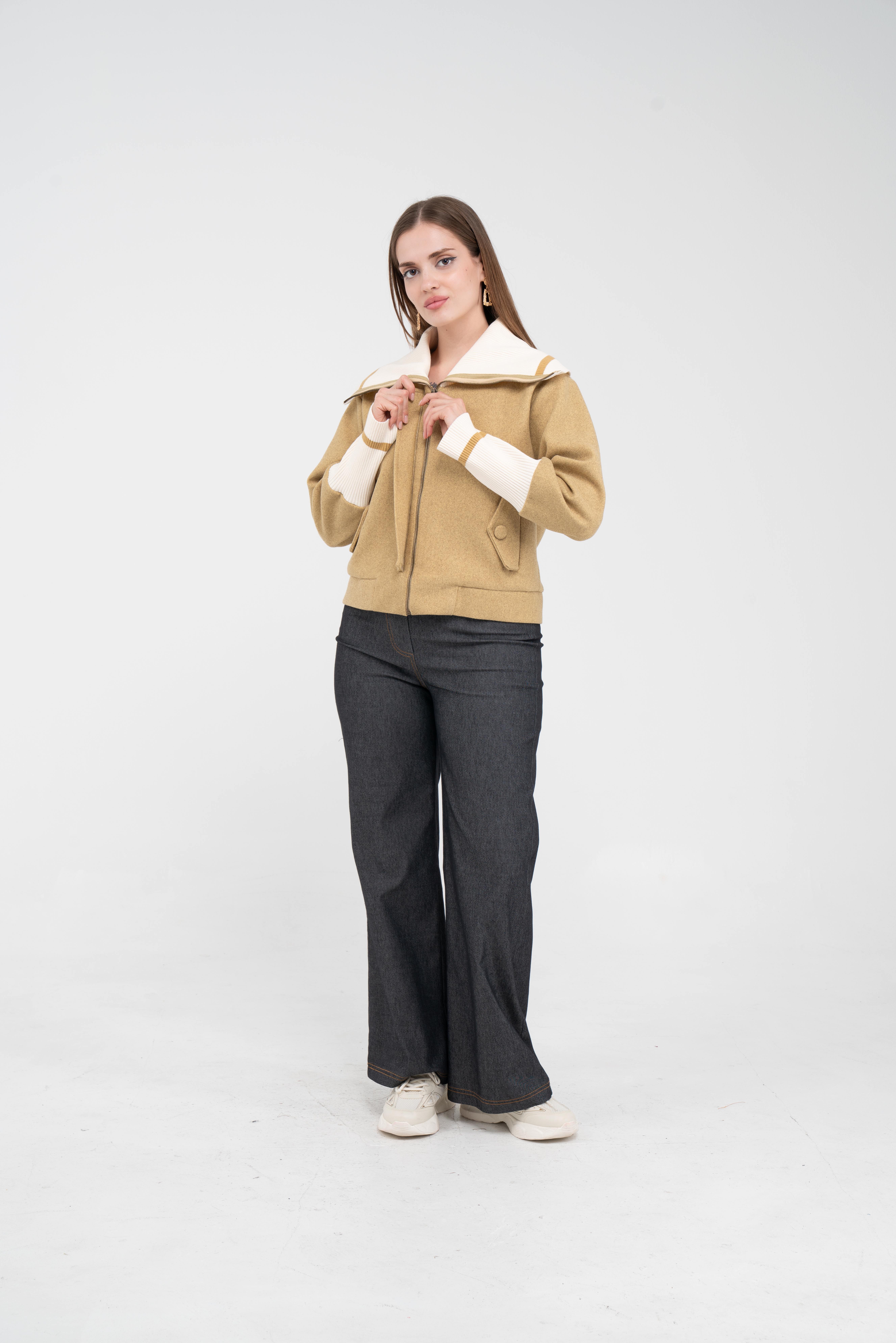 Geniş yakası ve ribana manşetleriyle sportif bir görünüm sunarken, sade rengi sayesinde her kombine kolayca uyum sağlar.
