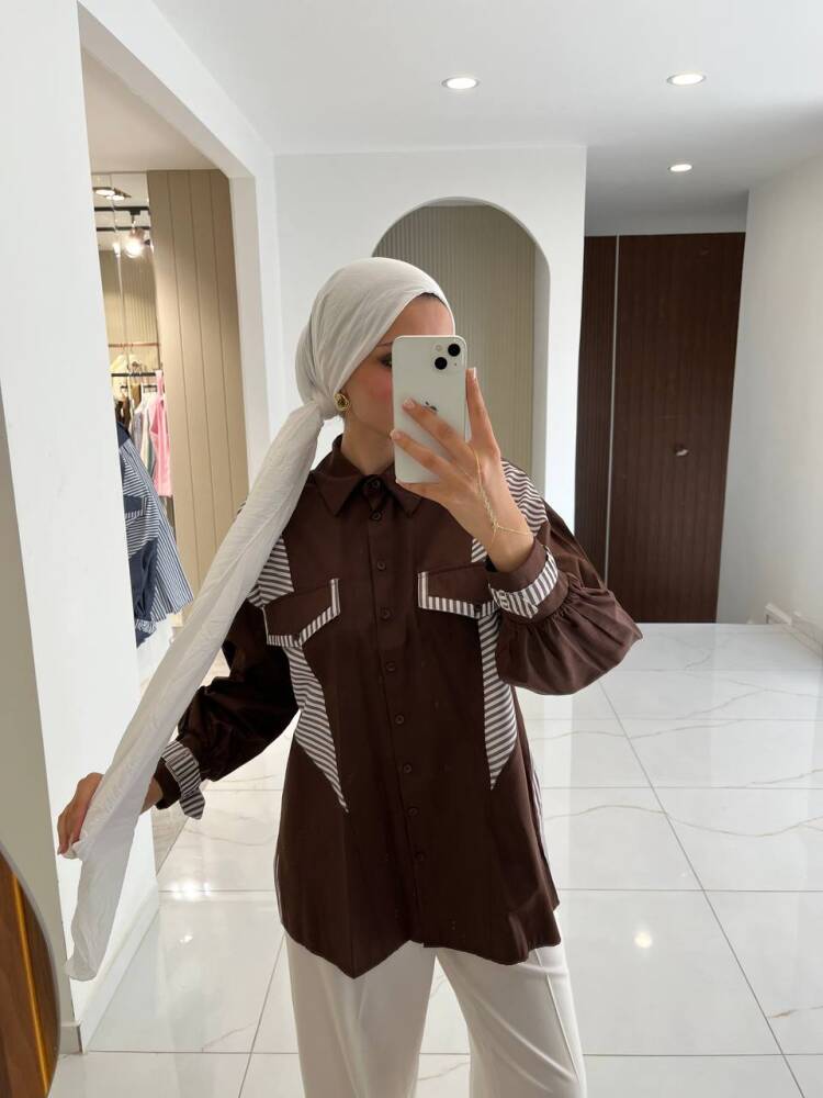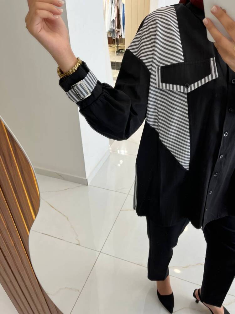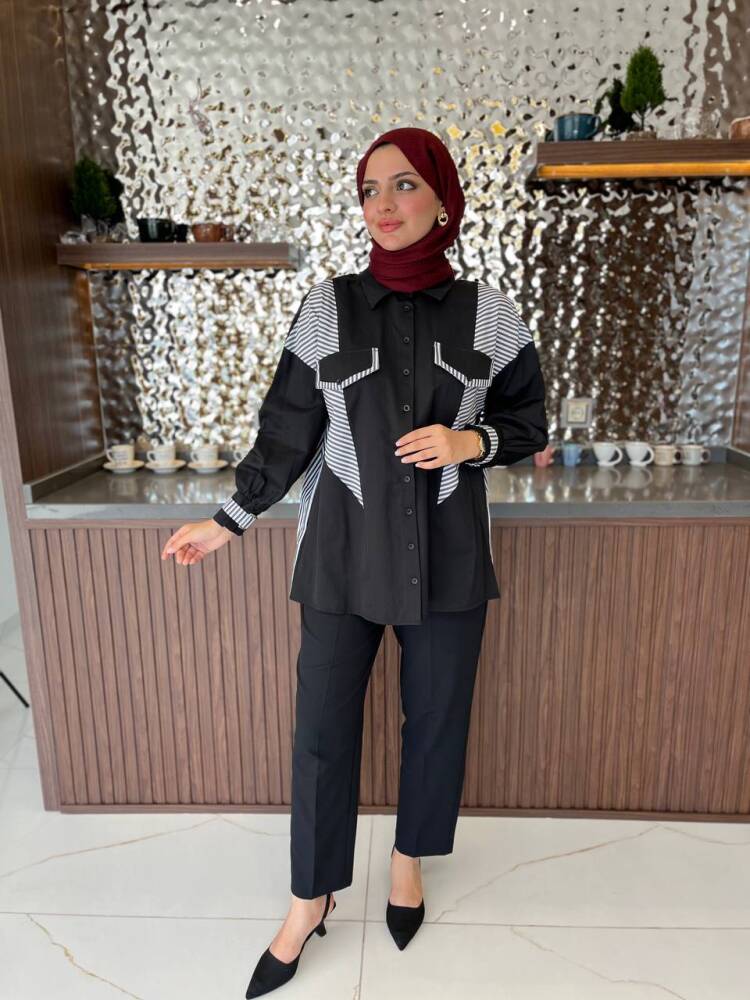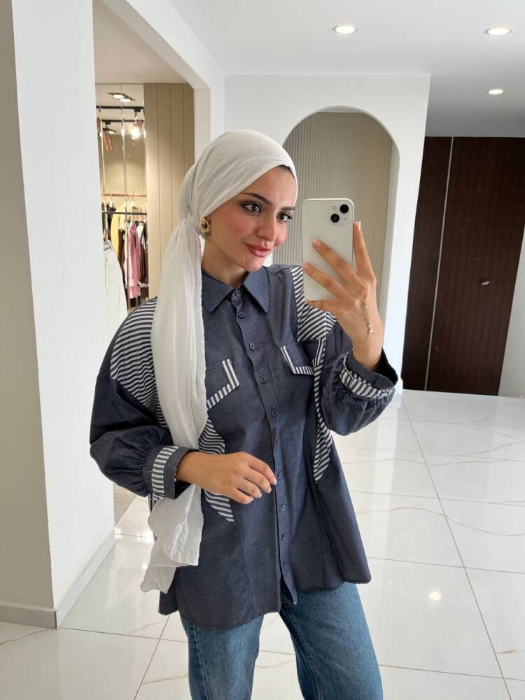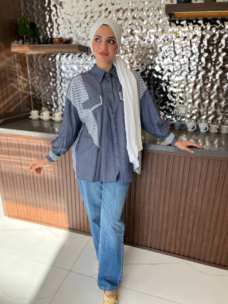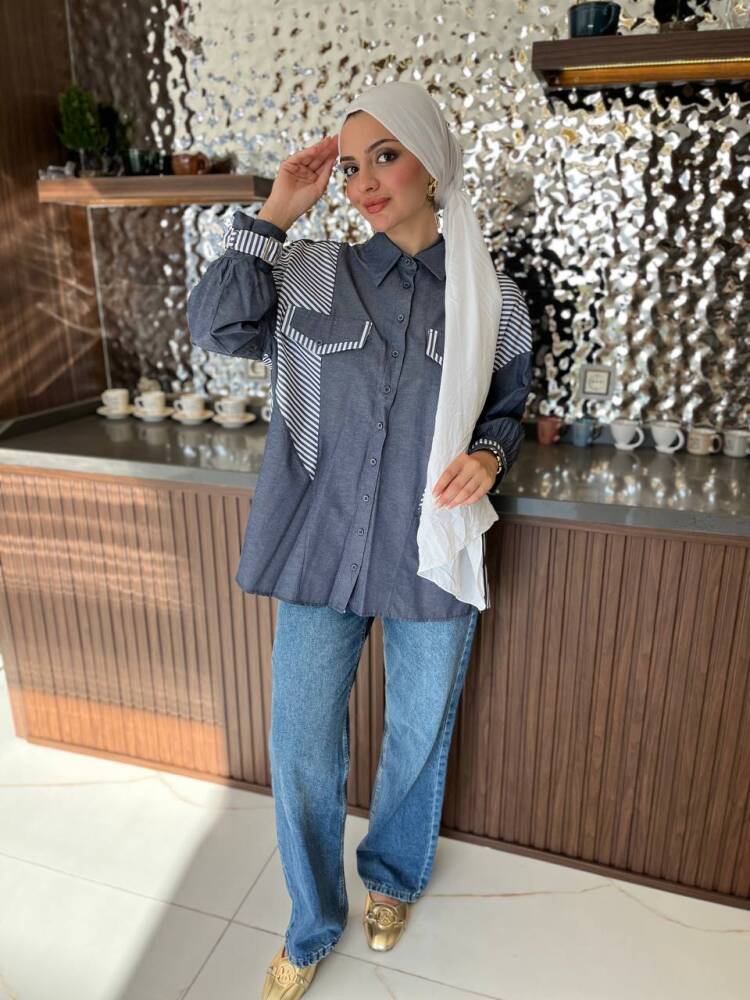 Çizgi detaylı kadın gömlek, klasik ve modern tarzı bir araya getiriyor. Gömlek üzerinde yer alan beyaz çizgili detaylar ve cep tasarımı, parçaya özgün bir görünüm kazandırıyor. Rahat kalıbı ve nefes alan kumaşıyla hem günlük kullanıma hem ofis kombinlerine uygundur. Tarzına sofistike bir dokunuş eklemek isteyen kadınlar için ideal bir seçimdir.