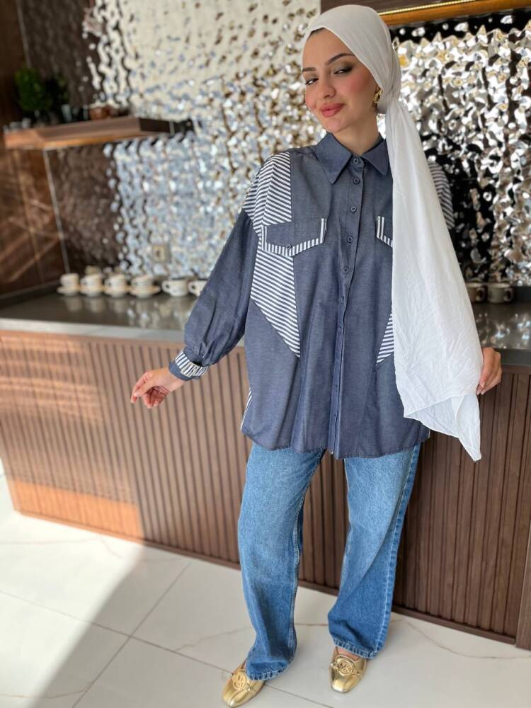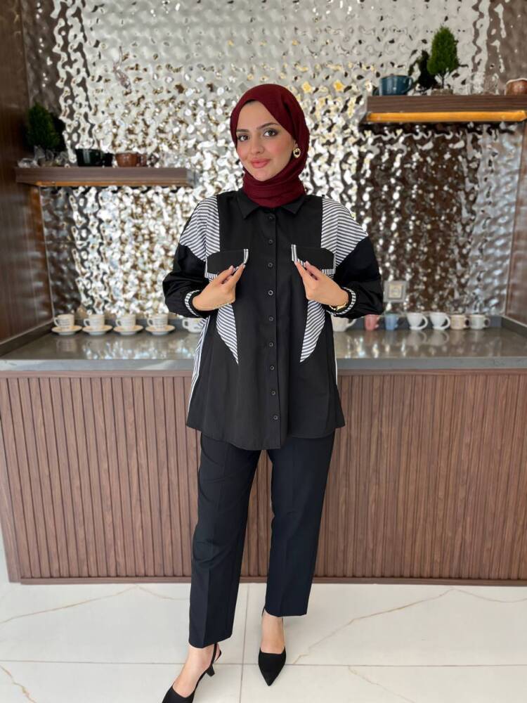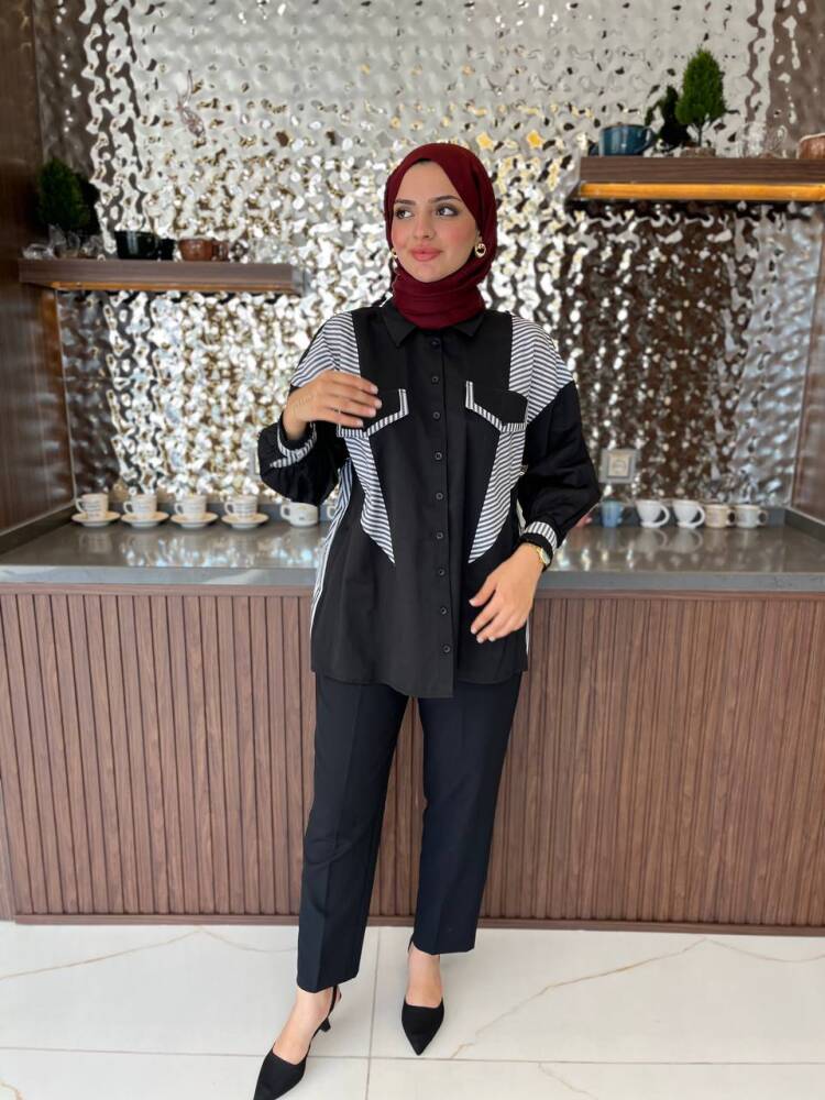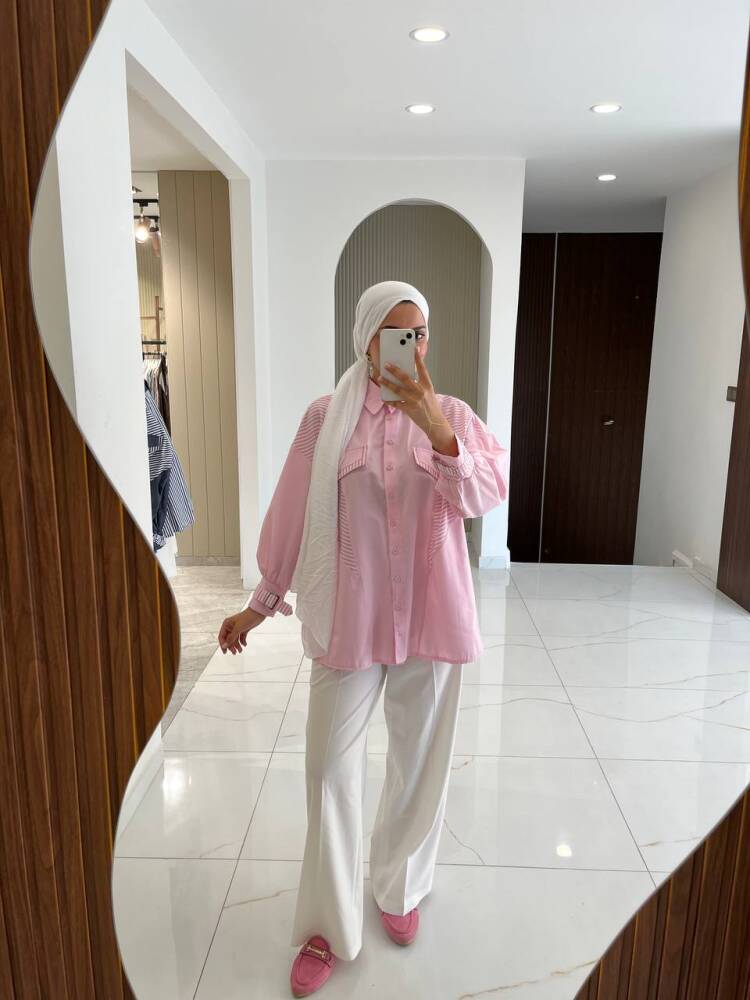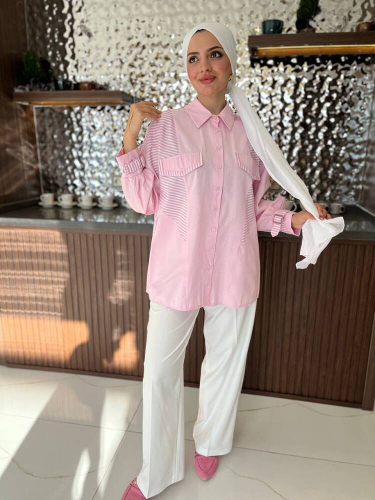 Çizgi detaylı kadın gömlek, klasik ve modern tarzı bir araya getiriyor. Gömlek üzerinde yer alan beyaz çizgili detaylar ve cep tasarımı, parçaya özgün bir görünüm kazandırıyor. Rahat kalıbı ve nefes alan kumaşıyla hem günlük kullanıma hem ofis kombinlerine uygundur. Tarzına sofistike bir dokunuş eklemek isteyen kadınlar için ideal bir seçimdir.