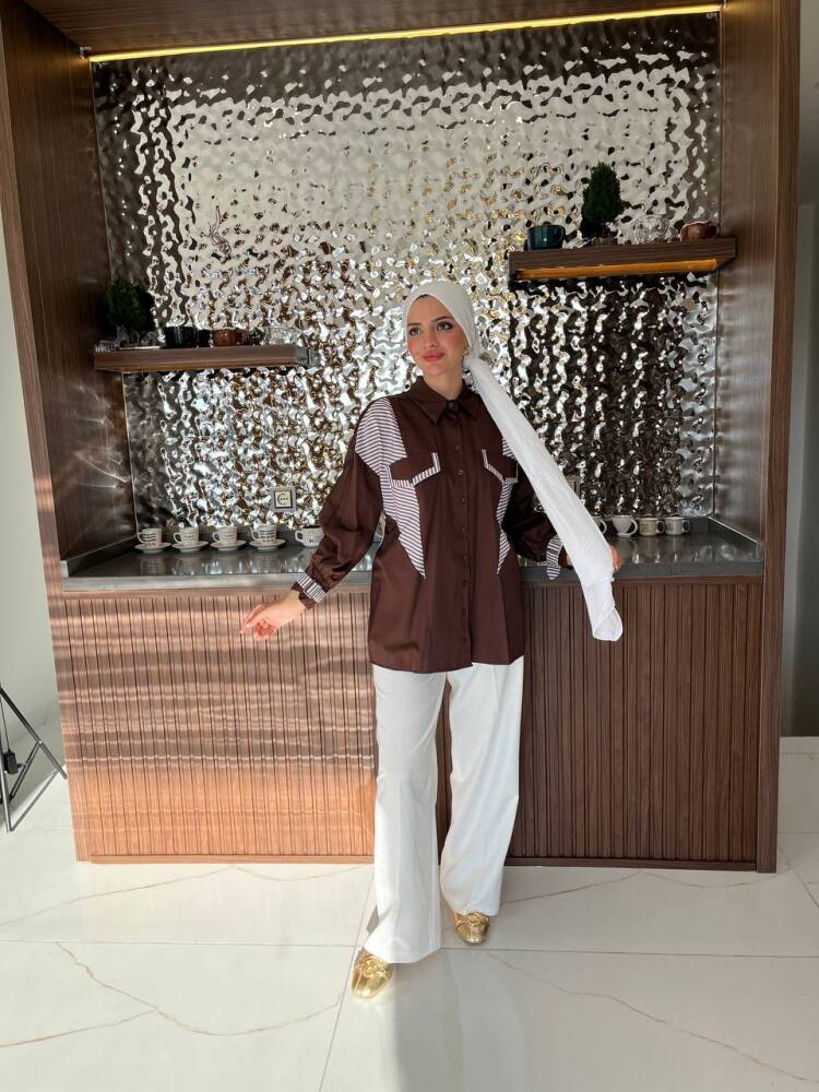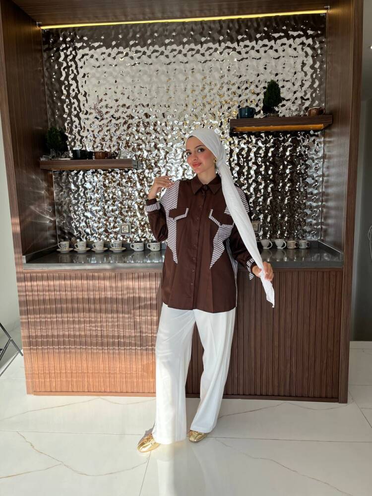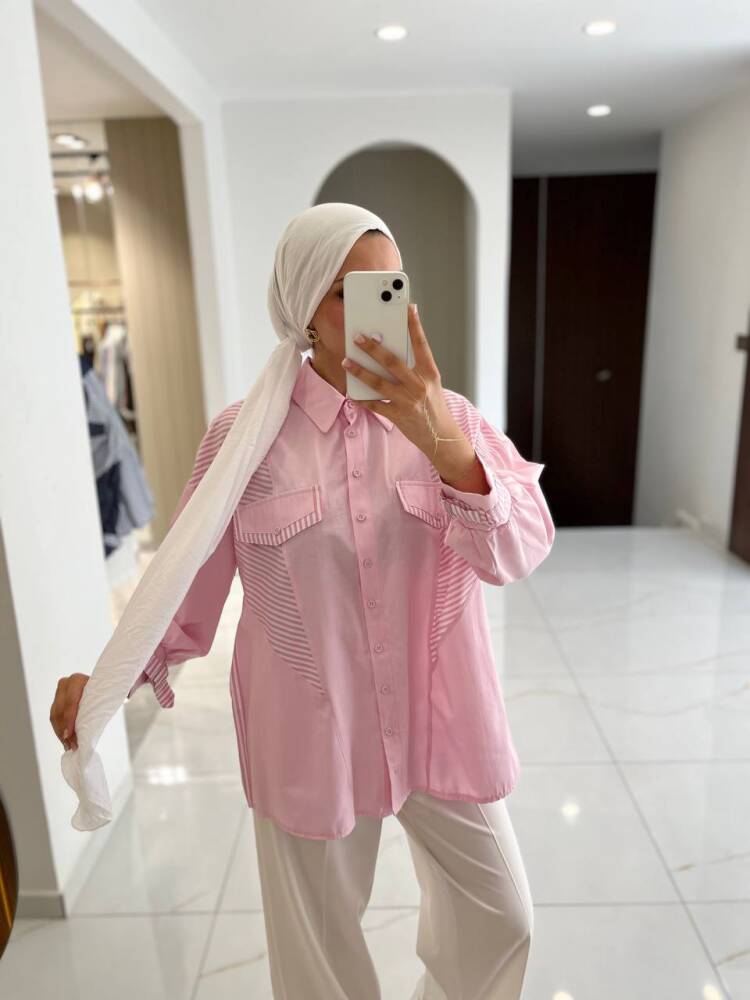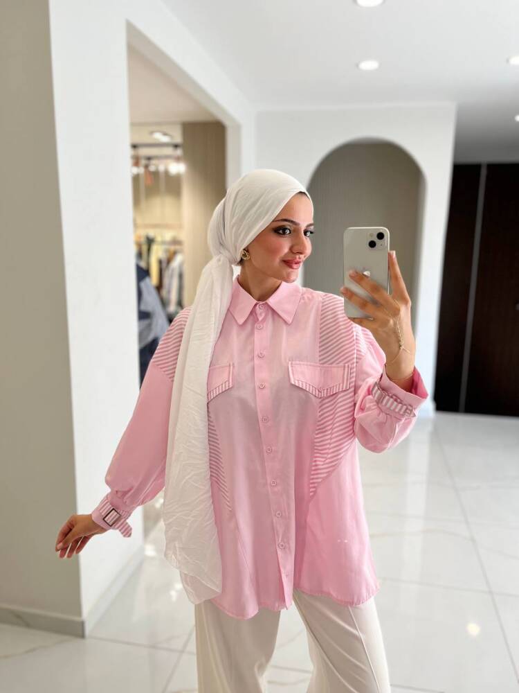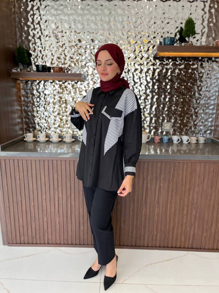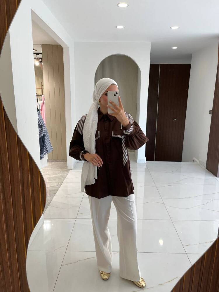 Çizgi detaylı kadın gömlek, klasik ve modern tarzı bir araya getiriyor. Gömlek üzerinde yer alan beyaz çizgili detaylar ve cep tasarımı, parçaya özgün bir görünüm kazandırıyor. Rahat kalıbı ve nefes alan kumaşıyla hem günlük kullanıma hem ofis kombinlerine uygundur. Tarzına sofistike bir dokunuş eklemek isteyen kadınlar için ideal bir seçimdir.