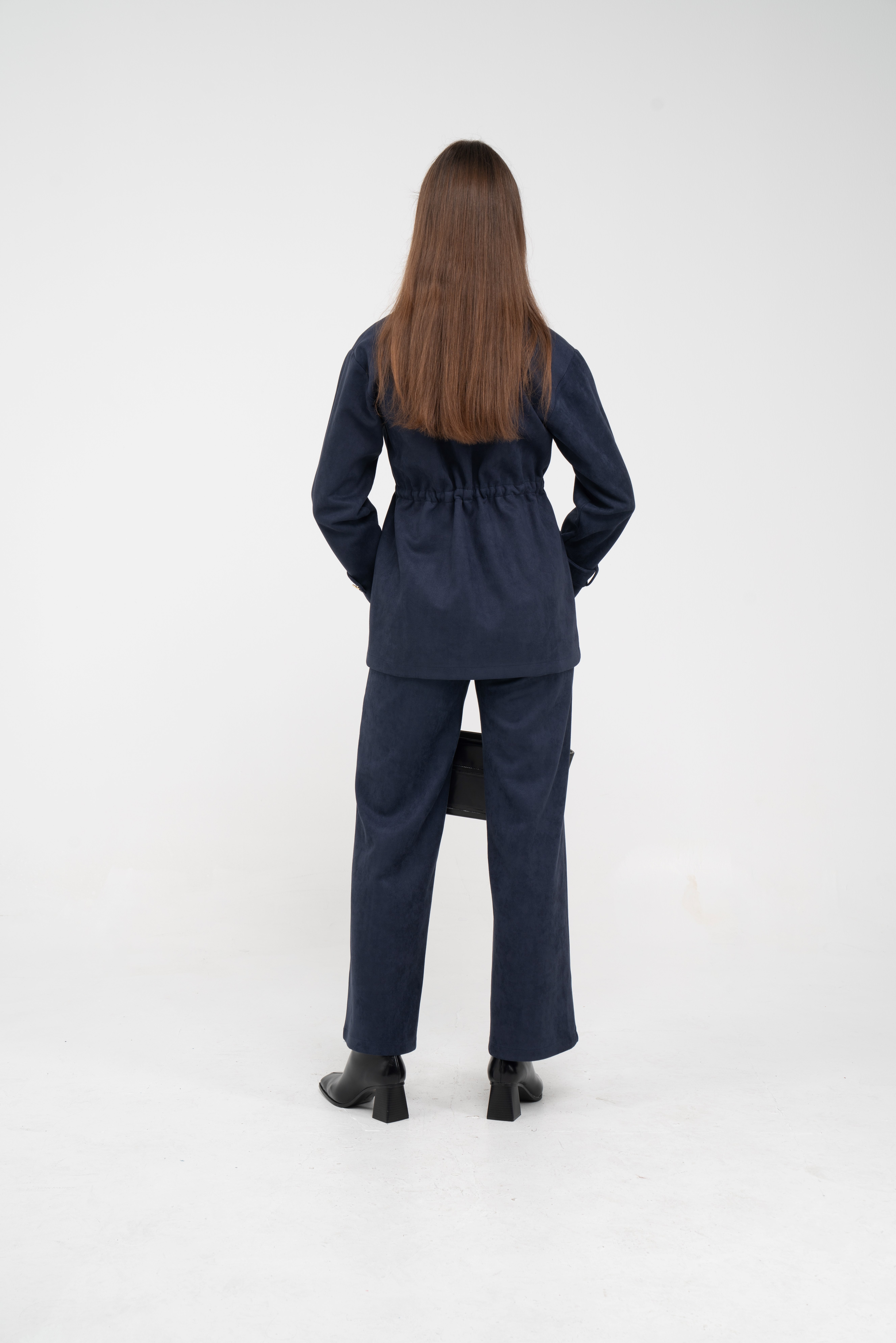Takımın geniş paça pantolonu, görünümü dengelerken şık bir duruş kazandırır. Günlük kullanımdan ofis stiline, şehir içi kombinlerden özel davetlere kadar her ortamda kolaylıkla tercih edilebilecek çok yönlü bir tasarımdır. Topuklu botlar ve minimal çantalarla tamamlandığında güçlü bir stil sunar.