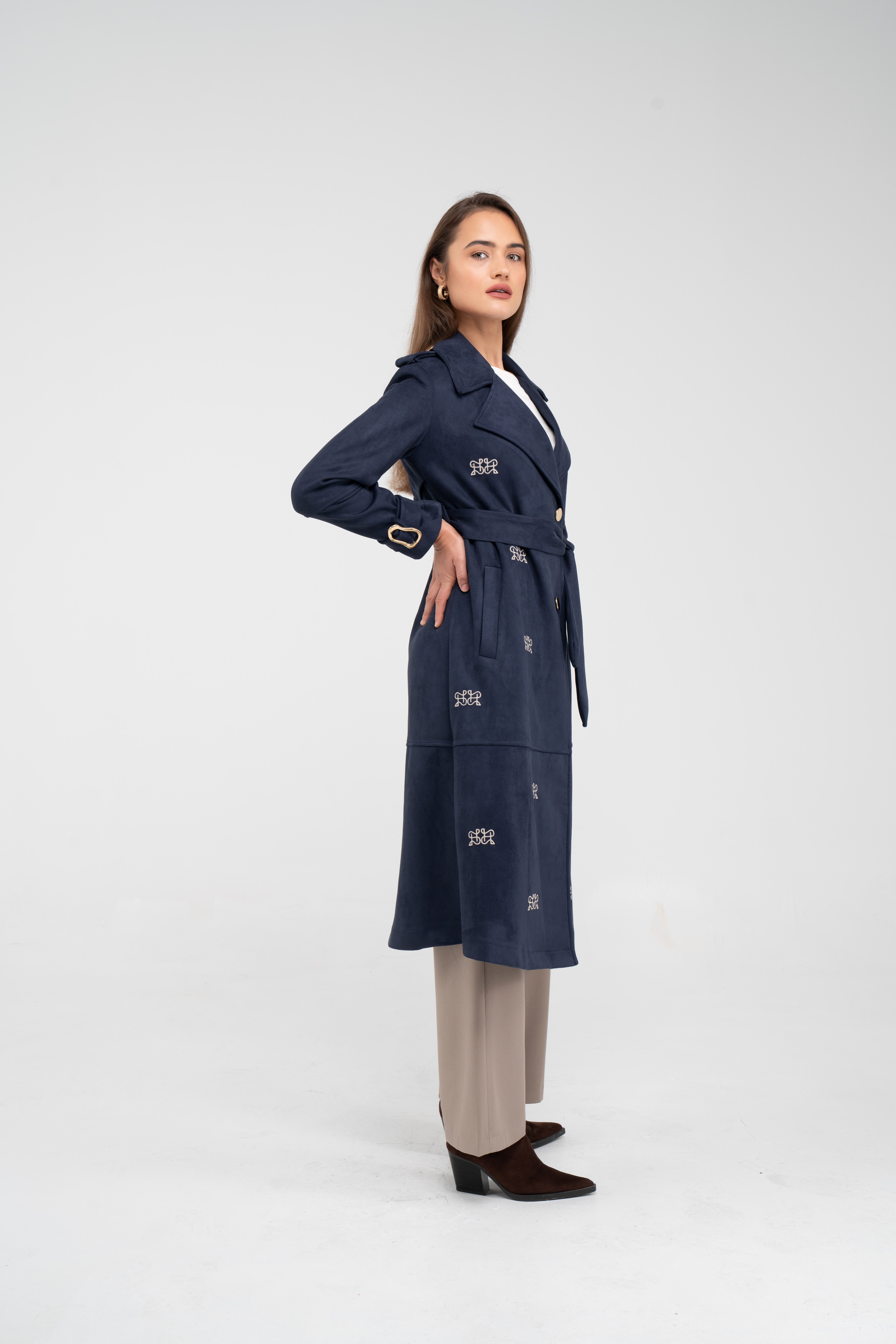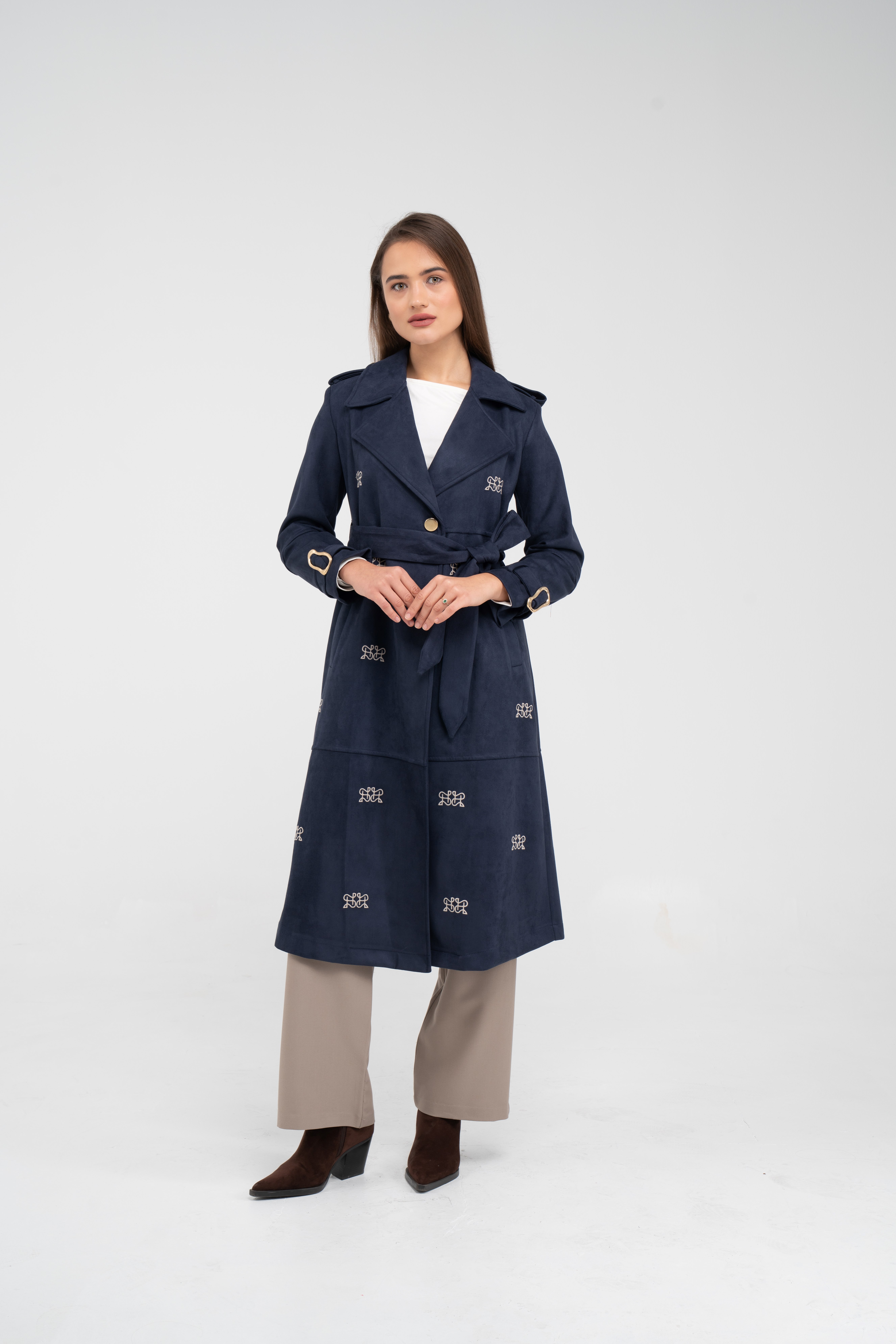 Ön kısmındaki altın detaylı düğmeler, kuşaklı bel tasarımı ve ikonik dikiş işlemeleri modele sofistike bir hava katıyor. Omuz apoletleri ve bilek tokaları ile tamamlanan tasarım, hem günlük kombinlerde hem de şık davetlerde rahatlıkla kullanılabilir.