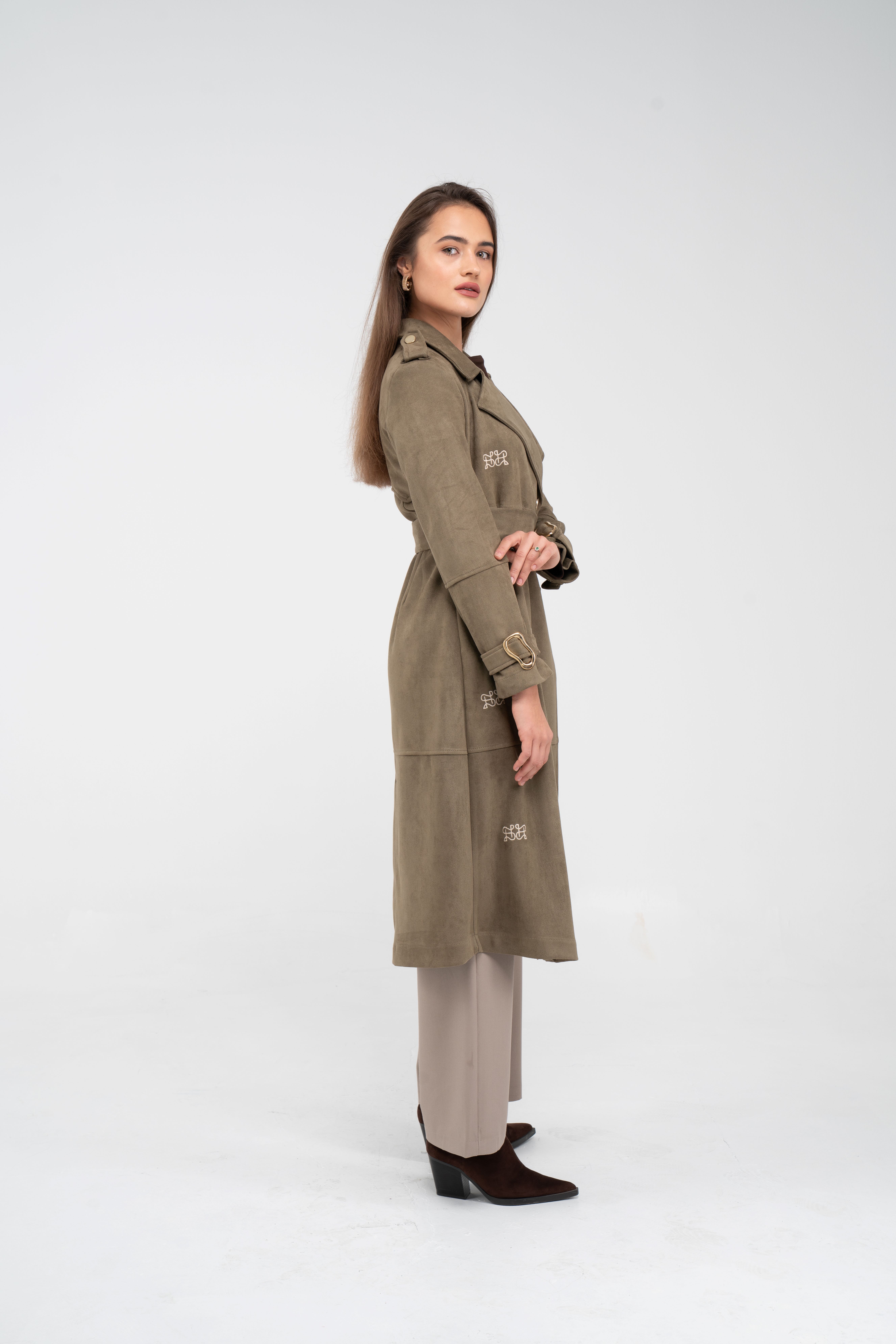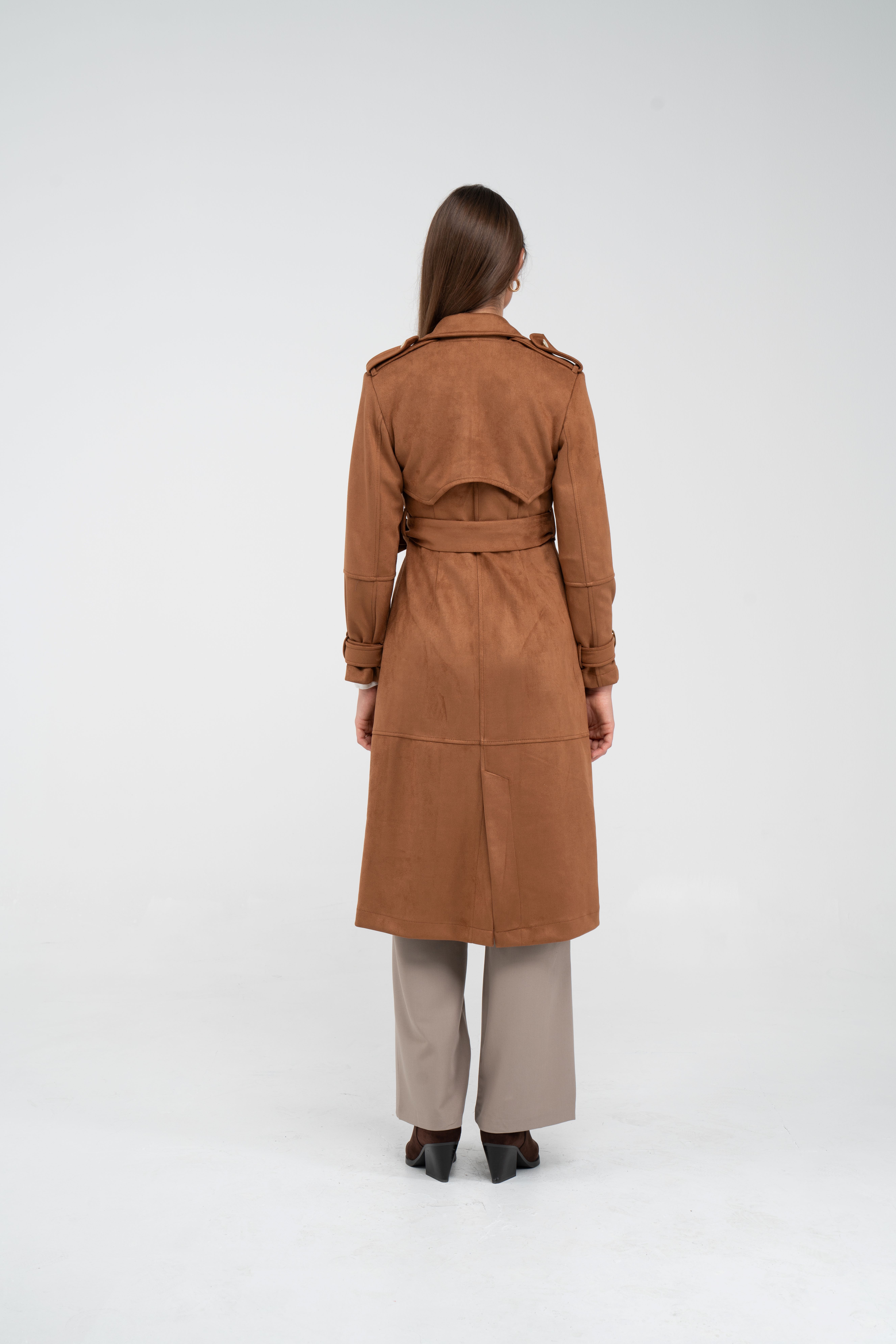 Gelince Haber VerModern ve zarif görünümüyle öne çıkan bu süet dokulu kadın trençkot, sonbahar-kış sezonunun vazgeçilmez parçalarından biri. Yumuşak süet kumaşı hem şık bir duruş sağlar hem de gün boyu konfor sunar.
