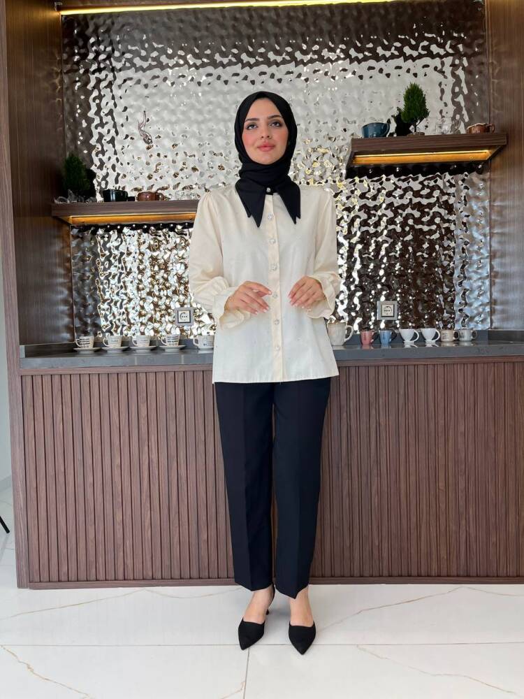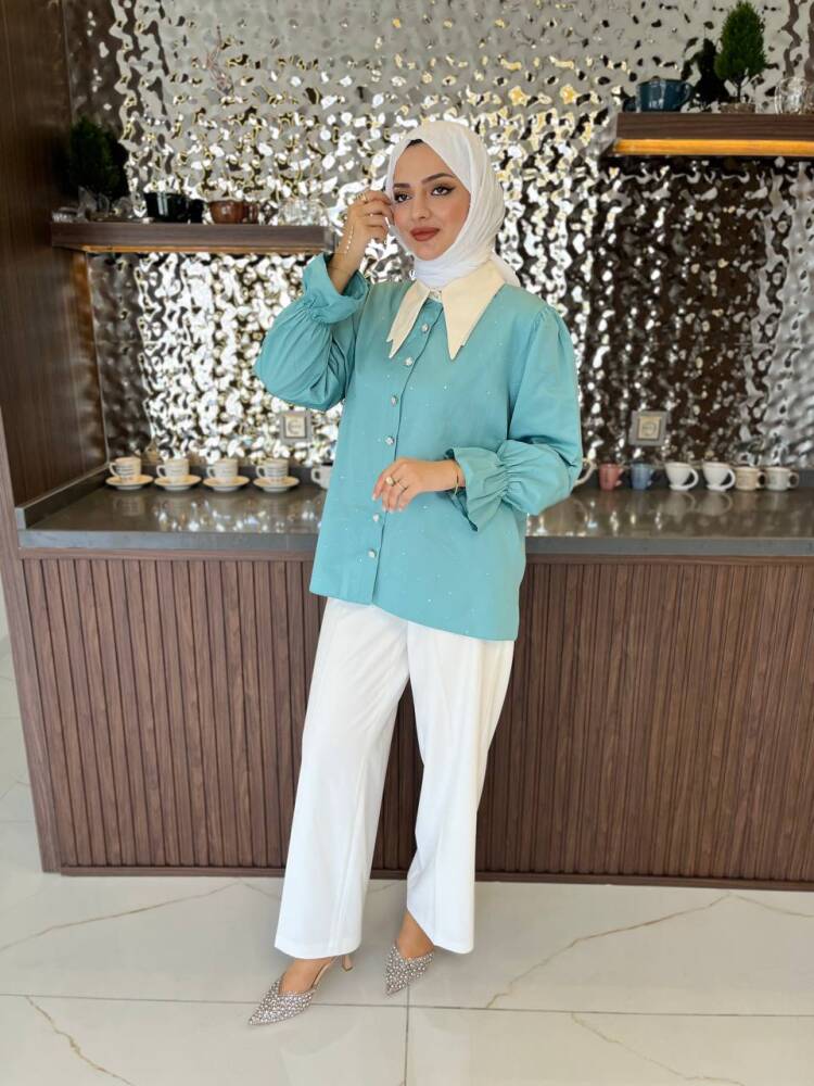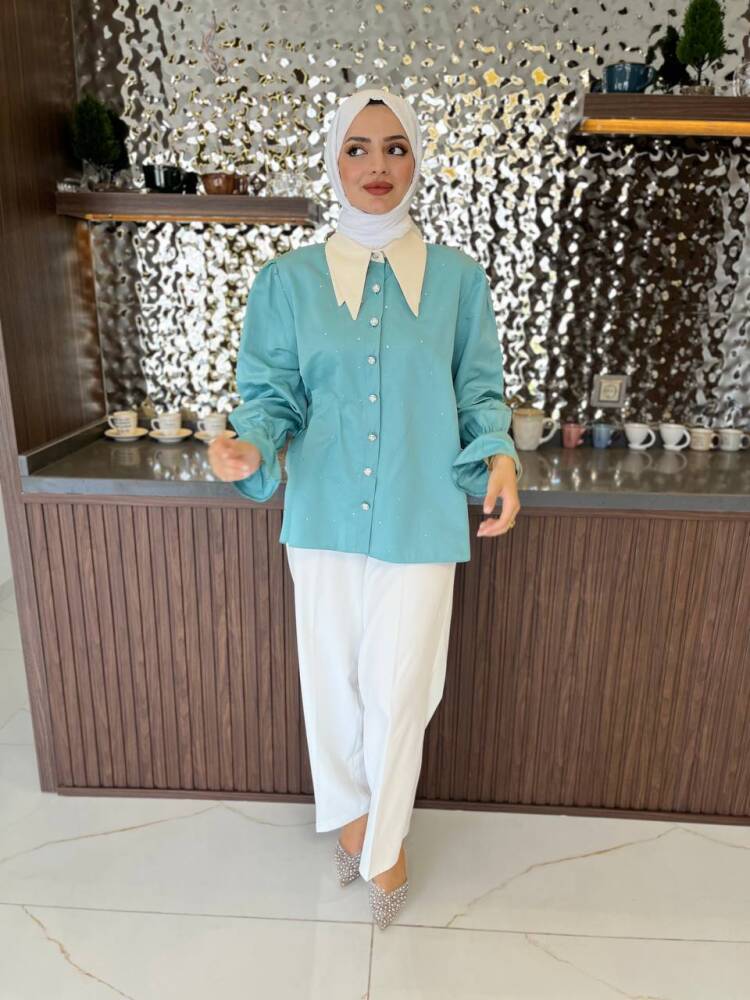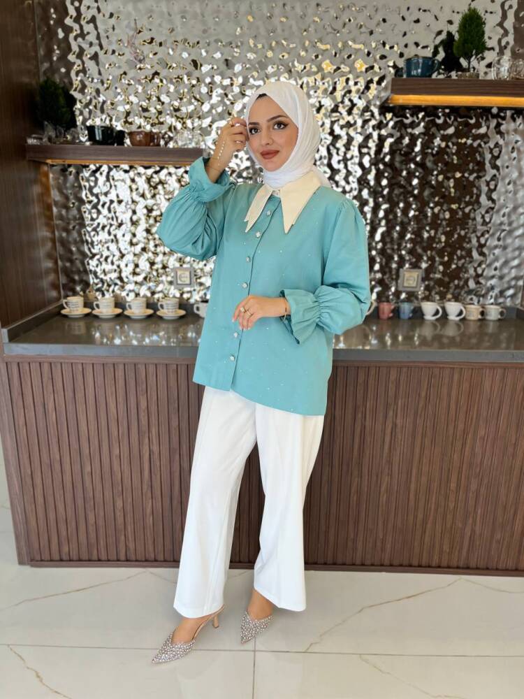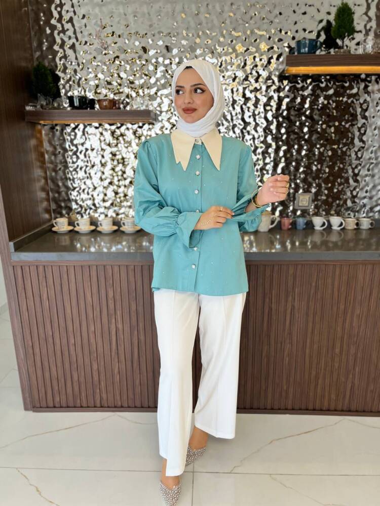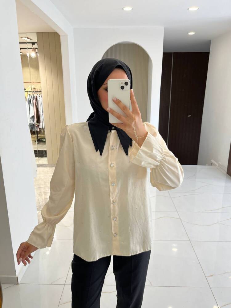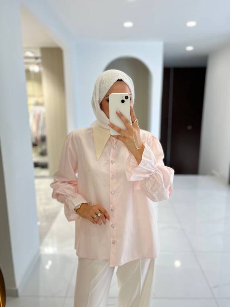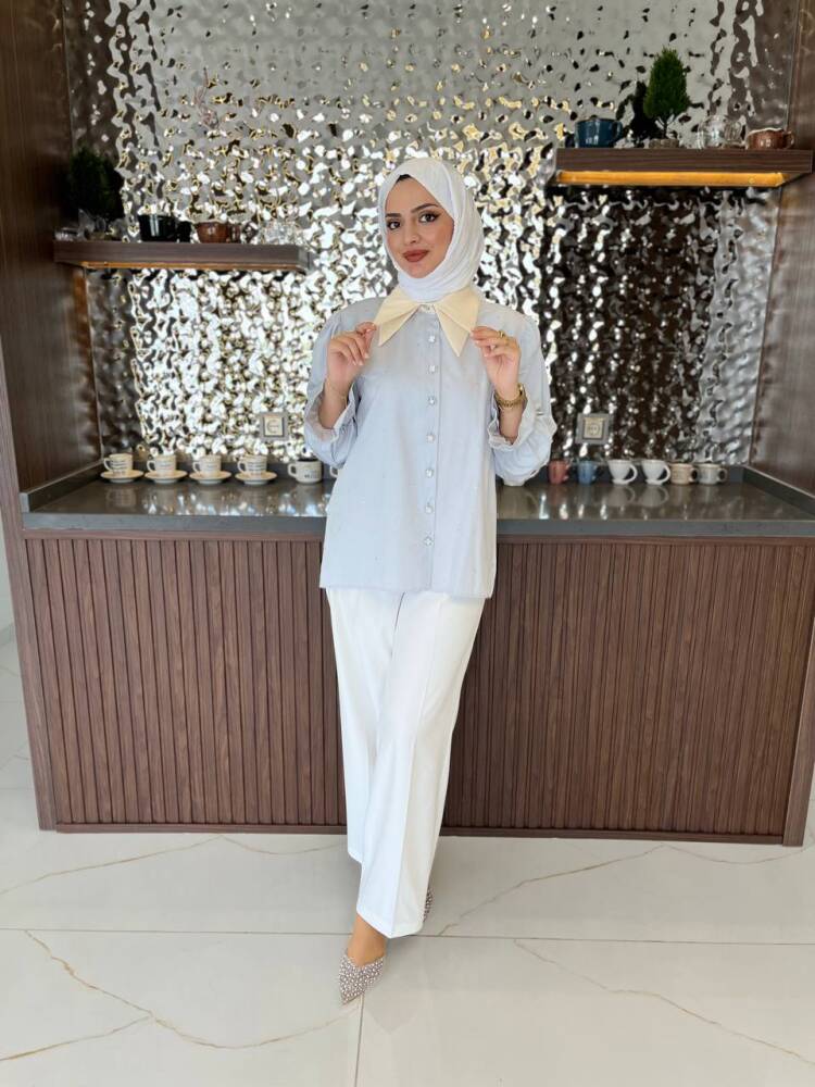 Gelince Haber VerGeniş yaka detayıyla feminen bir zarafet sunan bu gömlek, şıklığıyla dikkat çekiyor. Işıltılı taş düğmeleri ve rahat kesimi sayesinde hem günlük kombinlerde hem de özel davetlerde kolayca kullanılabilir. Modern ve sade çizgileriyle her stile uyum sağlar.