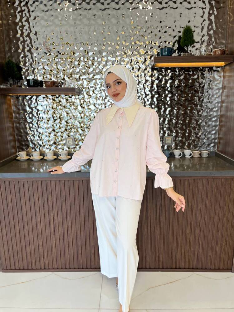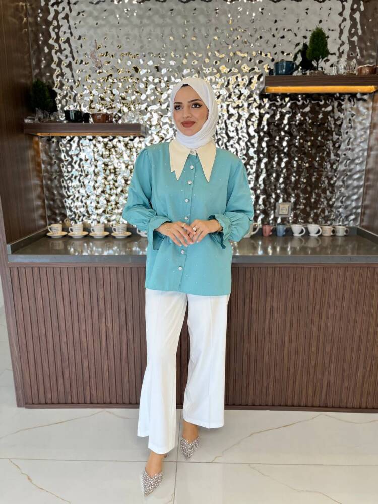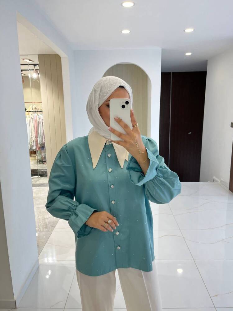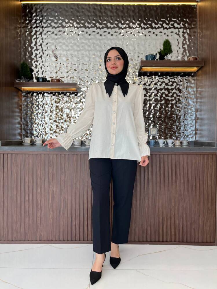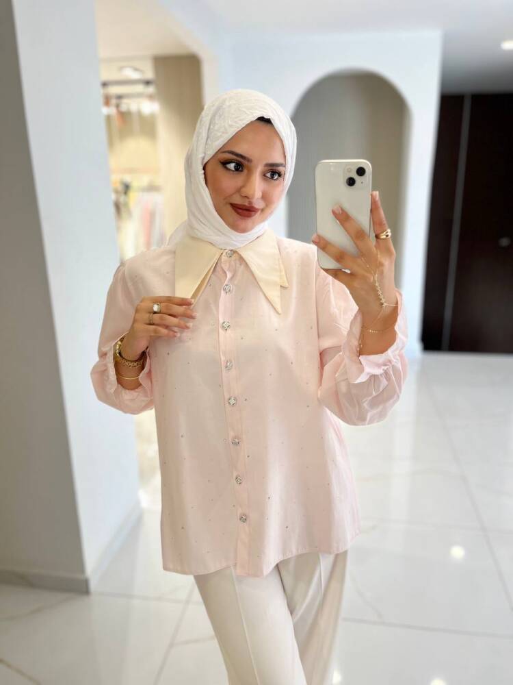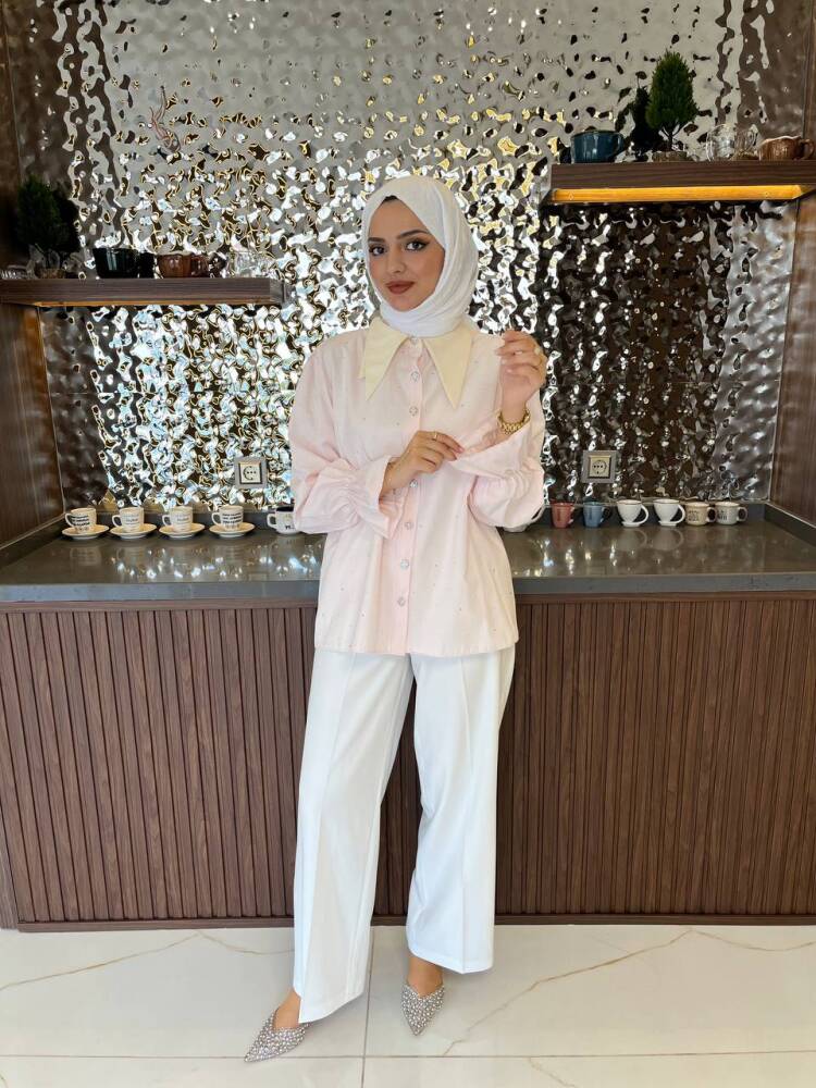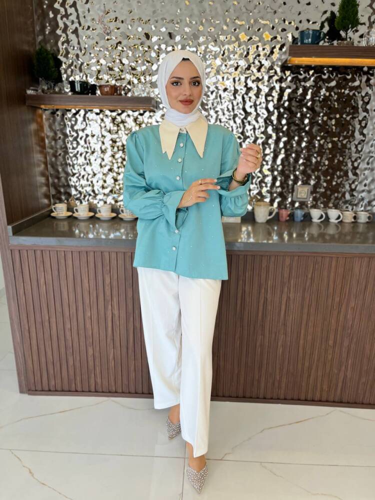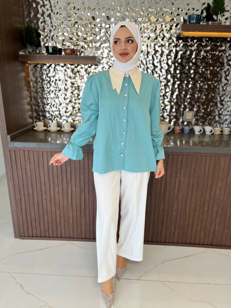 Gelince Haber VerGeniş yaka detayıyla feminen bir zarafet sunan bu gömlek, şıklığıyla dikkat çekiyor. Işıltılı taş düğmeleri ve rahat kesimi sayesinde hem günlük kombinlerde hem de özel davetlerde kolayca kullanılabilir. Modern ve sade çizgileriyle her stile uyum sağlar.