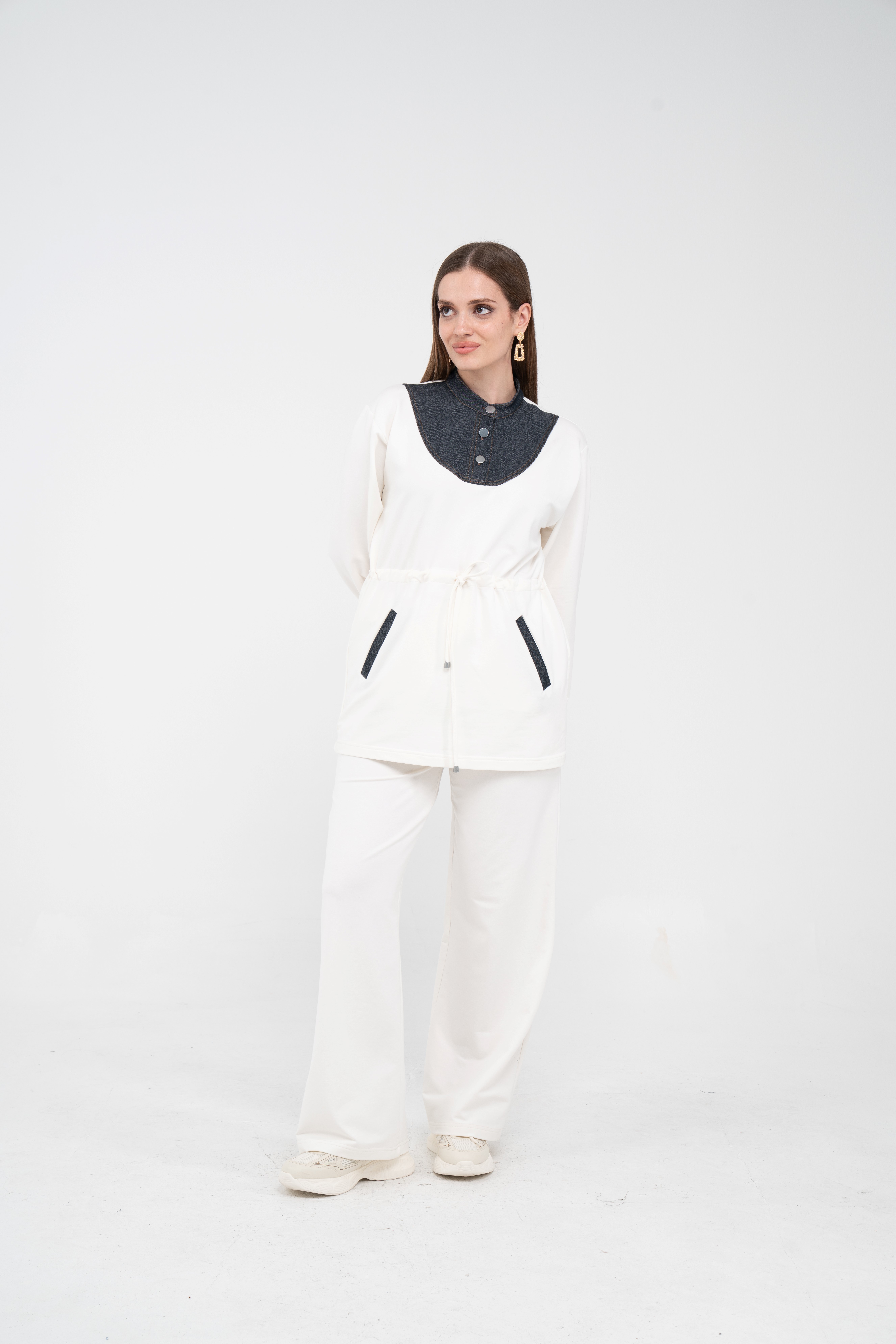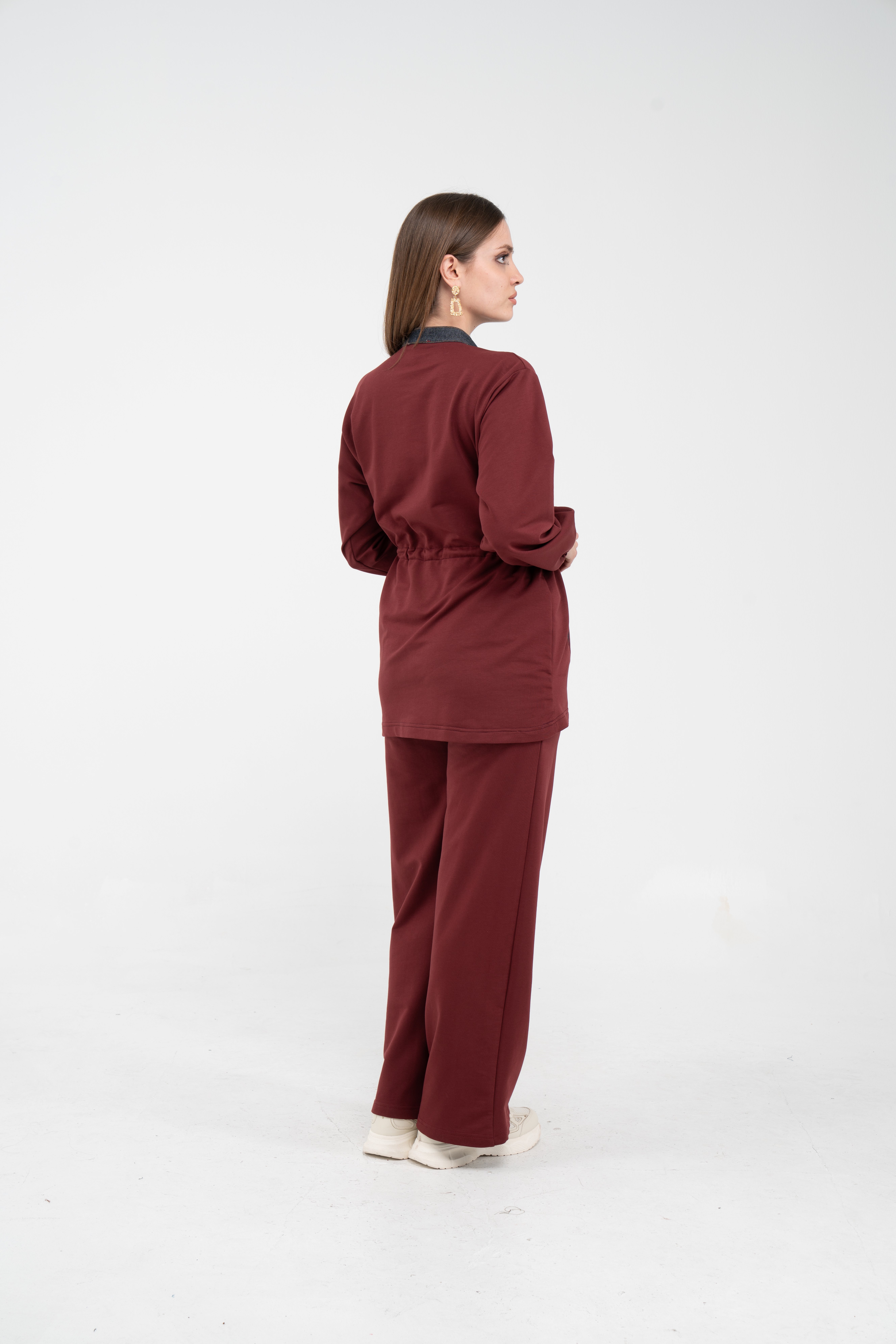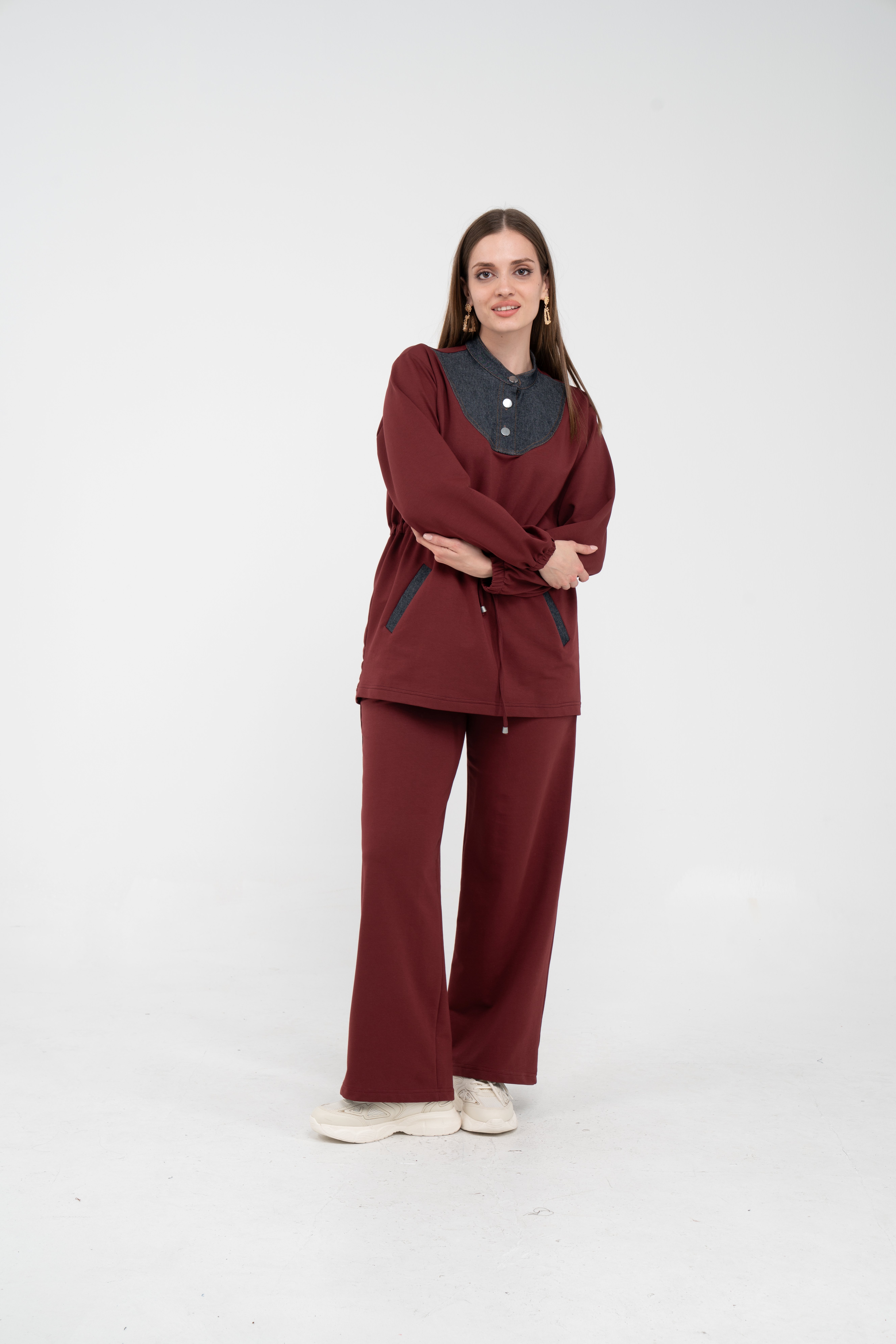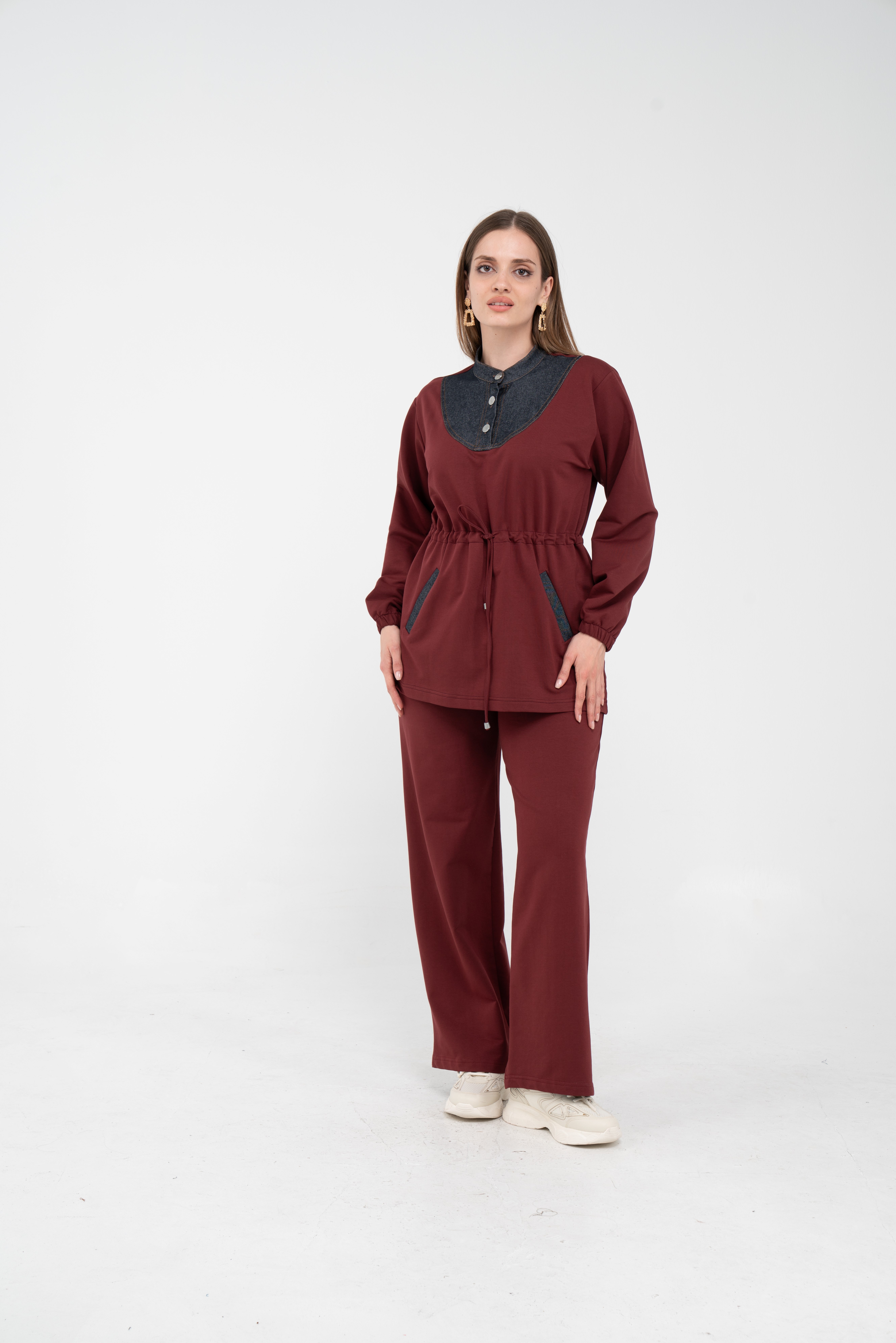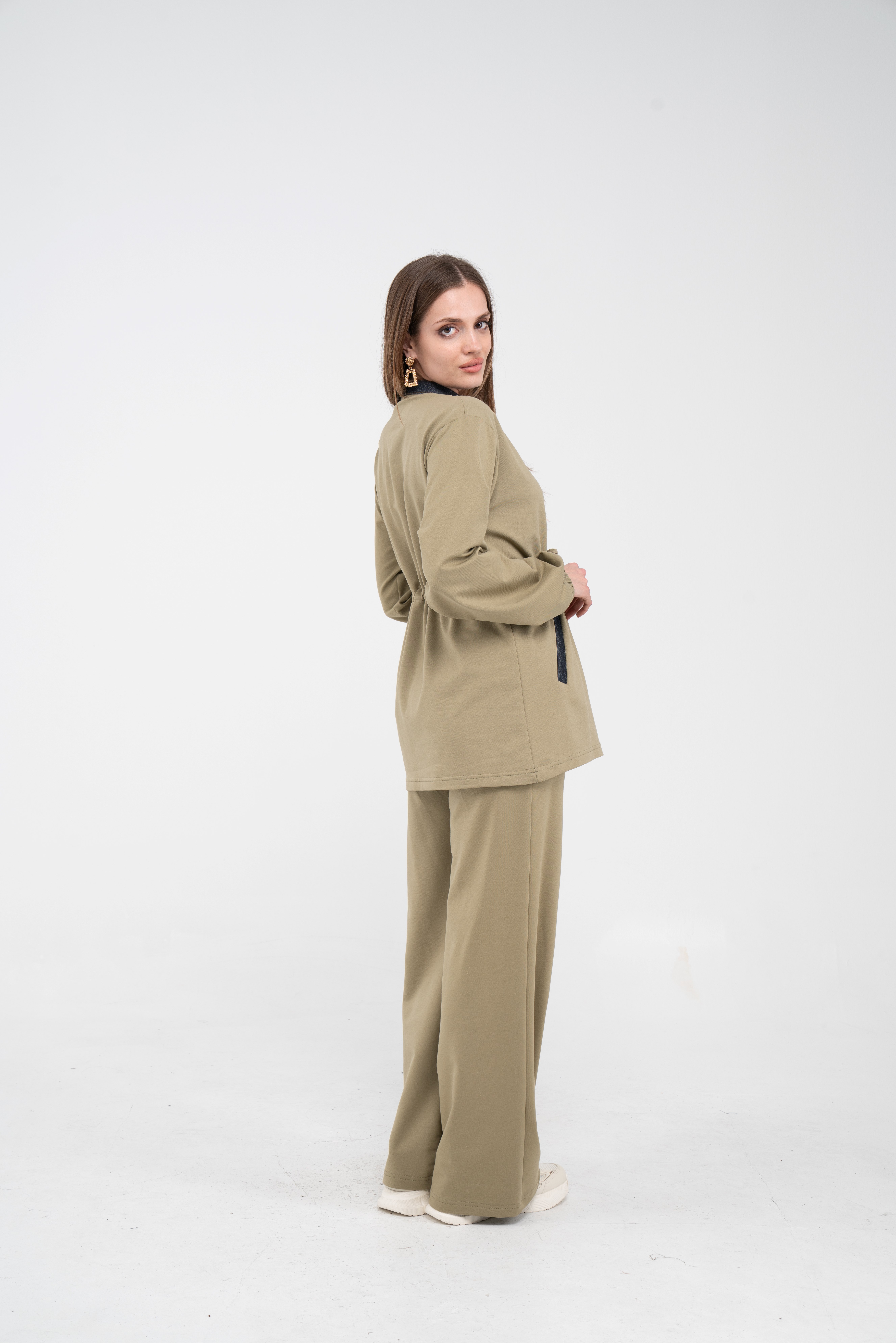 Esnek ve yumuşak dokulu kumaşı ile gün boyu konfor sunan takım, spor ayakkabılarla günlük kombinlere; çanta ve aksesuarlarla şehir stiline kolayca uyarlanabilir. Sezonun doğal tonlarını yansıtan bu takım, sade ama etkili bir tarz isteyenler için ideal bir seçenektir.