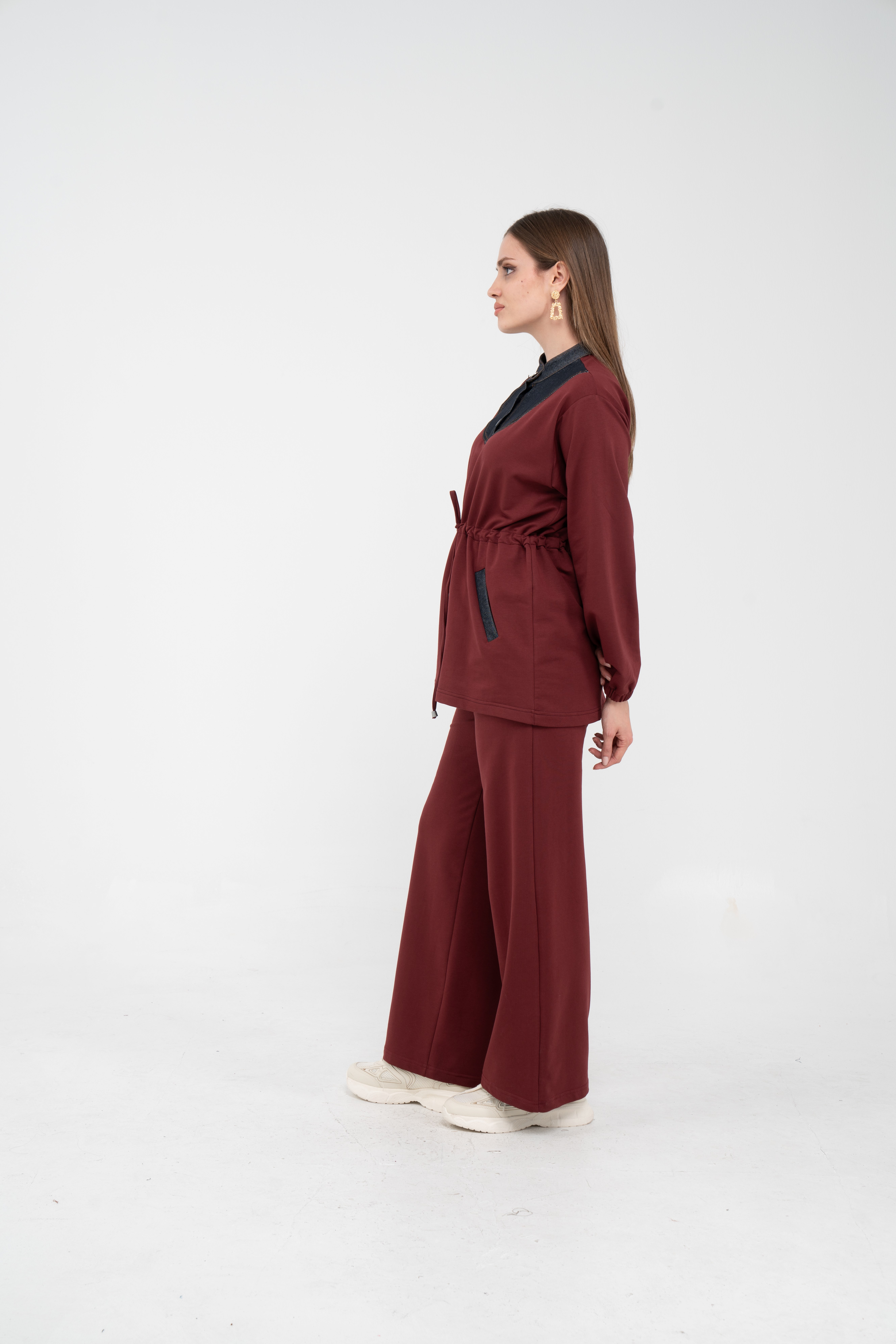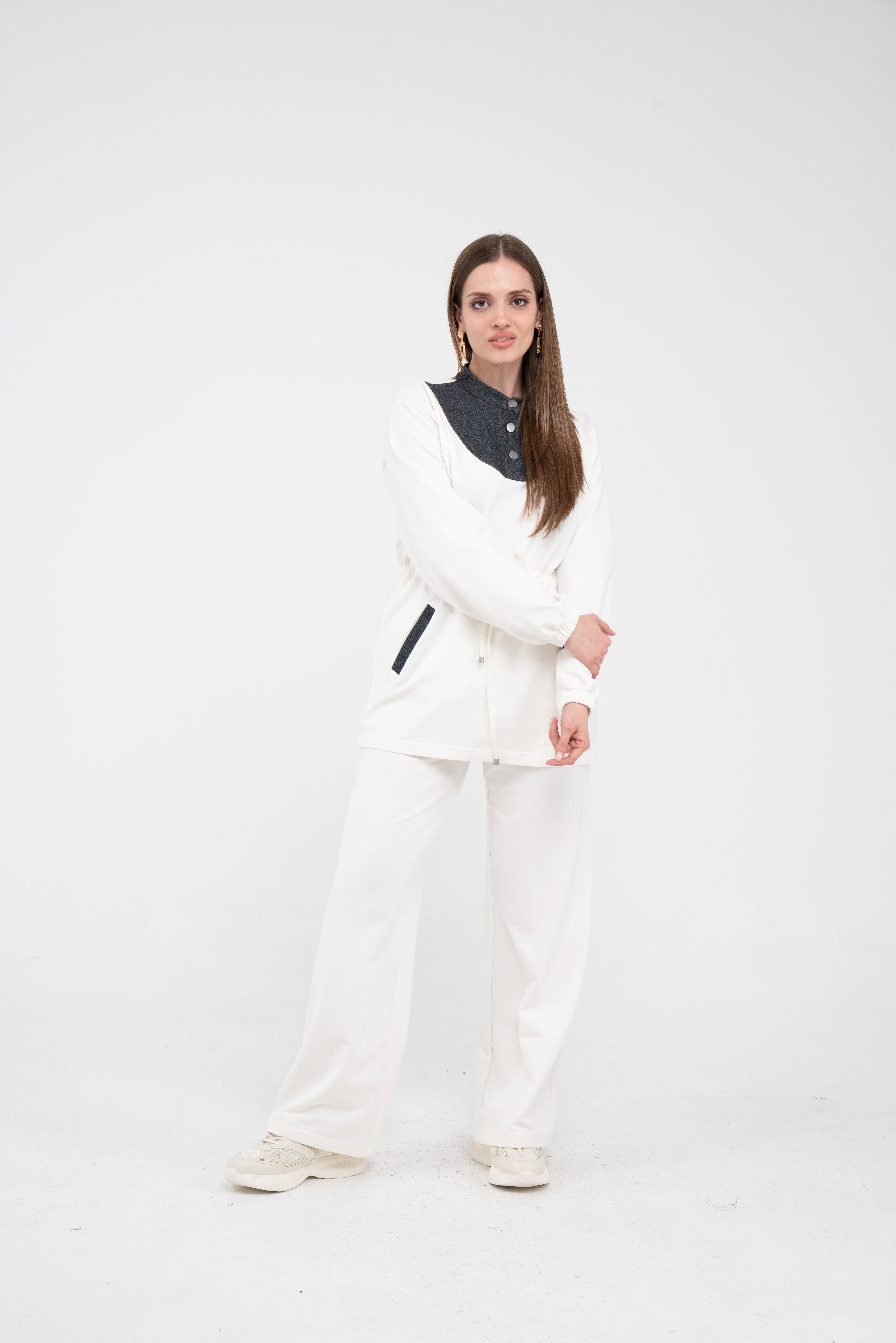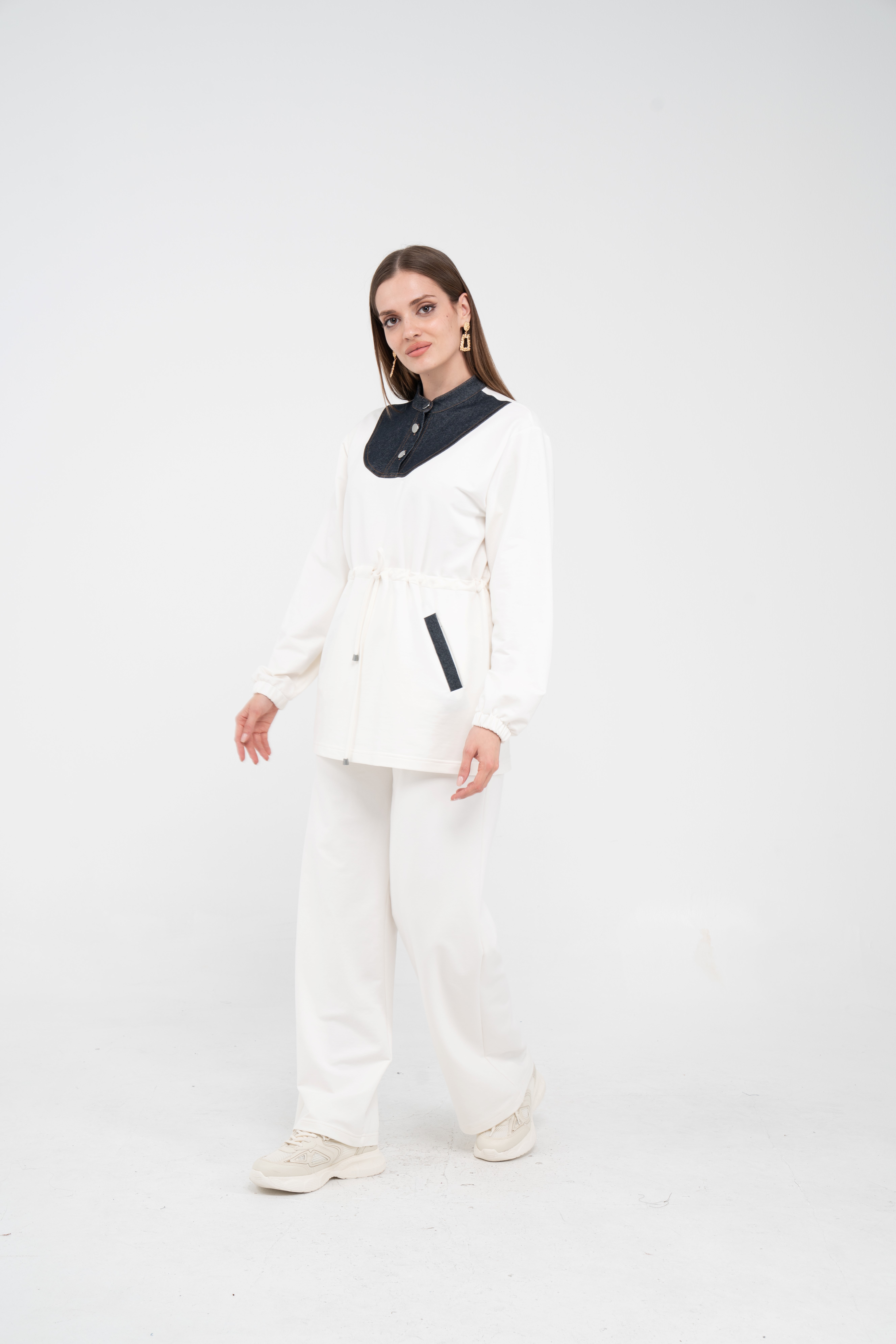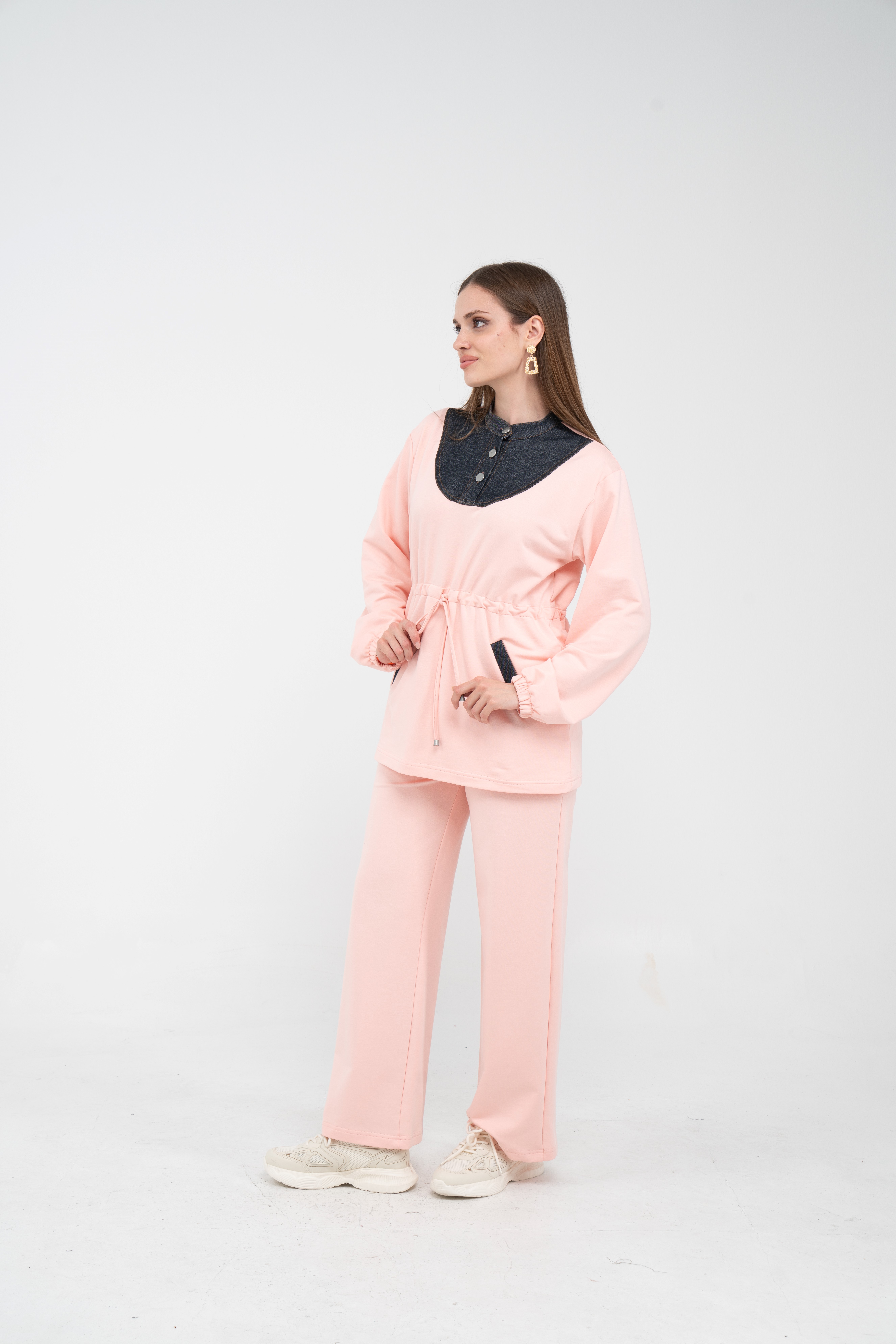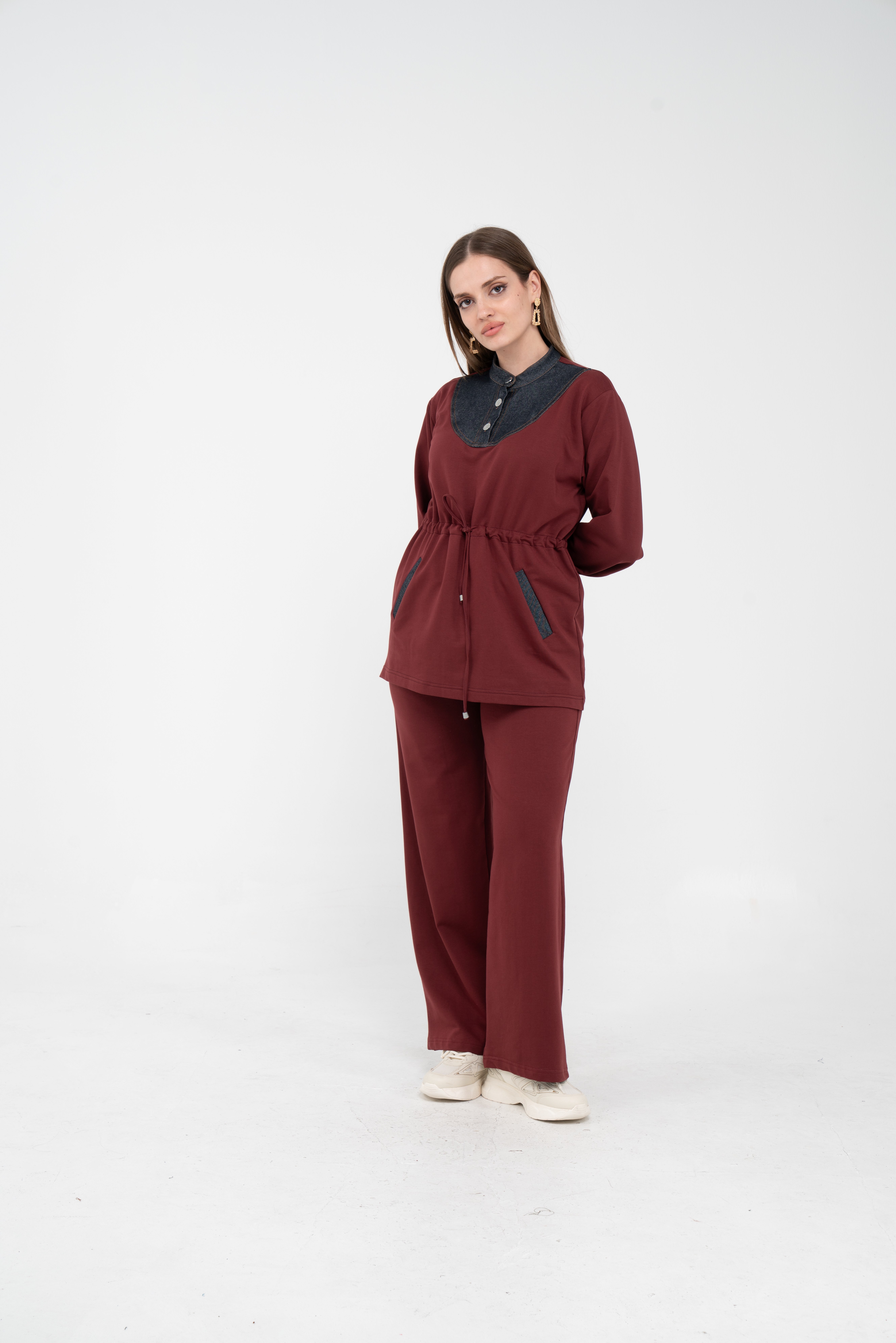 Esnek ve yumuşak dokulu kumaşı ile gün boyu konfor sunan takım, spor ayakkabılarla günlük kombinlere; çanta ve aksesuarlarla şehir stiline kolayca uyarlanabilir. Sezonun doğal tonlarını yansıtan bu takım, sade ama etkili bir tarz isteyenler için ideal bir seçenektir.
