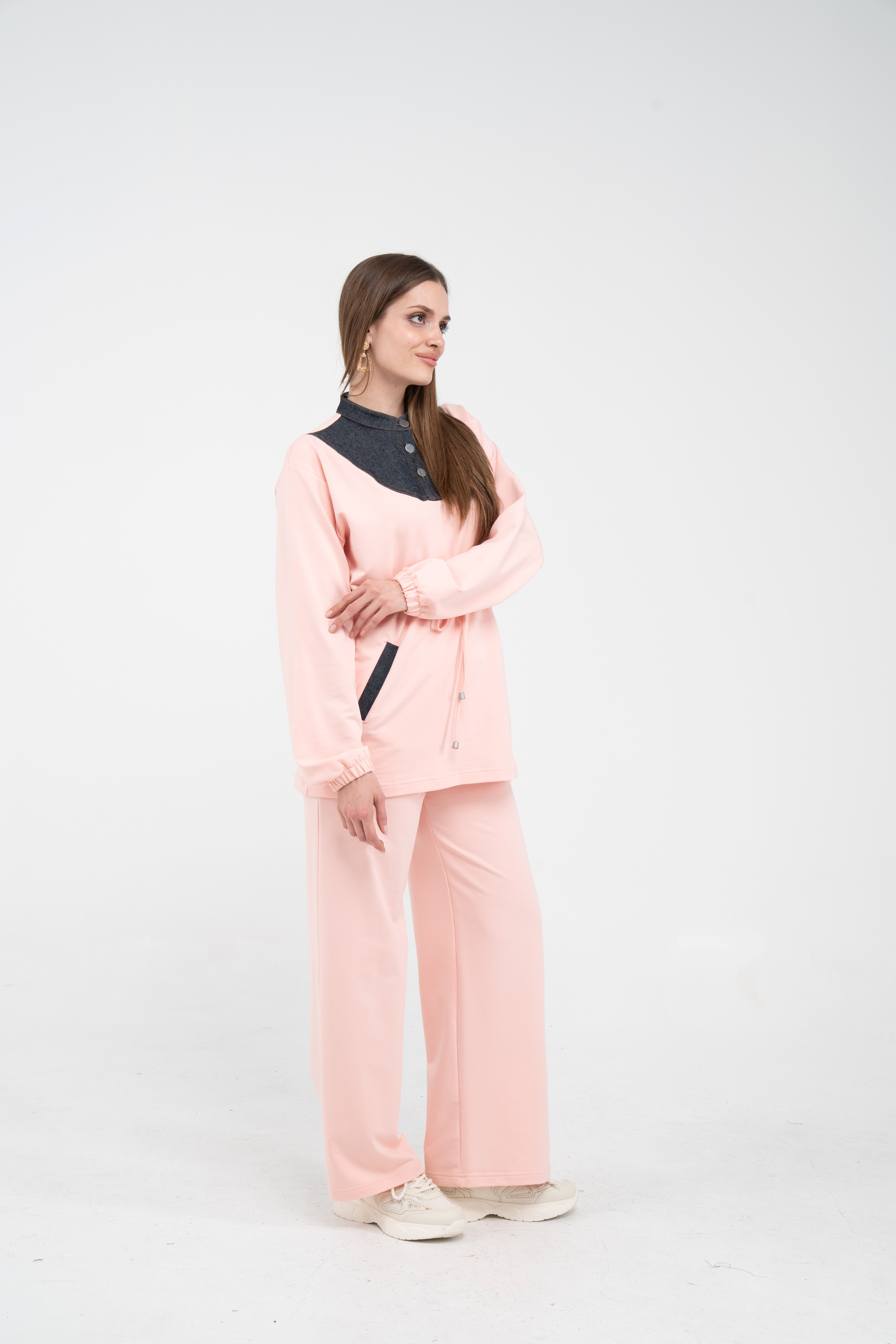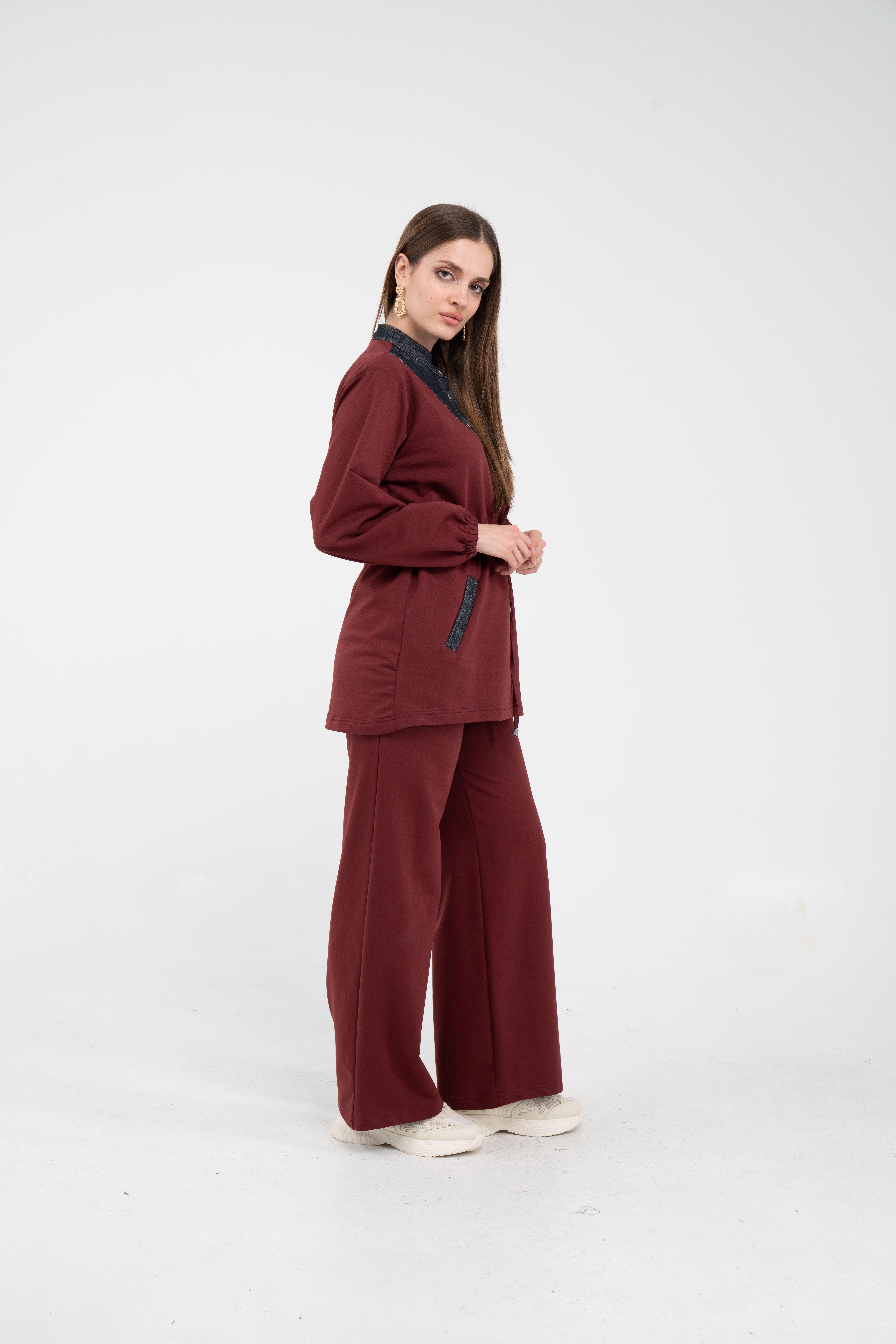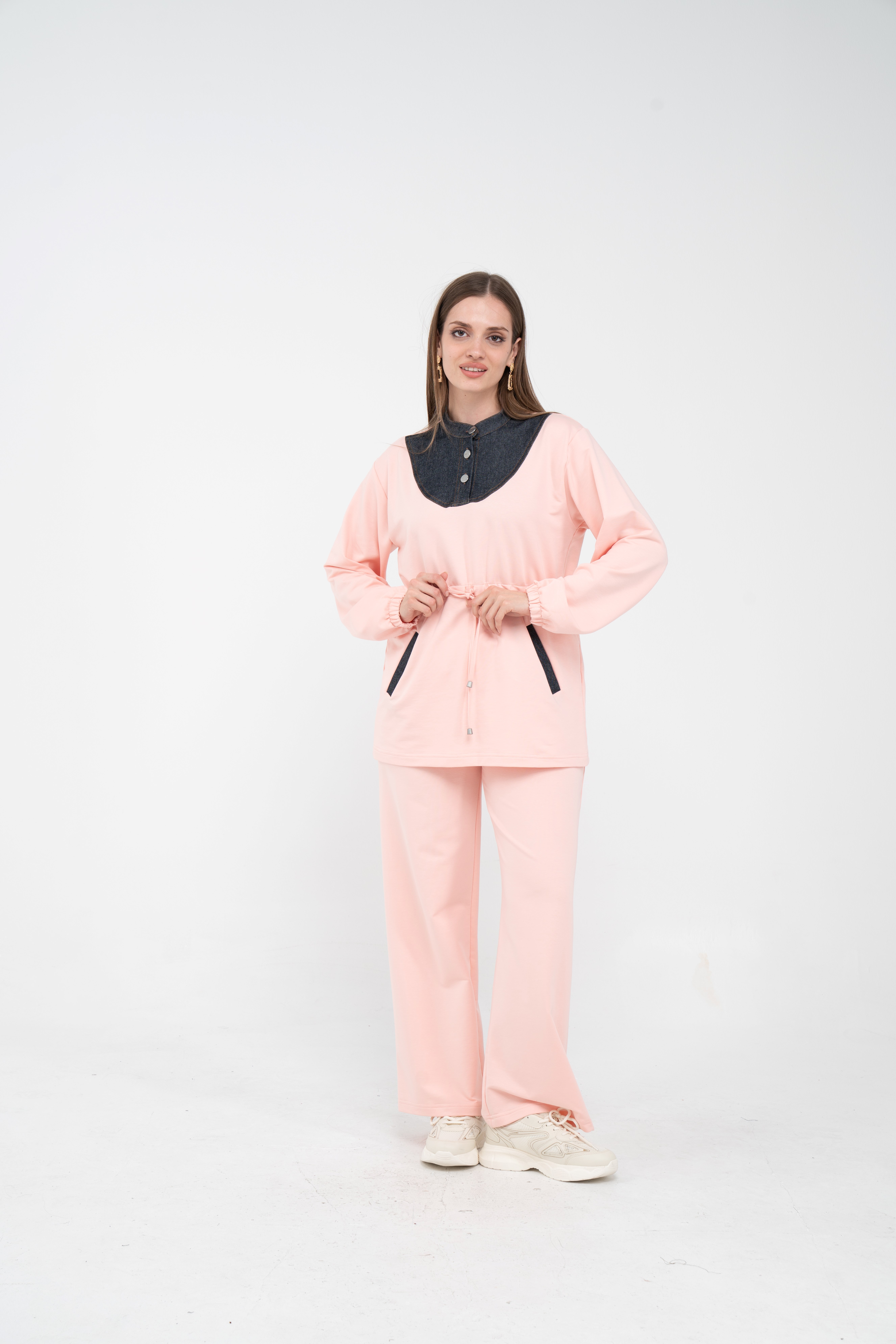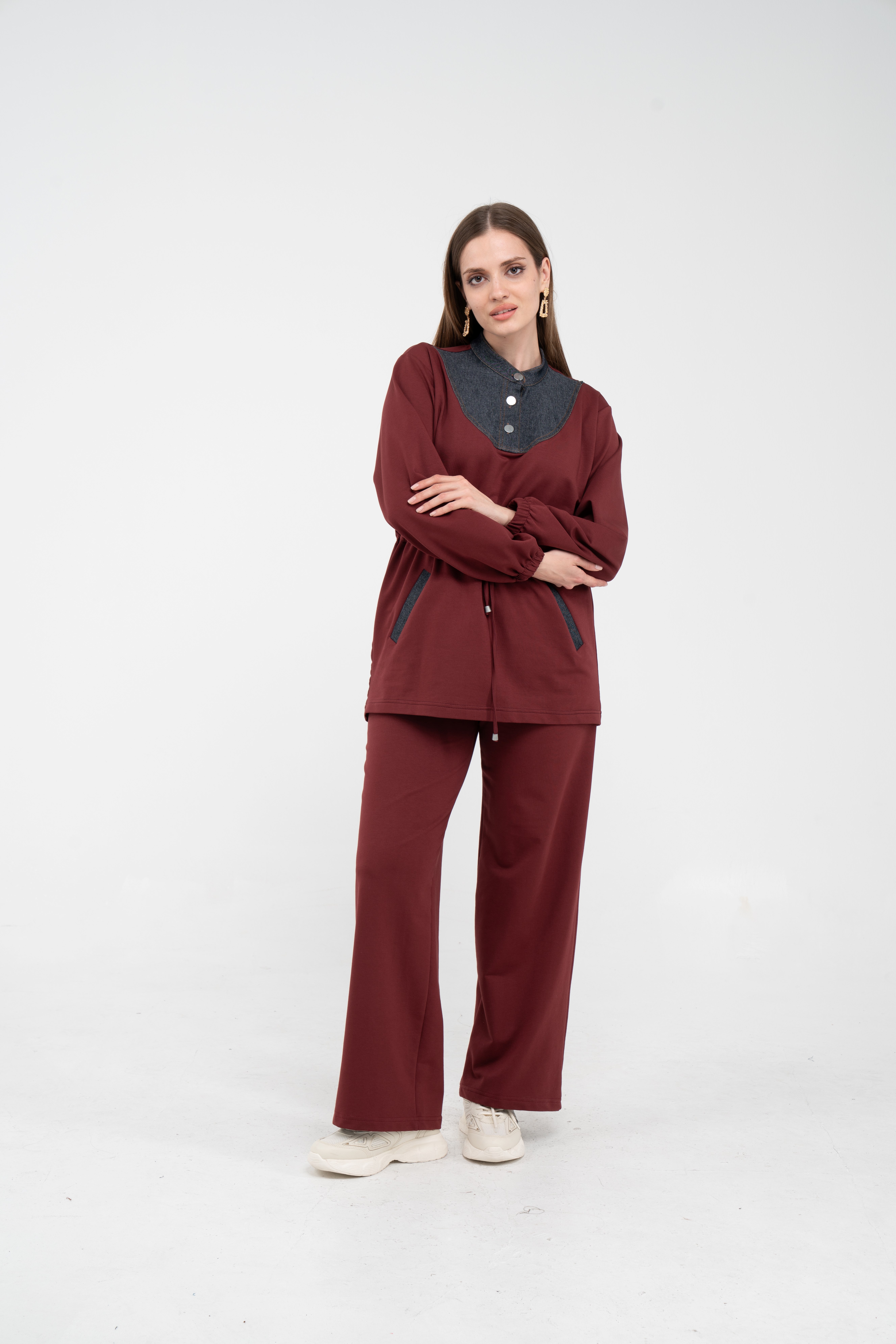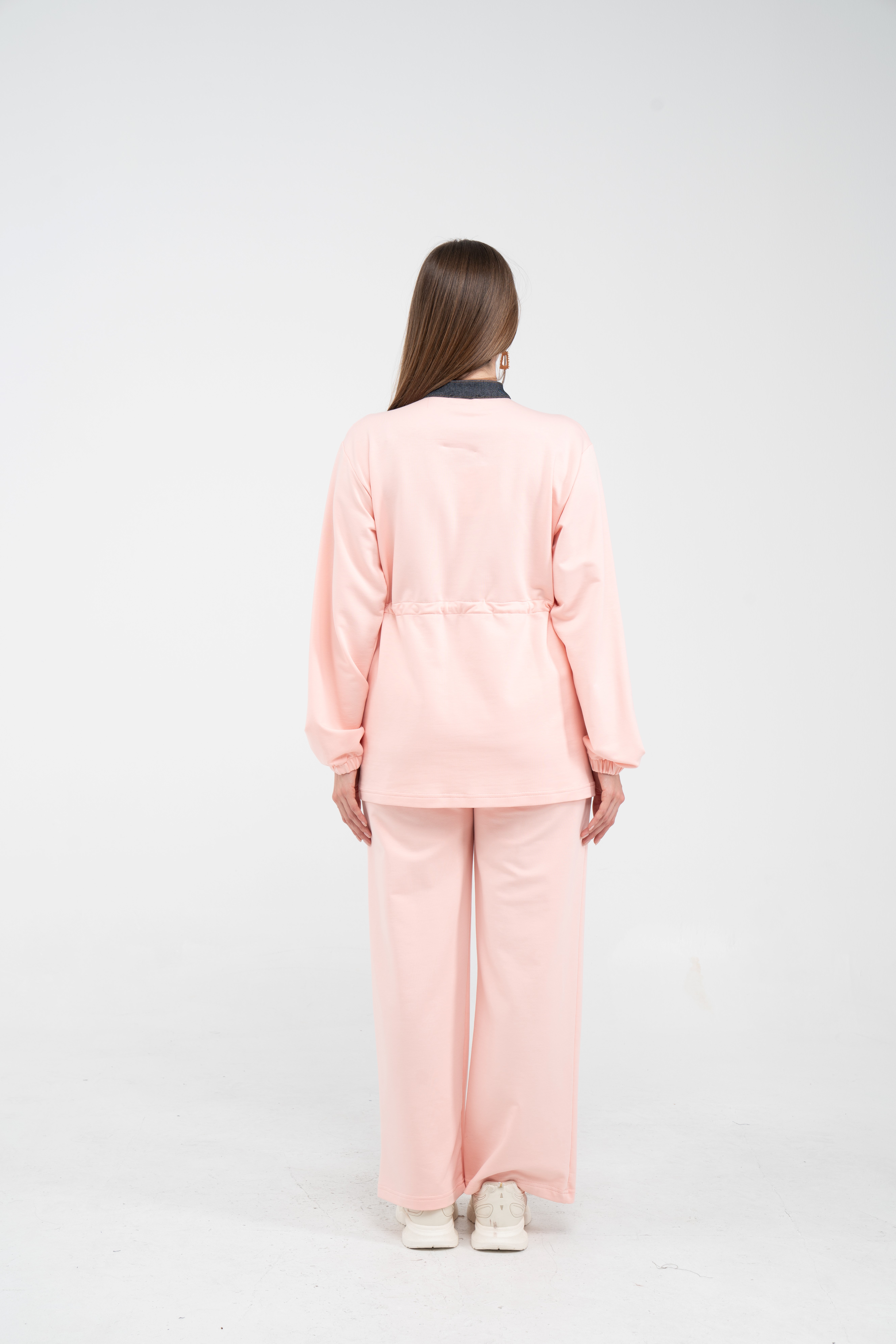 Esnek ve yumuşak dokulu kumaşı ile gün boyu konfor sunan takım, spor ayakkabılarla günlük kombinlere; çanta ve aksesuarlarla şehir stiline kolayca uyarlanabilir. Sezonun doğal tonlarını yansıtan bu takım, sade ama etkili bir tarz isteyenler için ideal bir seçenektir.