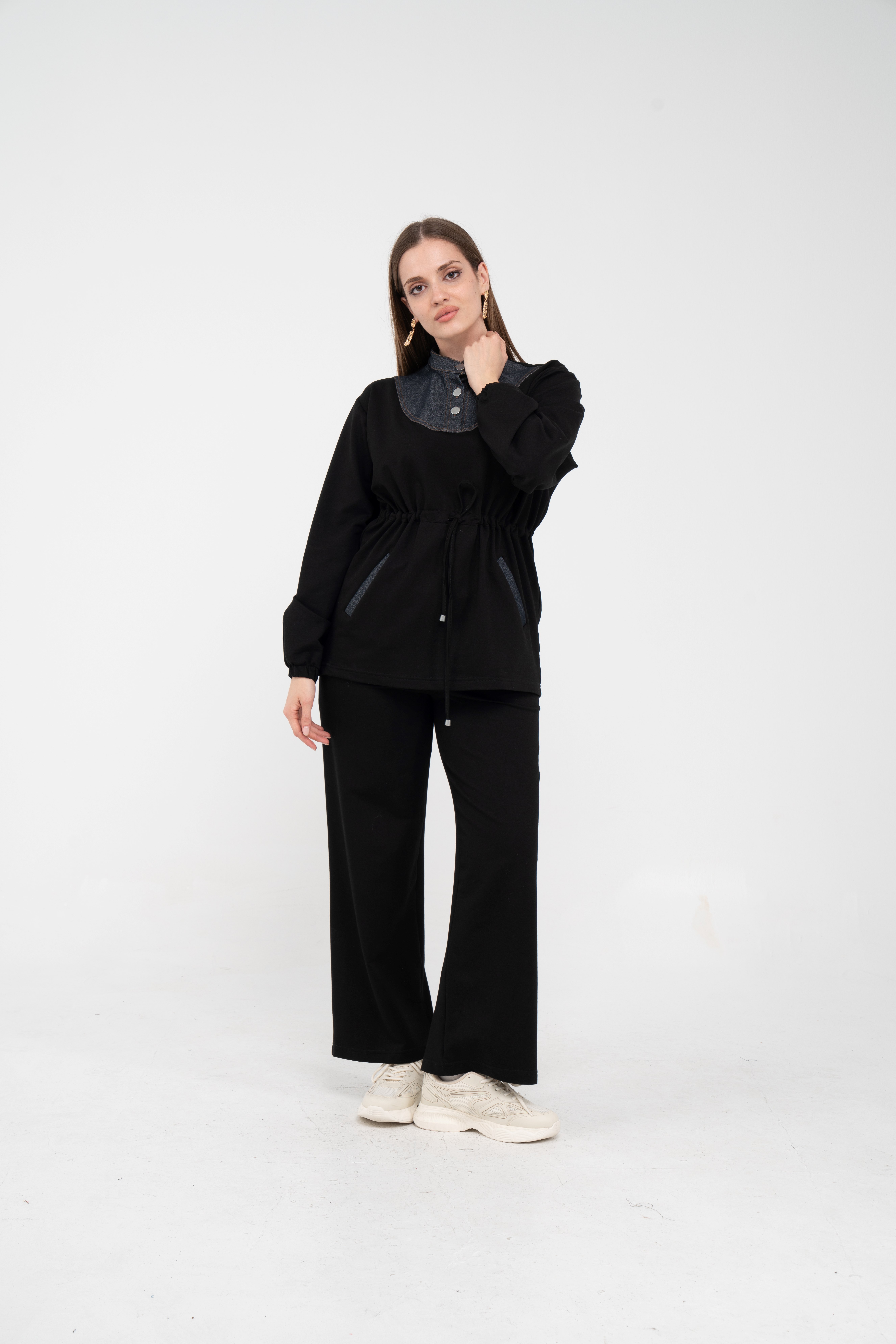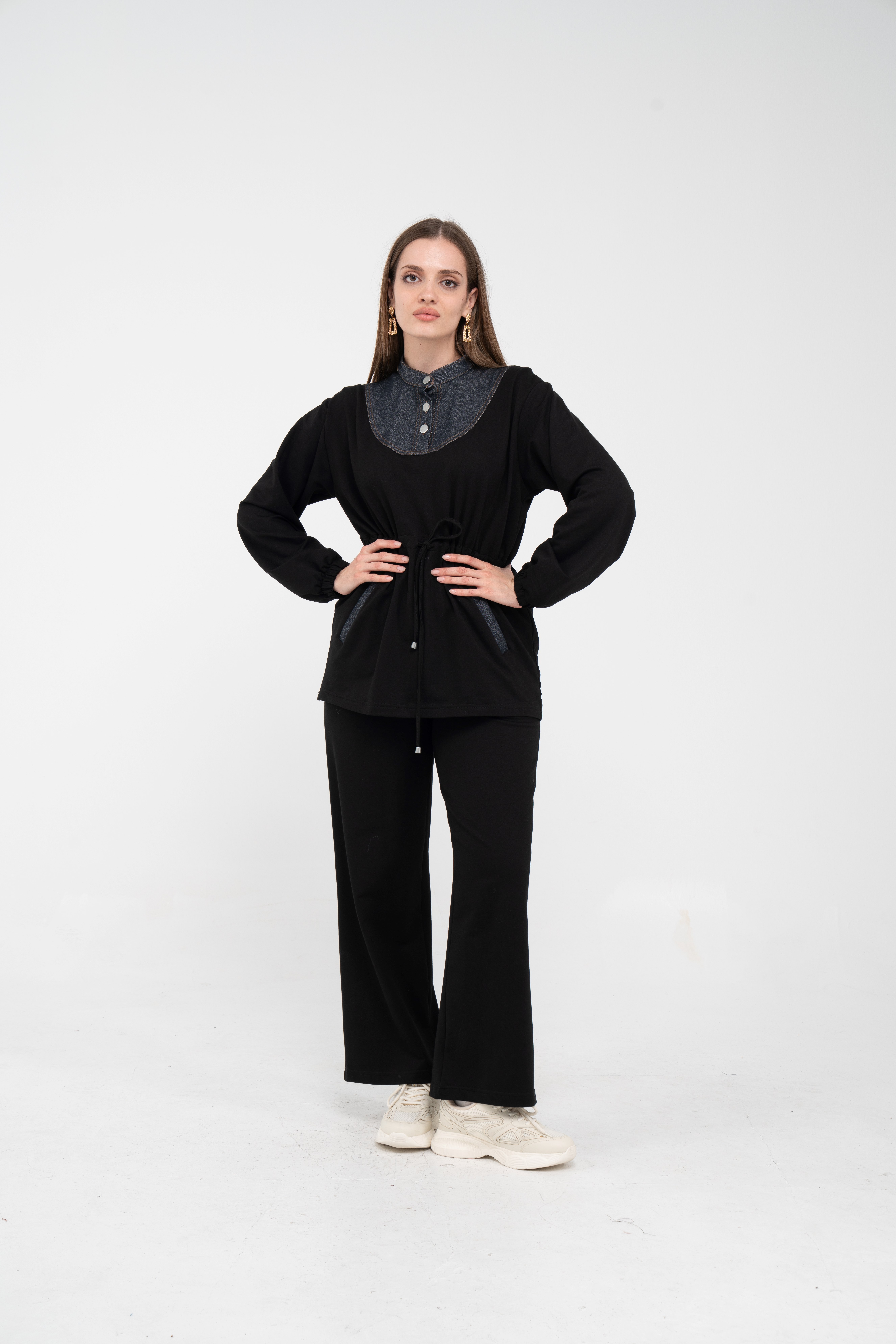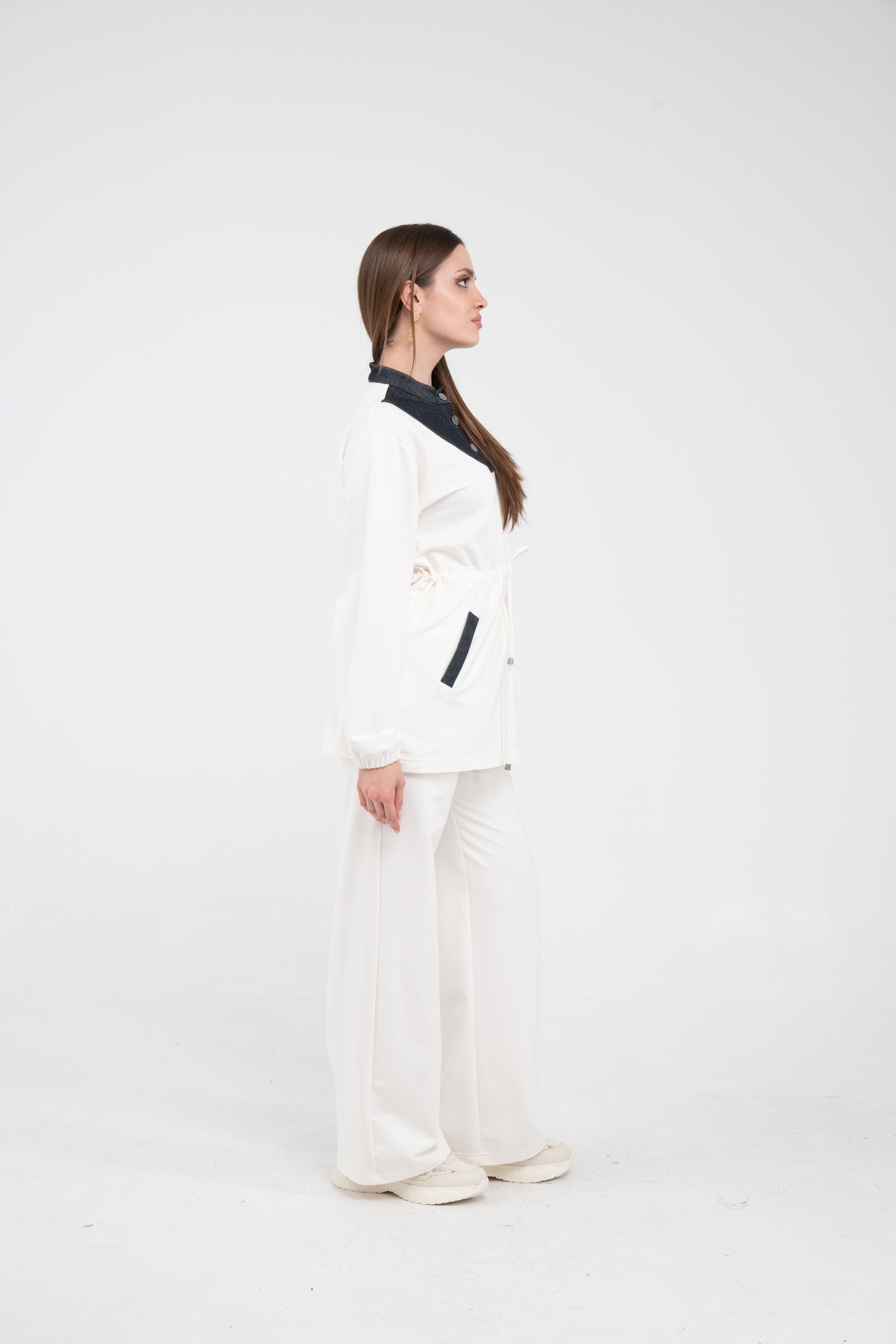 Gelince Haber VerRahatlığı ve modern çizgileri bir araya getiren bu kadın takım, denim yaka ve cep detaylarıyla casual stile güçlü bir karakter katar. Üst bölümdeki bel büzgüsü, formu ayarlayarak hem rahat hem de şık bir görünüm oluşturur.