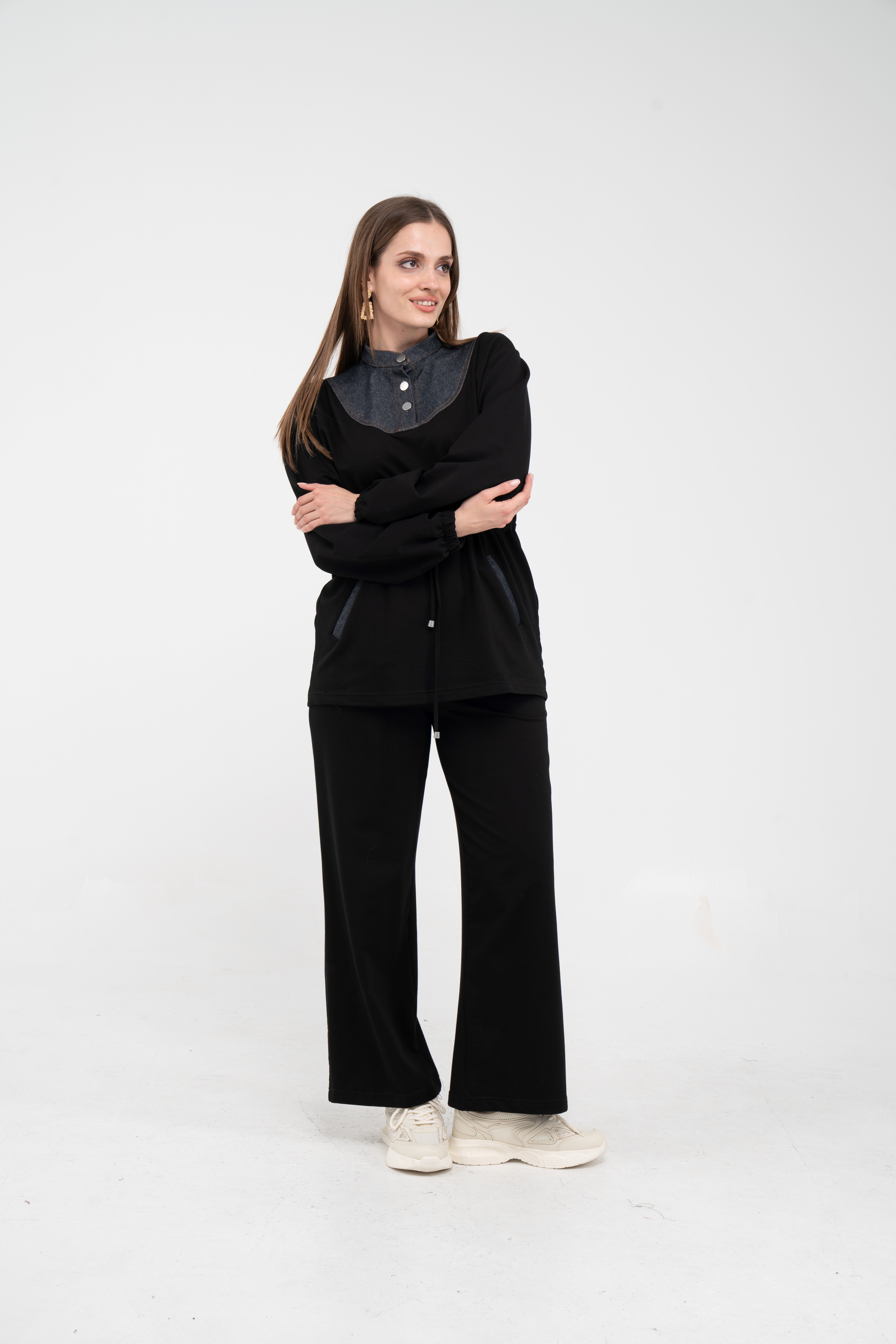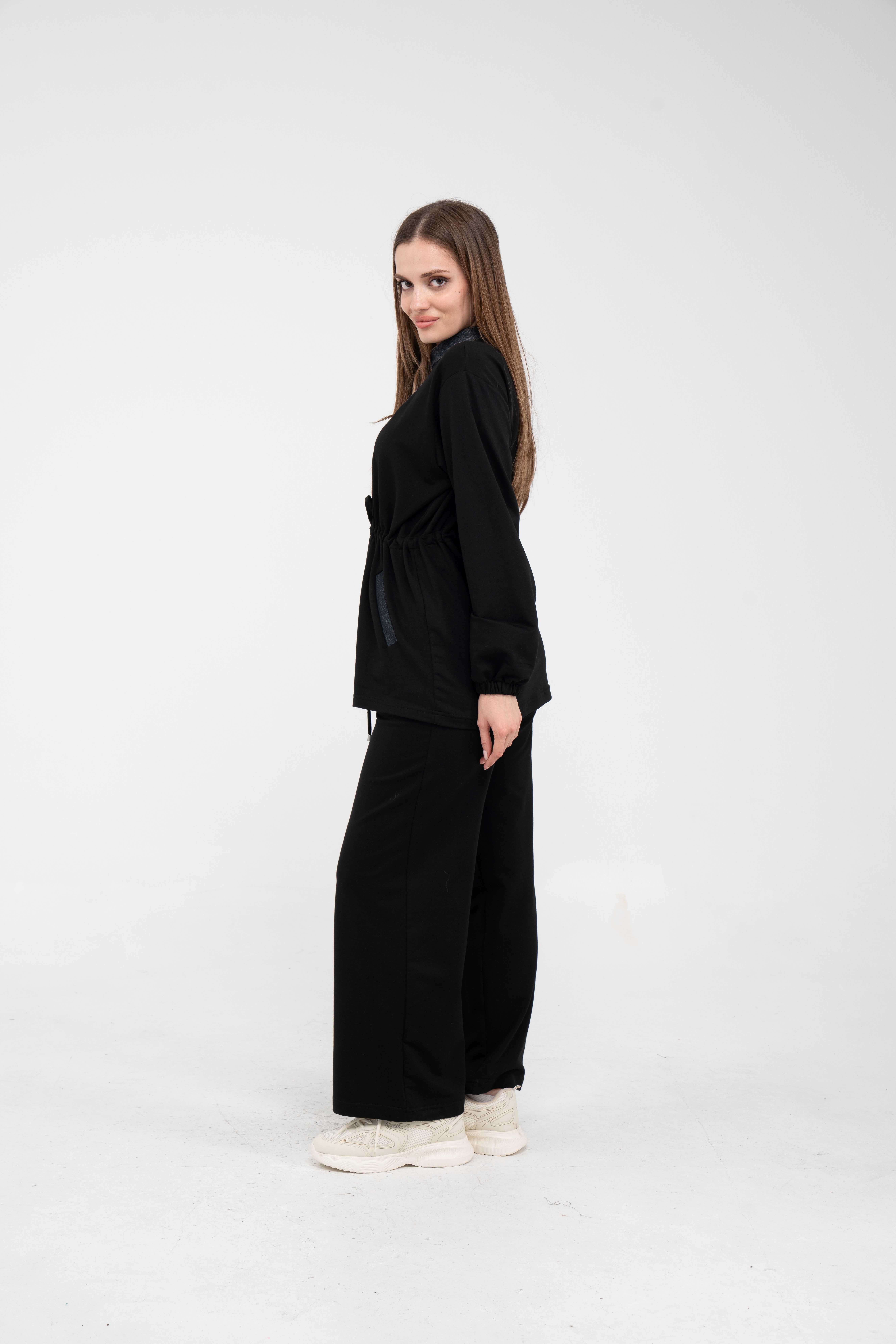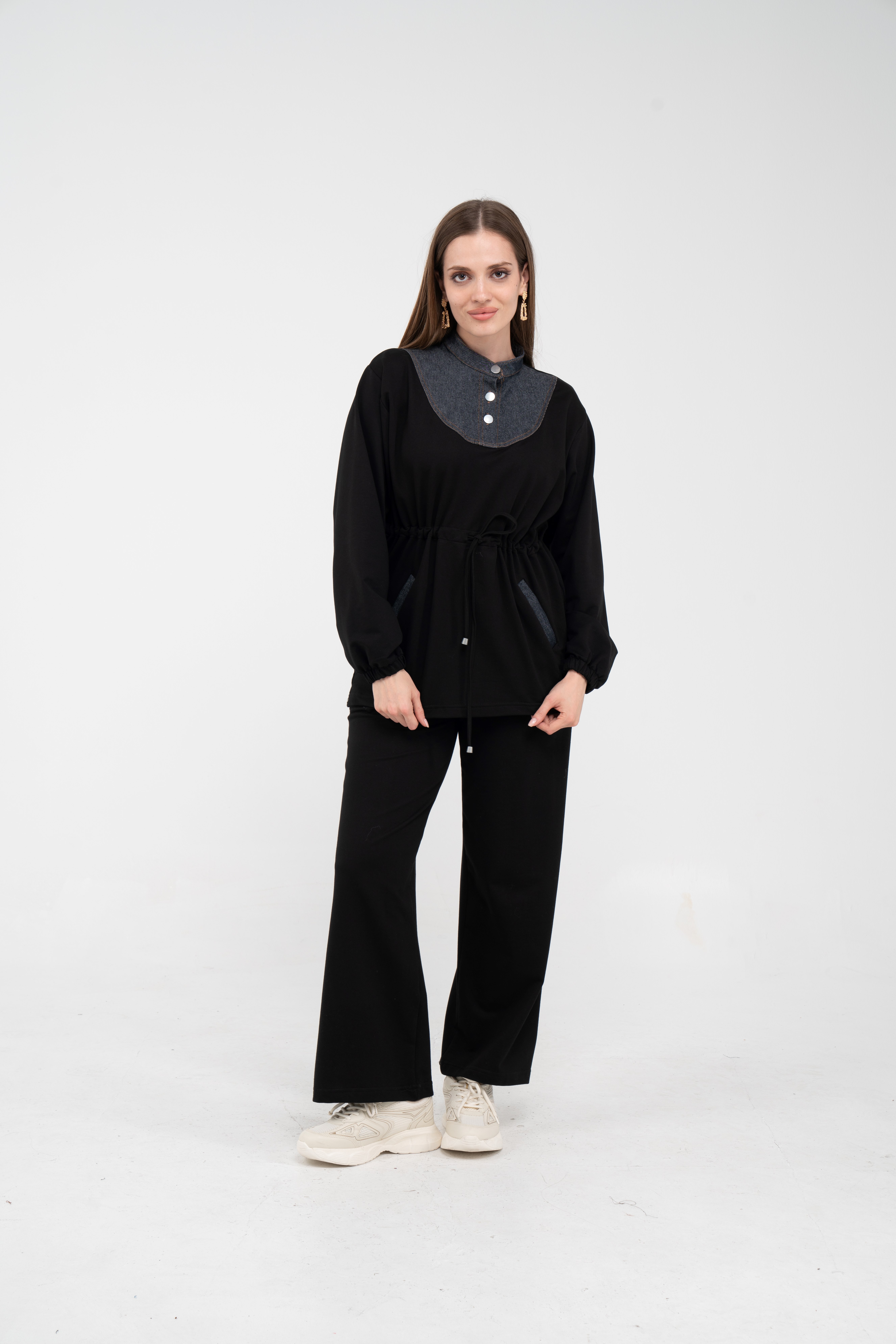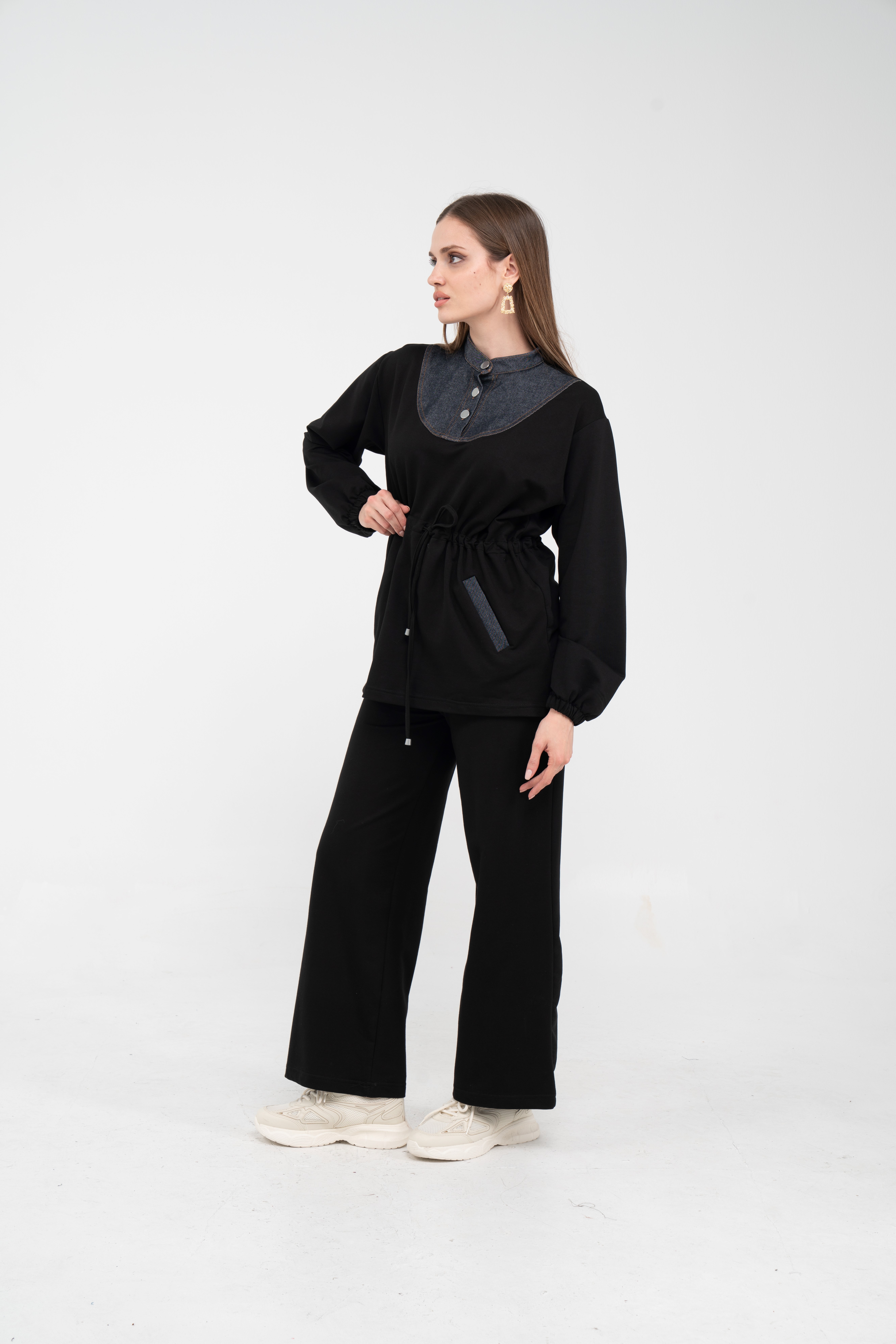 Gelince Haber VerRahatlığı ve modern çizgileri bir araya getiren bu kadın takım, denim yaka ve cep detaylarıyla casual stile güçlü bir karakter katar. Üst bölümdeki bel büzgüsü, formu ayarlayarak hem rahat hem de şık bir görünüm oluşturur.