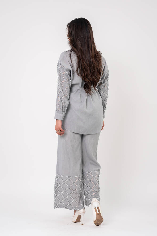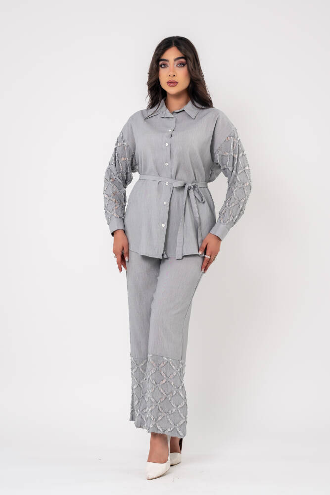 Yıpratma Detaylı Oversize Gömlek Pantolon Takım TKM16052